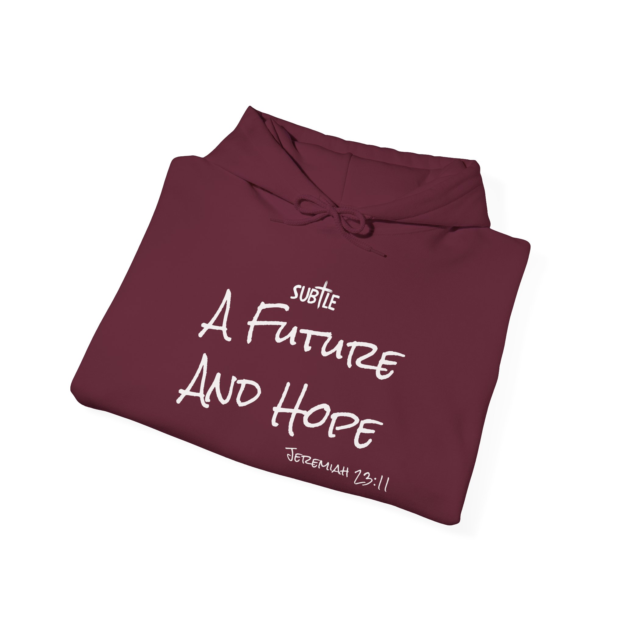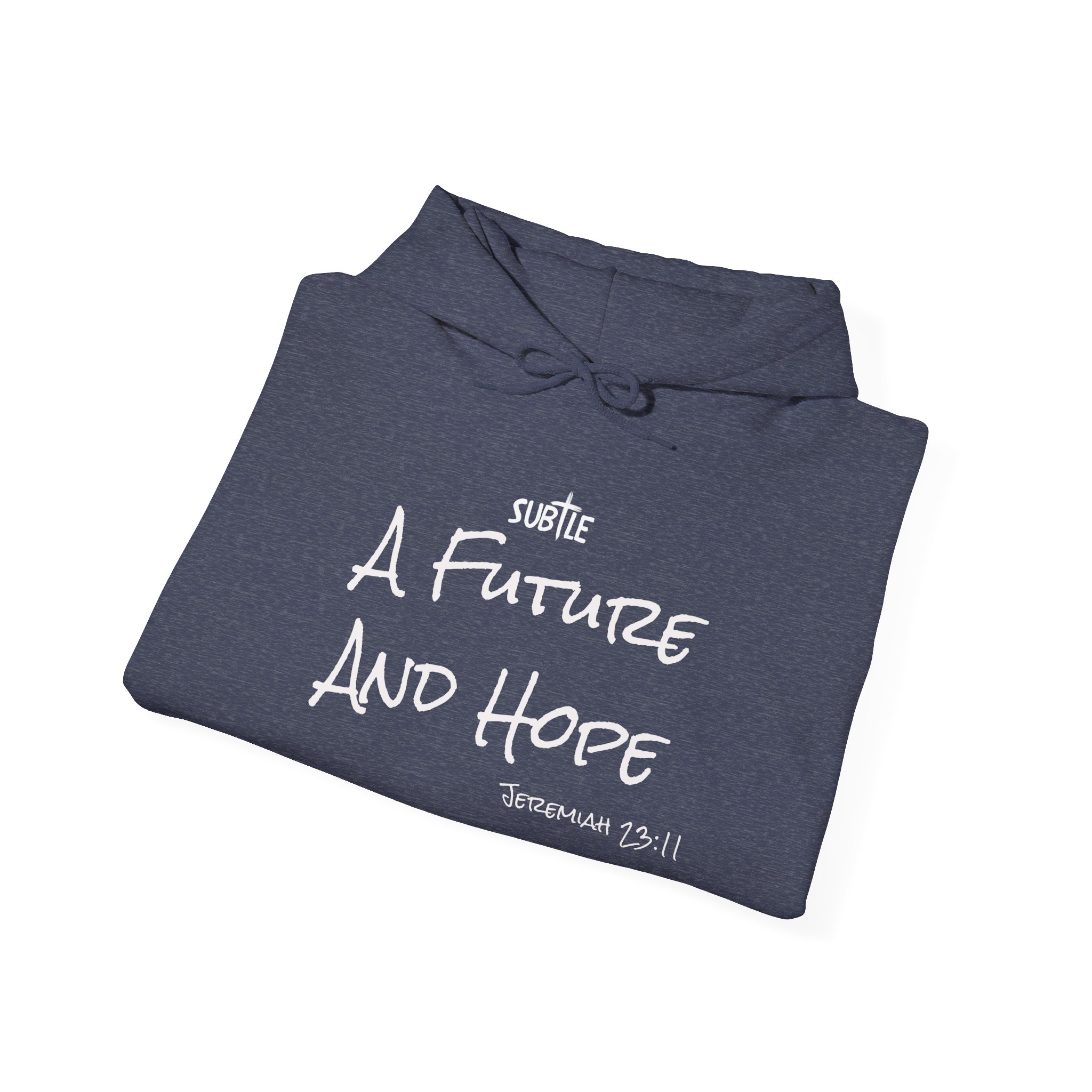 A Future and Hope by Subtle–Unisex Dark Colored Hoodie, Cozy Sweatshirt, Faith-Based Inspirational Apparel, Jeremiah 23:11