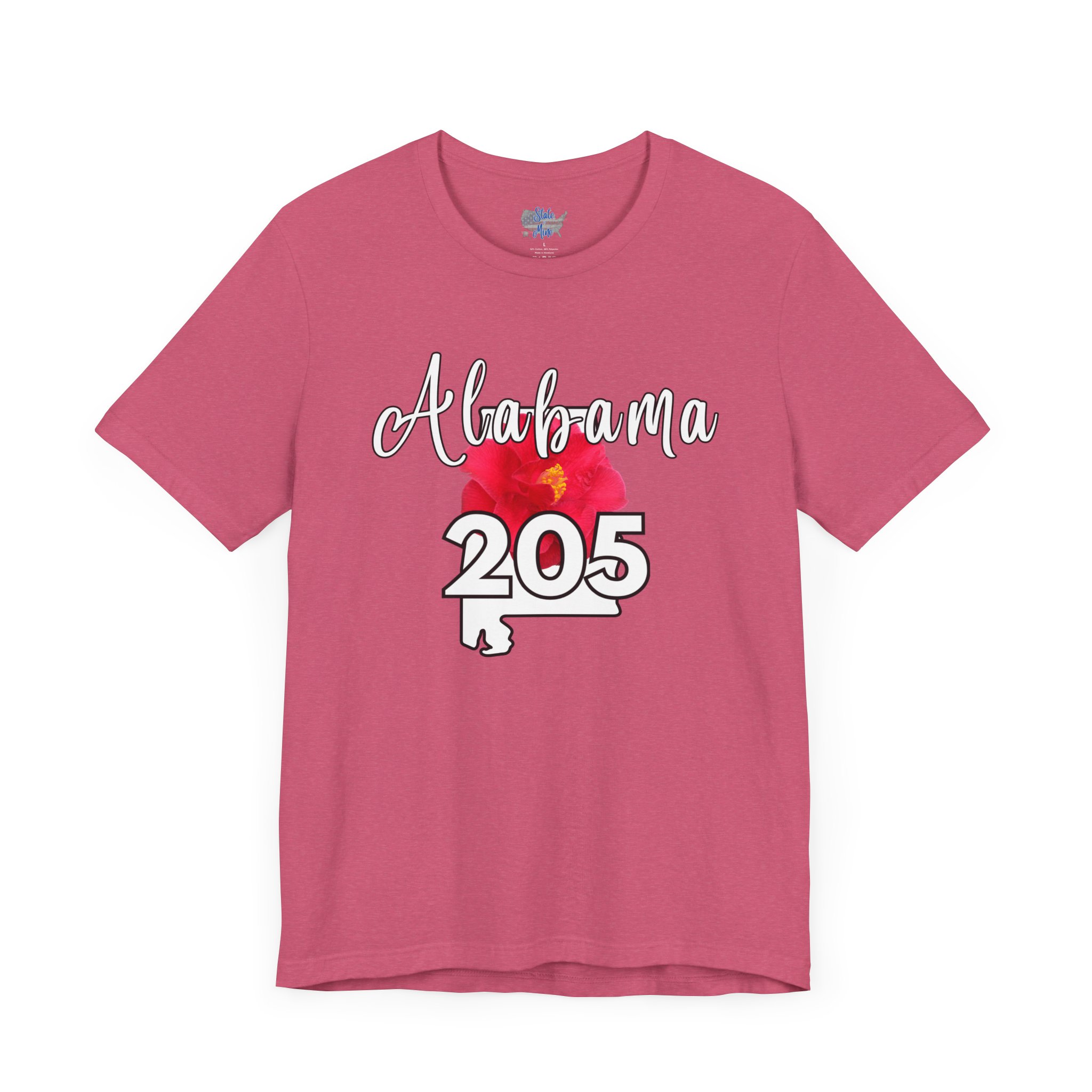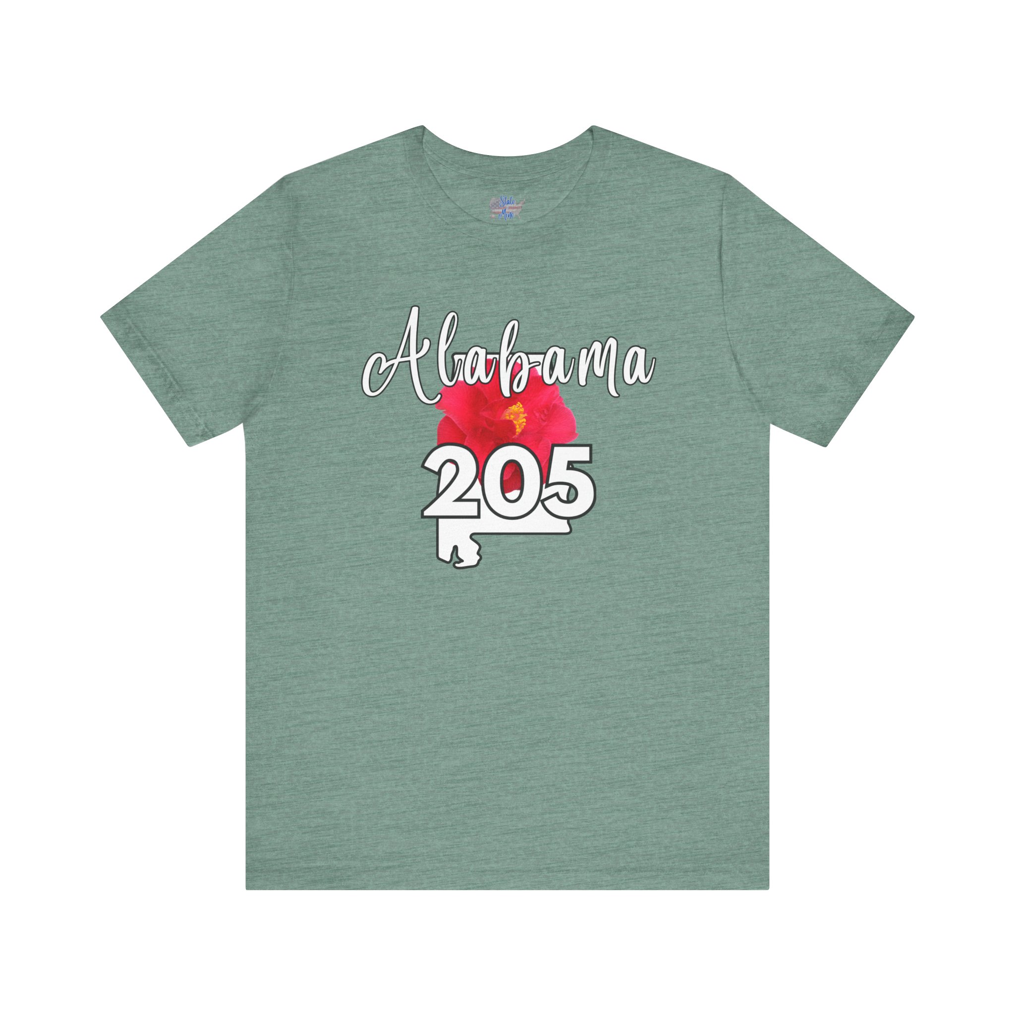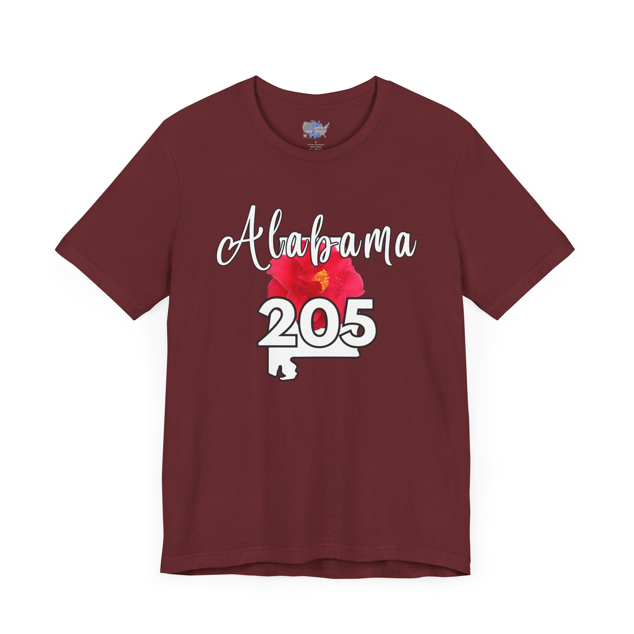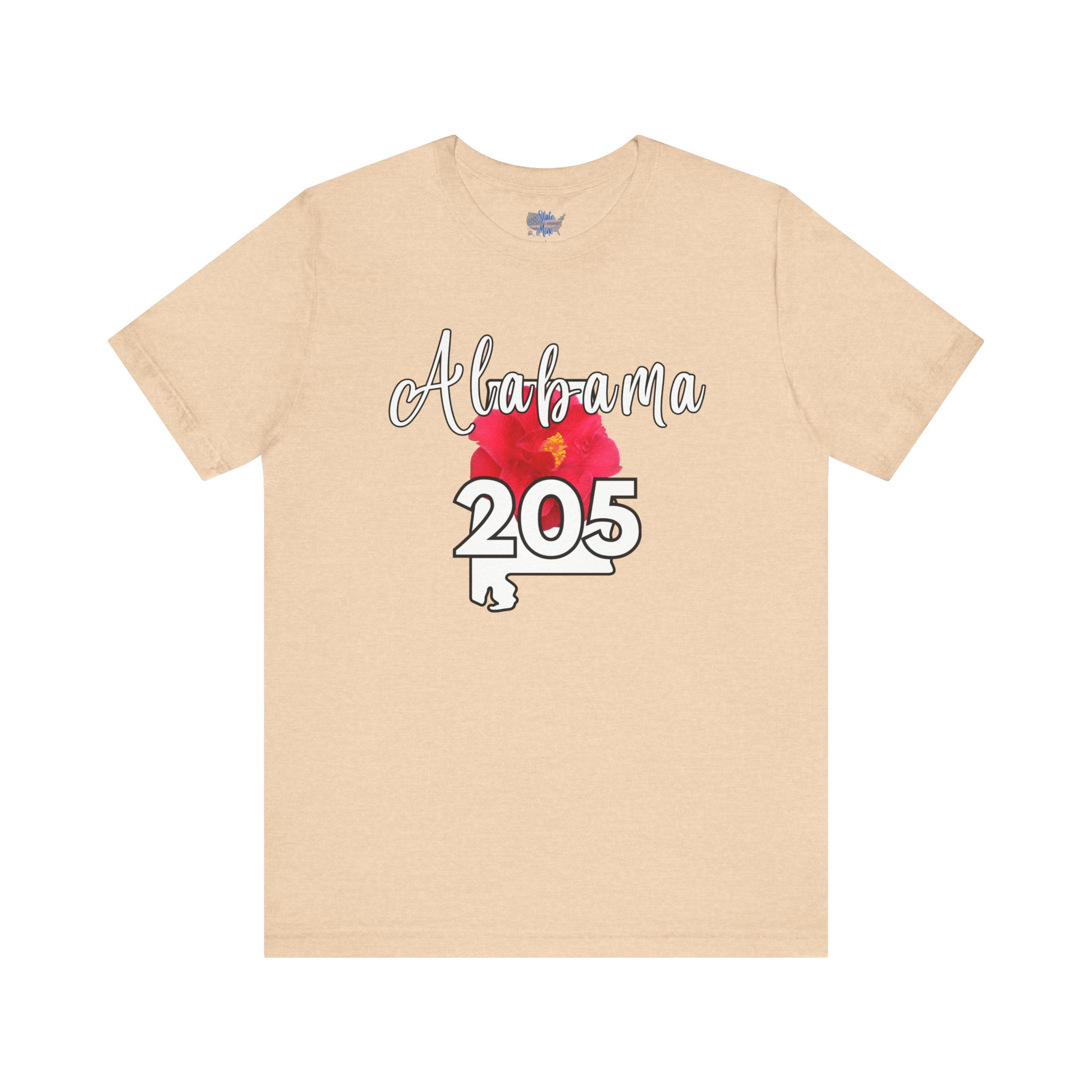 Alabama State Flower the Camellia 205 Area Code Tee by State of Mine, Casual Summer Wear, State Pride T-Shirt, Travel Souvenir, Gift for Him/Her, Festival Outfit, Outdoor Activities