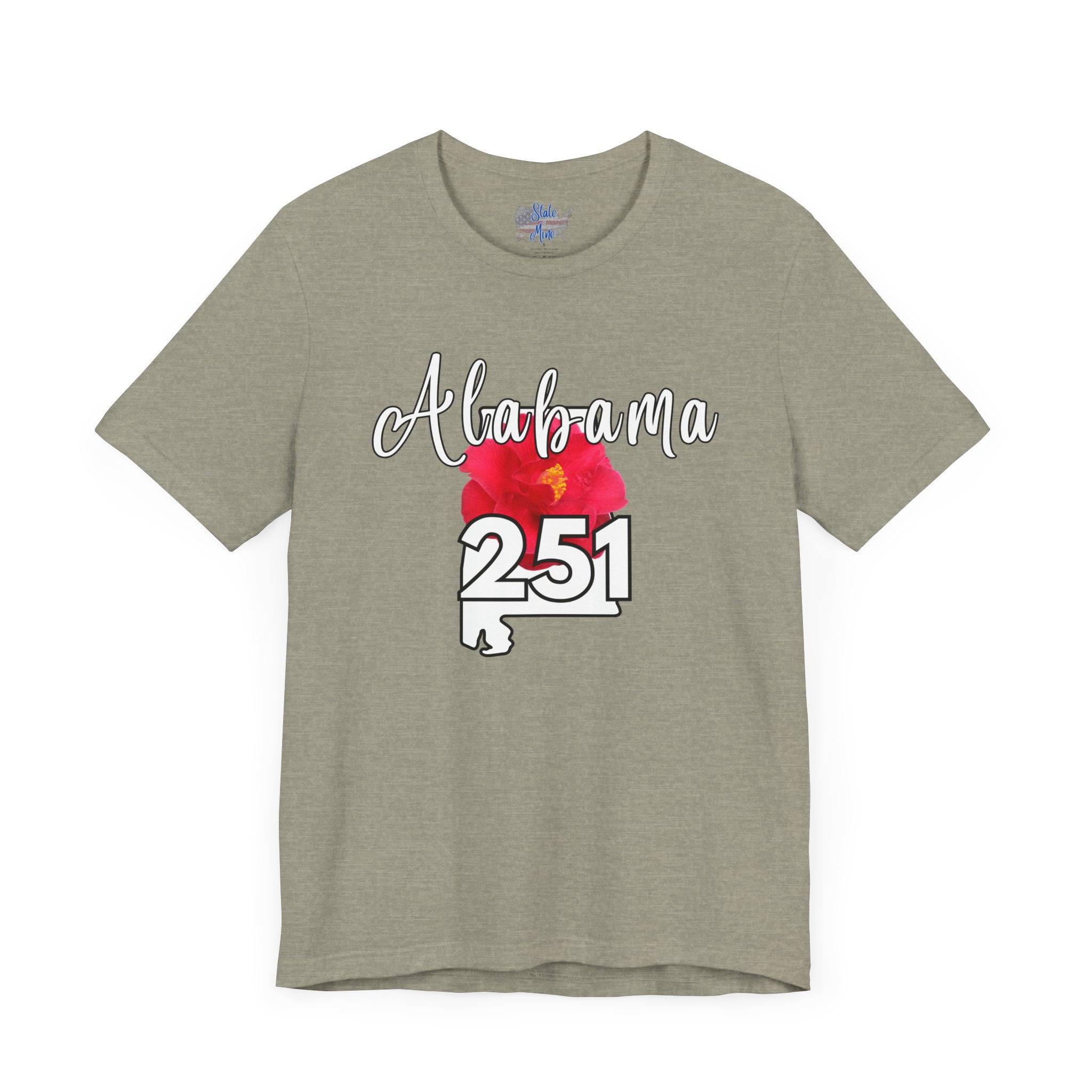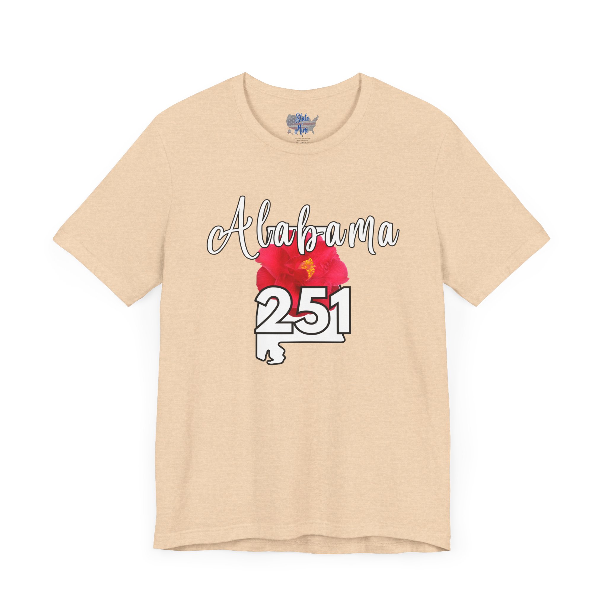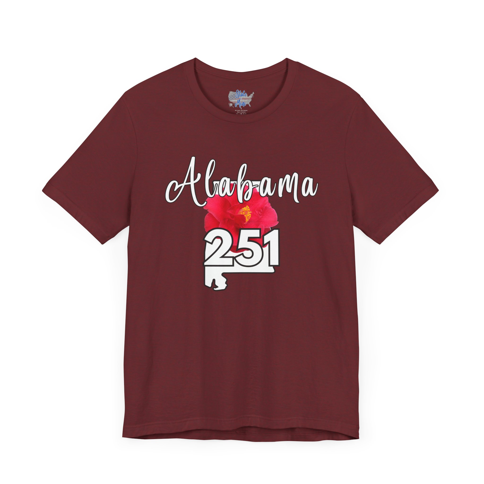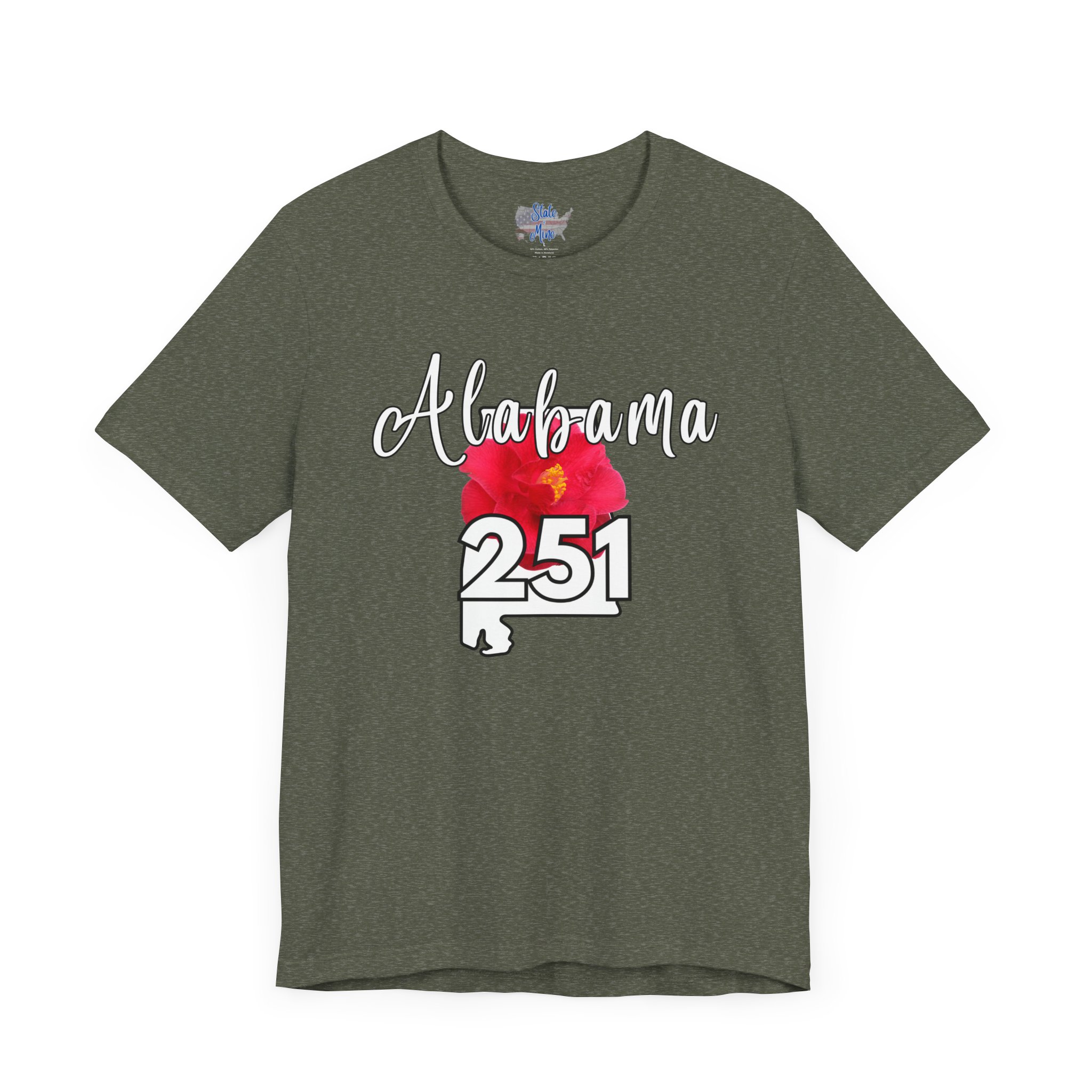 Alabama State Flower the Camellia 251 Area Code Tee by State of Mine, Casual Summer Wear, State Pride T-Shirt, Travel Souvenir, Gift for Him/Her, Festival Outfit, Outdoor Activities