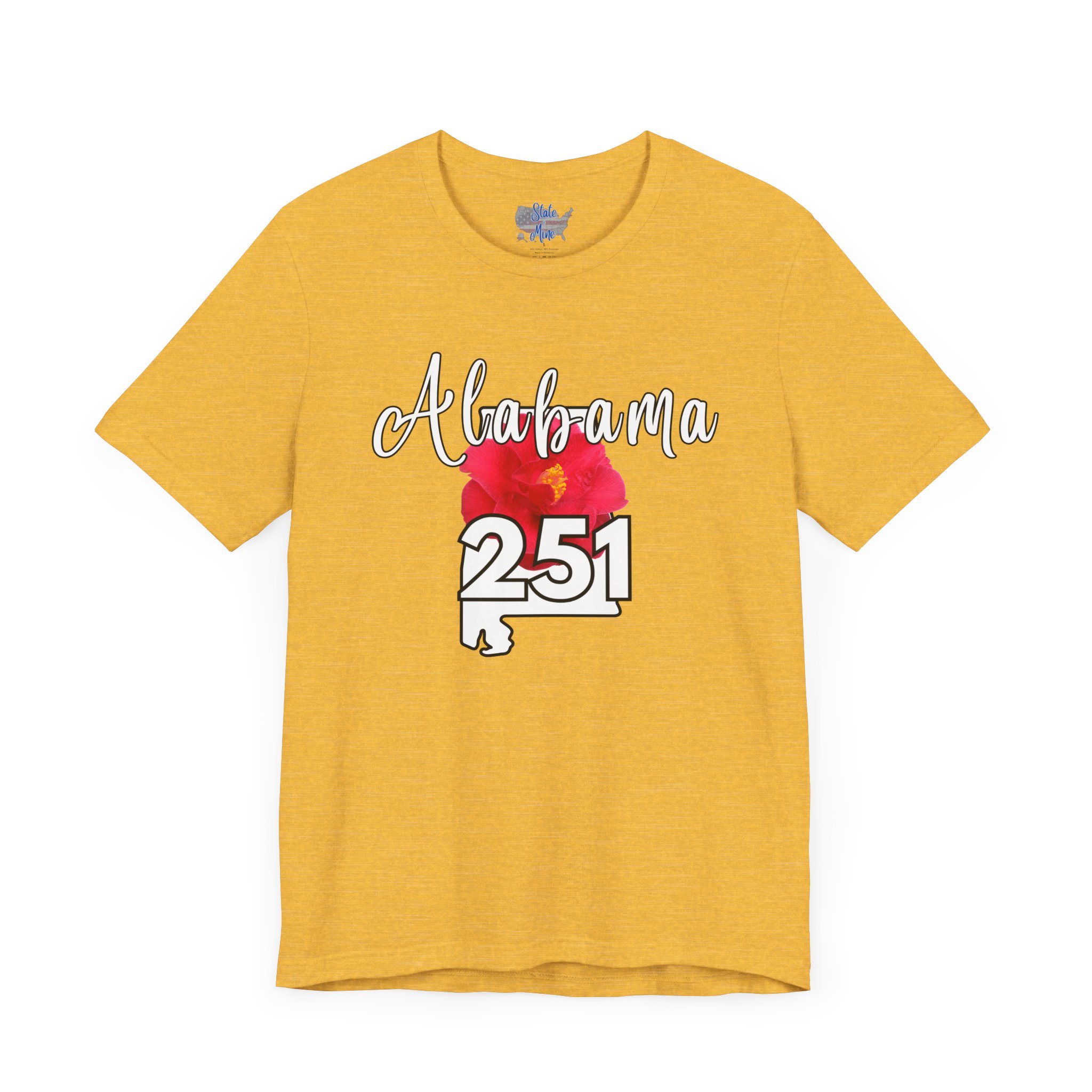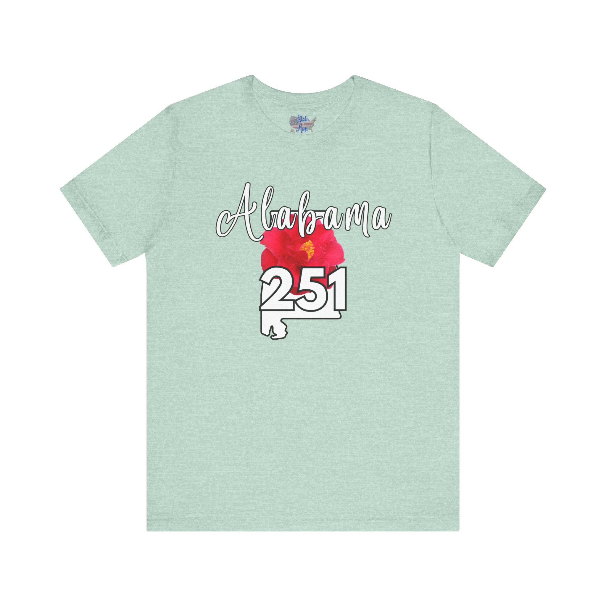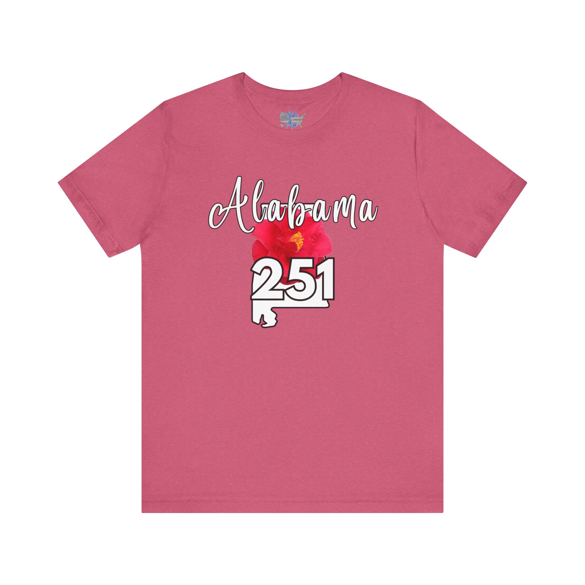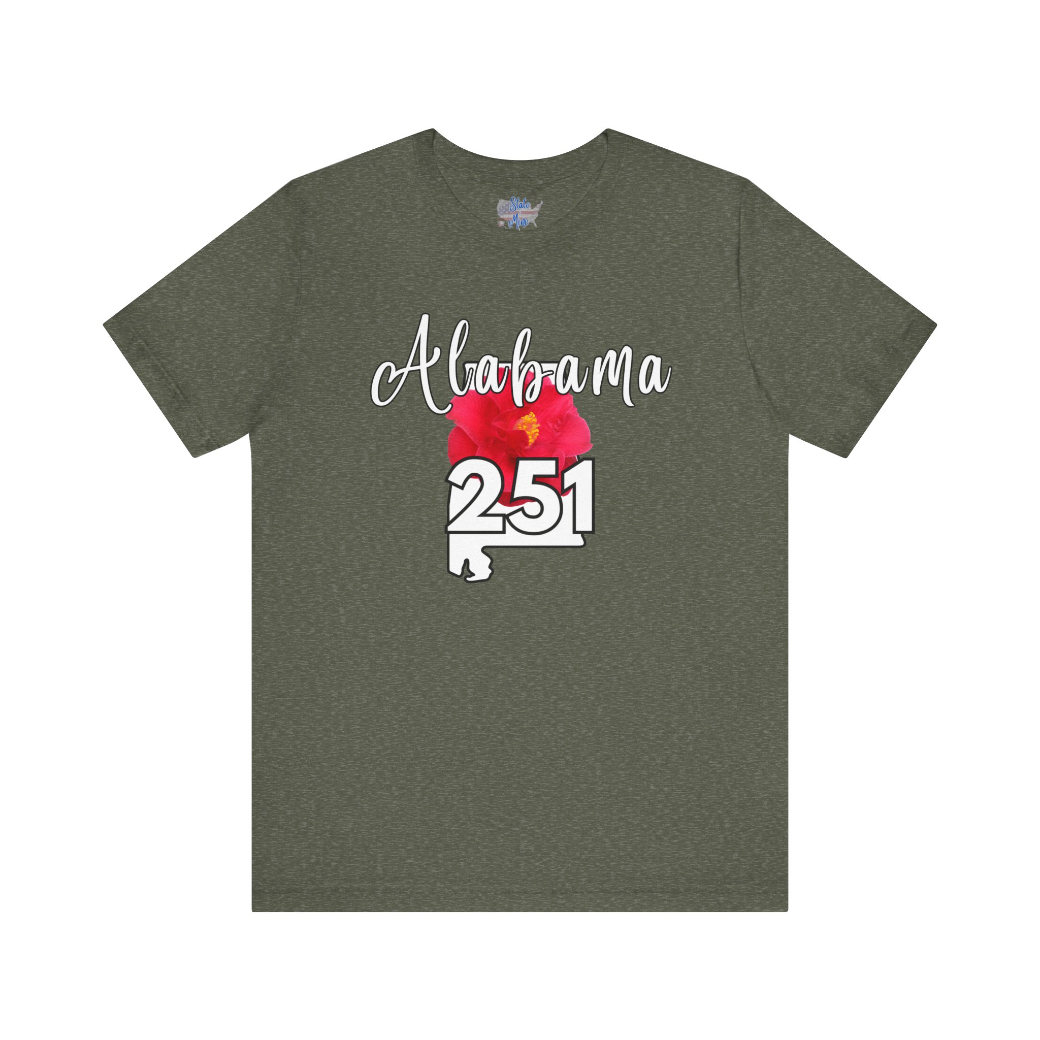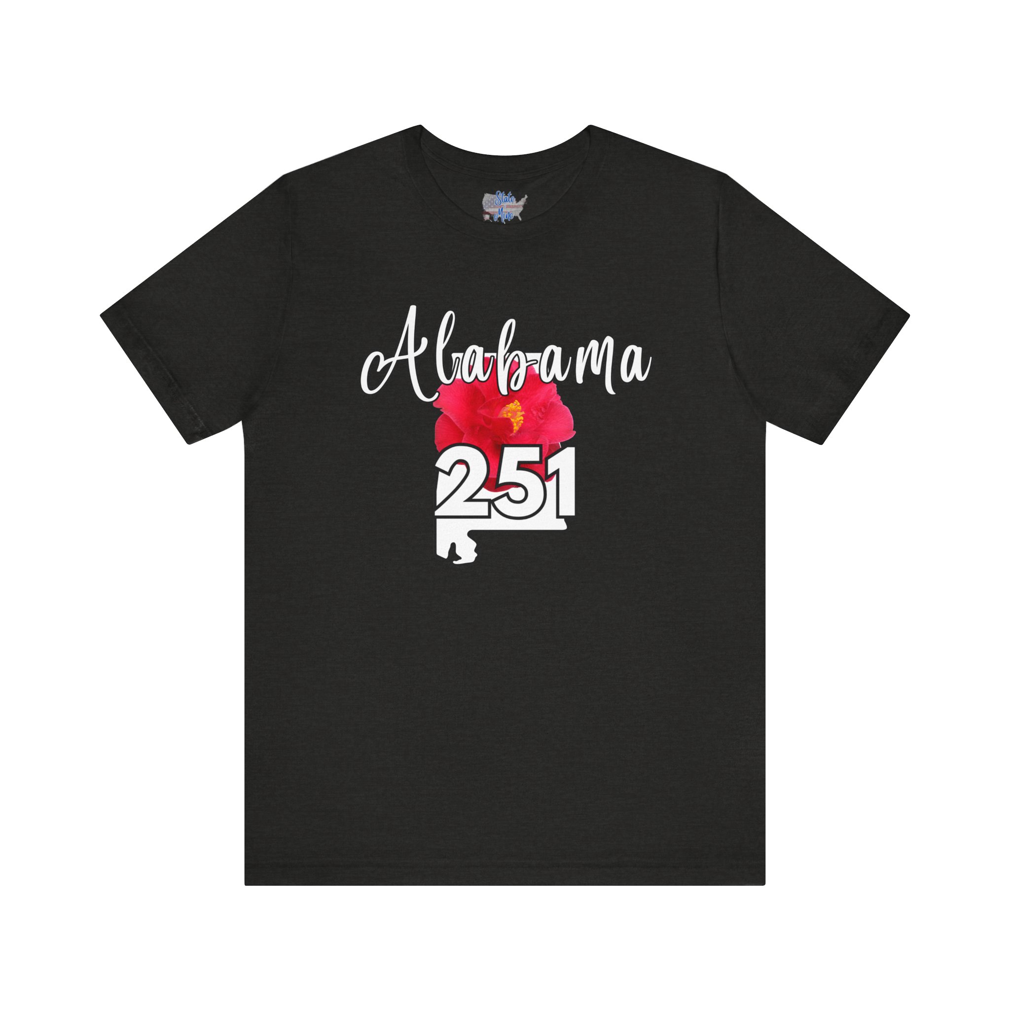 Alabama State Flower the Camellia 251 Area Code Tee by State of Mine, Casual Summer Wear, State Pride T-Shirt, Travel Souvenir, Gift for Him/Her, Festival Outfit, Outdoor Activities