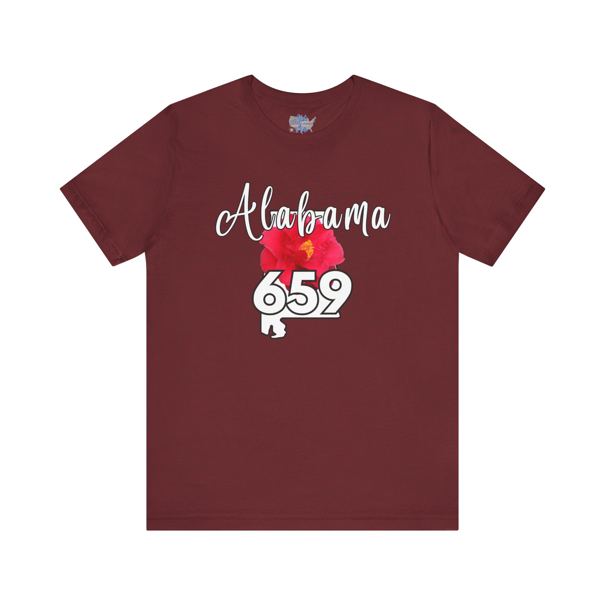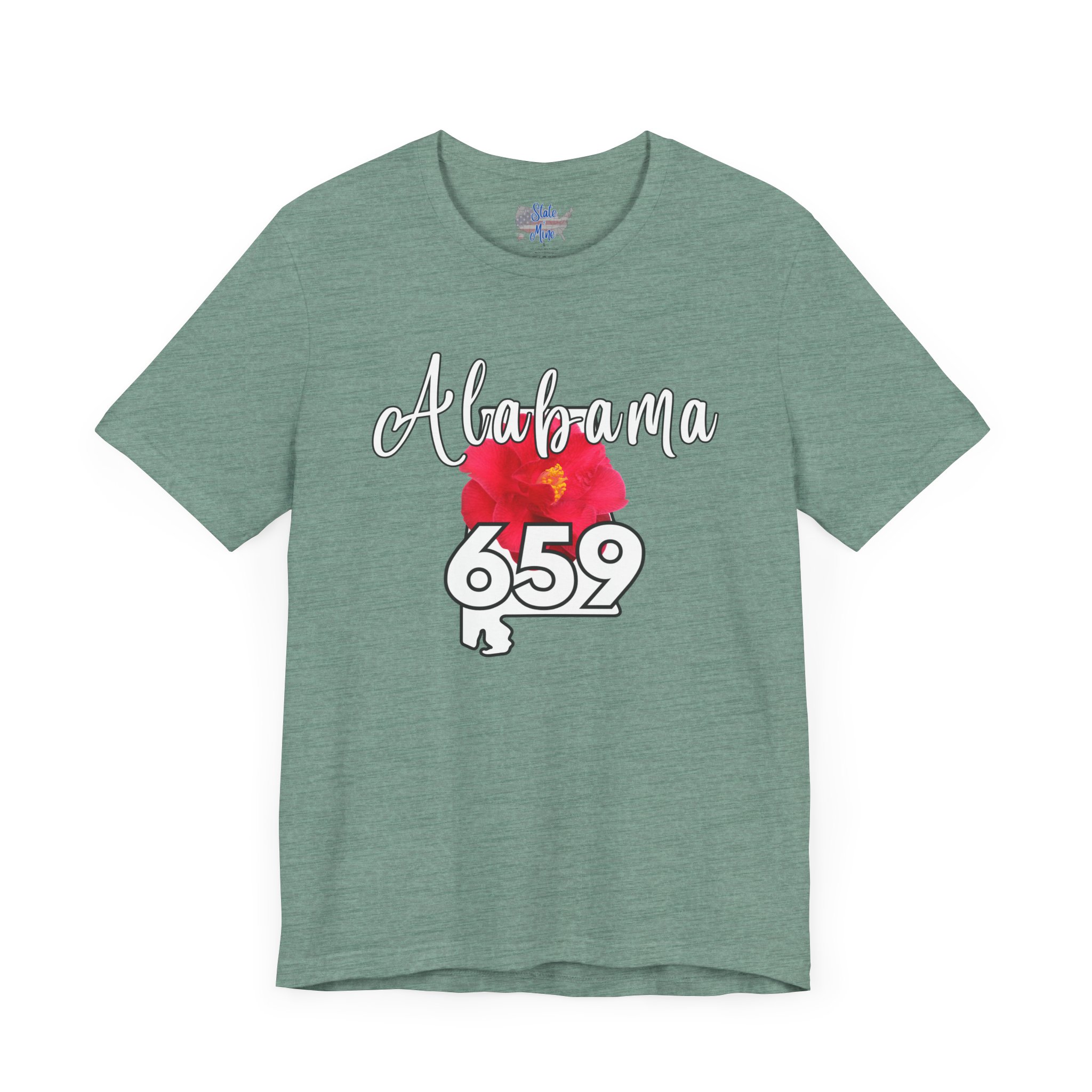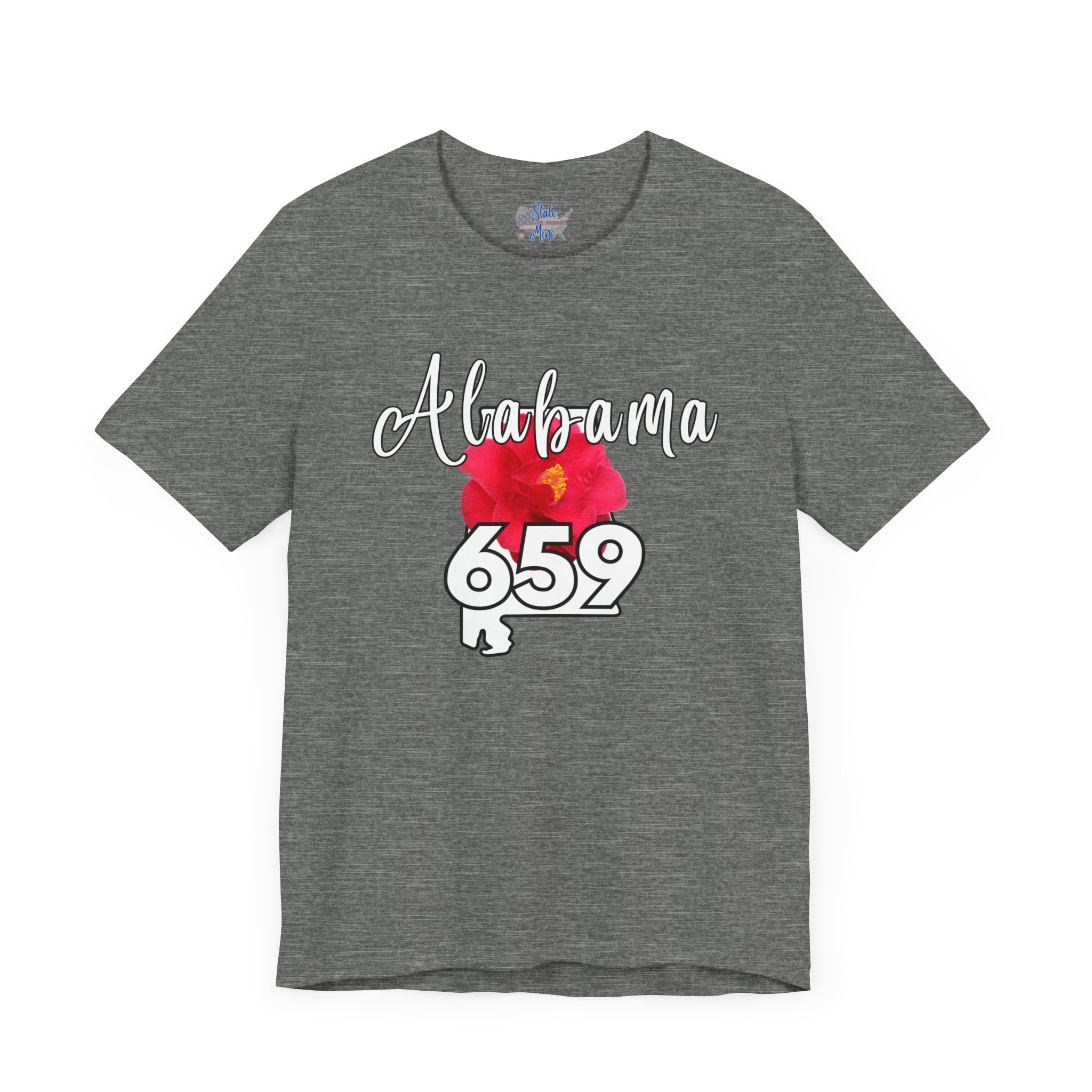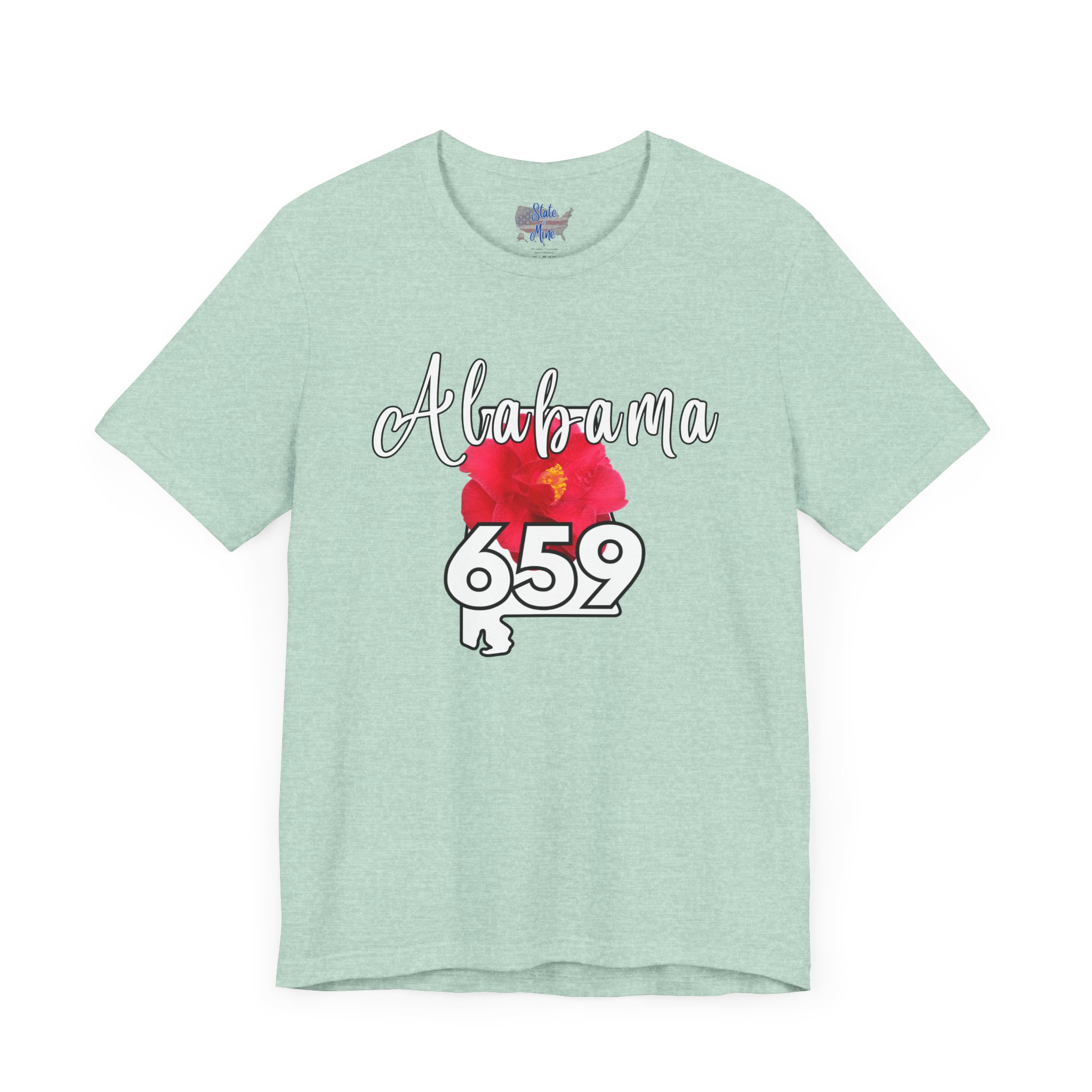 Alabama State Flower the Camellia 659 Area Code Tee by State of Mine, Casual Summer Wear, State Pride T-Shirt, Travel Souvenir, Gift for Him/Her, Festival Outfit, Outdoor Activities