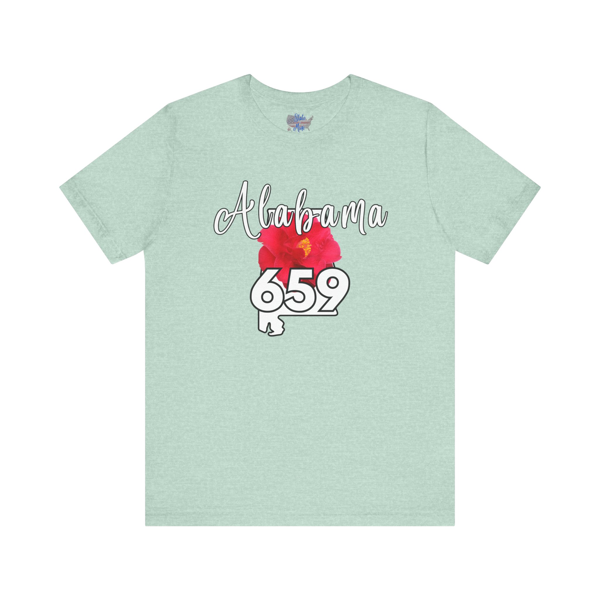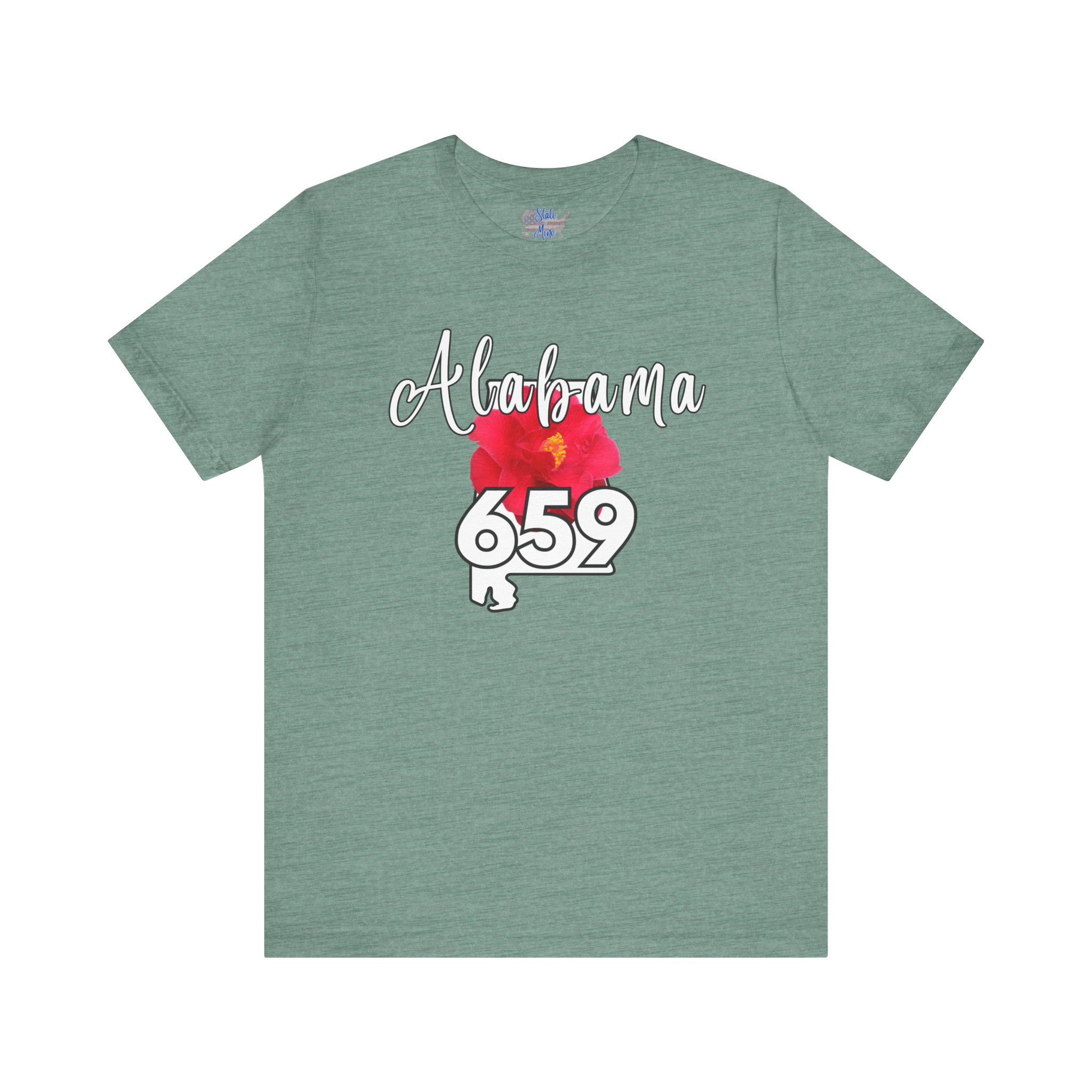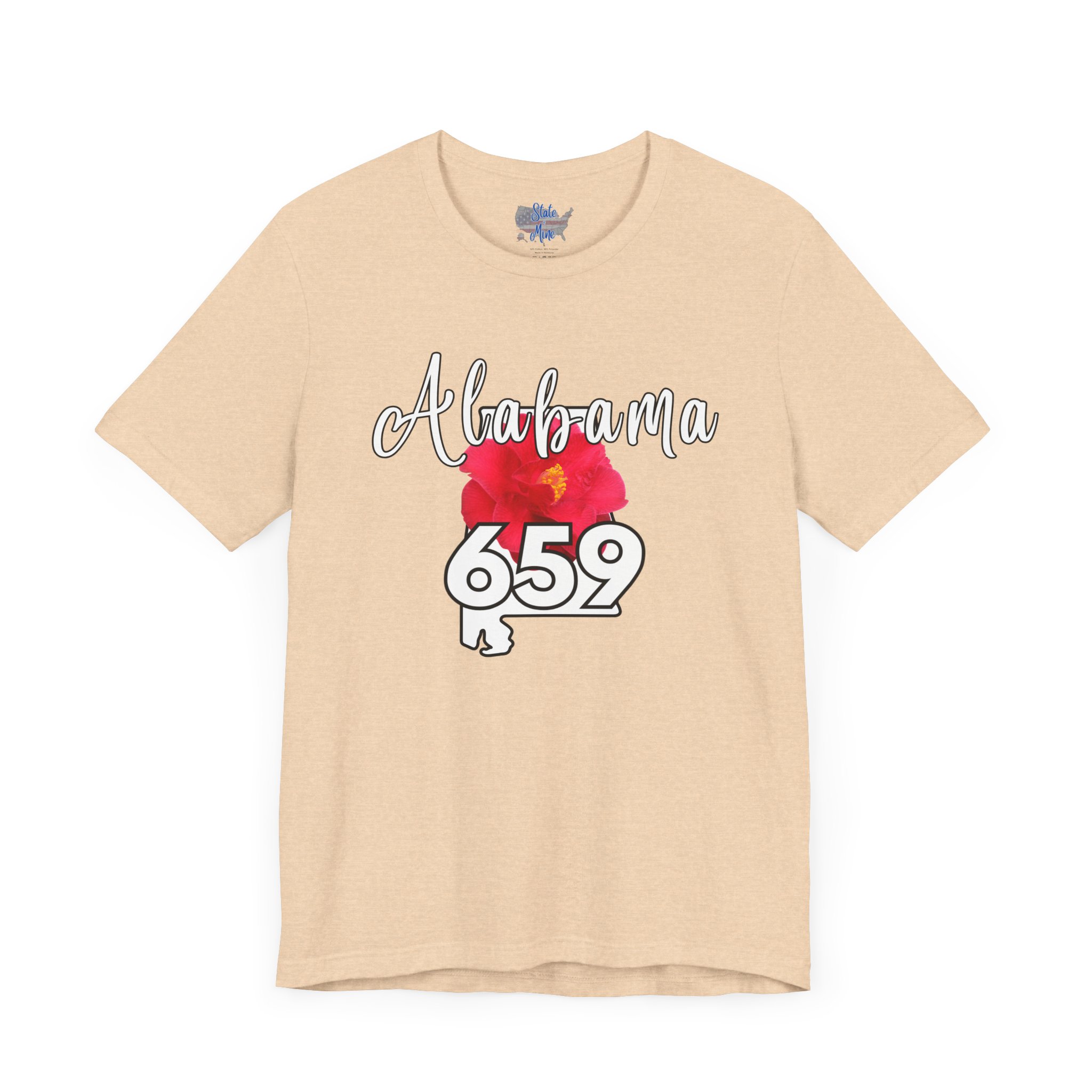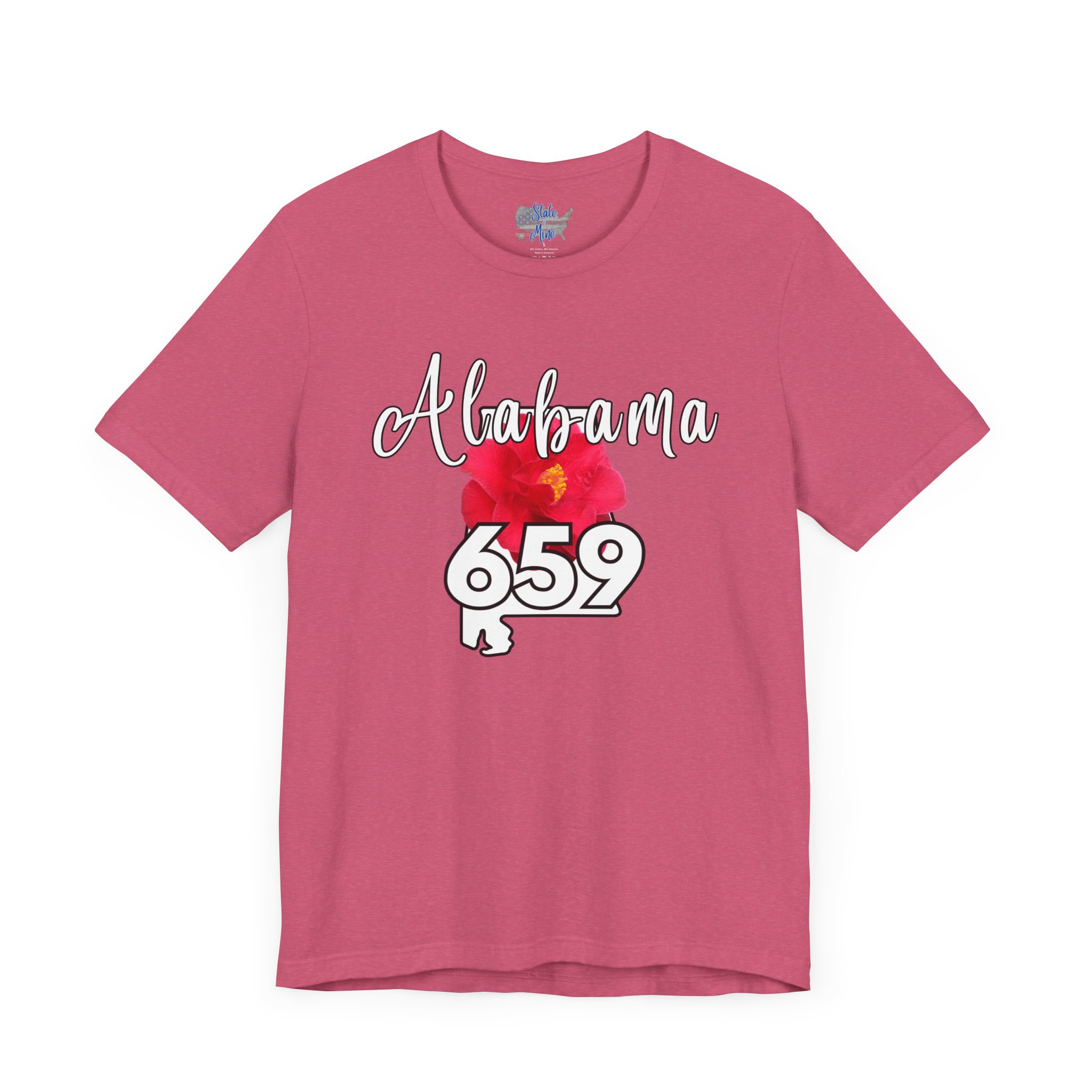 Alabama State Flower the Camellia 659 Area Code Tee by State of Mine, Casual Summer Wear, State Pride T-Shirt, Travel Souvenir, Gift for Him/Her, Festival Outfit, Outdoor Activities