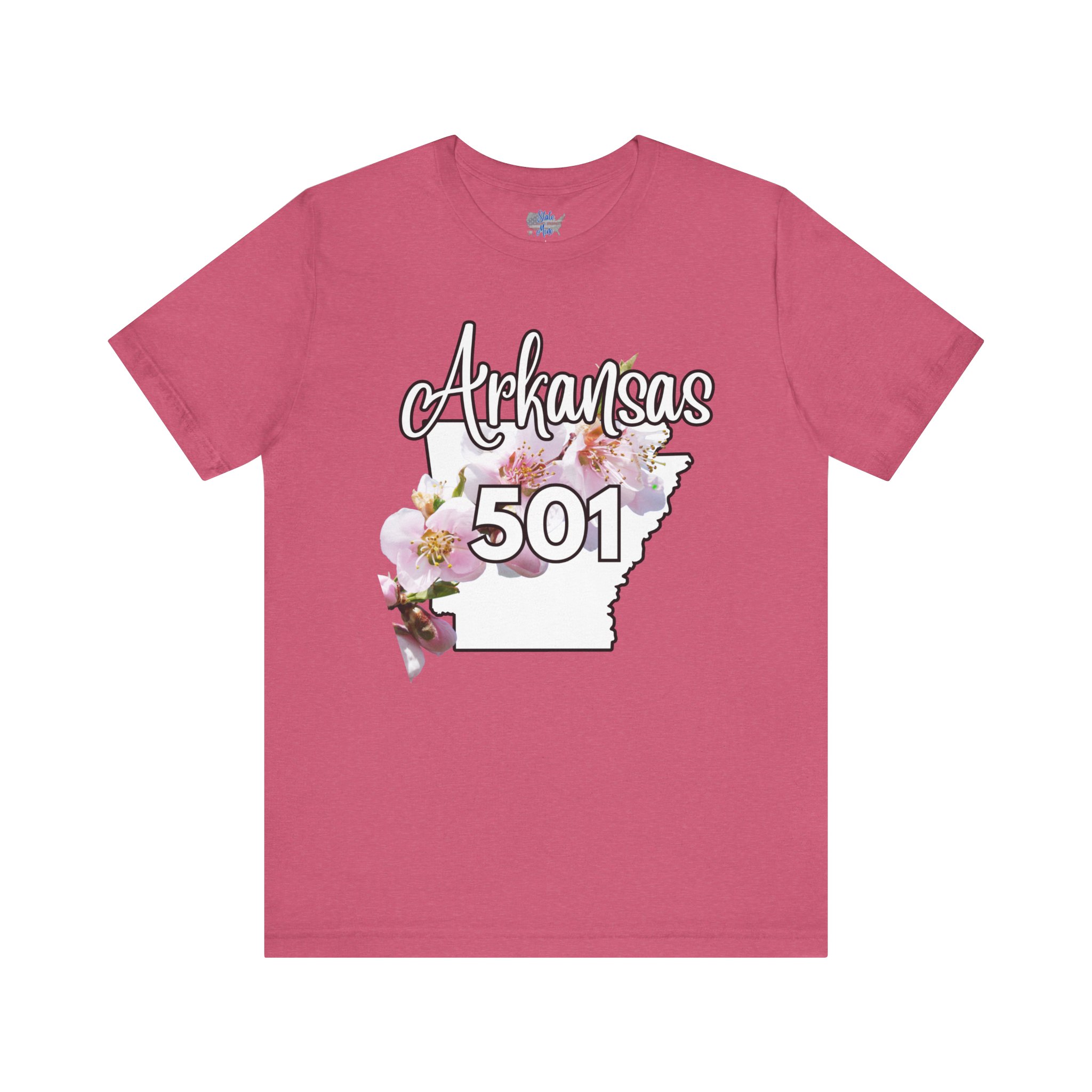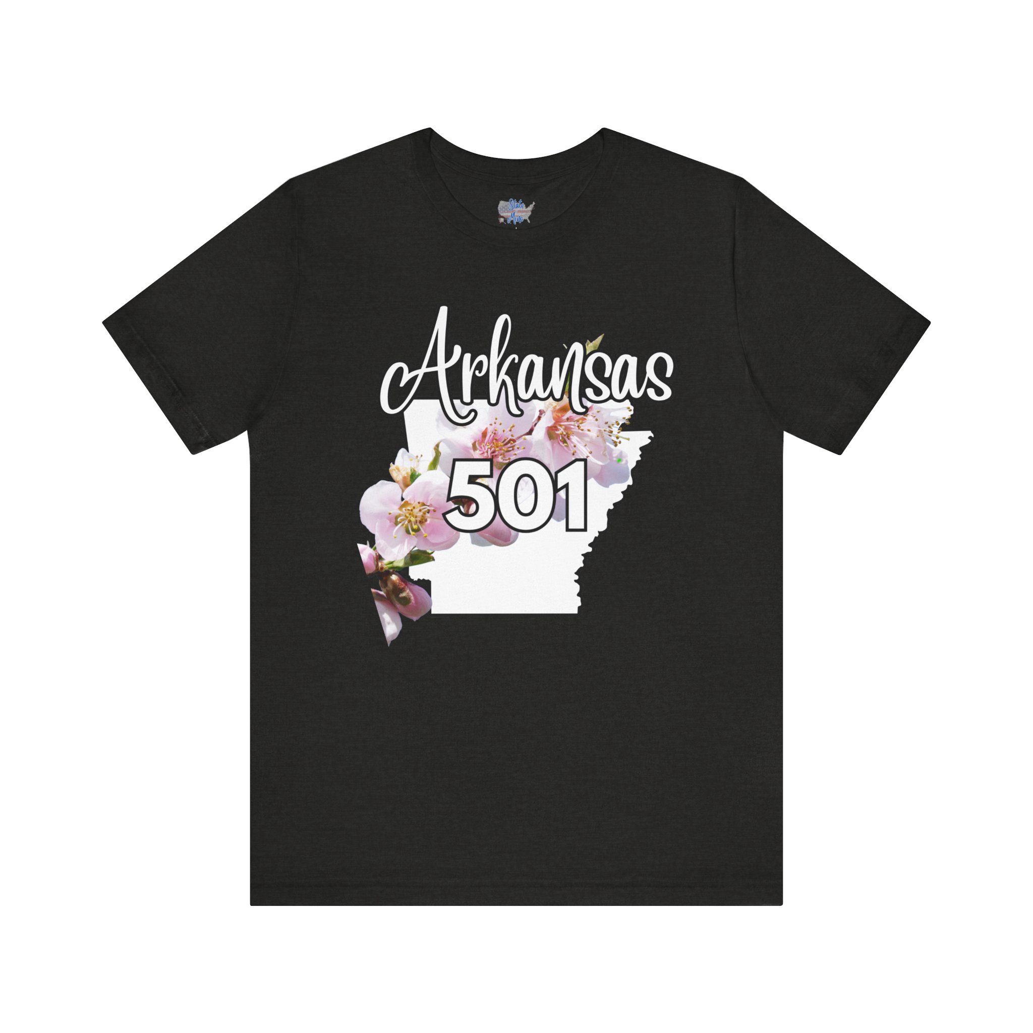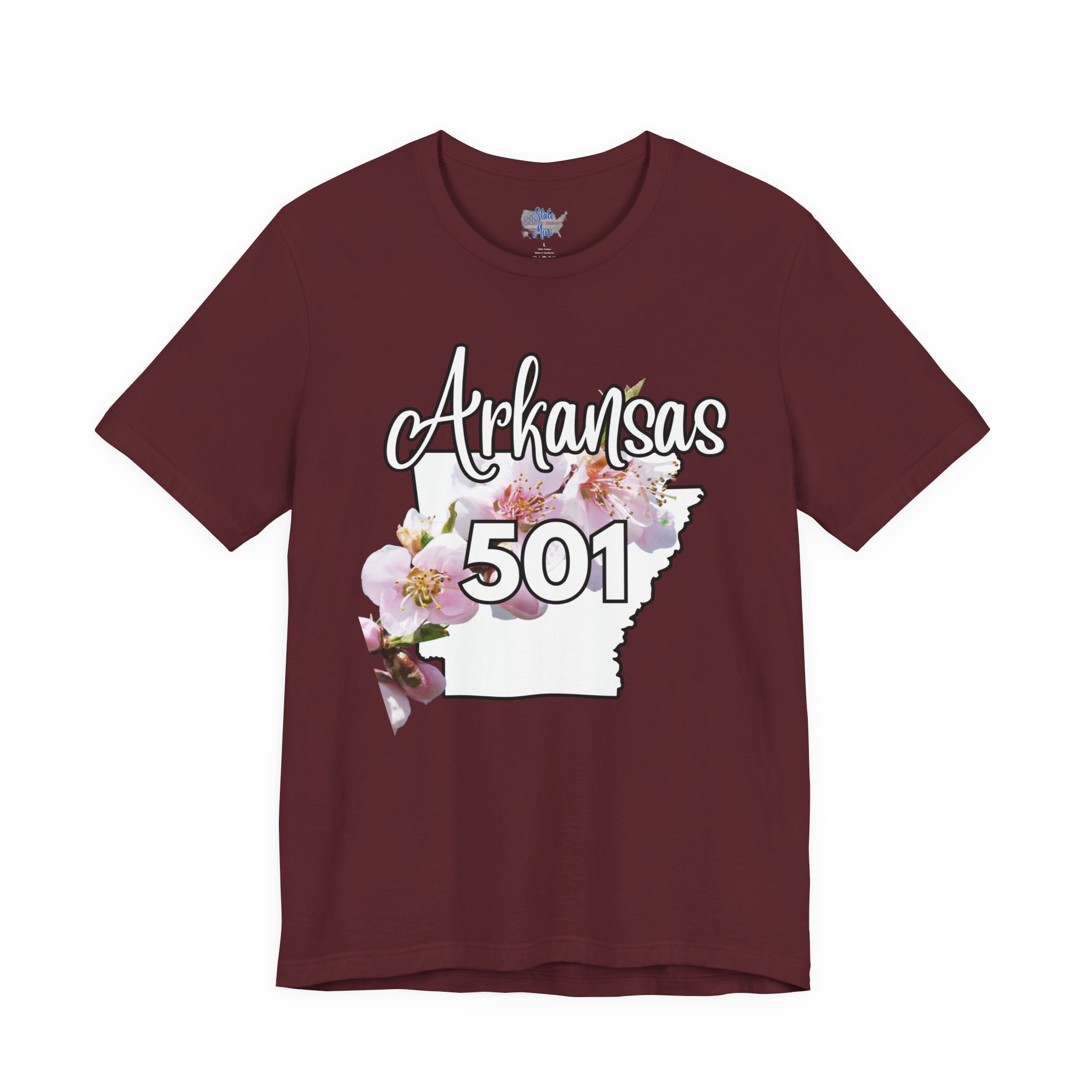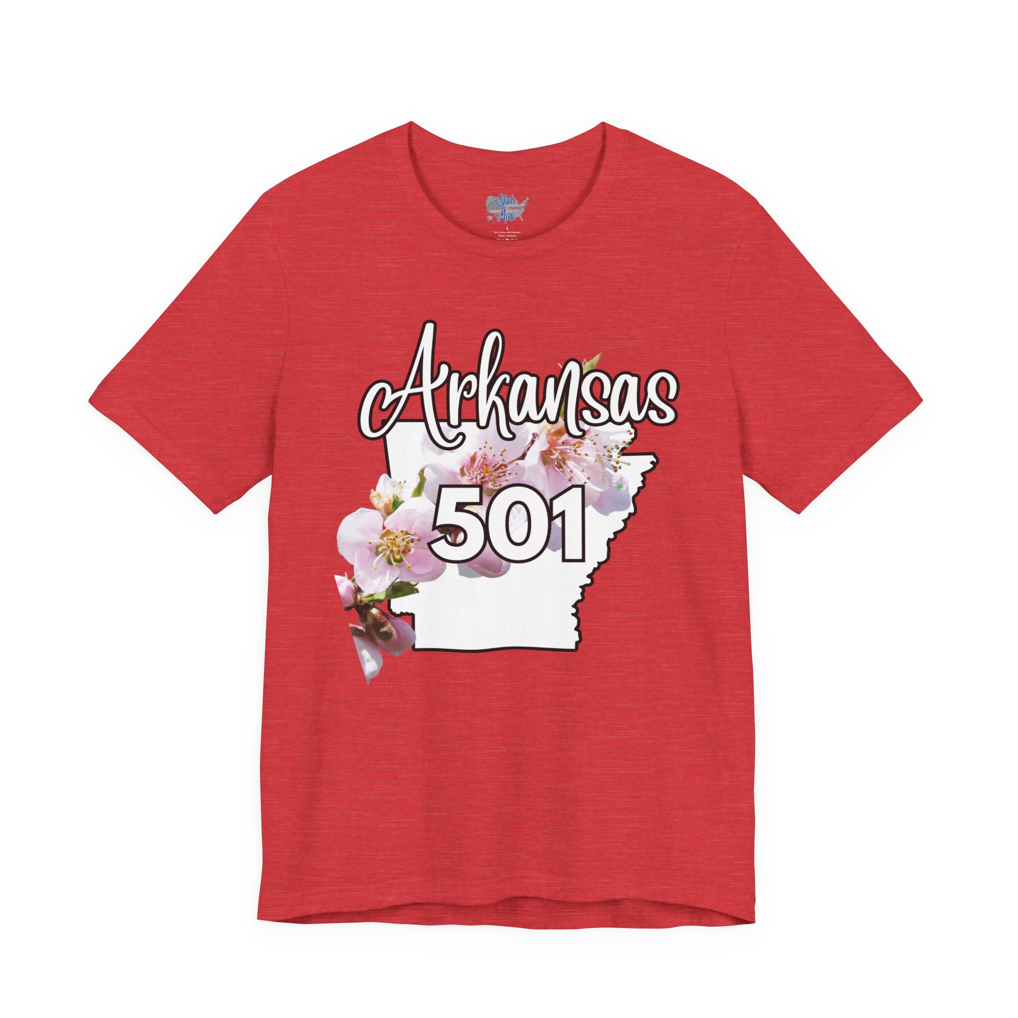 Arkansas State Flower The Apple Blossom 501 Area Code by State of Mine. Unisex Jersey Short Sleeve Tee – Cozy Everyday Wear, Casual Style, Summer Essentials, Gift for Friends, Graphic Tee