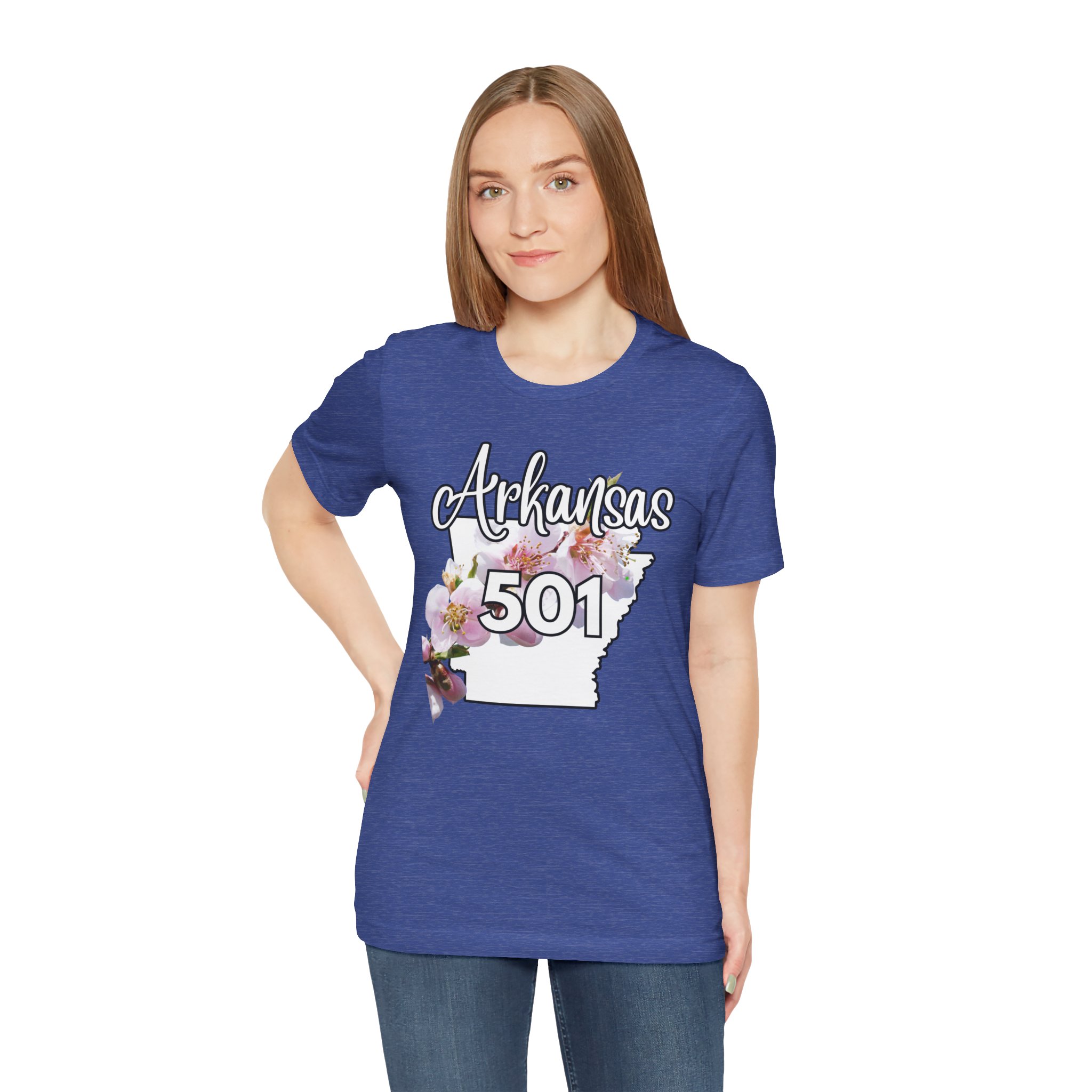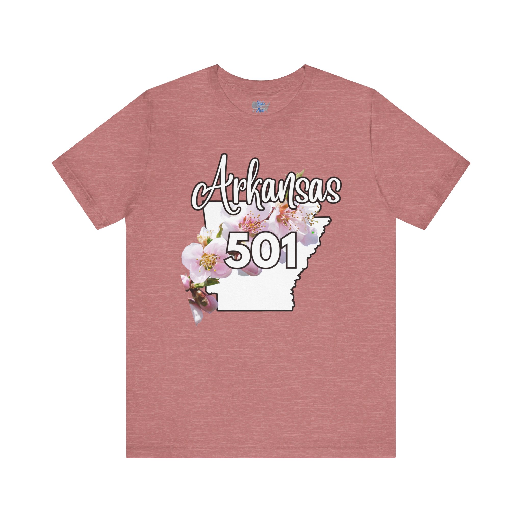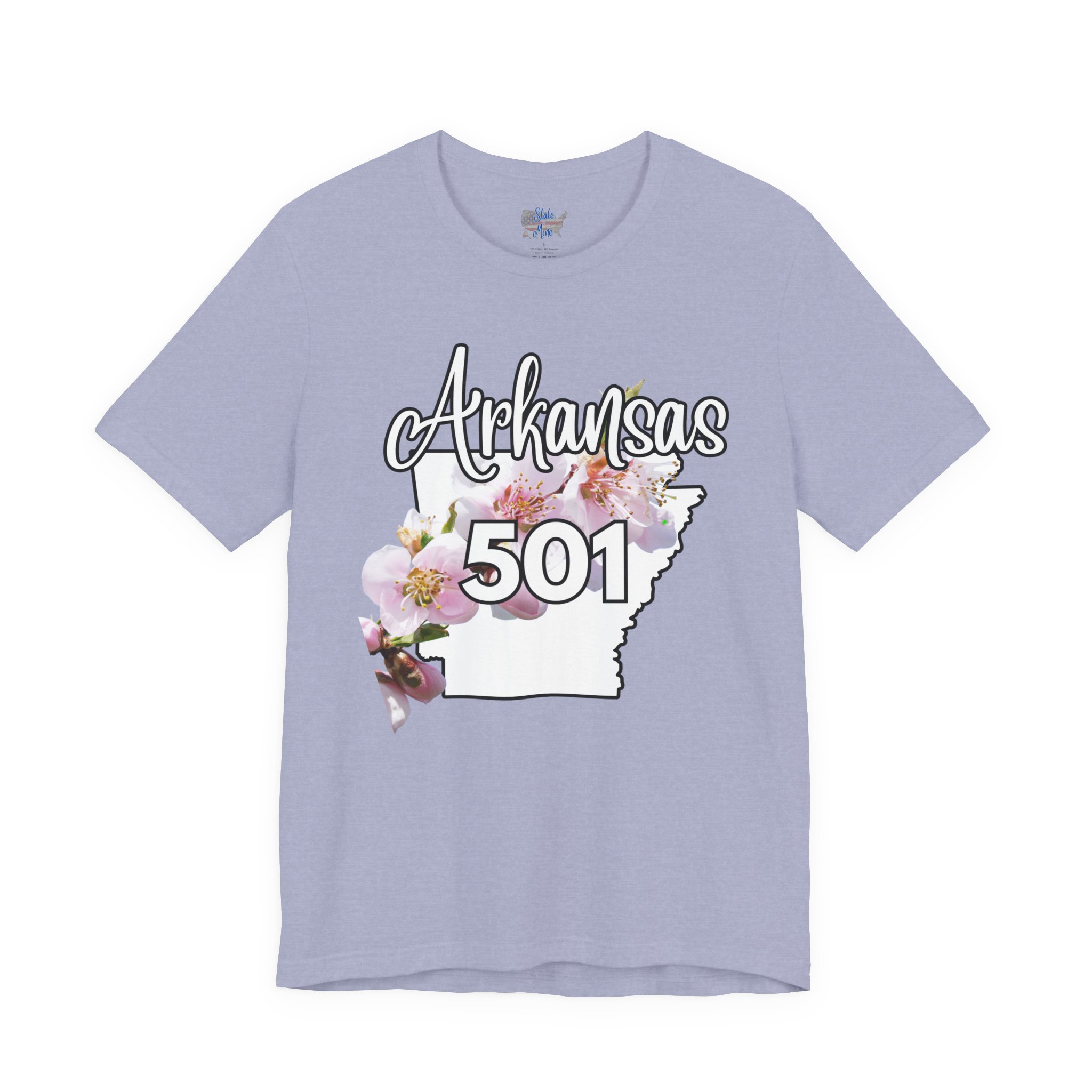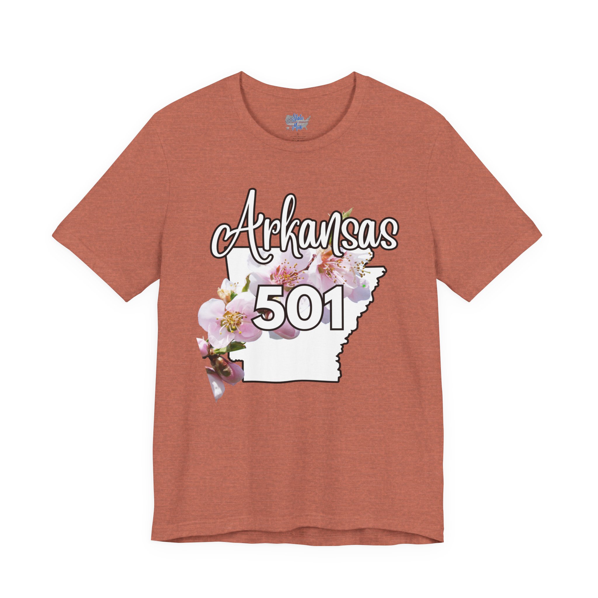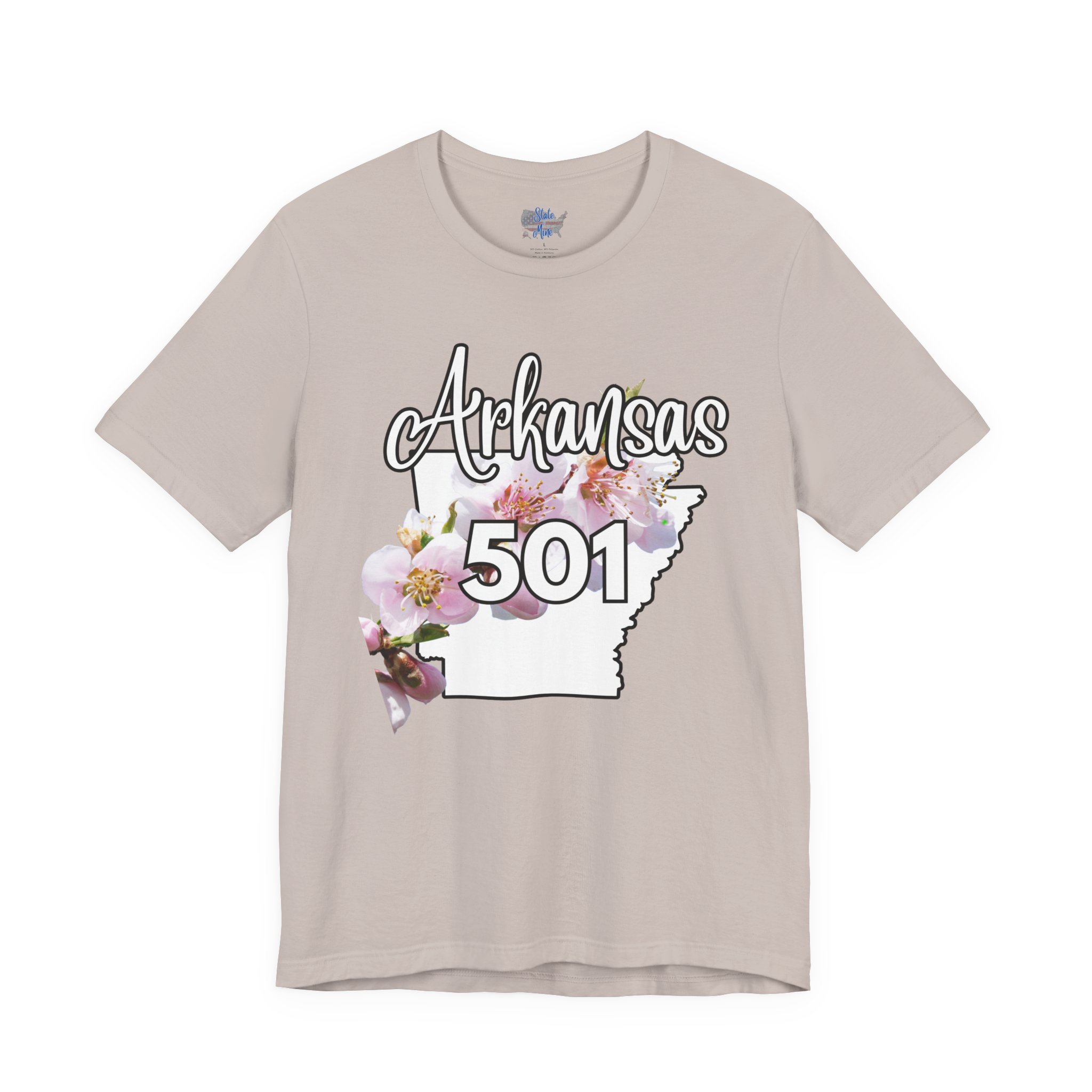 Arkansas State Flower The Apple Blossom 501 Area Code by State of Mine. Unisex Jersey Short Sleeve Tee – Cozy Everyday Wear, Casual Style, Summer Essentials, Gift for Friends, Graphic Tee