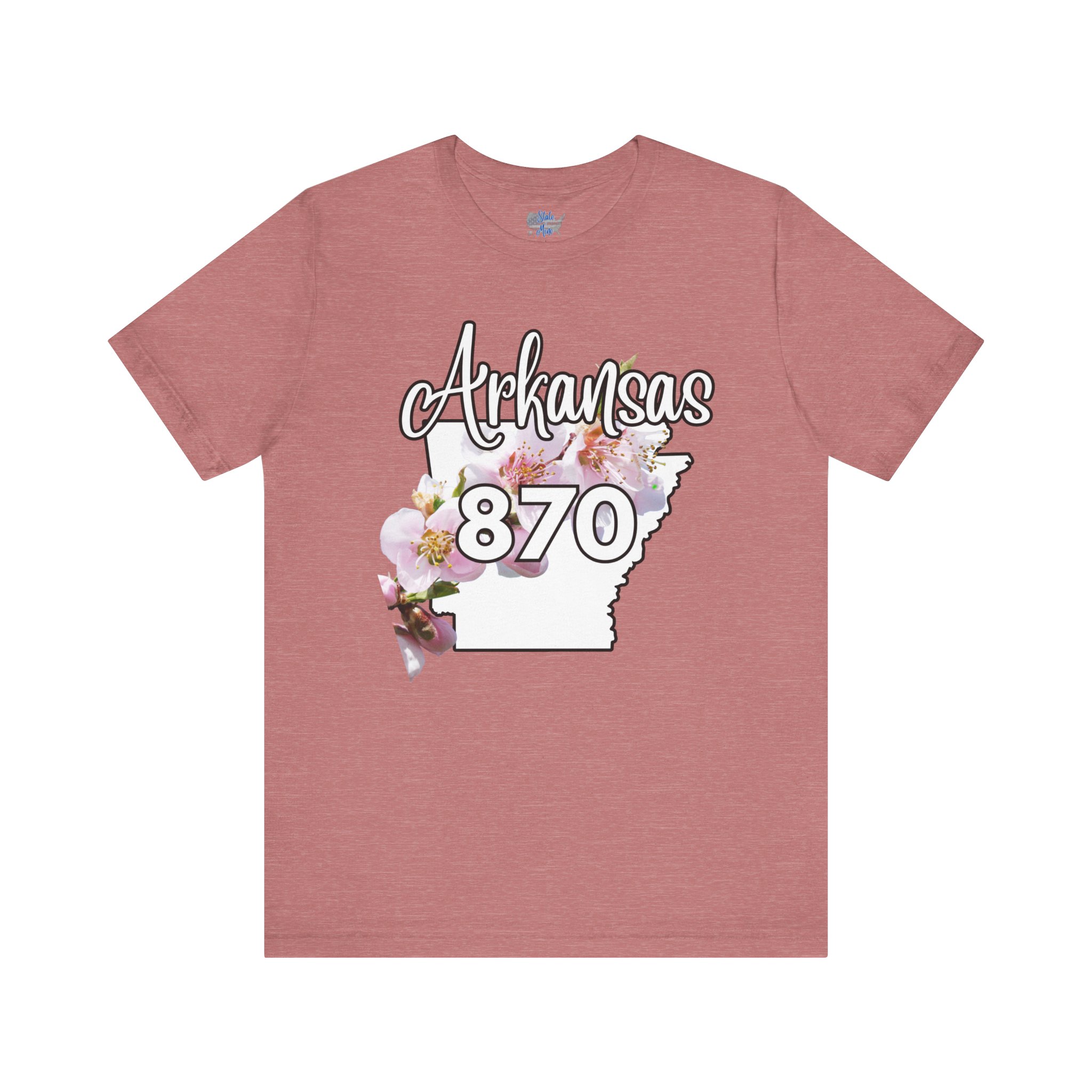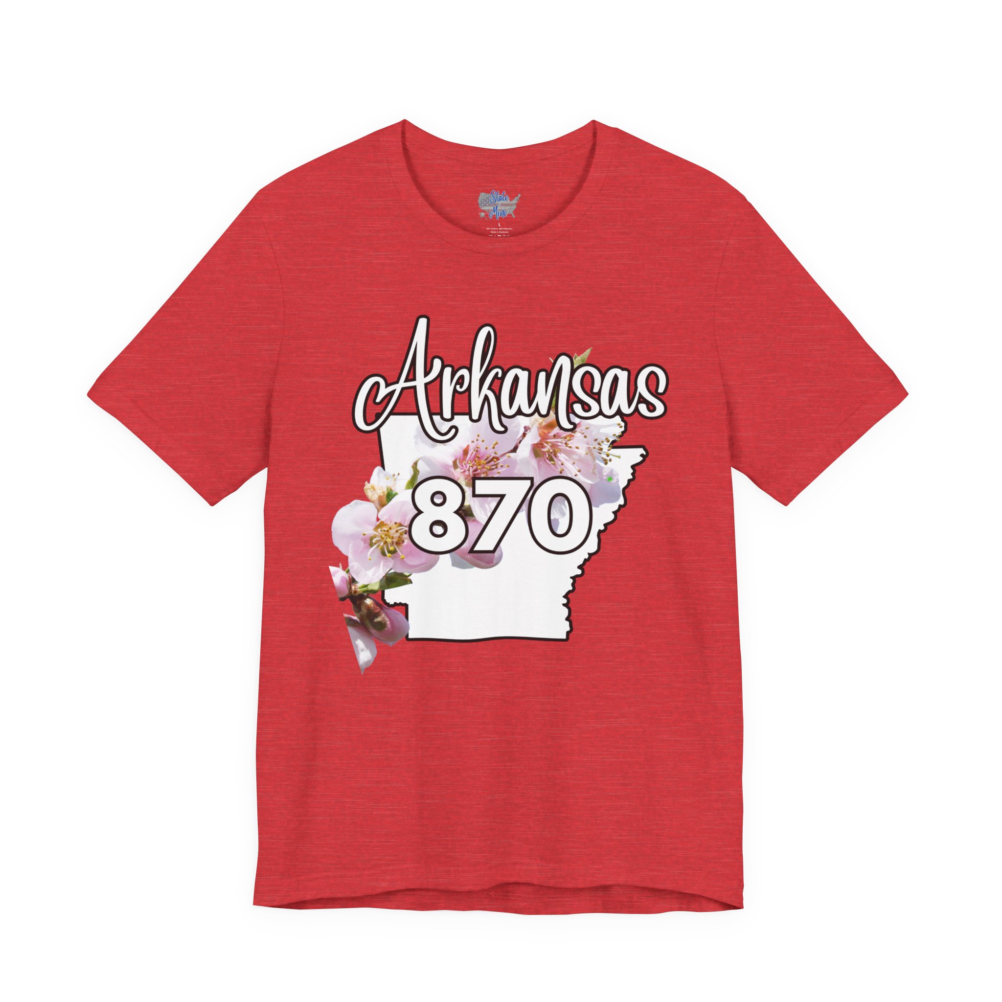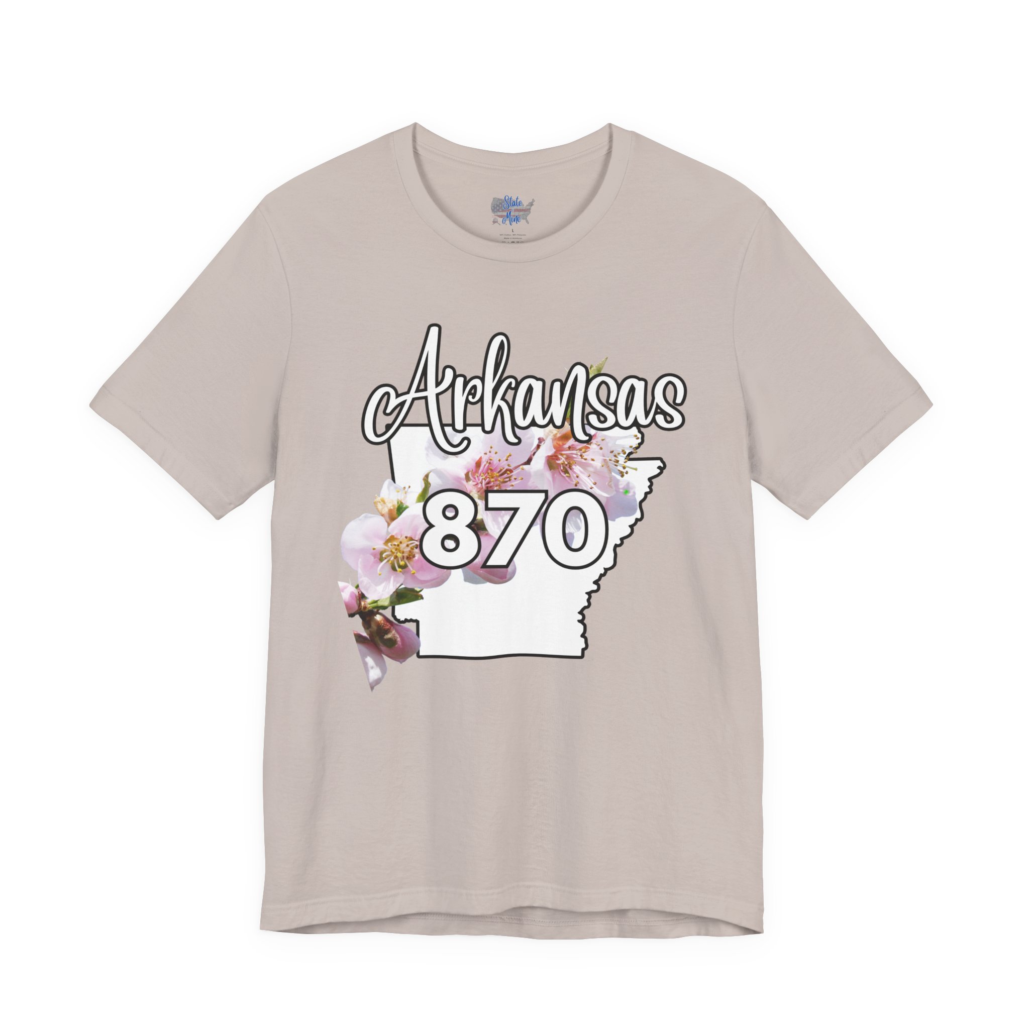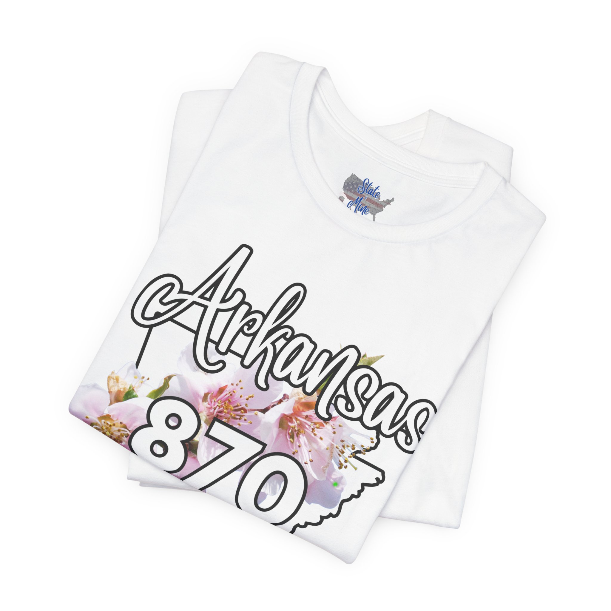 Arkansas State Flower The Apple Blossom 870 Area Code by State of Mine. Unisex Jersey Short Sleeve Tee – Cozy Everyday Wear, Casual Style, Summer Essentials, Gift for Friends, Graphic Tee