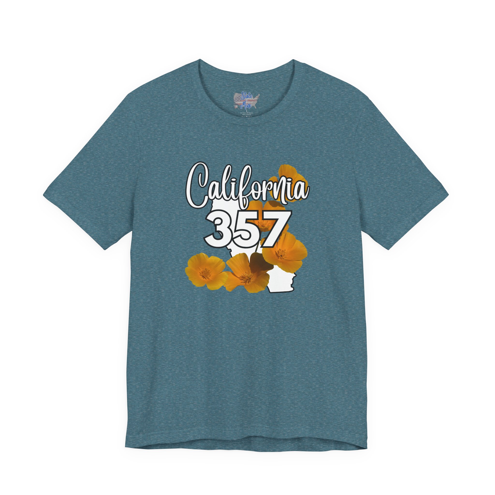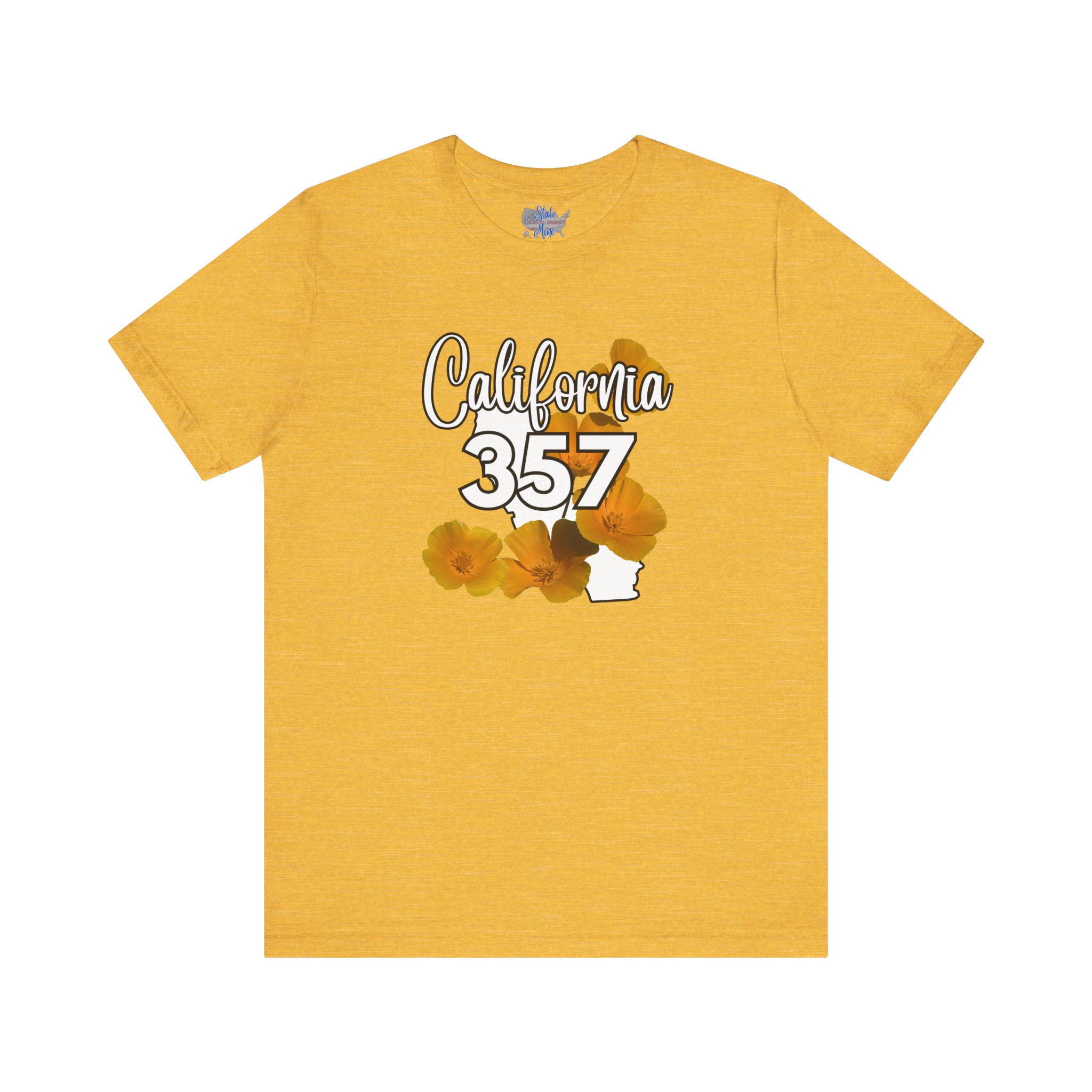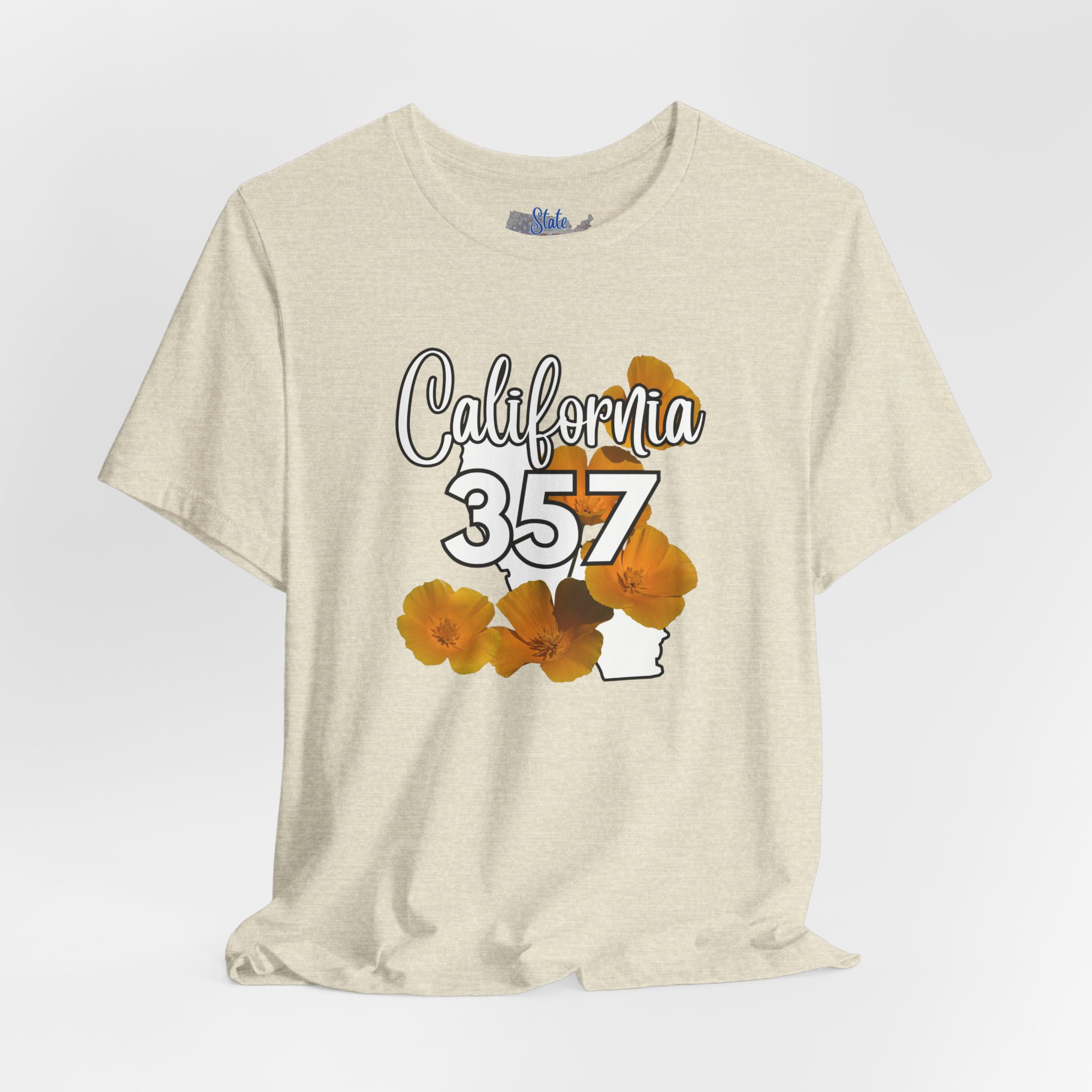 This California State Flower California Poppy 357 Area Code T-Shirt embodies a sunny and laid-back California vibe. Perfect for those who love the Golden State or want to show off their local pride. Ideal for casual wear, outdoor events, and summer celebrations.