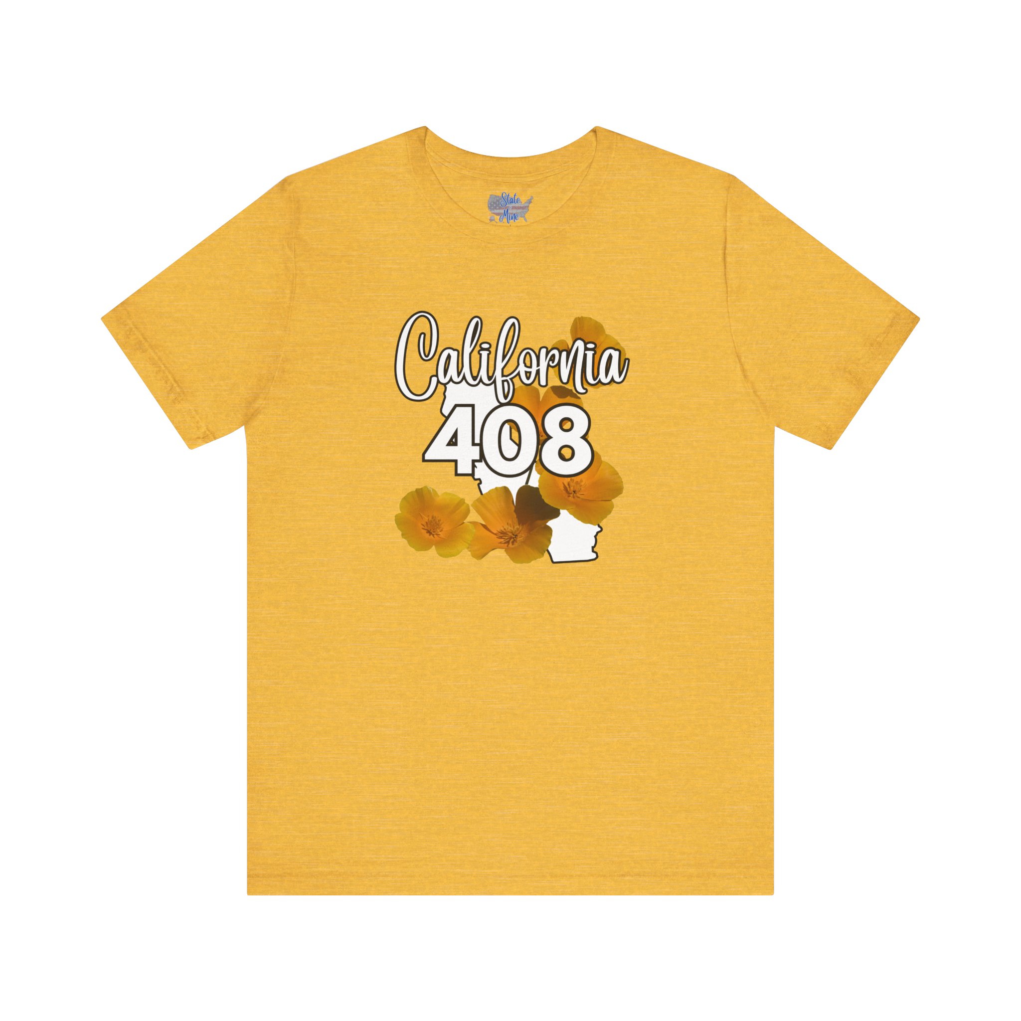 This California State Flower California Poppy 408 Area Code T-Shirt embodies a sunny and laid-back California vibe. Perfect for those who love the Golden State or want to show off their local pride. Ideal for casual wear, outdoor events, and summer celebrations.