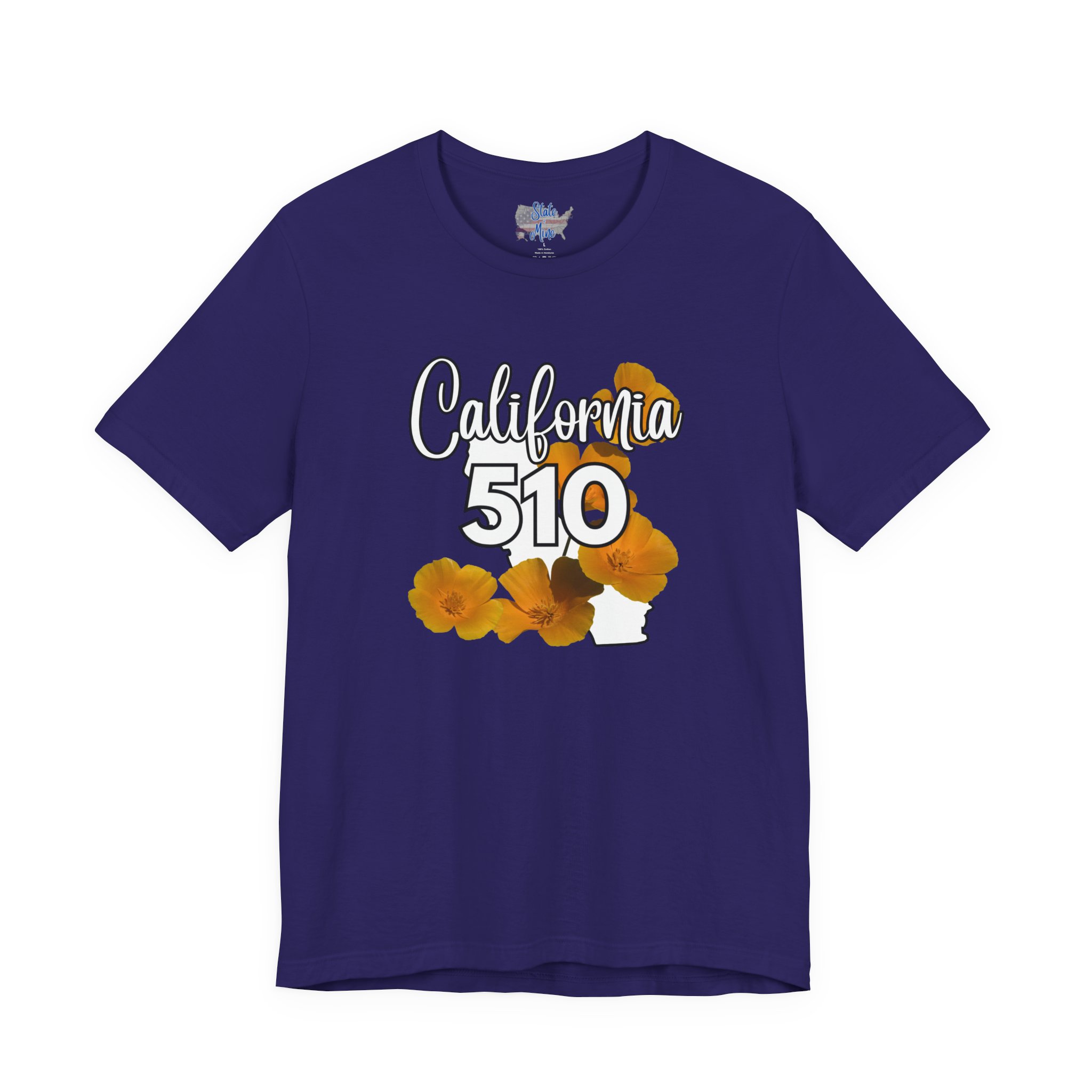 This California State Flower California Poppy 510 Area Code T-Shirt embodies a sunny and laid-back California vibe. Perfect for those who love the Golden State or want to show off their local pride. Ideal for casual wear, outdoor events, and summer celebrations.