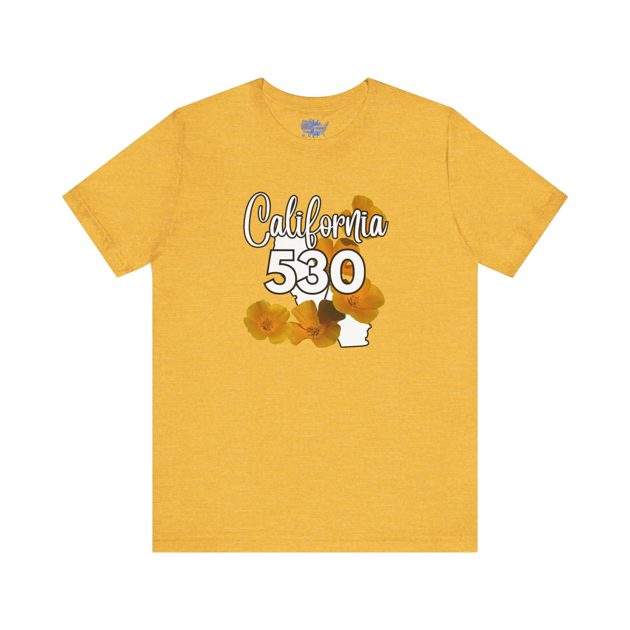 This California State Flower California Poppy 530 Area Code T-Shirt embodies a sunny and laid-back California vibe. Perfect for those who love the Golden State or want to show off their local pride. Ideal for casual wear, outdoor events, and summer celebrations.