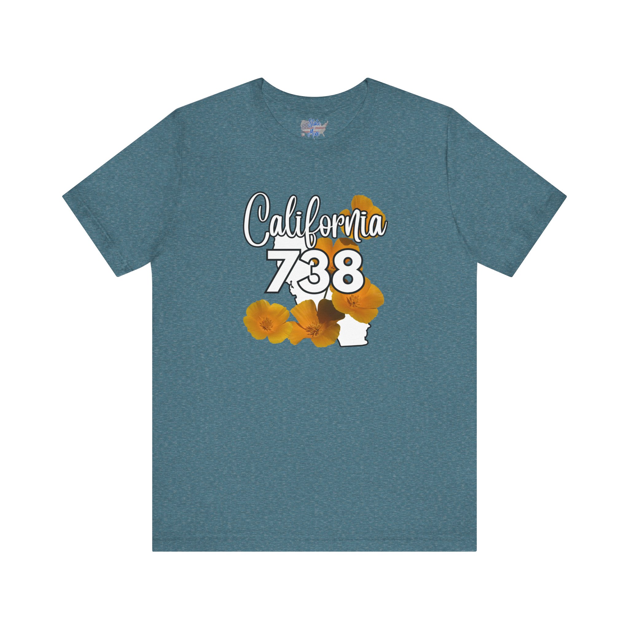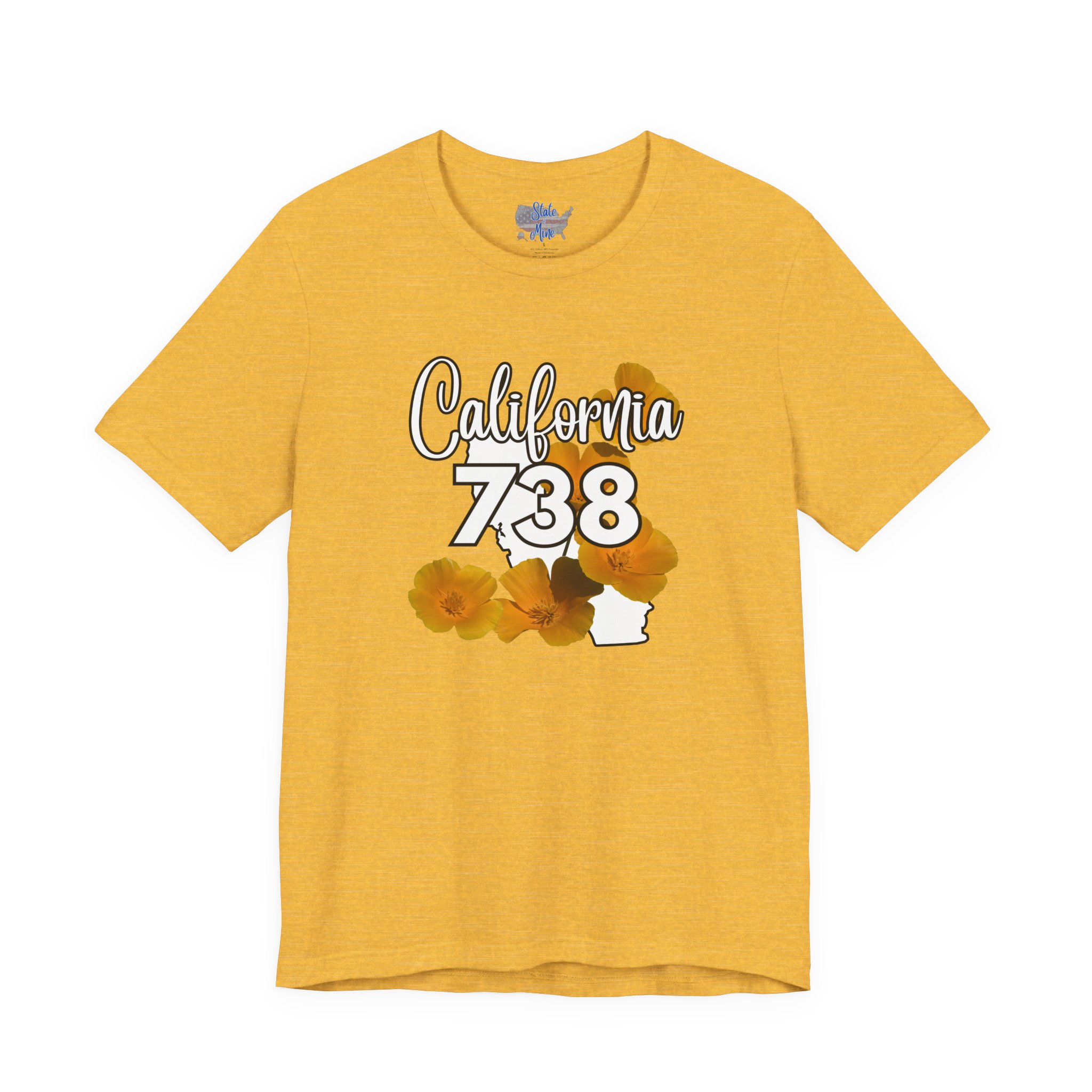 This California State Flower California Poppy 738 Area Code T-Shirt embodies a sunny and laid-back California vibe. Perfect for those who love the Golden State or want to show off their local pride. Ideal for casual wear, outdoor events, and summer celebrations.