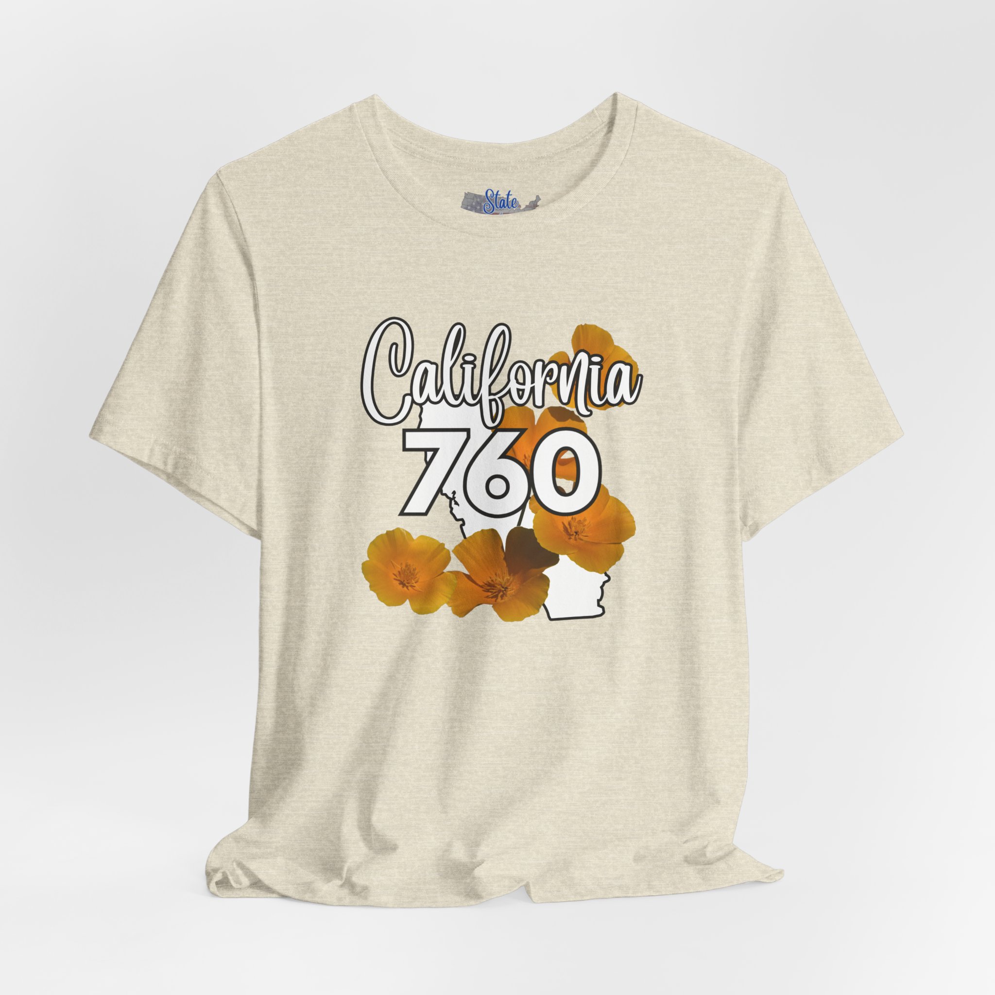 This California State Flower California Poppy 760 Area Code T-Shirt embodies a sunny and laid-back California vibe. Perfect for those who love the Golden State or want to show off their local pride. Ideal for casual wear, outdoor events, and summer celebrations.