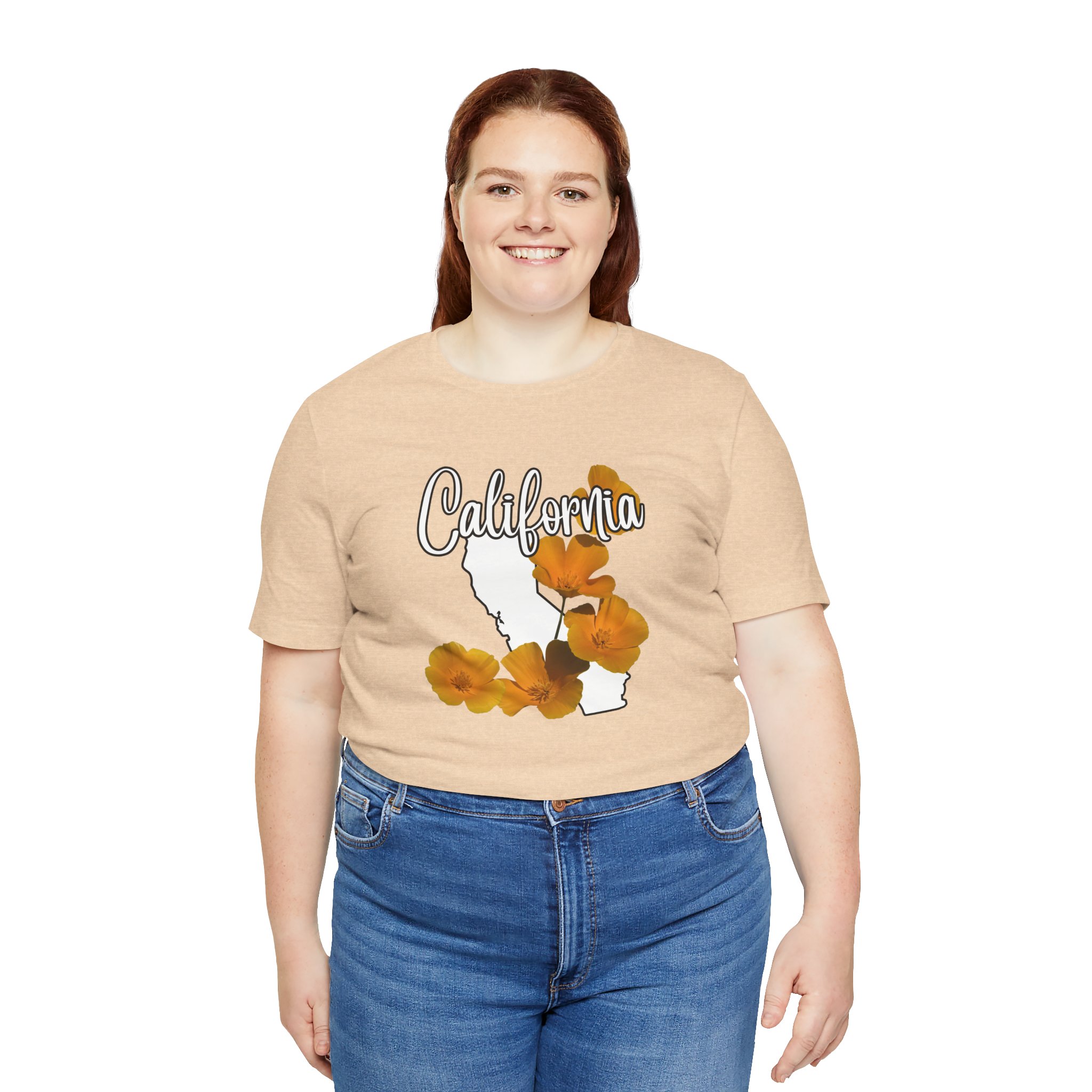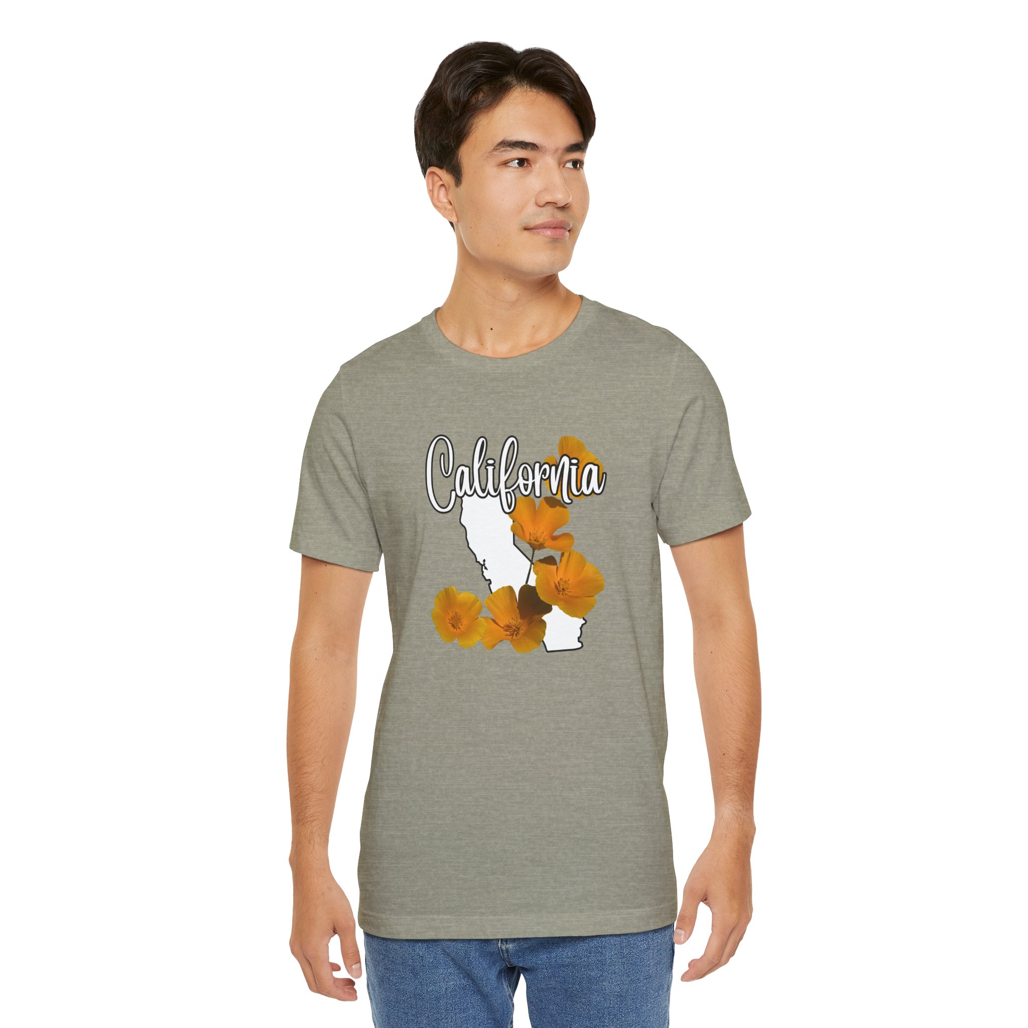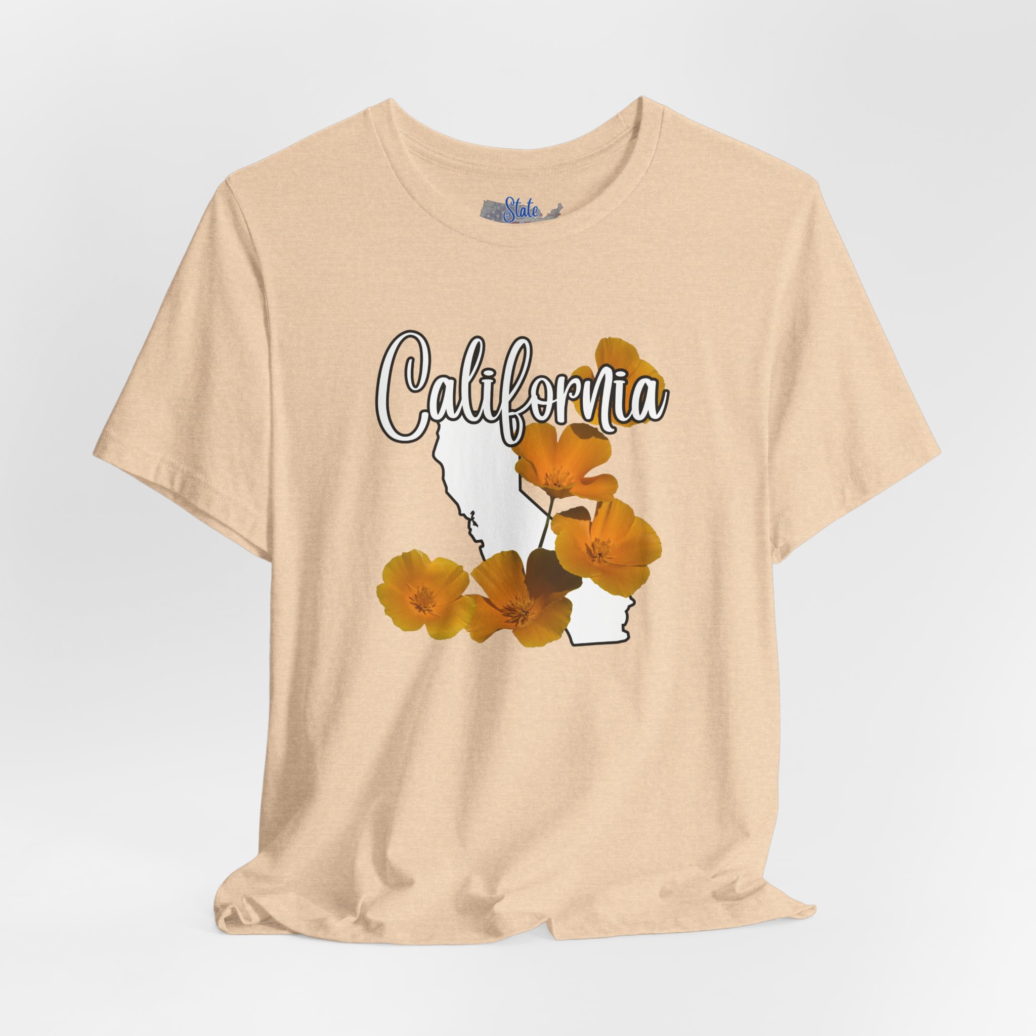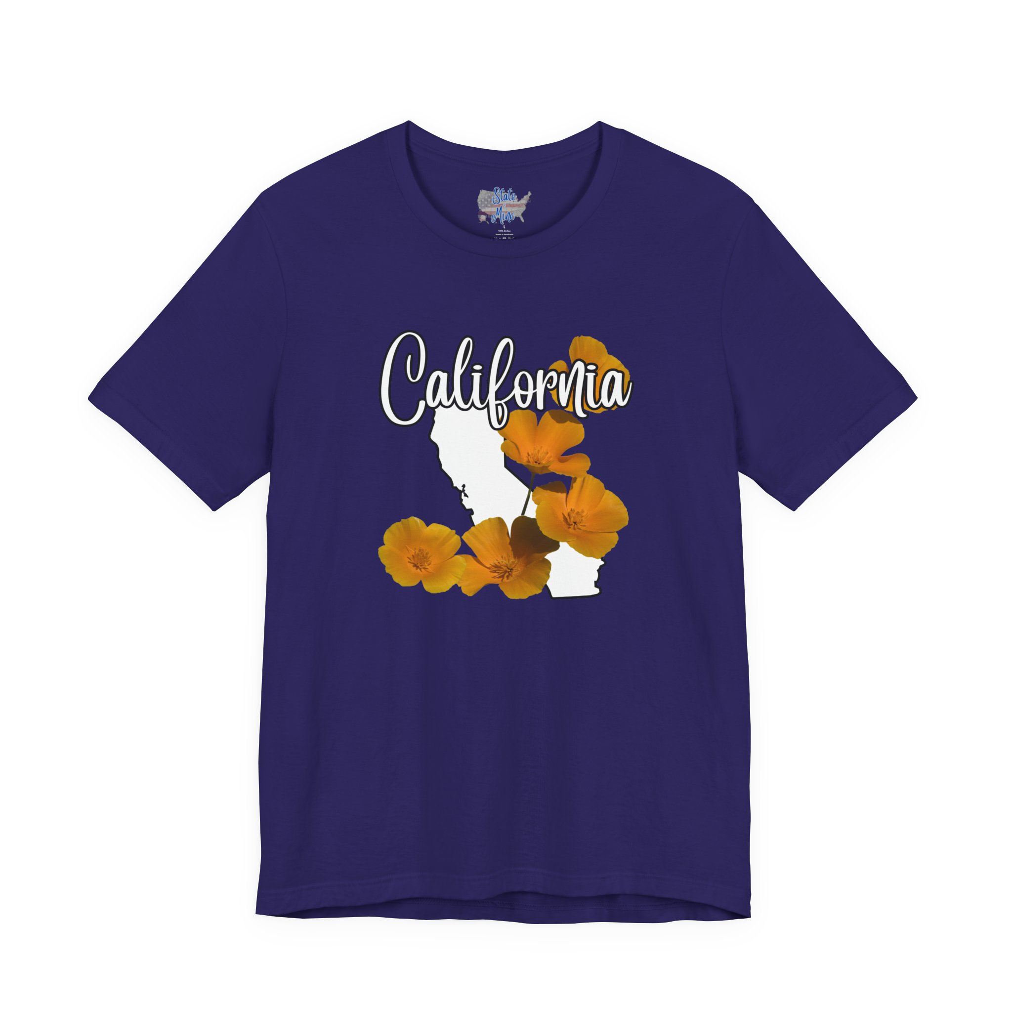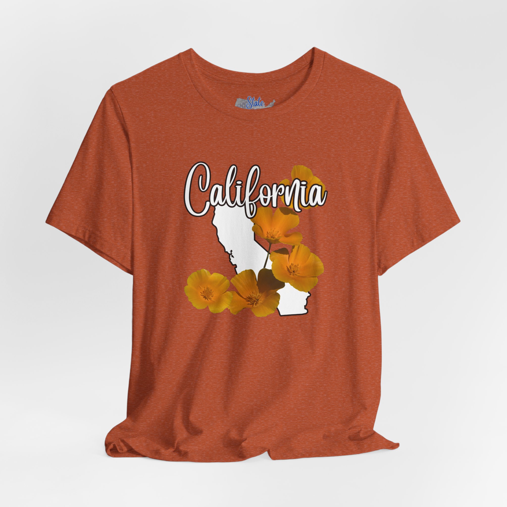 This California State Flower T-shirt featuring the California Poppy design exudes a casual and relaxed vibe, perfect for nature lovers and enthusiasts of the Golden State. It is ideal for everyday wear, outdoor activities, and as a souvenir of California. The unisex design makes it suitable for a wide range of buyers.