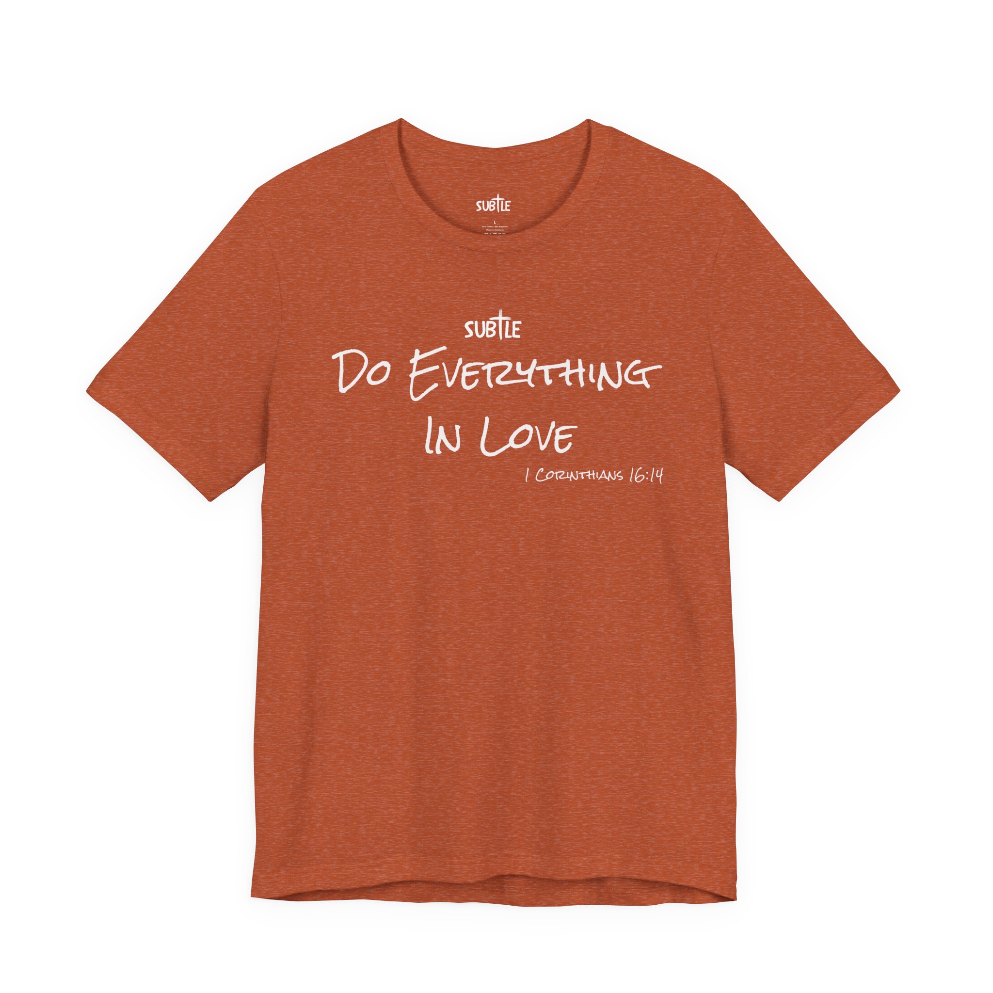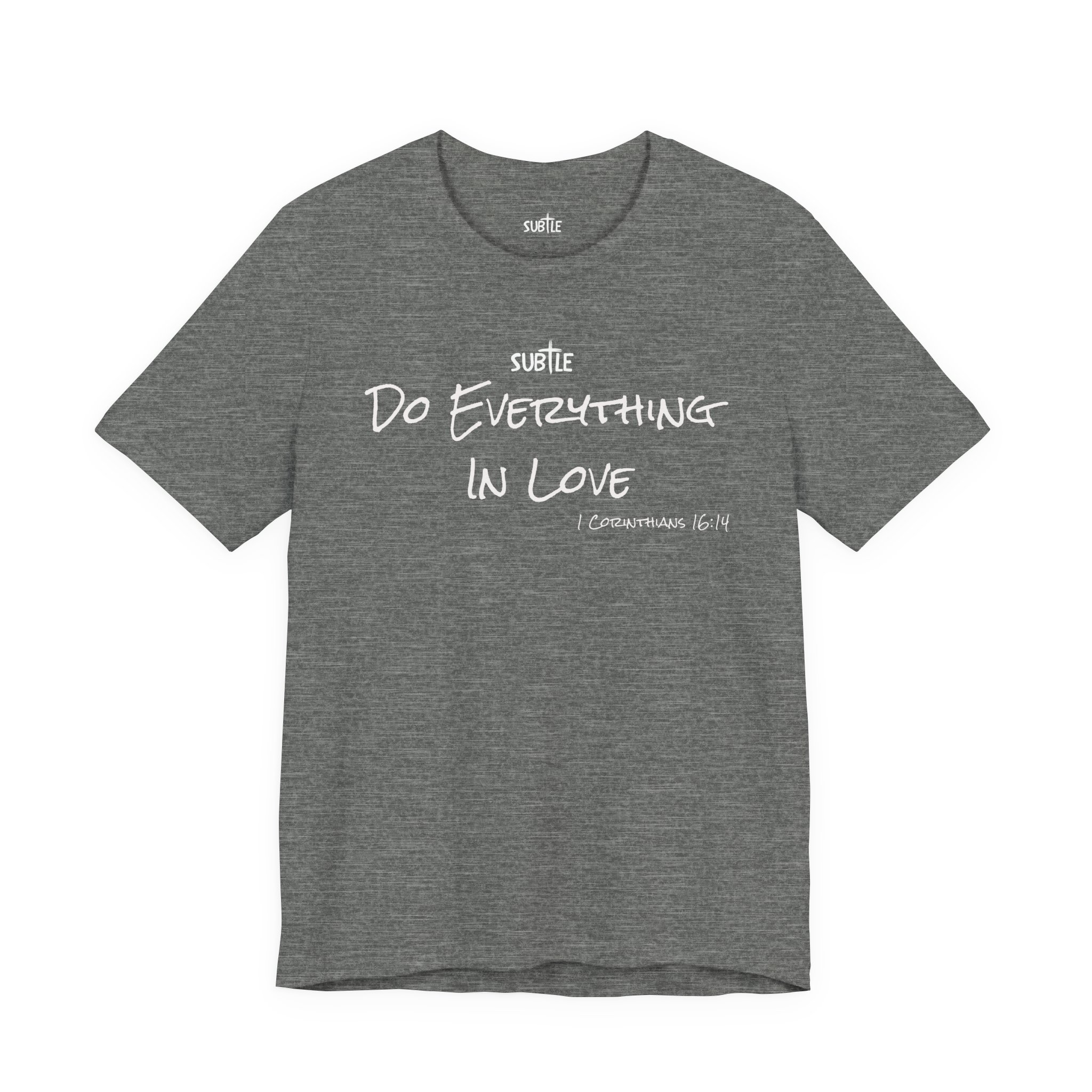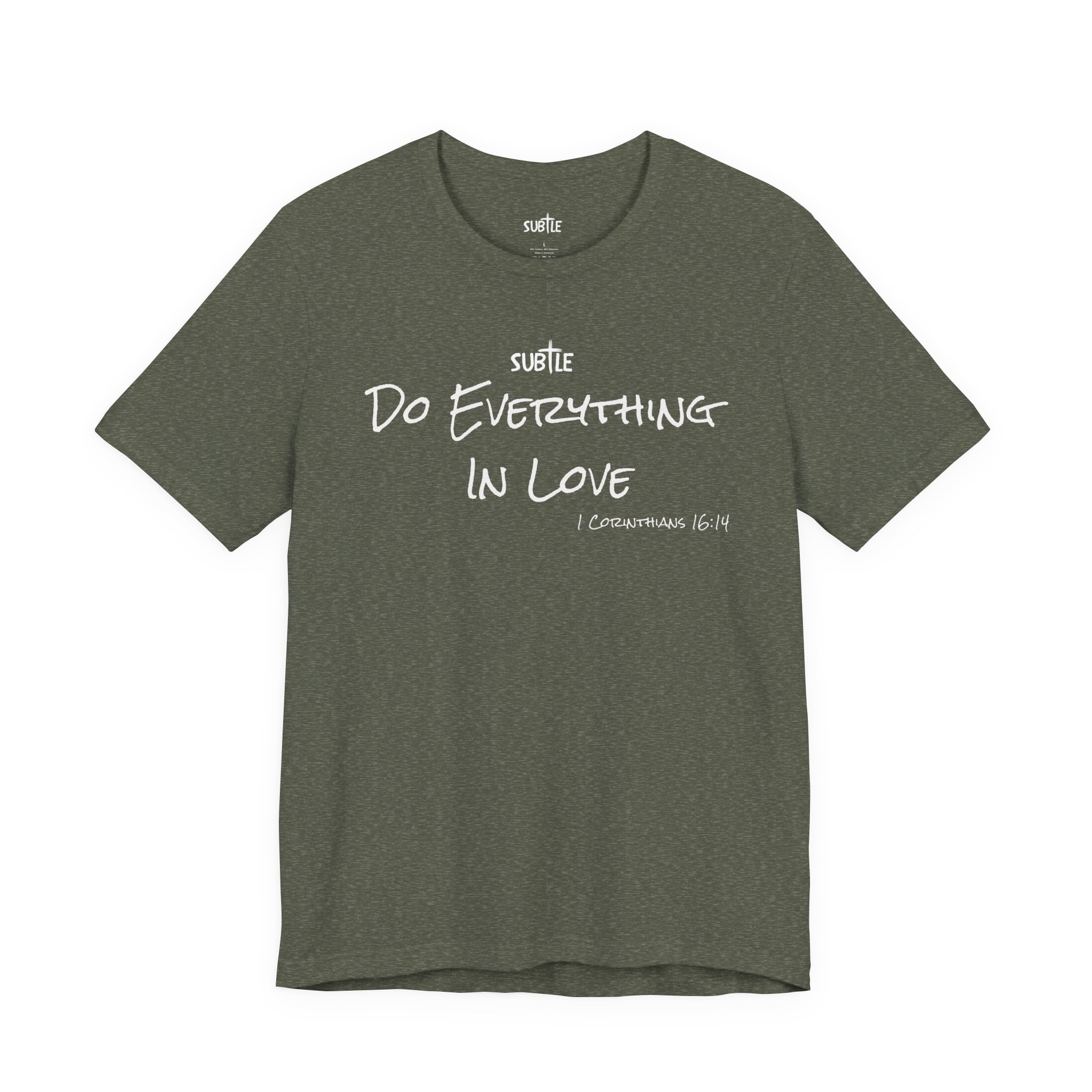 Everything in Love by Subtle Merch–Unisex Dark Colored Heavy Cotton T-Shirt, Faith-Based and Inspirational, 1 Corinthians 6:14