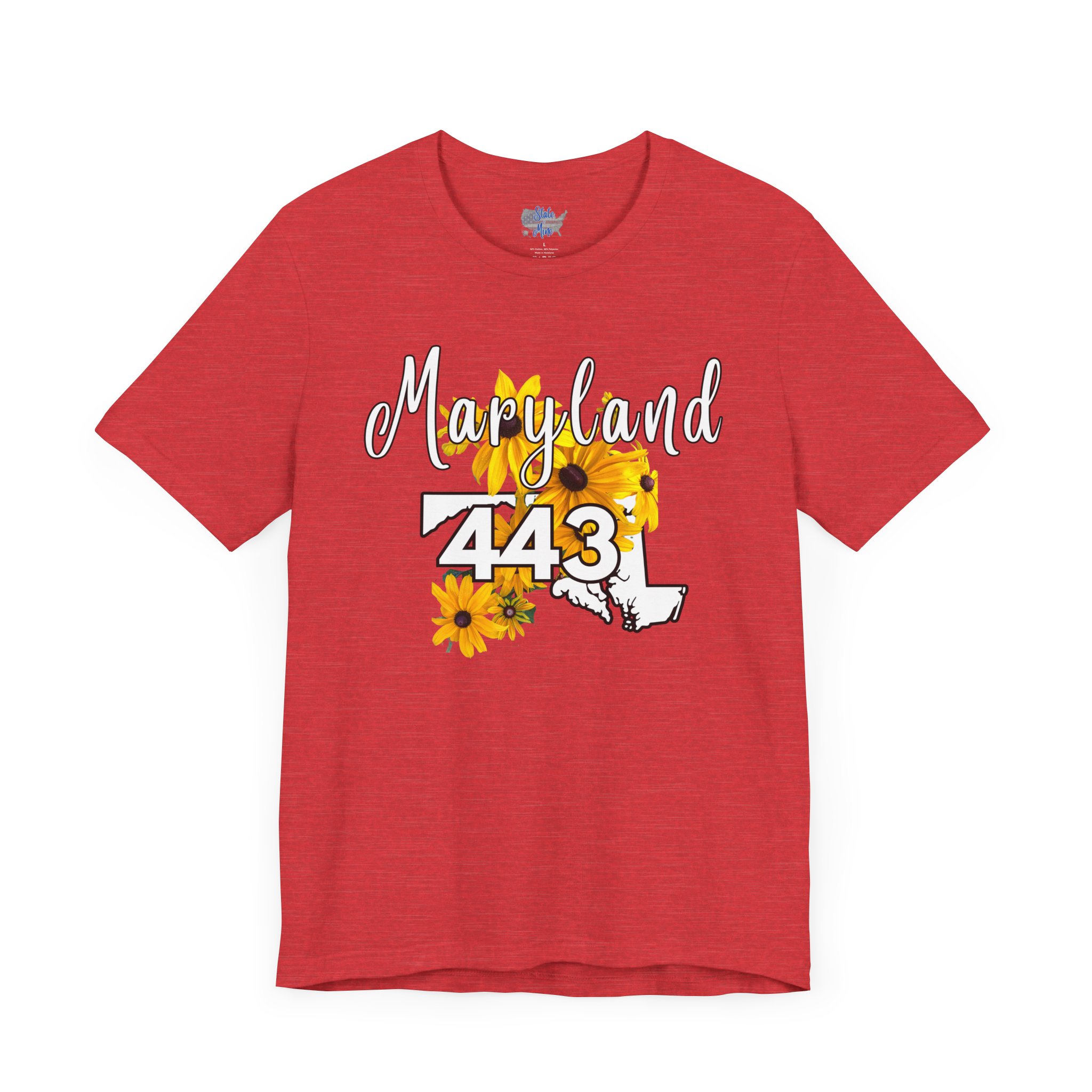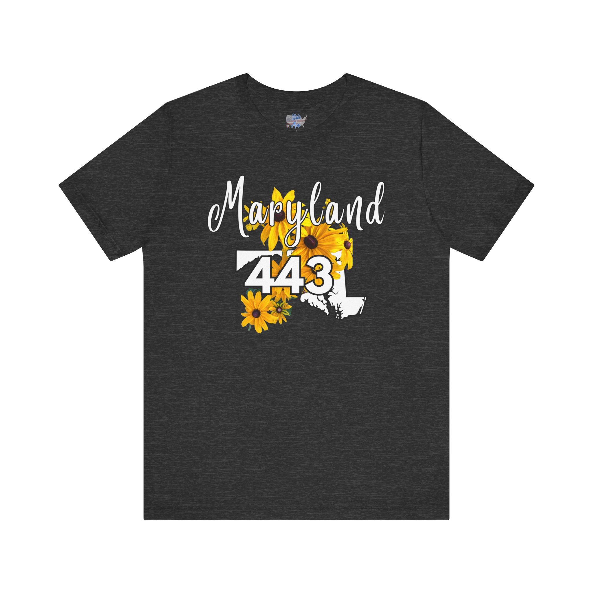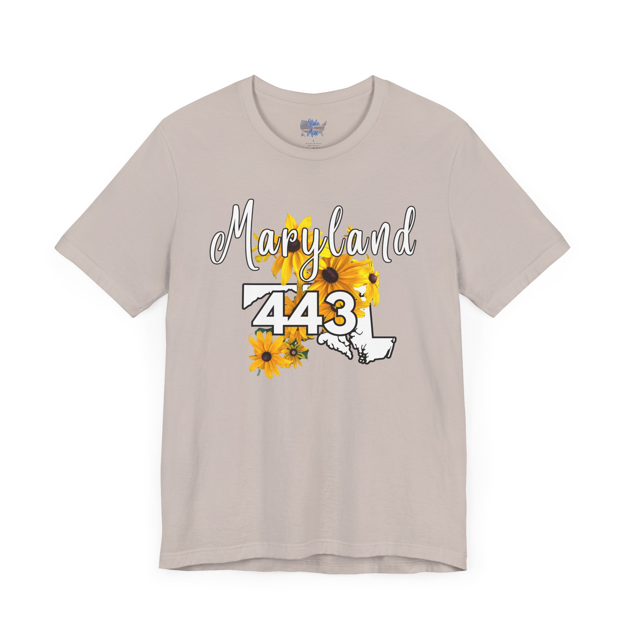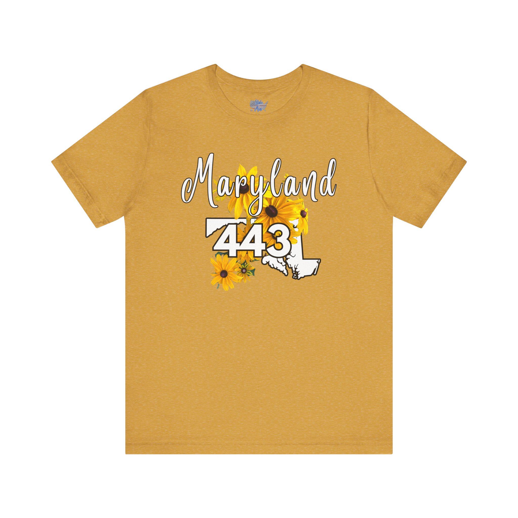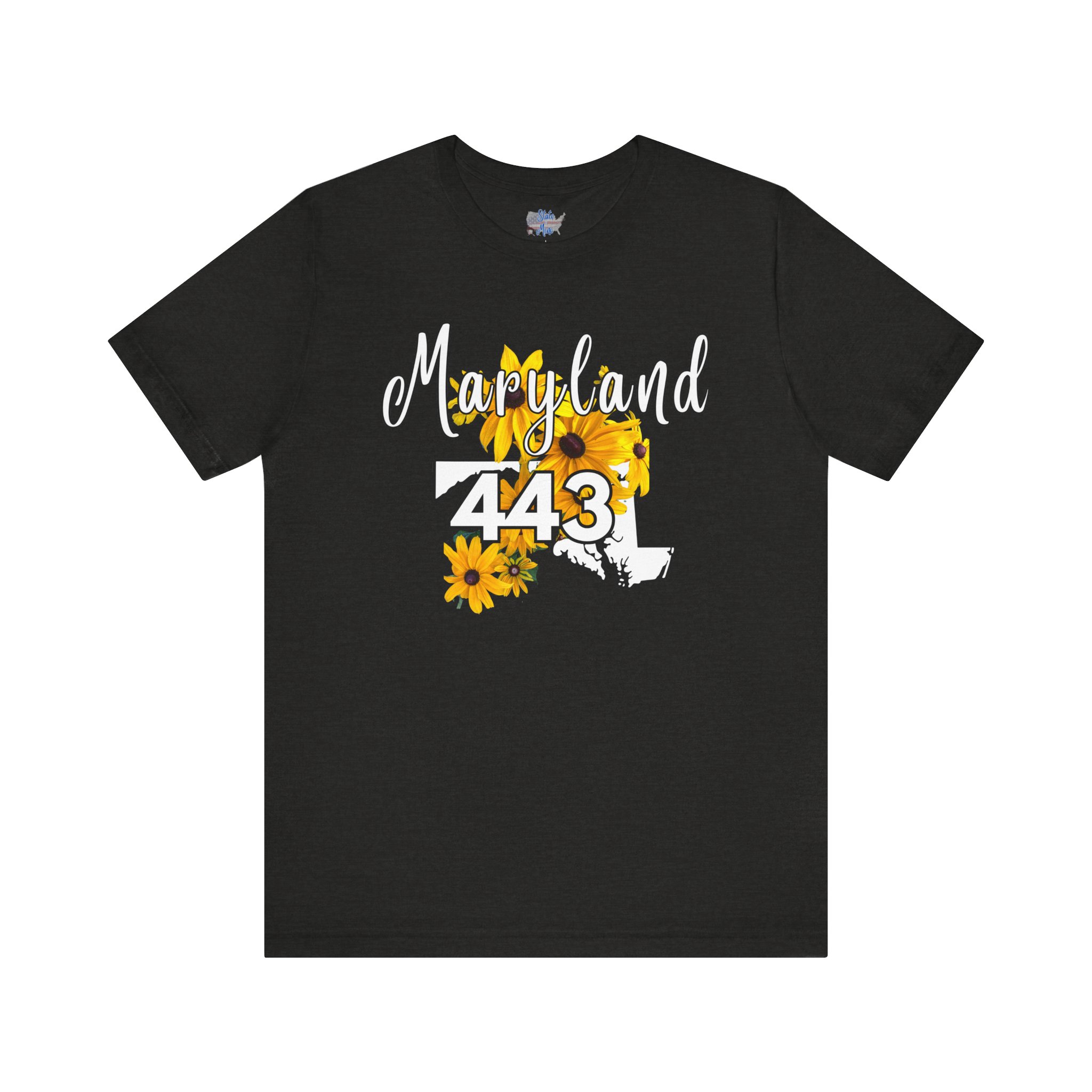 Maryland State Flower The Black-eyed Susan 443 Area Code by State of Mine Short Sleeve Tee, Casual Tee, Maryland Gift, Summer Shirt, State Pride Top, Floral Graphic Tee, Unisex T-Shirt