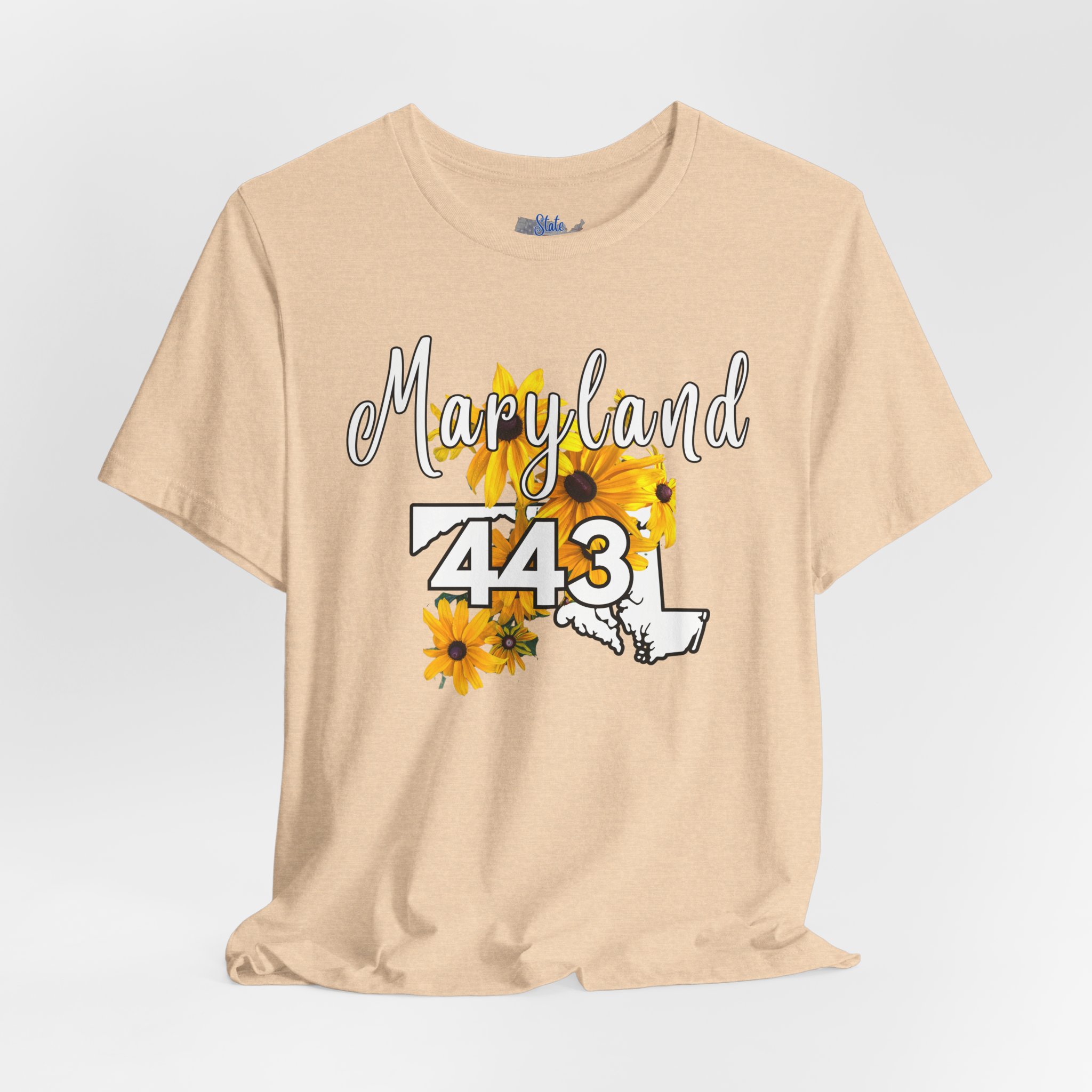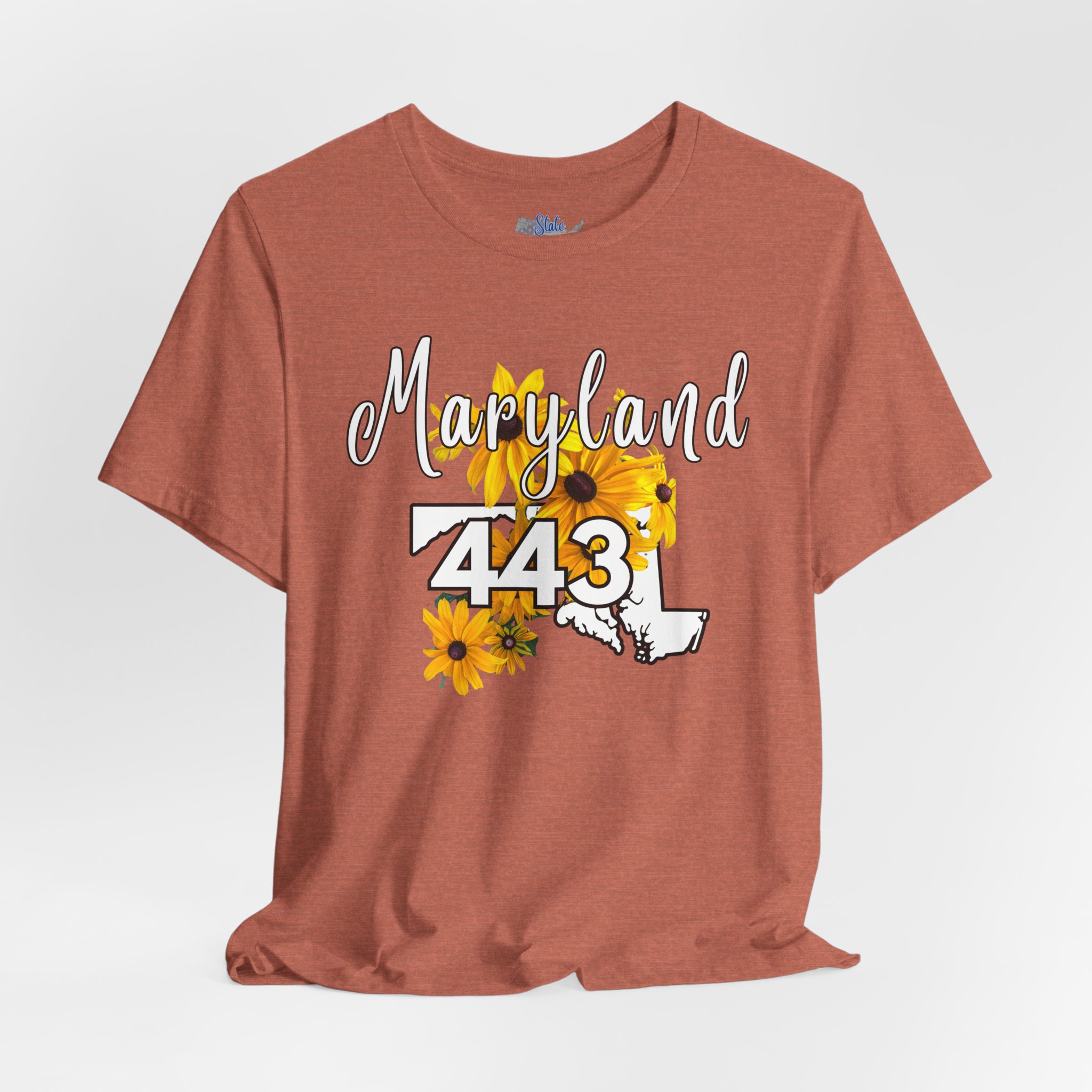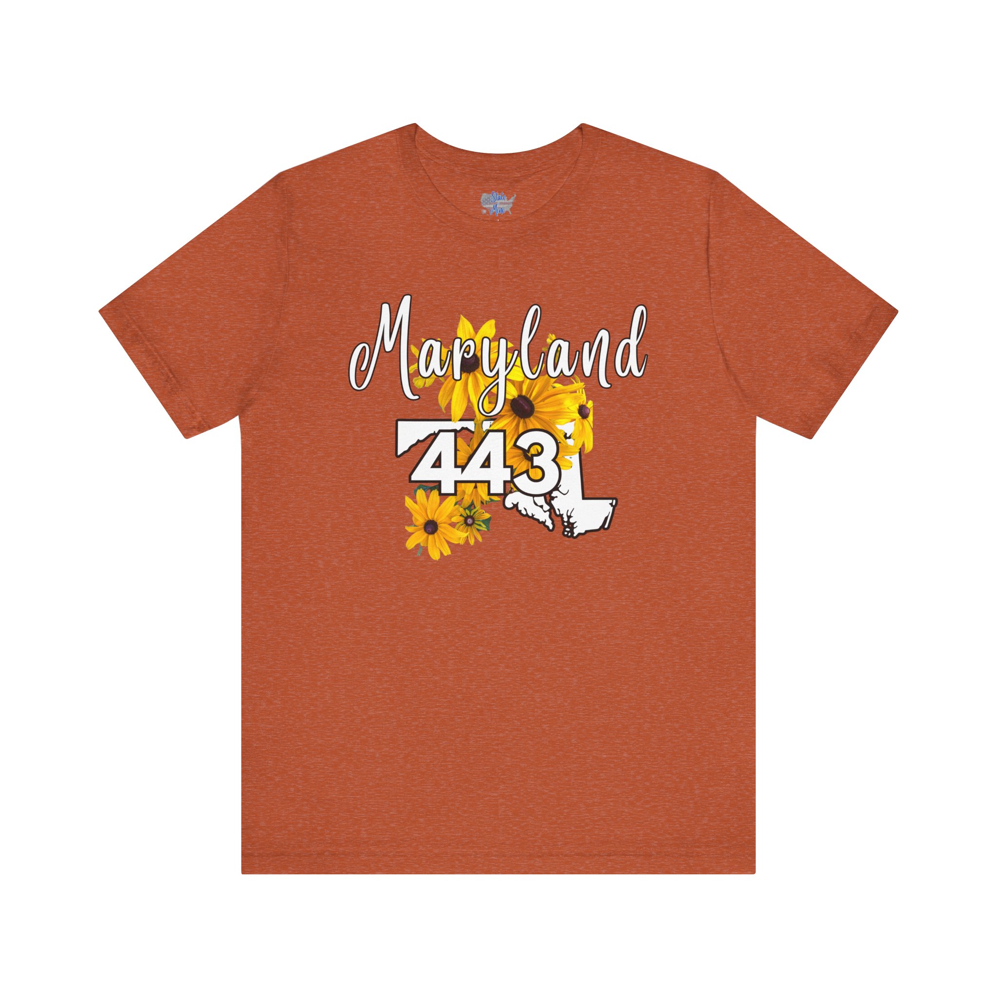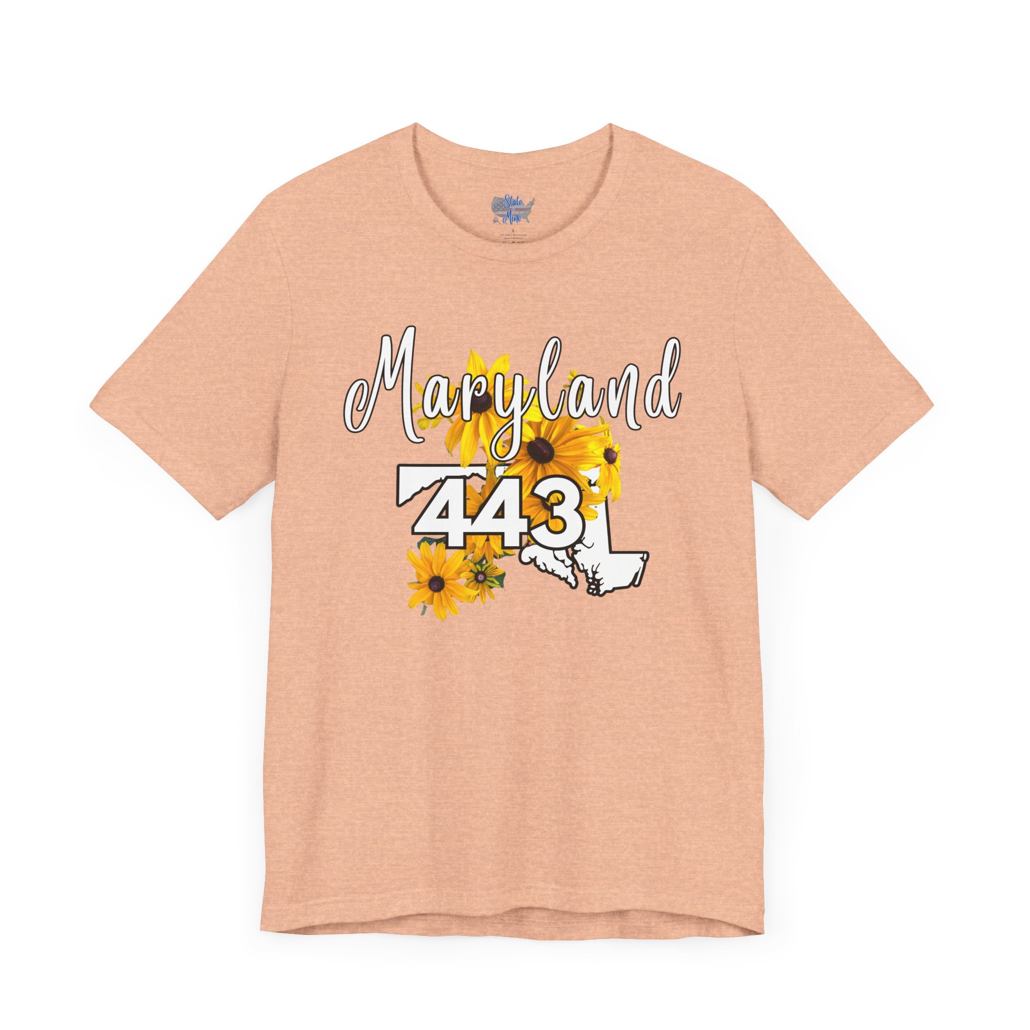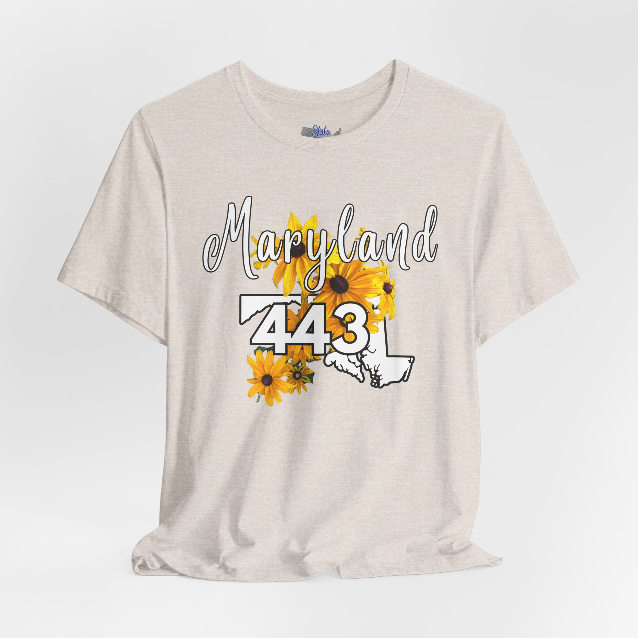 Maryland State Flower The Black-eyed Susan 443 Area Code by State of Mine Short Sleeve Tee, Casual Tee, Maryland Gift, Summer Shirt, State Pride Top, Floral Graphic Tee, Unisex T-Shirt