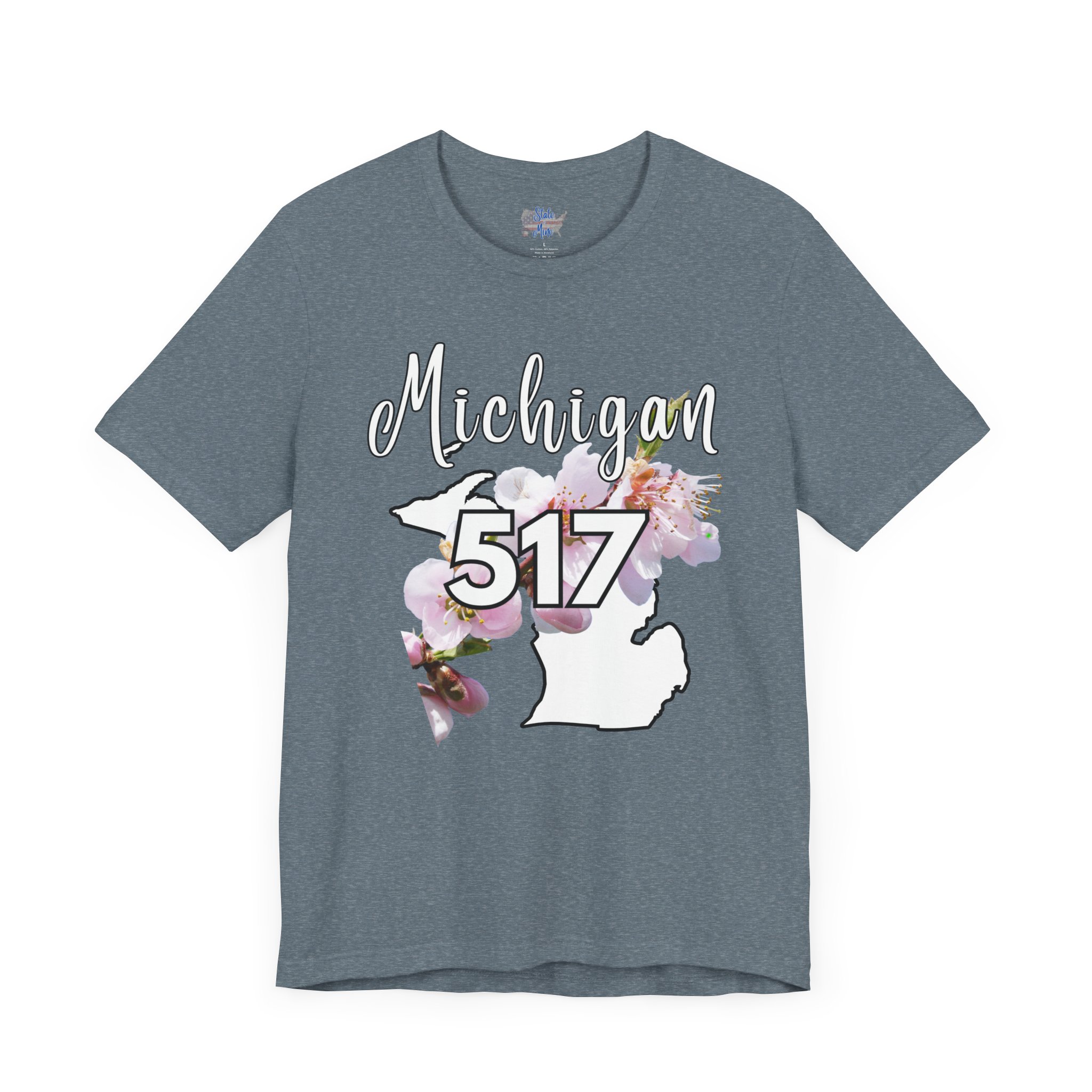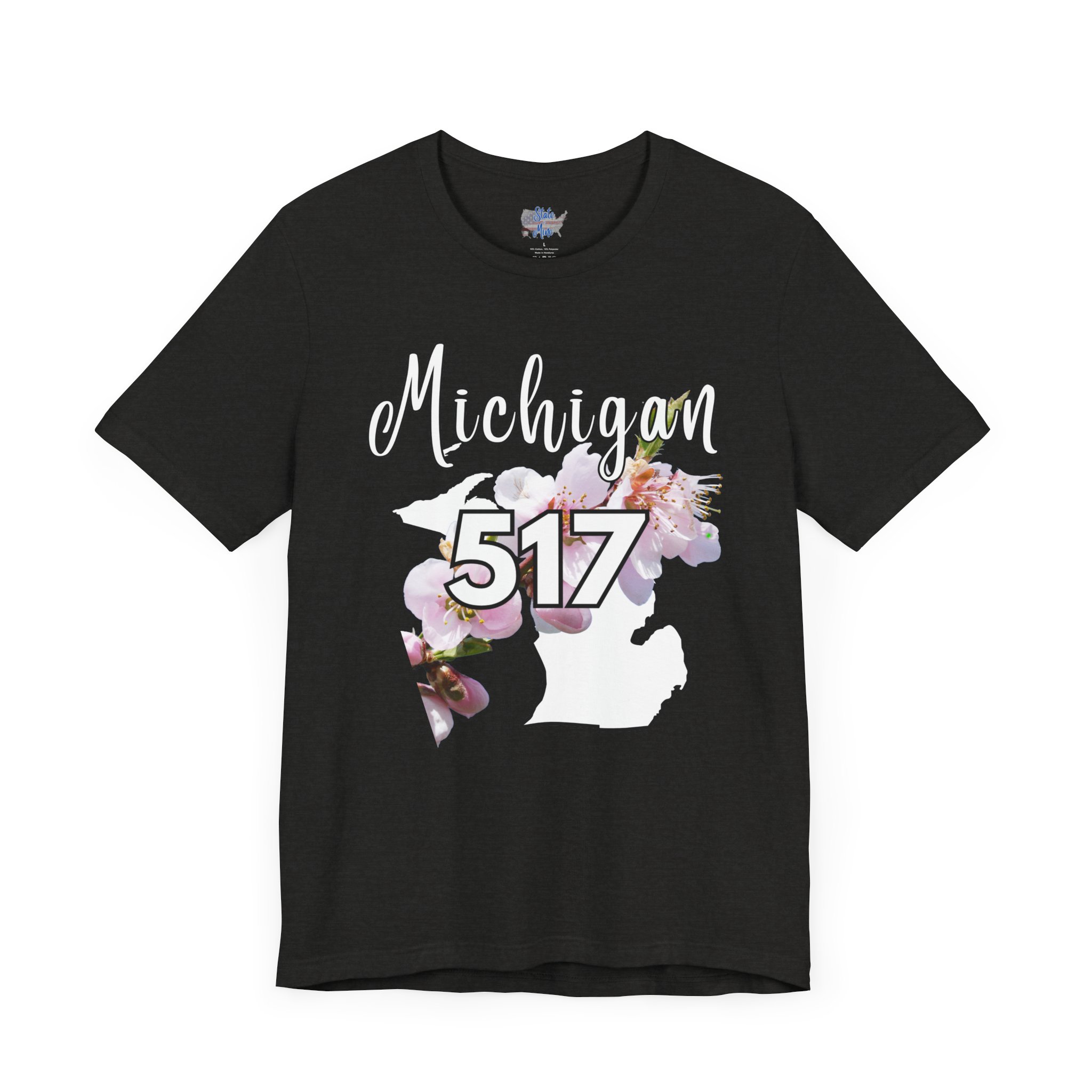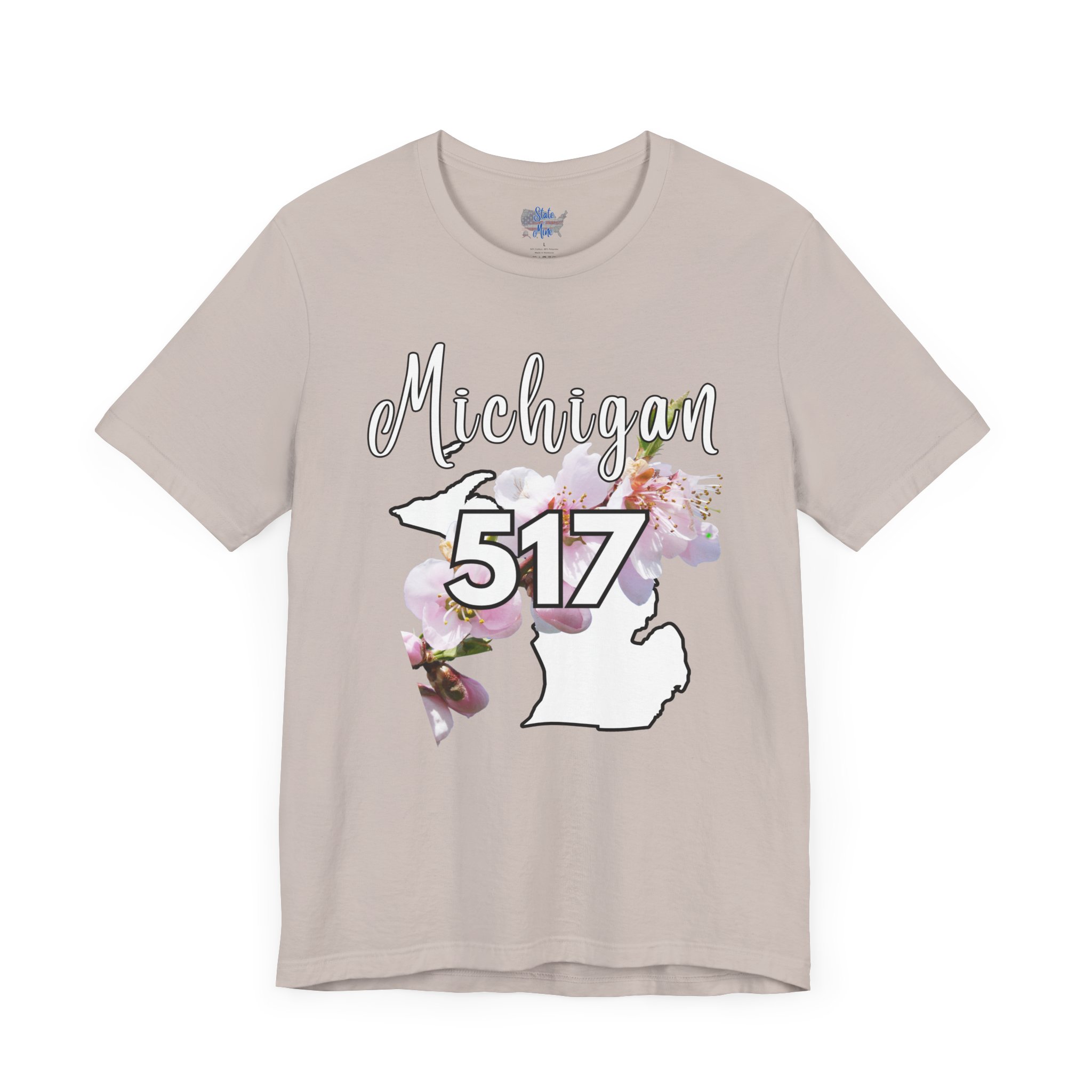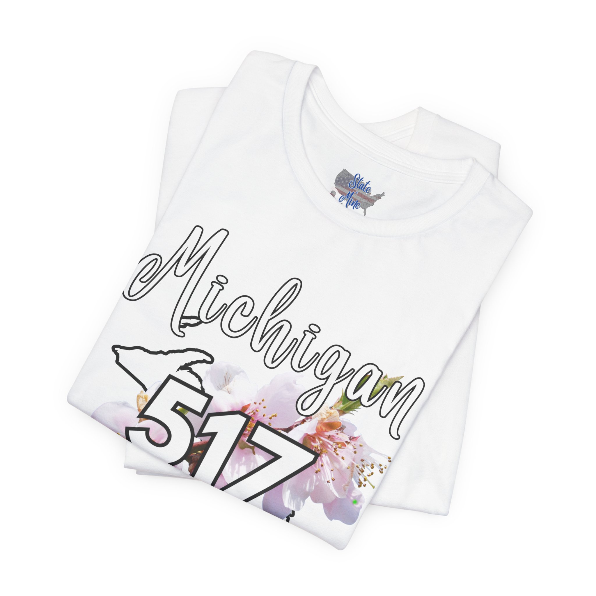 Michigan State Flower The Apple Blossom 517 Area Code by State of Mine. Unisex Jersey Short Sleeve Tee – Cozy Everyday Wear, Casual Style, Summer Essentials, Gift for Friends, Graphic Tee