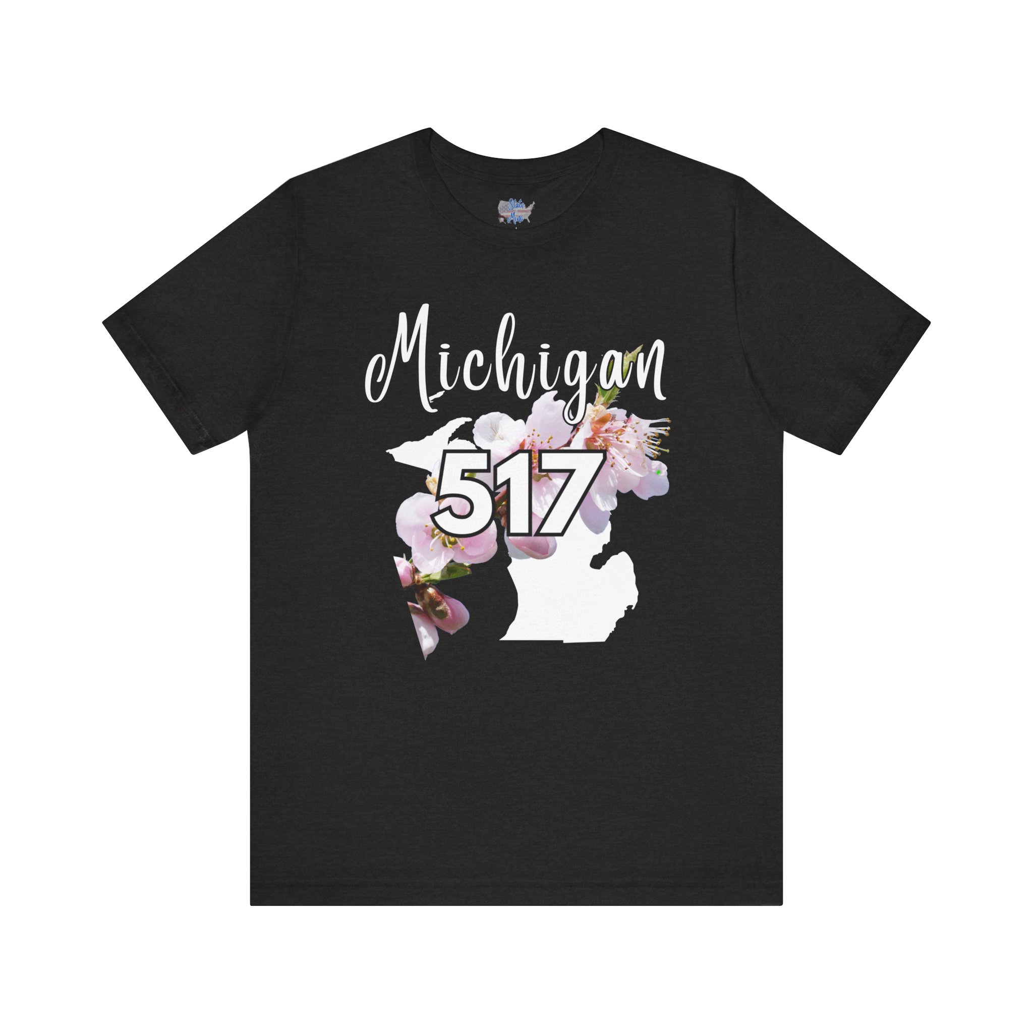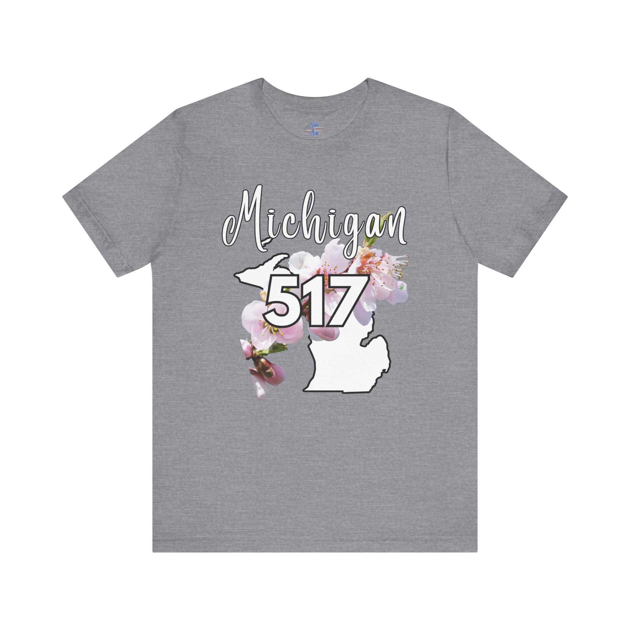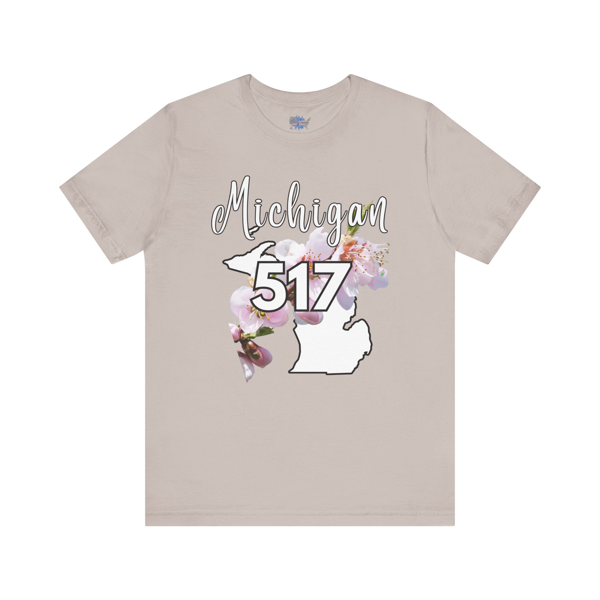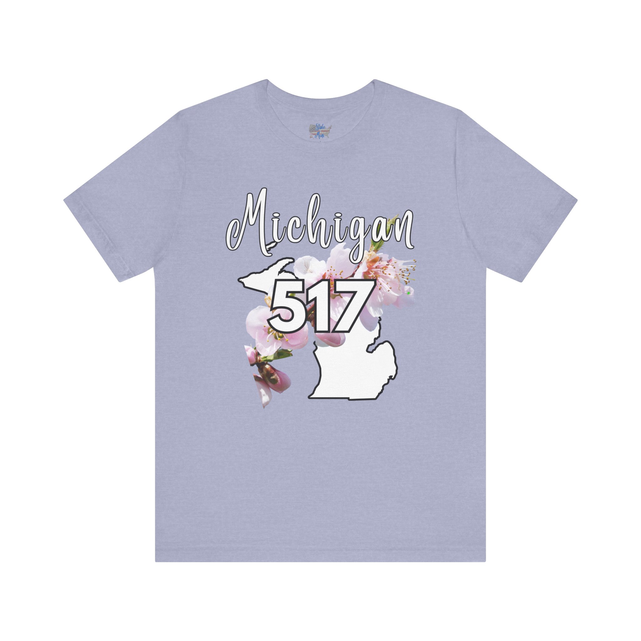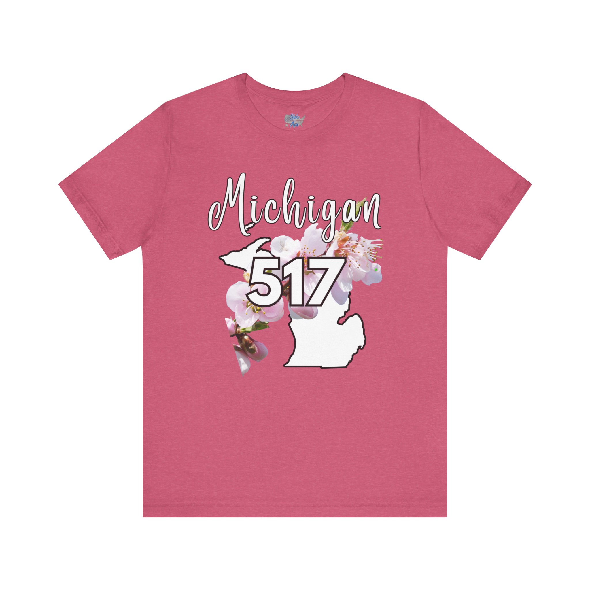 Michigan State Flower The Apple Blossom 517 Area Code by State of Mine. Unisex Jersey Short Sleeve Tee – Cozy Everyday Wear, Casual Style, Summer Essentials, Gift for Friends, Graphic Tee