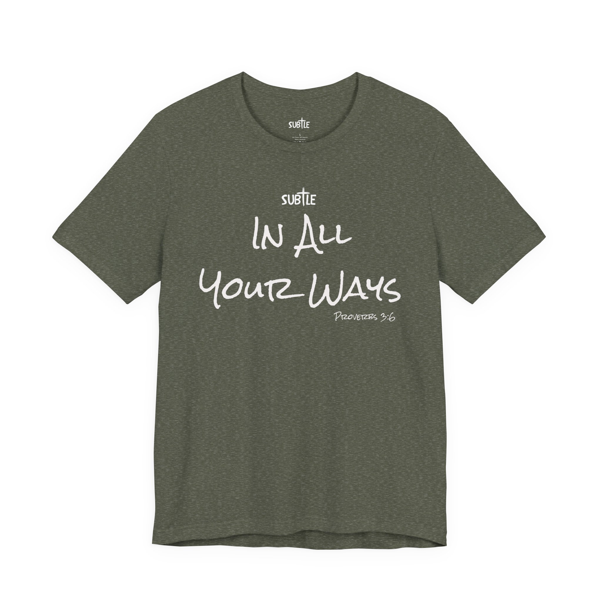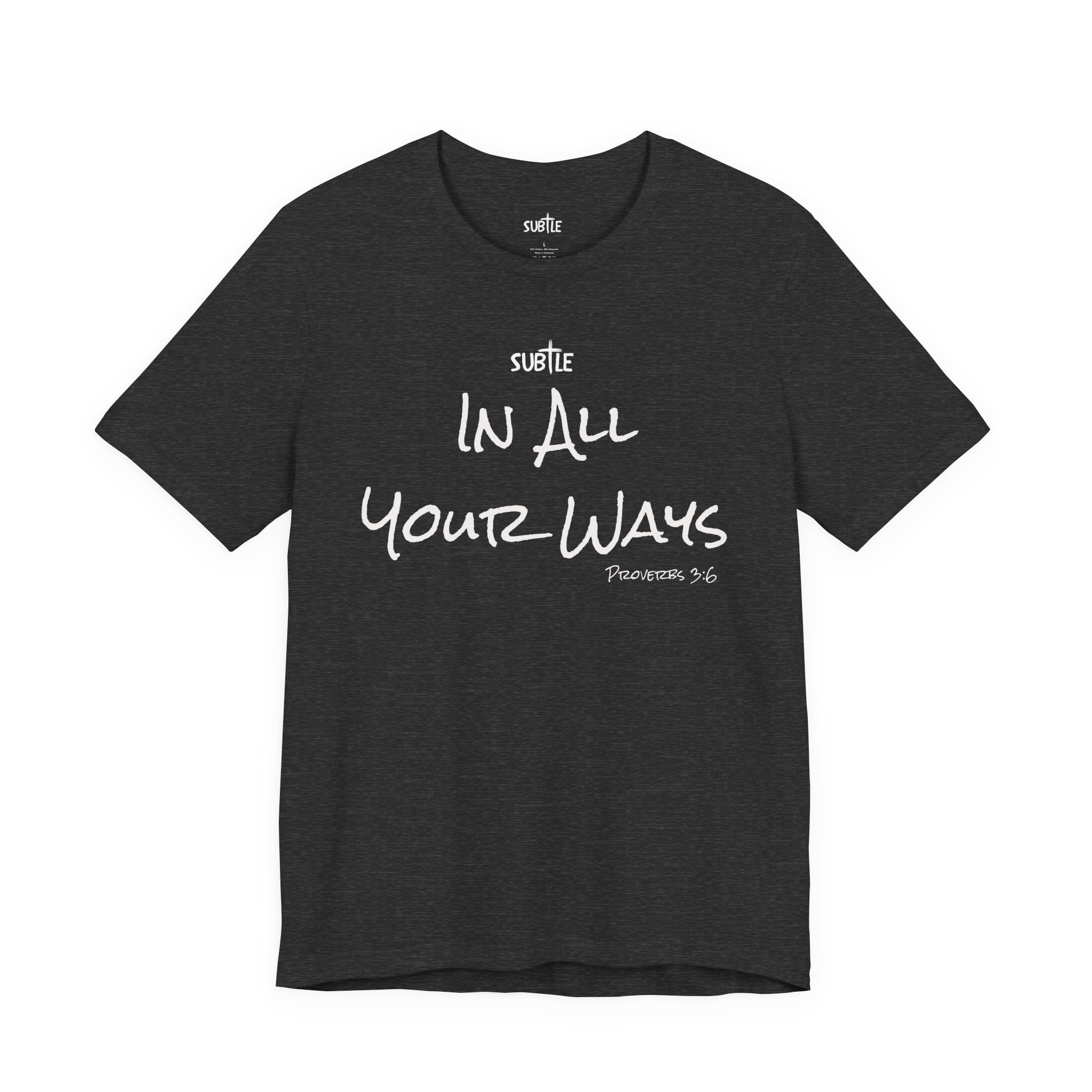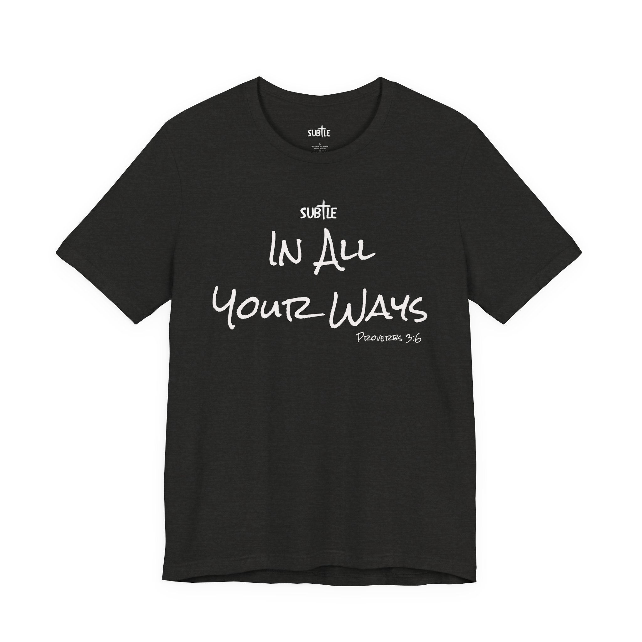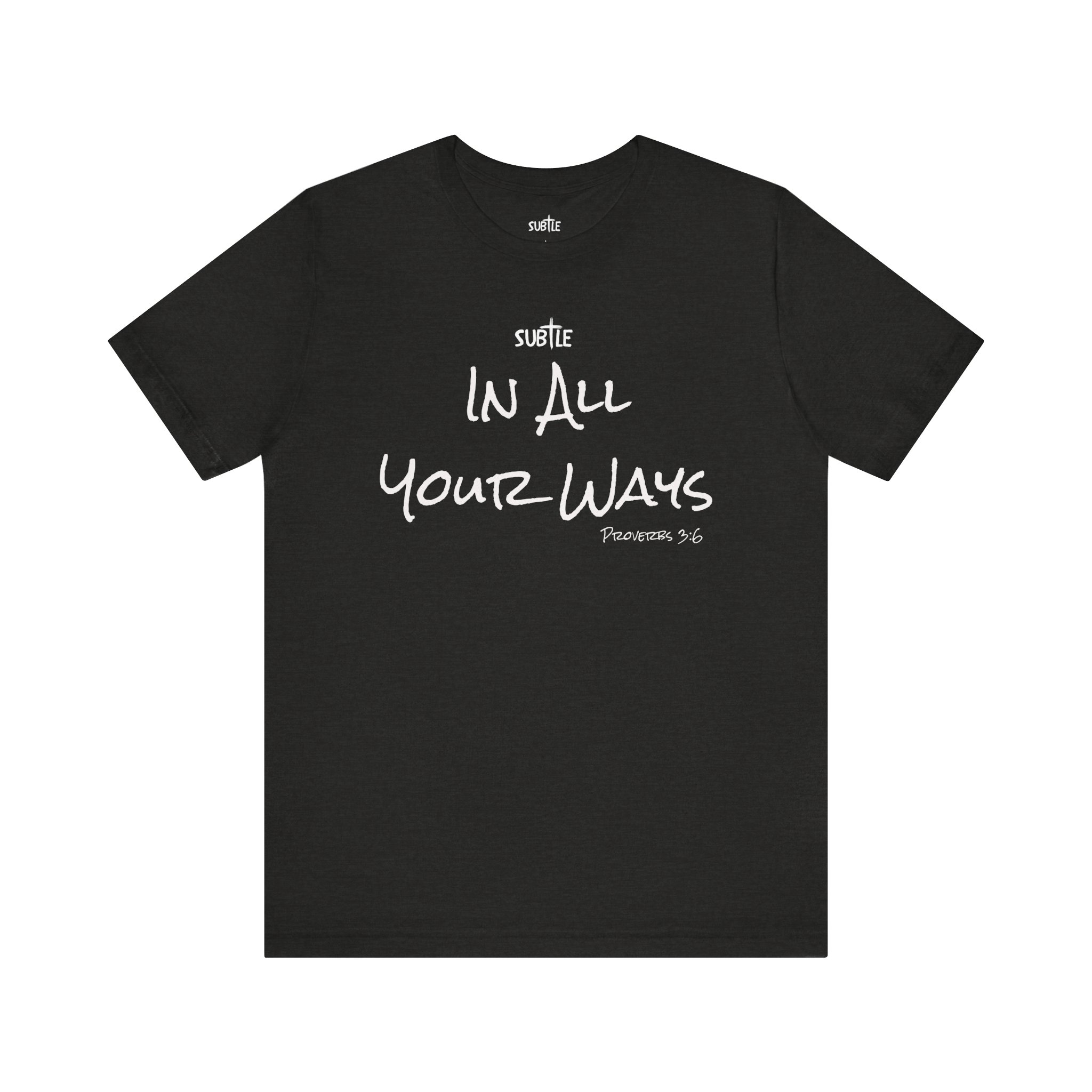 In All Your Ways by Subtle Merch–Unisex Dark Colored Heavy Cotton T-Shirt, Faith-Based and Inspirational, Proverbs 3:6