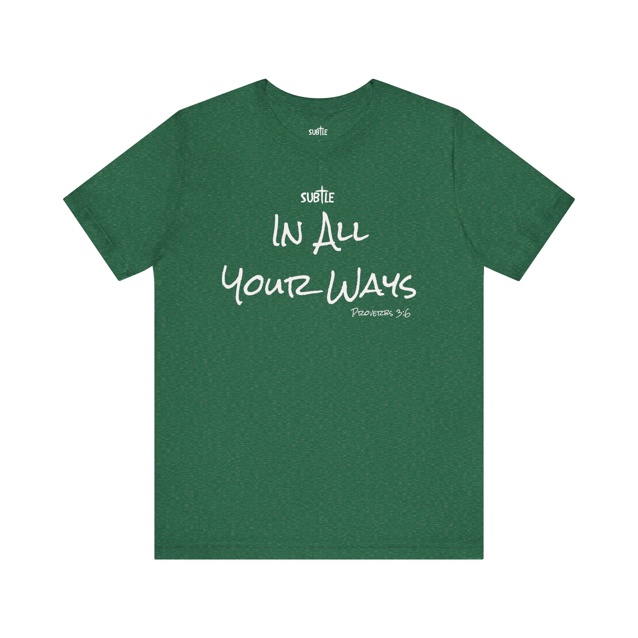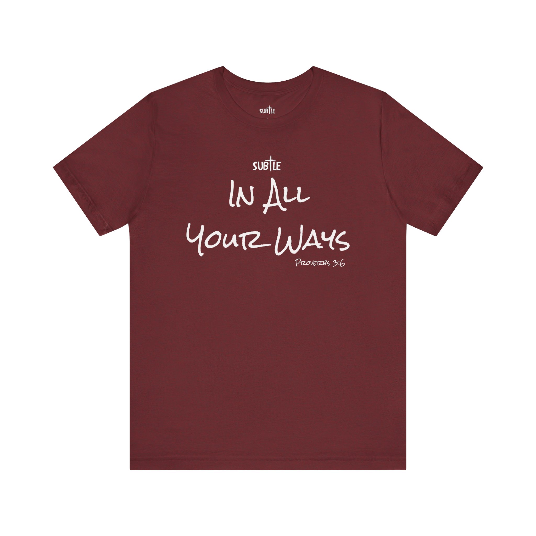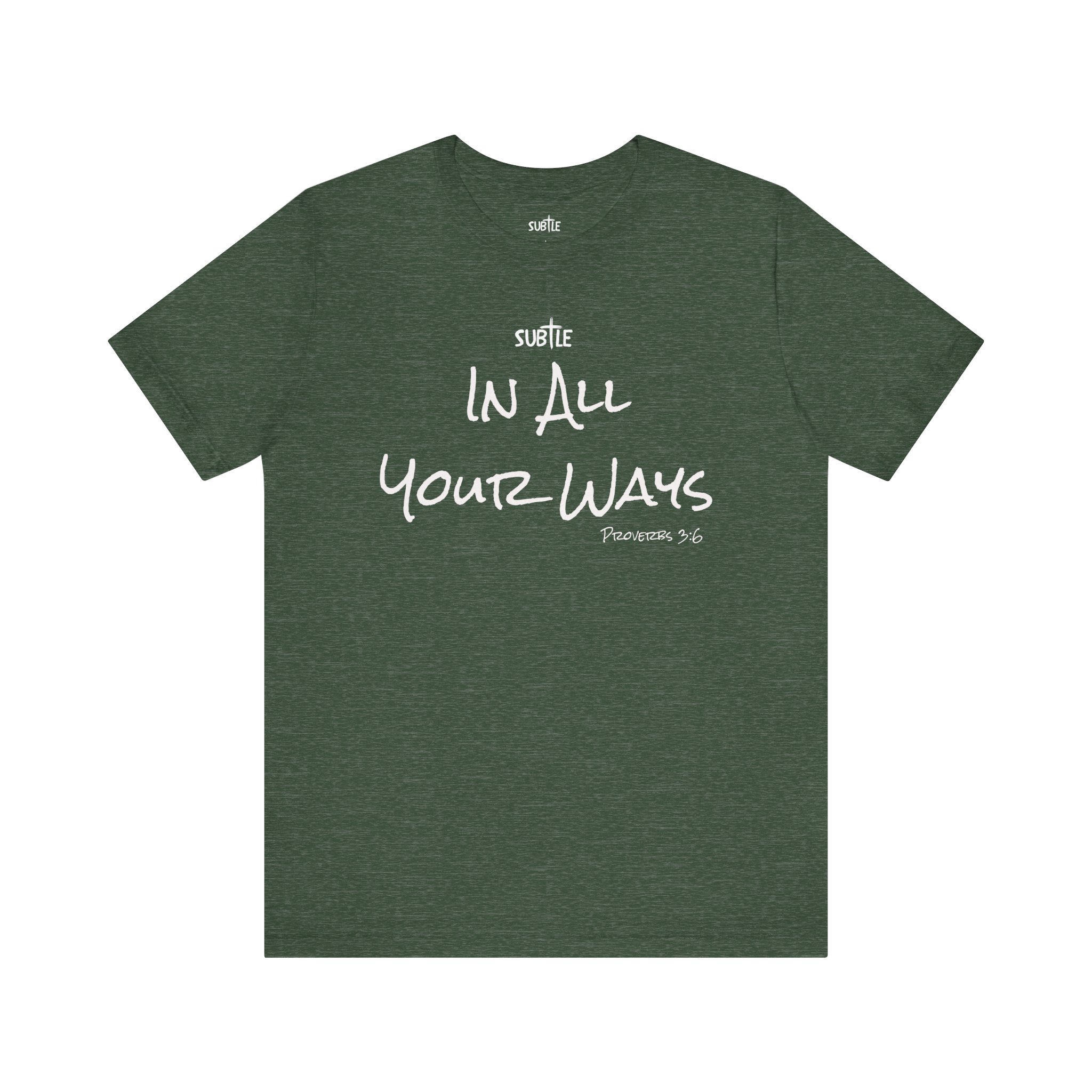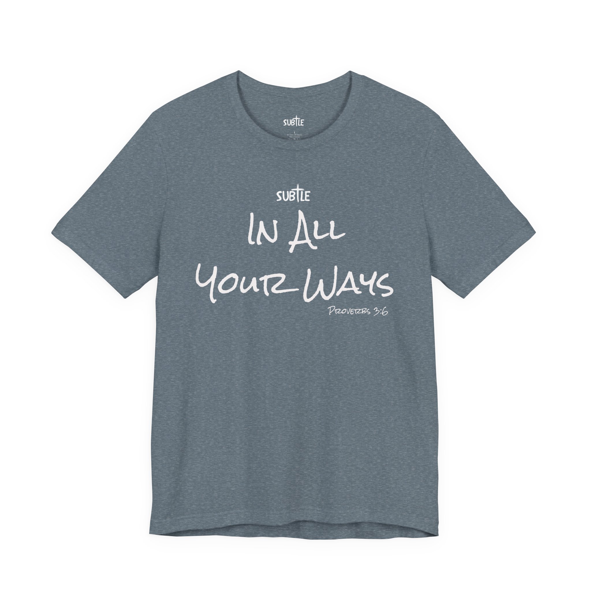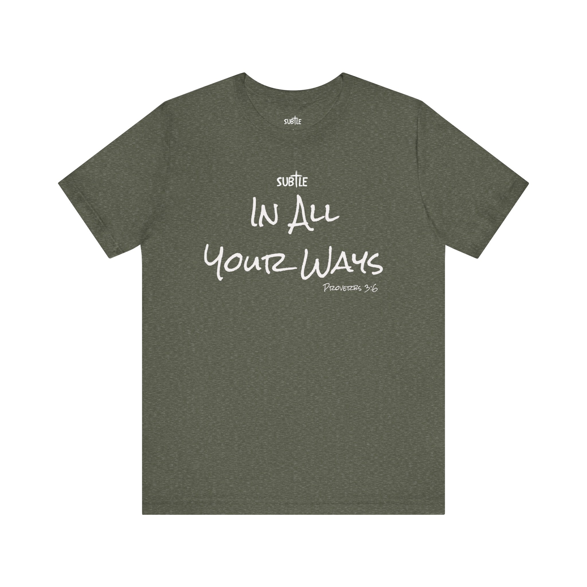 In All Your Ways by Subtle Merch–Unisex Dark Colored Heavy Cotton T-Shirt, Faith-Based and Inspirational, Proverbs 3:6