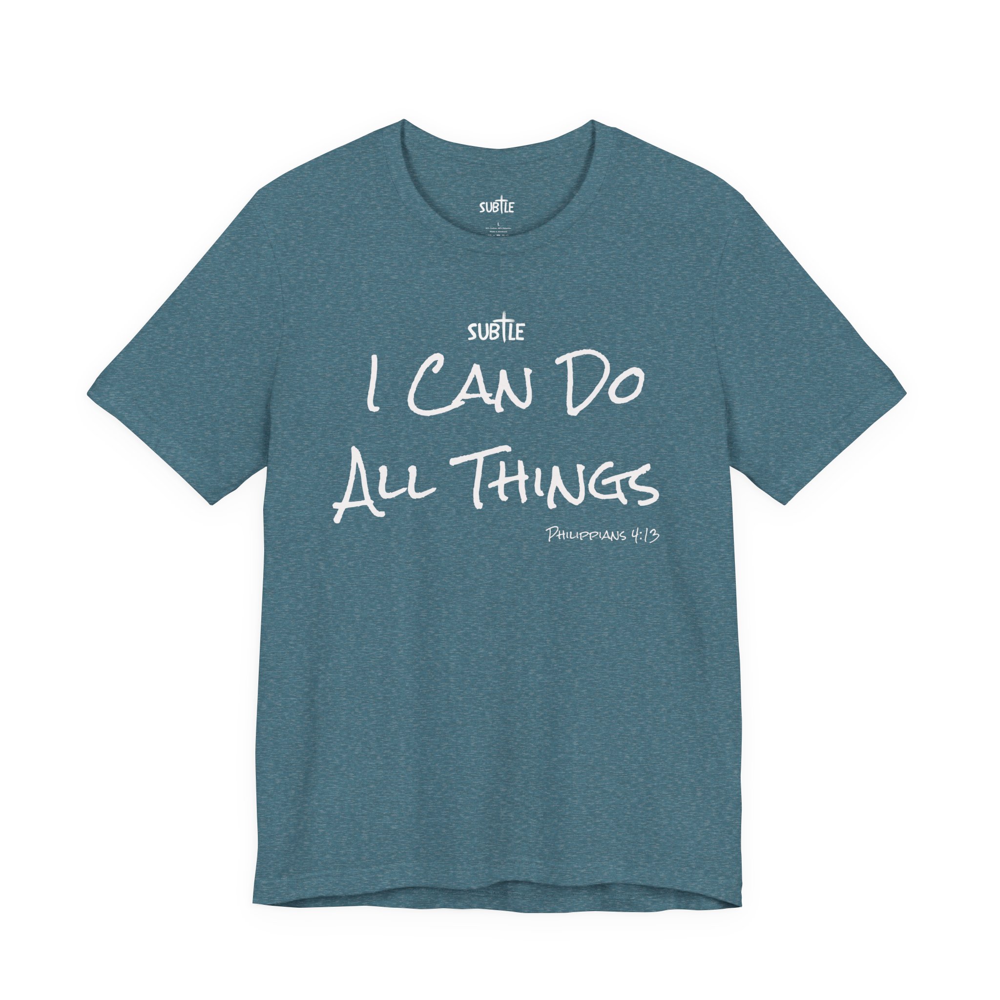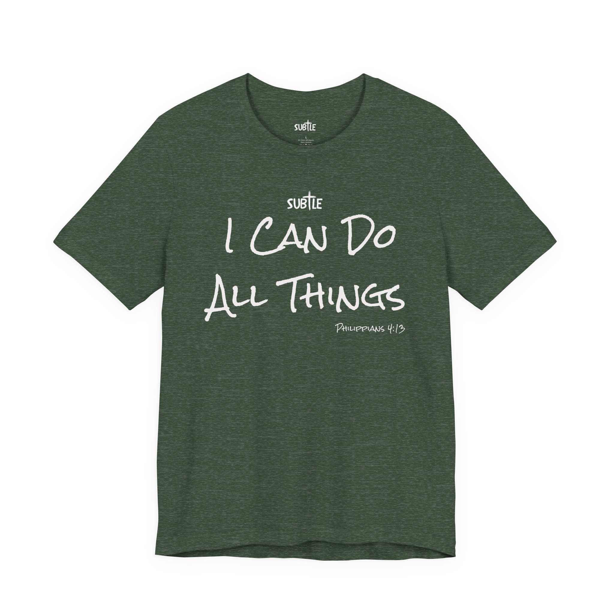 I Can Do All Things by Subtle Merch–Unisex Dark Colored Heavy Cotton T-Shirt, Faith-Based and Inspirational, Philippians 4:13