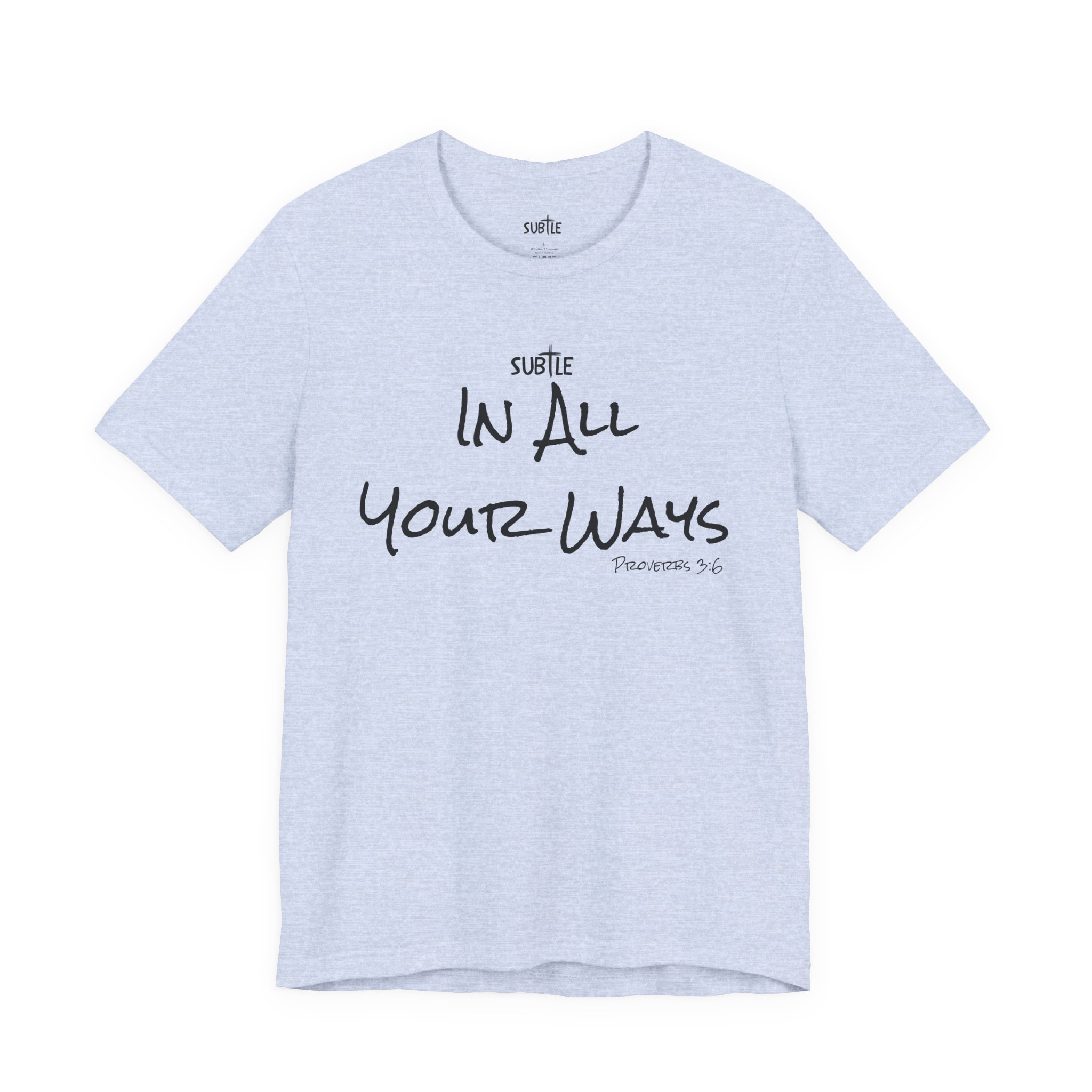 In All Your Ways by Subtle Merch–Unisex Heavy Cotton T-Shirt, Faith-Based and Inspirational, Proverbs 3:6