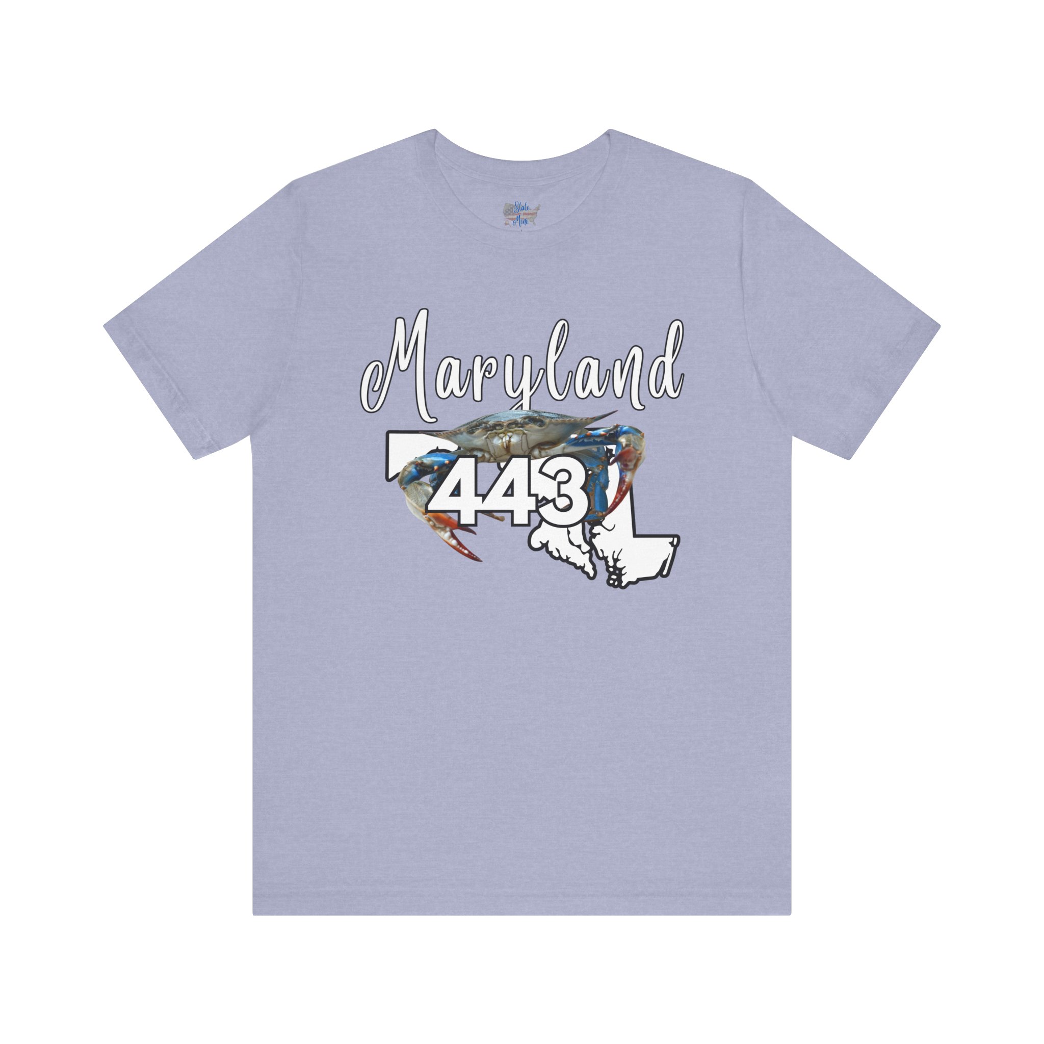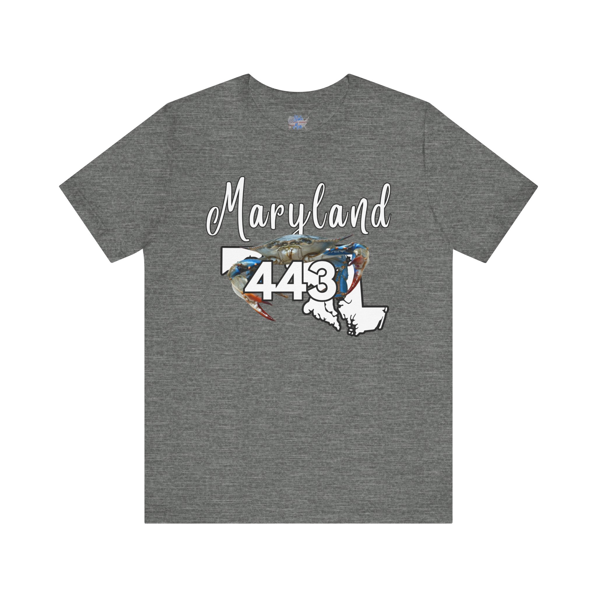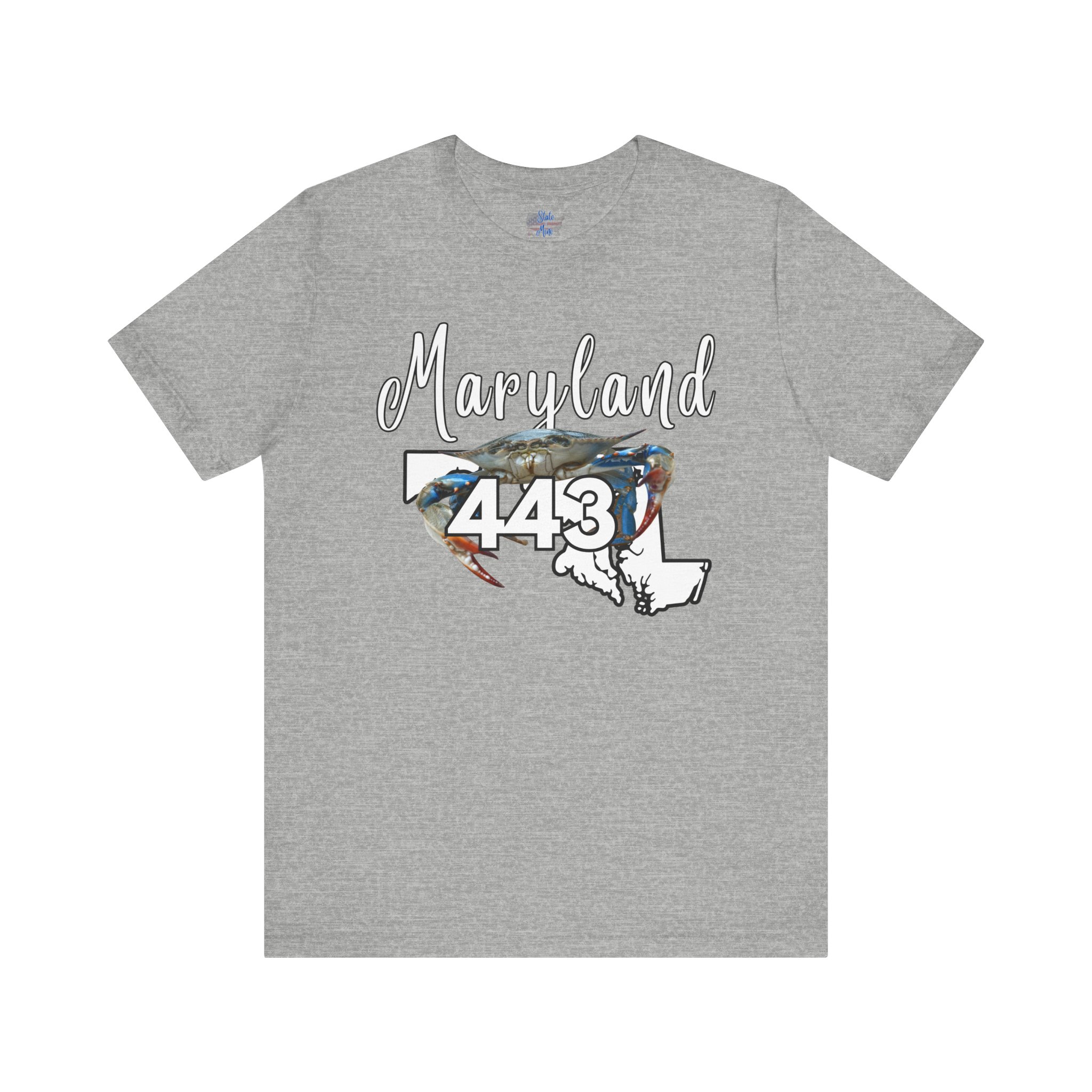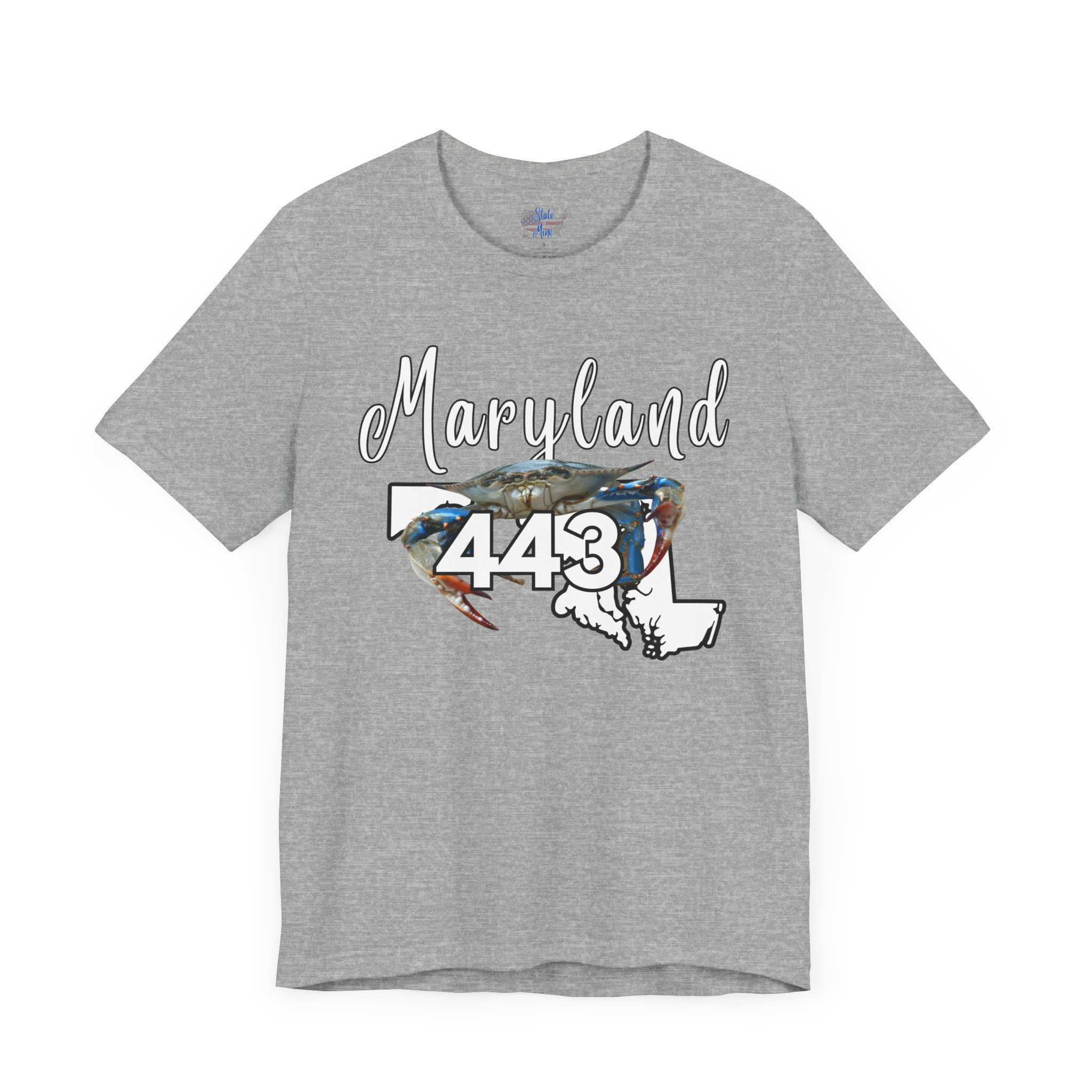 Maryland Blue Crab Design 443 Area Code by State of Mine Short Sleeve Tee, Unisex Summer Shirt, State Pride Tee, Beach T-Shirt, Gift for Marylanders