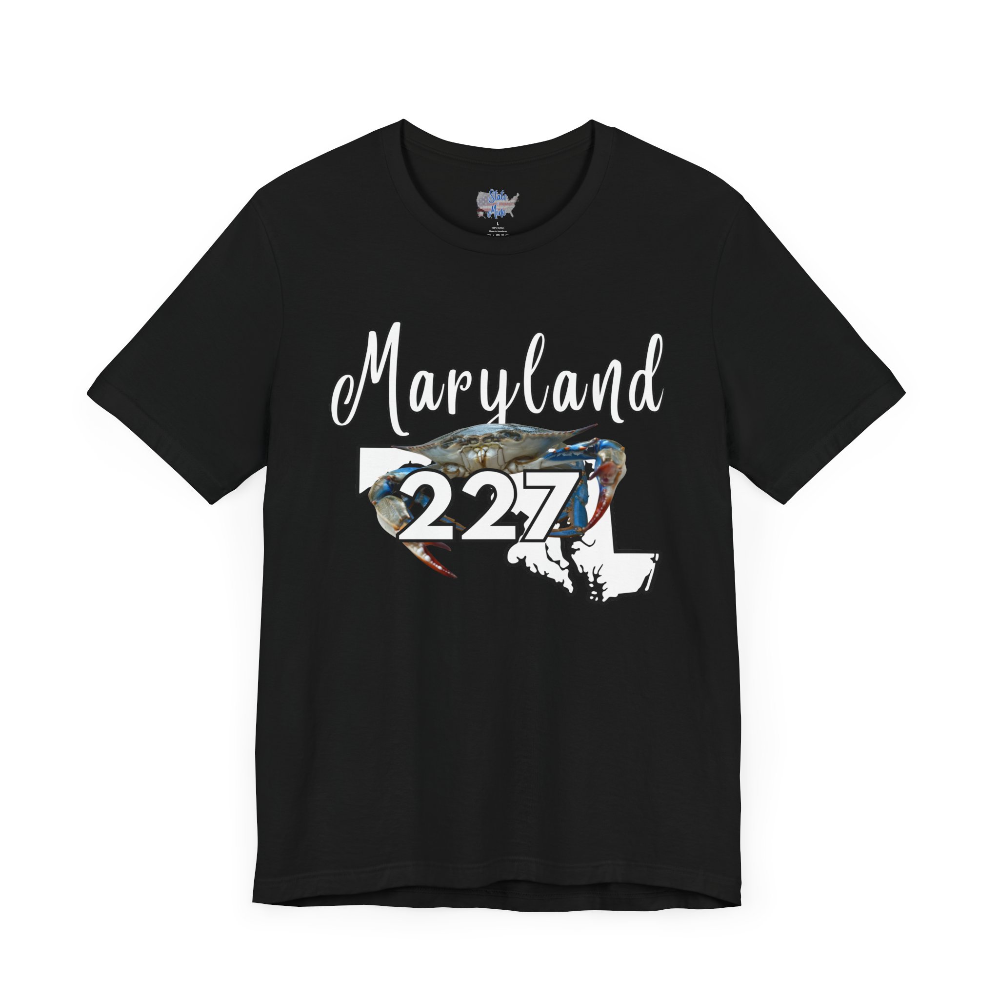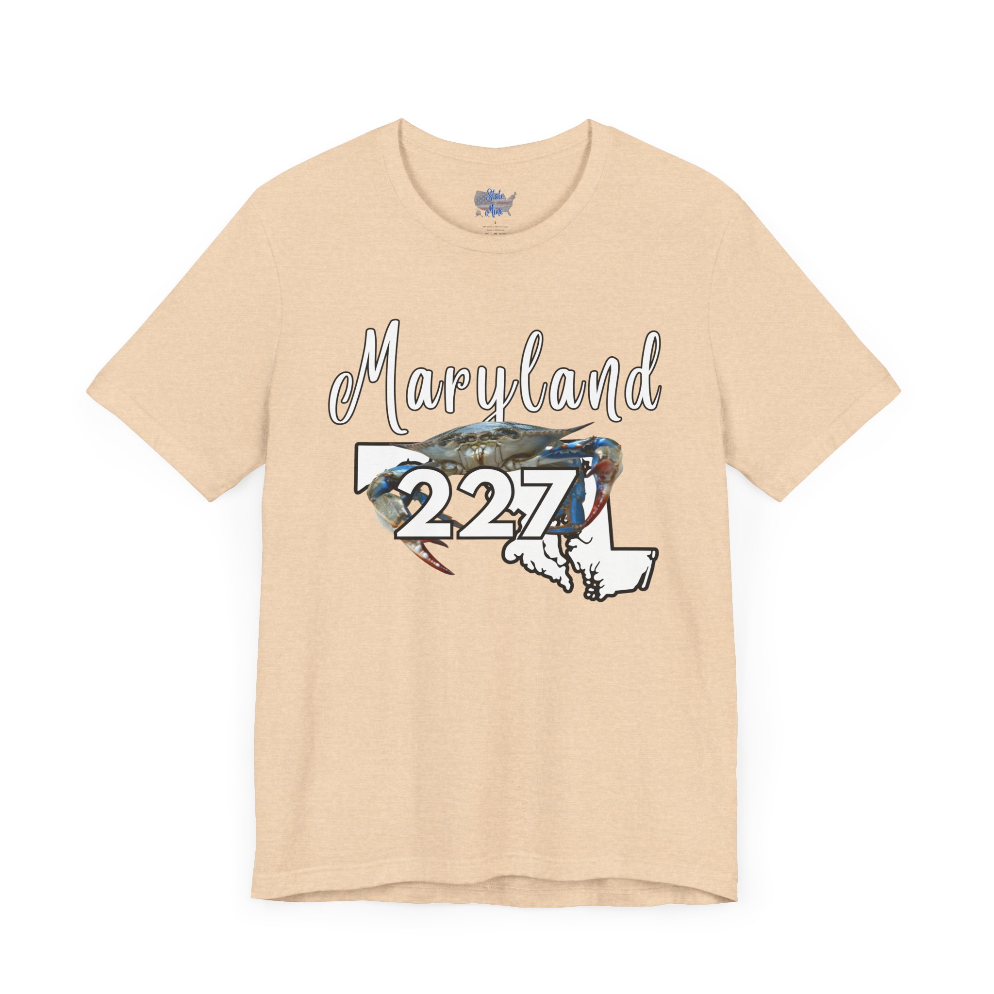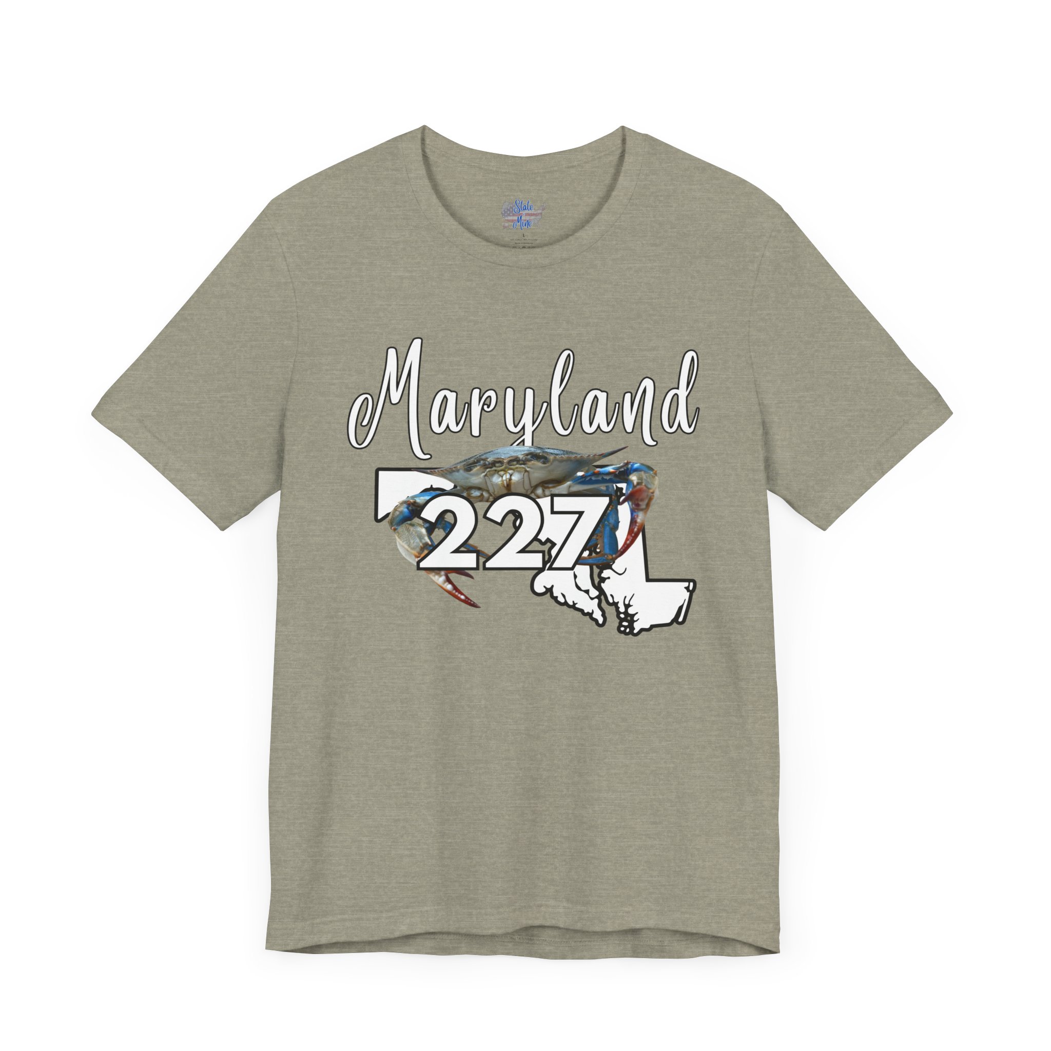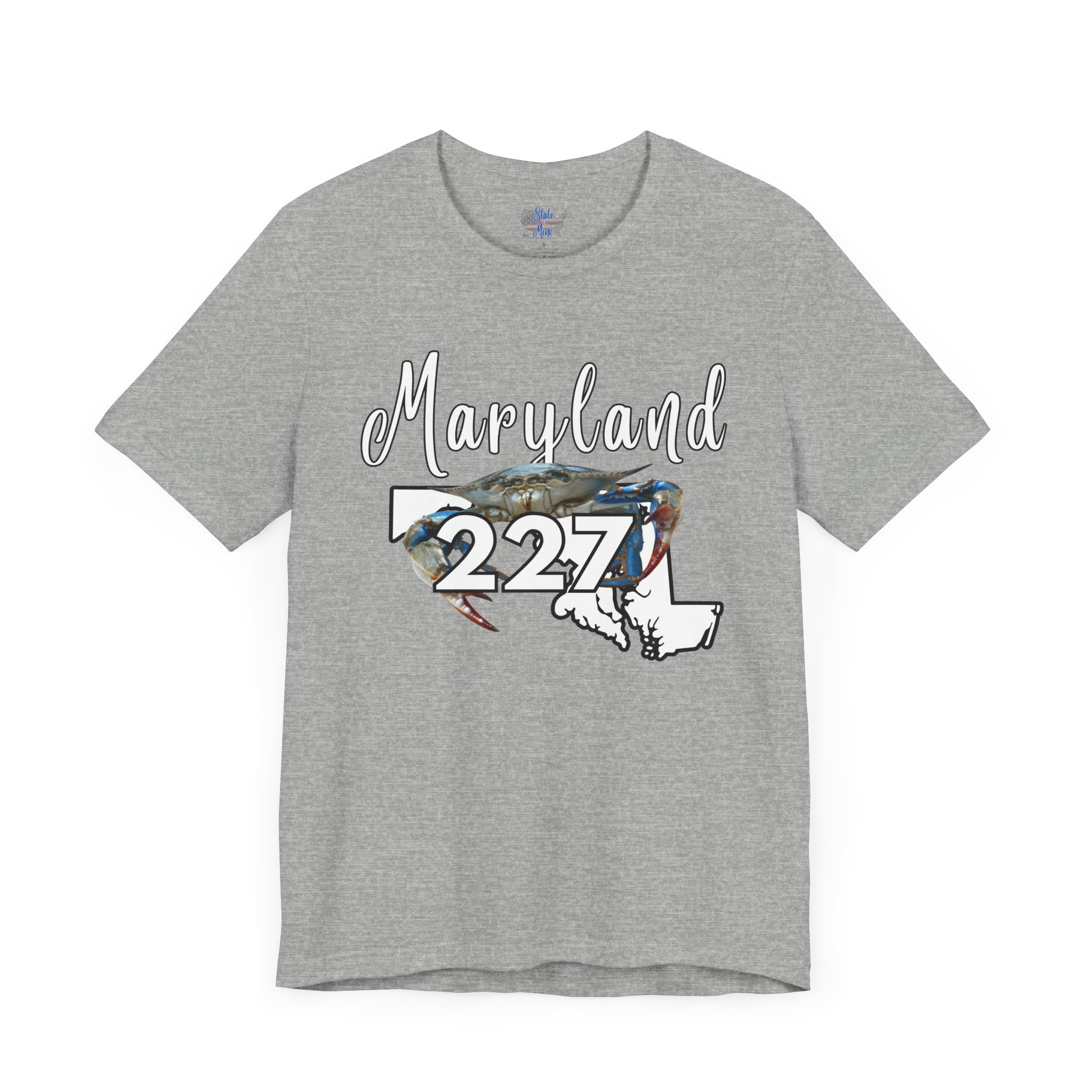 Maryland Blue Crabs 227 Area Code by State of Mine Short Sleeve Tee, Unisex Summer Shirt, State Pride Tee, Beach T-Shirt, Gift for Marylanders
