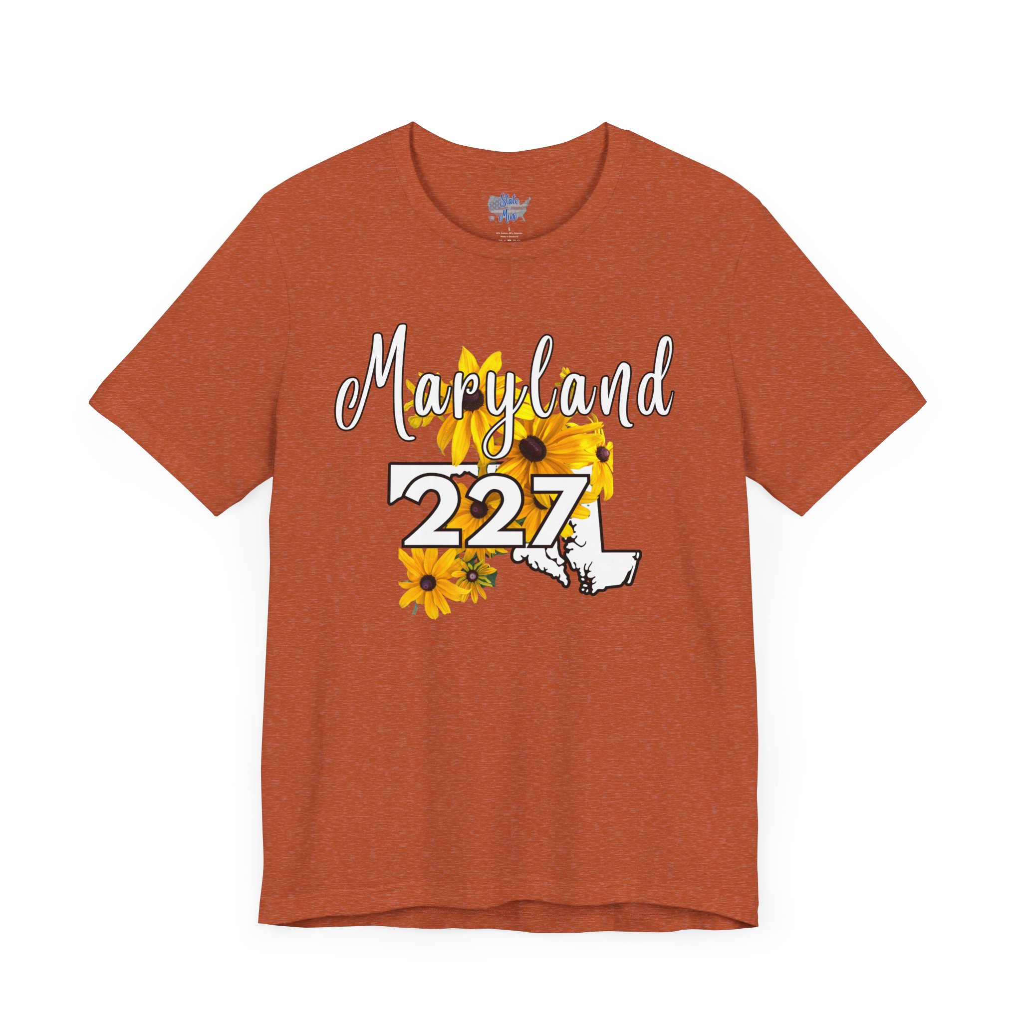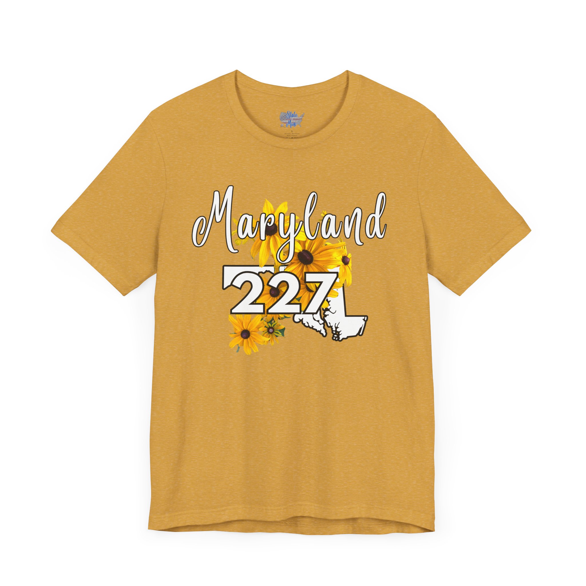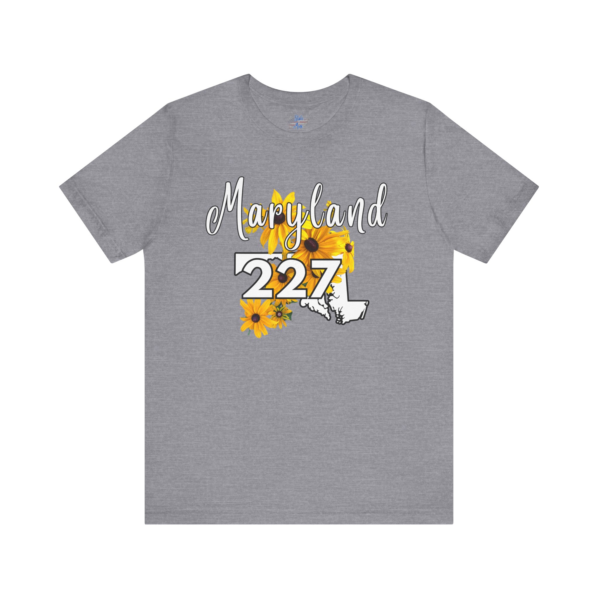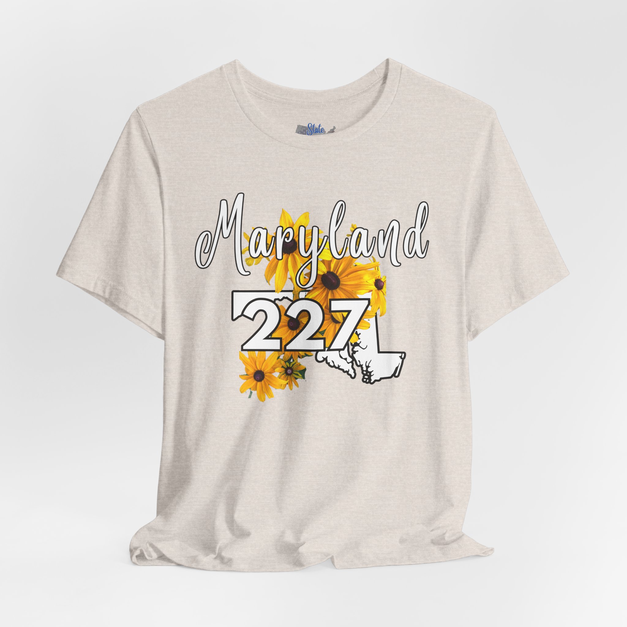 Maryland State Flower The Black-eyed Susan 227 Area Code by State of Mine Short Sleeve Tee, Casual Tee, Maryland Gift, Summer Shirt, State Pride Top, Floral Graphic Tee, Unisex T-Shirt