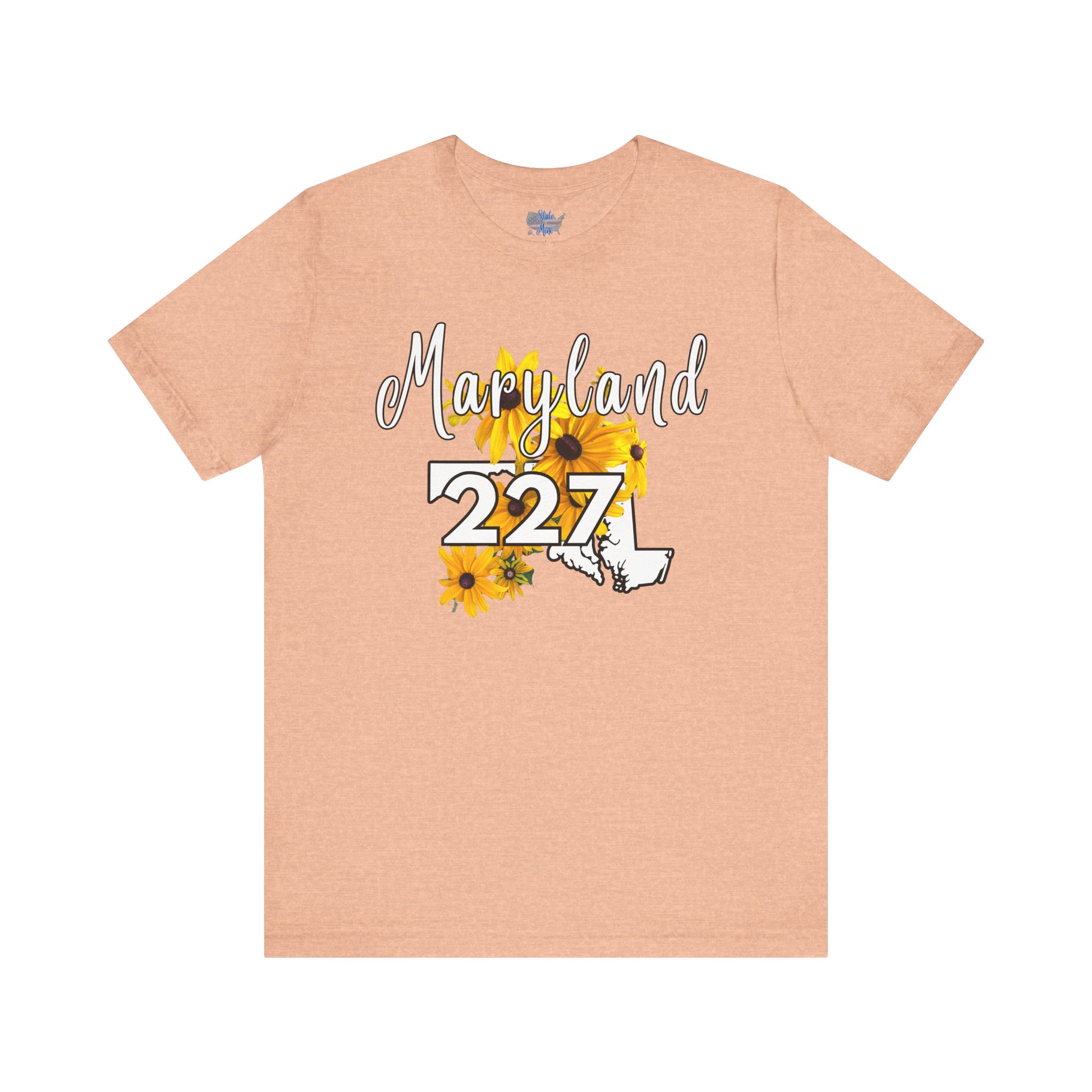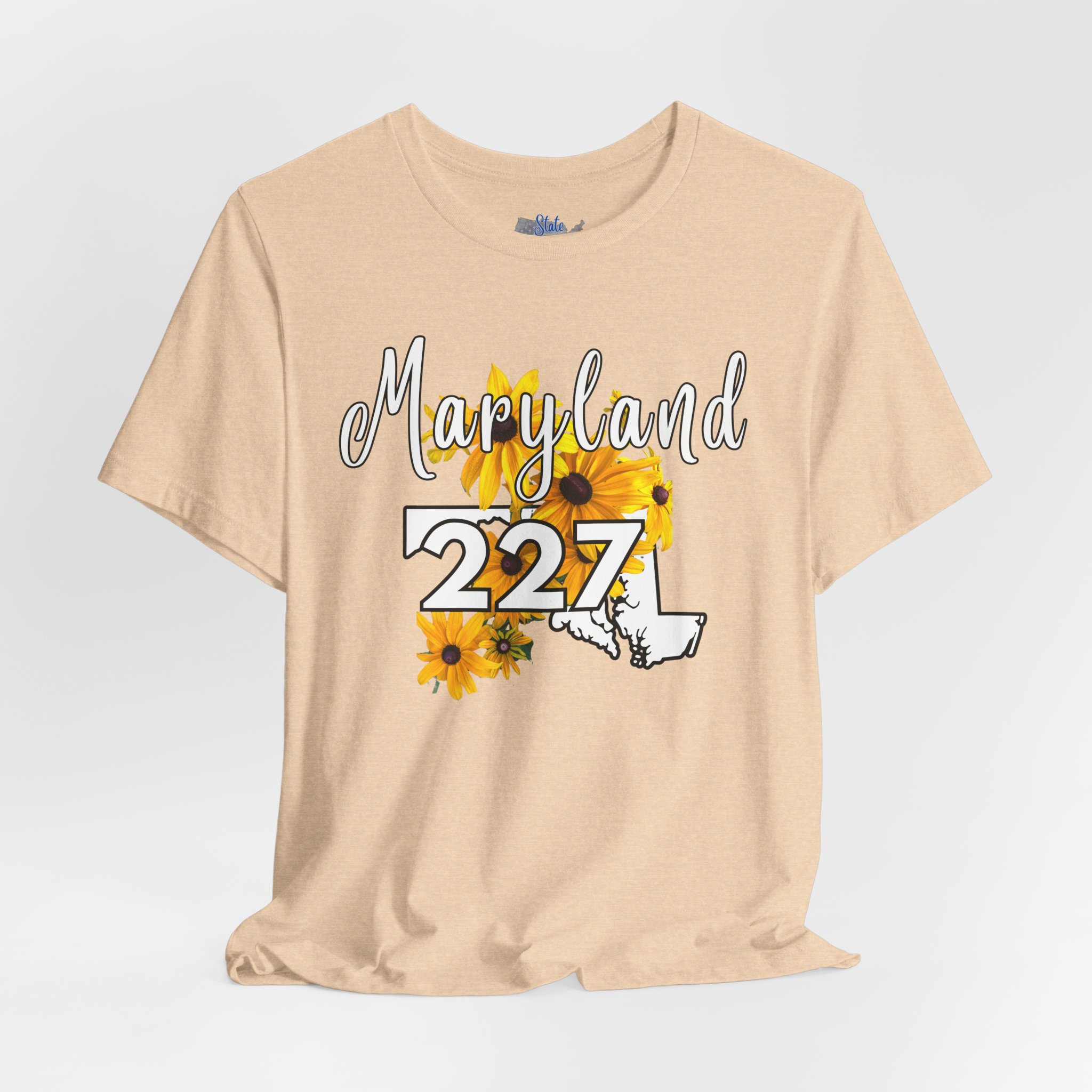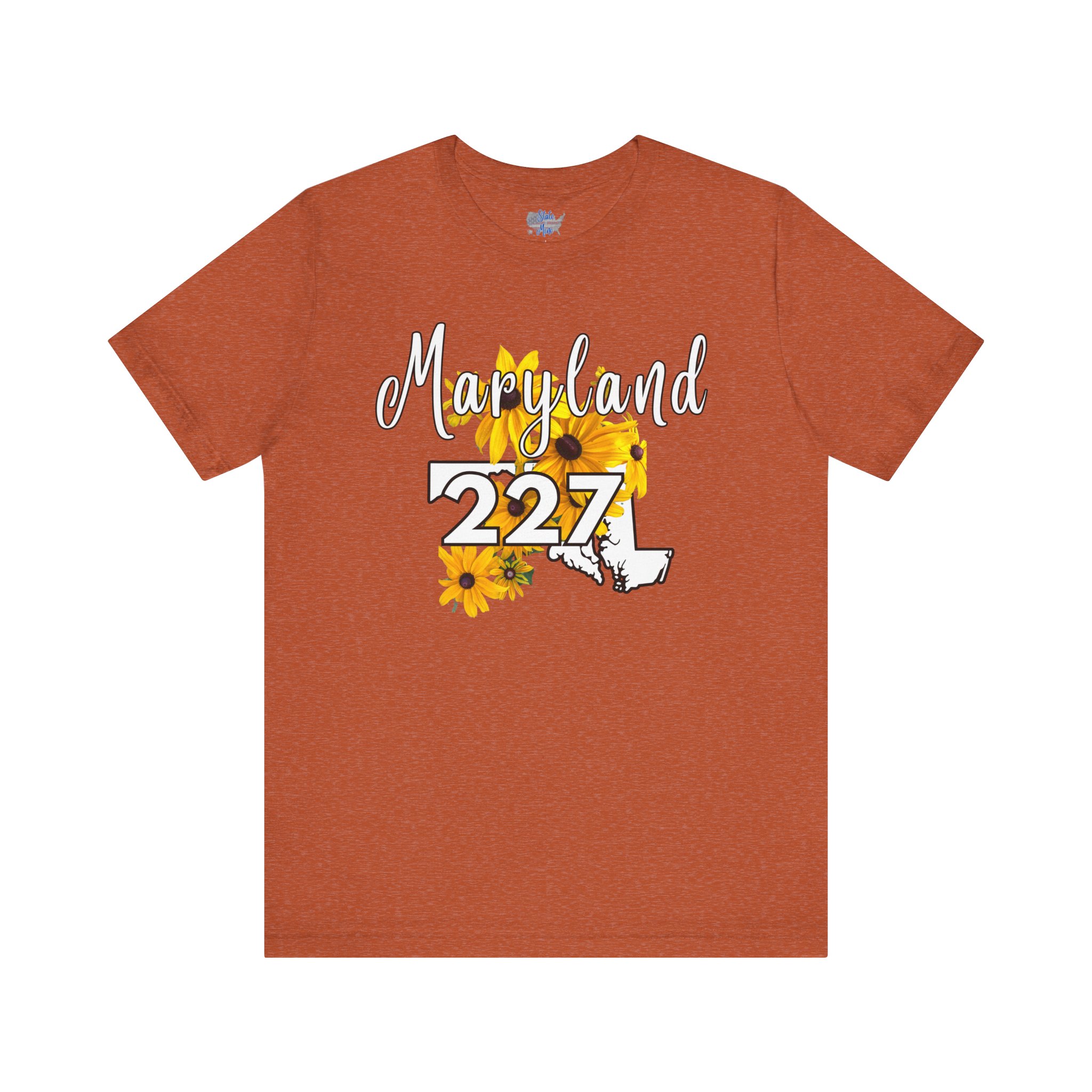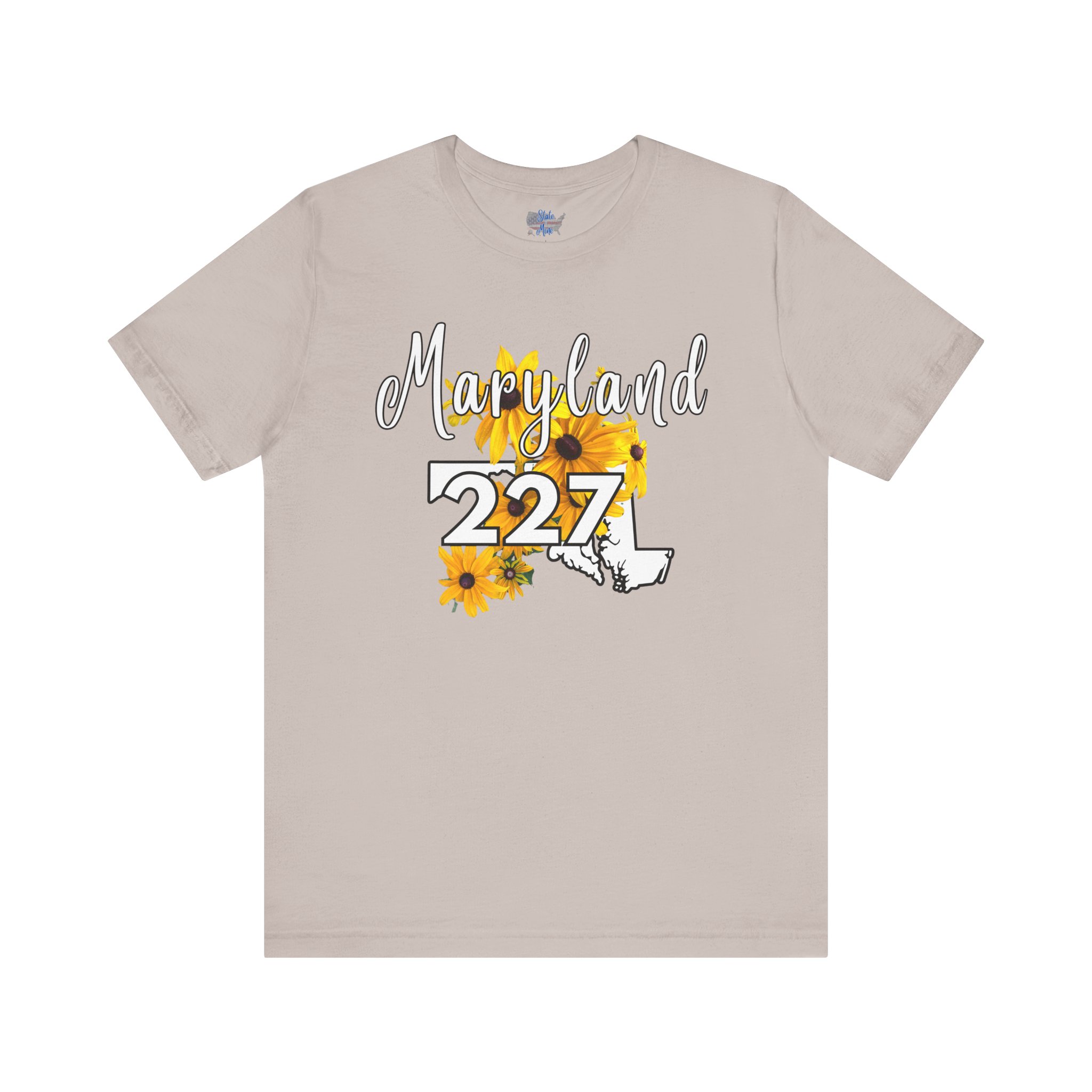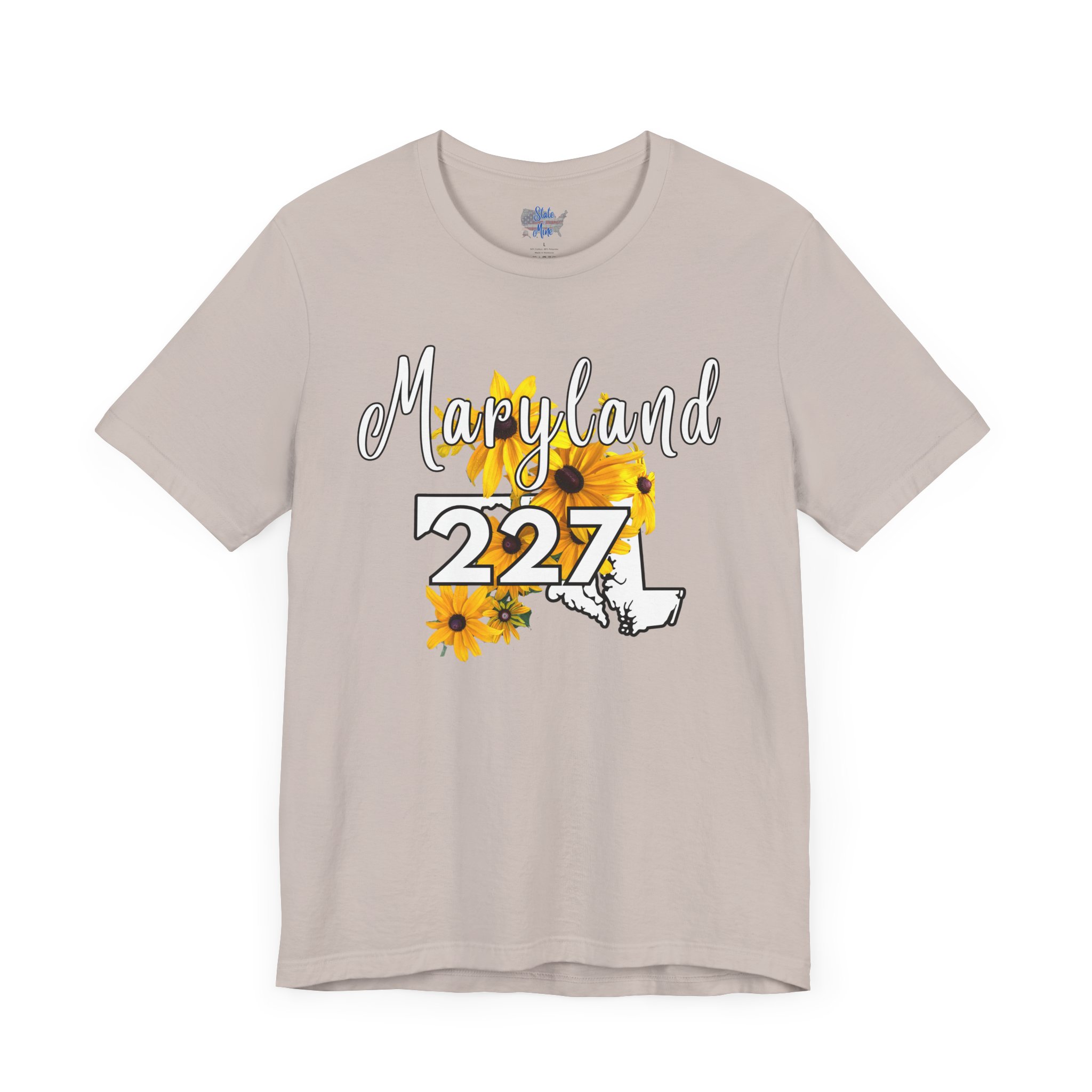 Maryland State Flower The Black-eyed Susan 227 Area Code by State of Mine Short Sleeve Tee, Casual Tee, Maryland Gift, Summer Shirt, State Pride Top, Floral Graphic Tee, Unisex T-Shirt