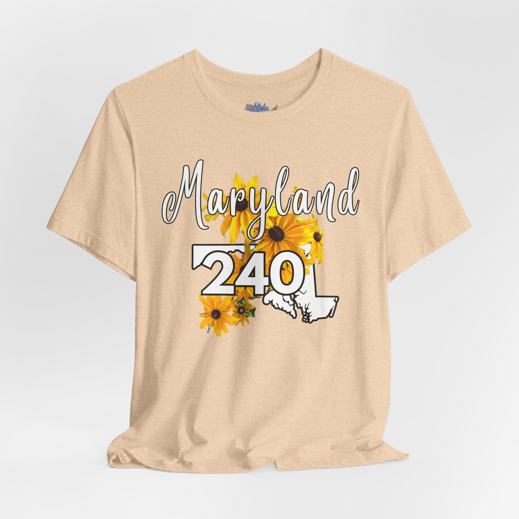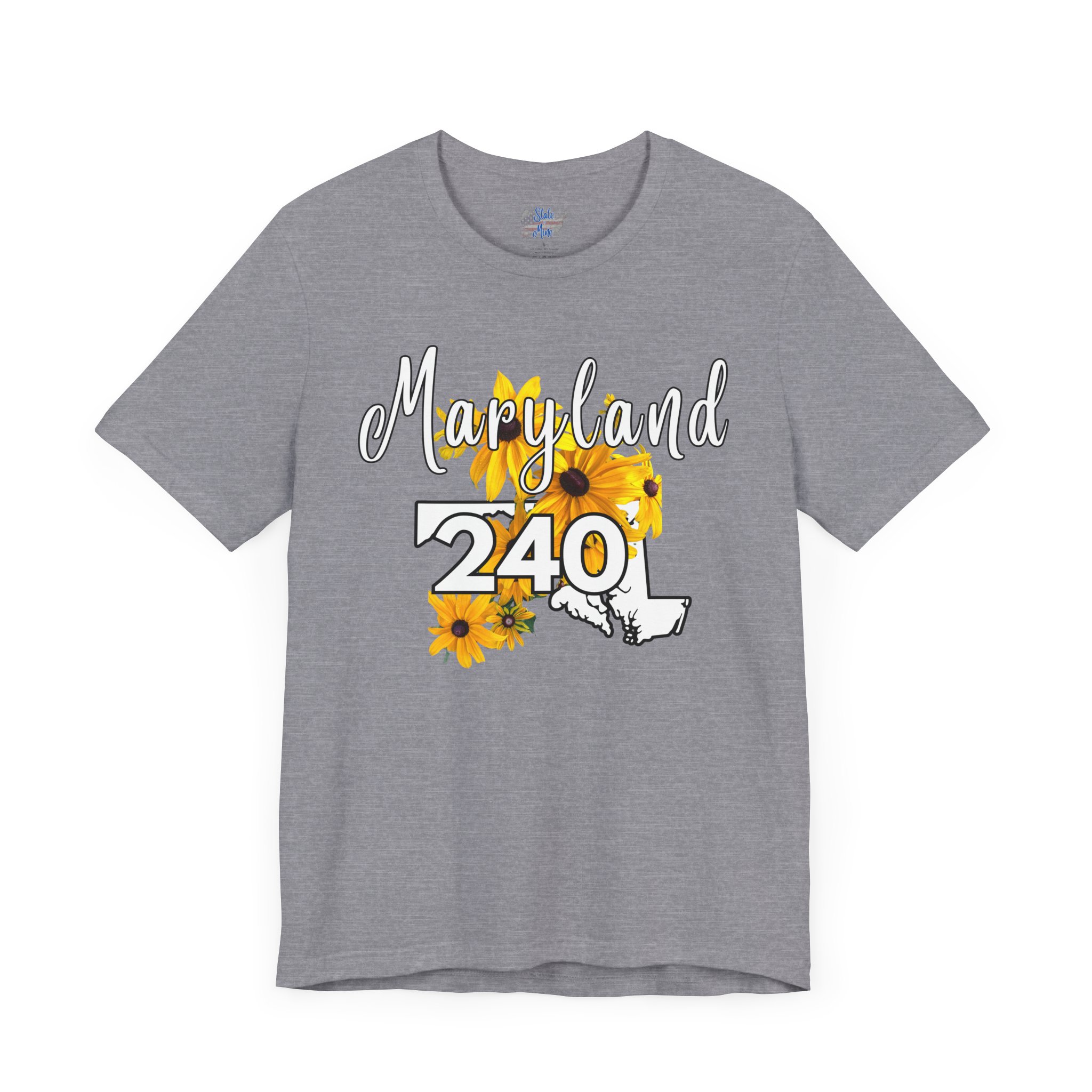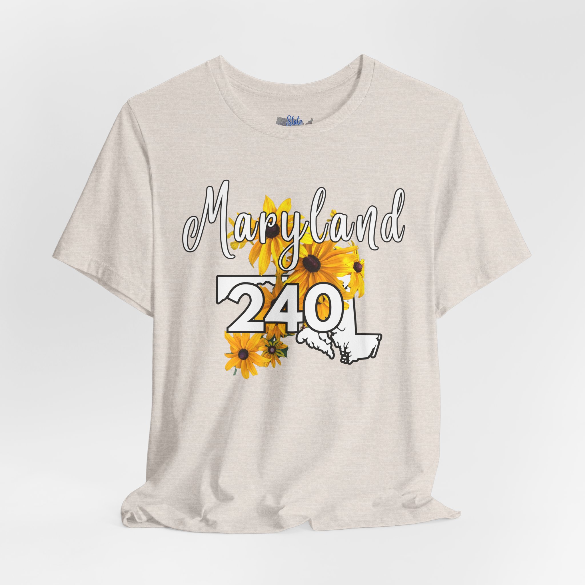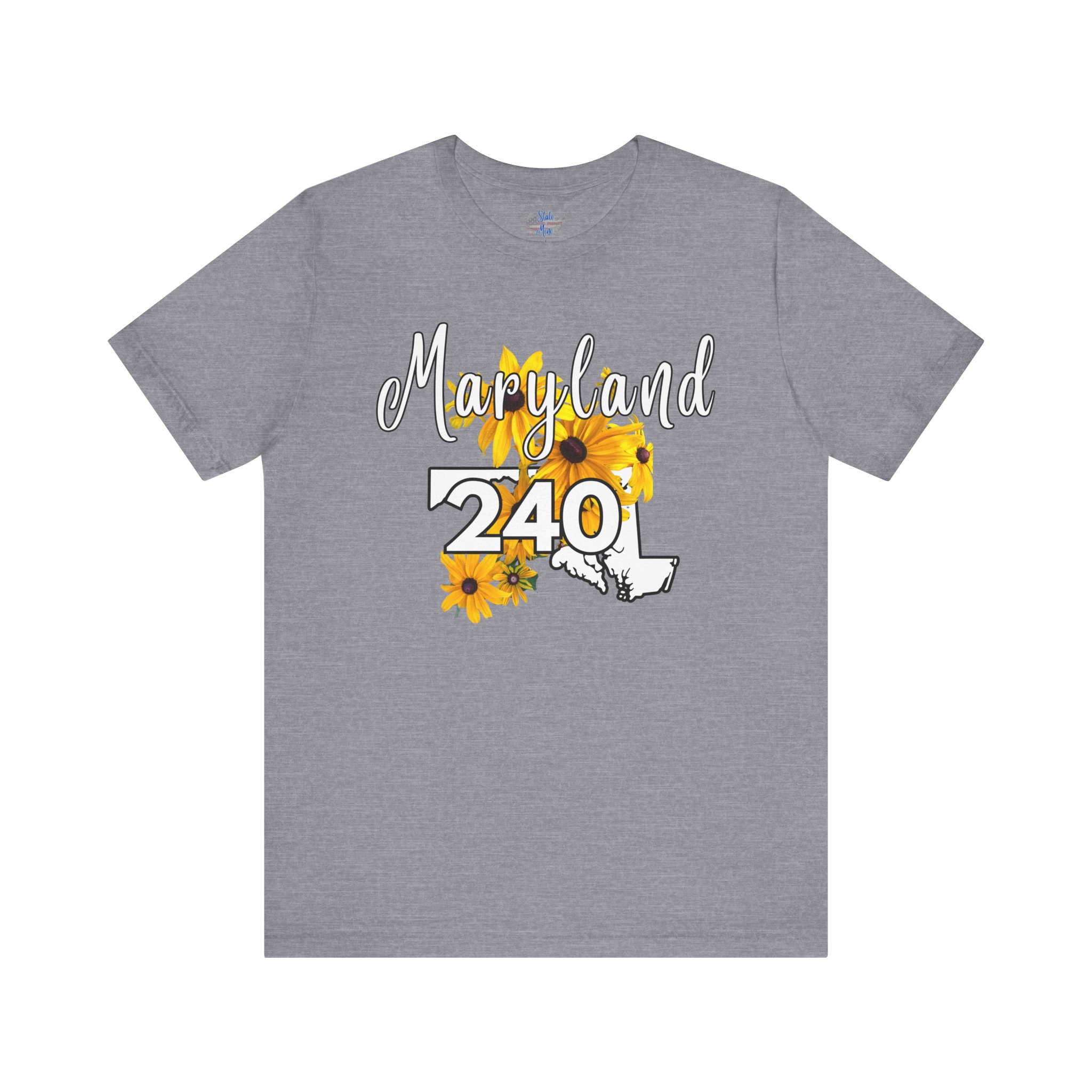 Maryland State Flower The Black-eyed Susan 240 Area Code by State of Mine Short Sleeve Tee, Casual Tee, Maryland Gift, Summer Shirt, State Pride Top, Floral Graphic Tee, Unisex T-Shirt