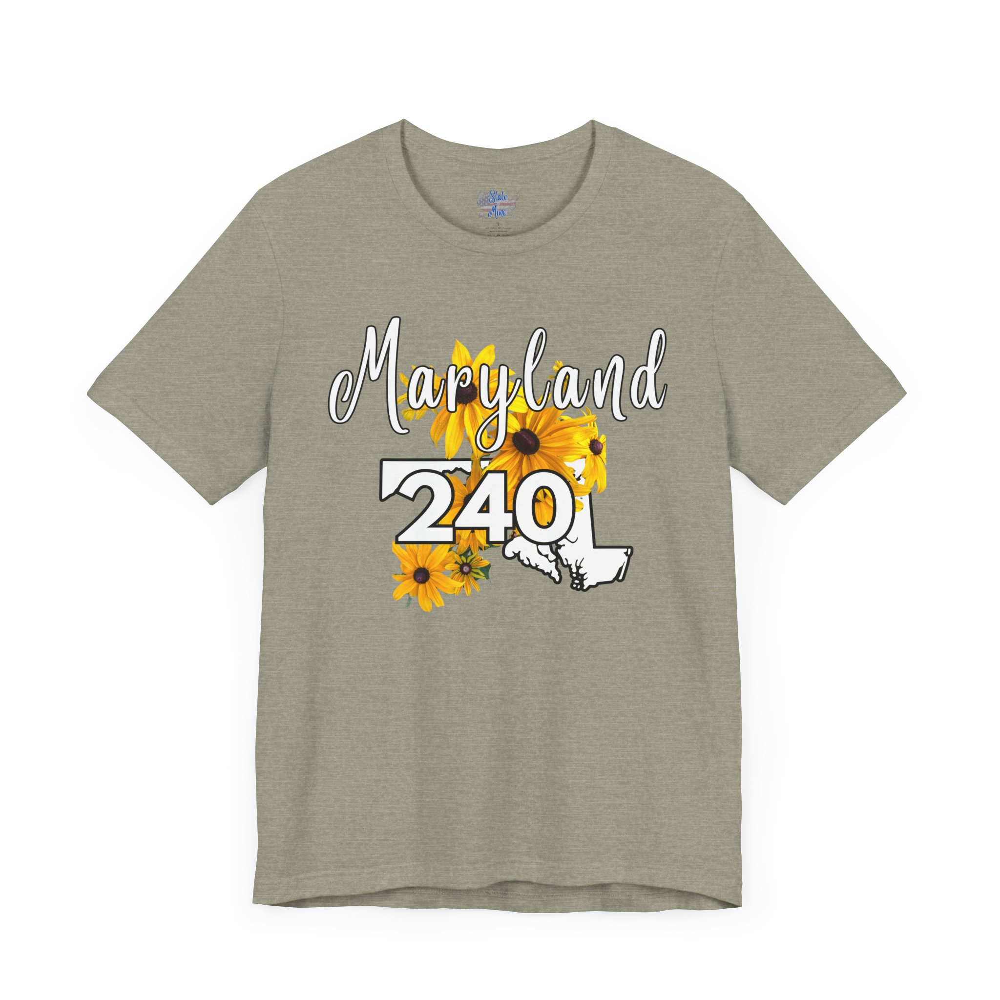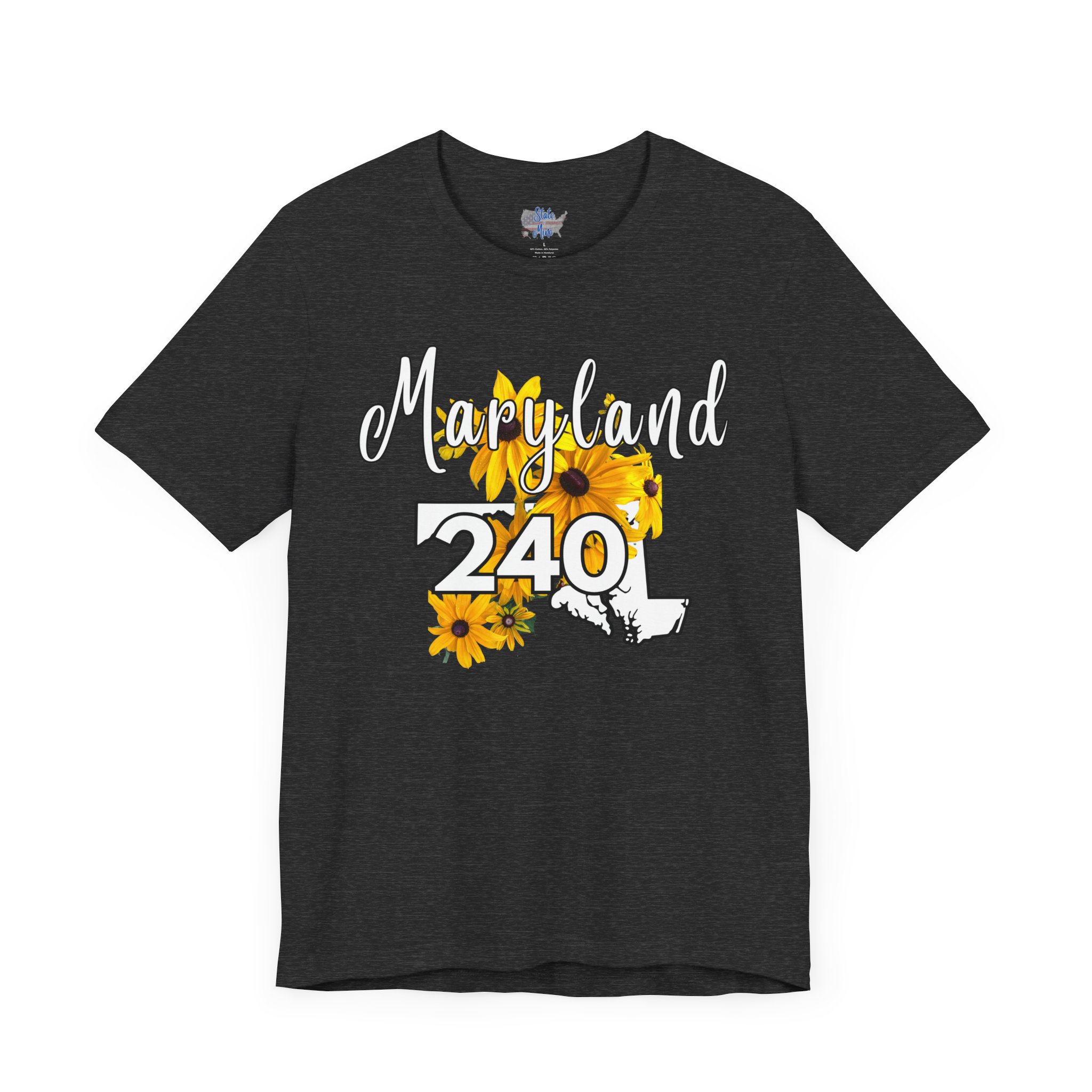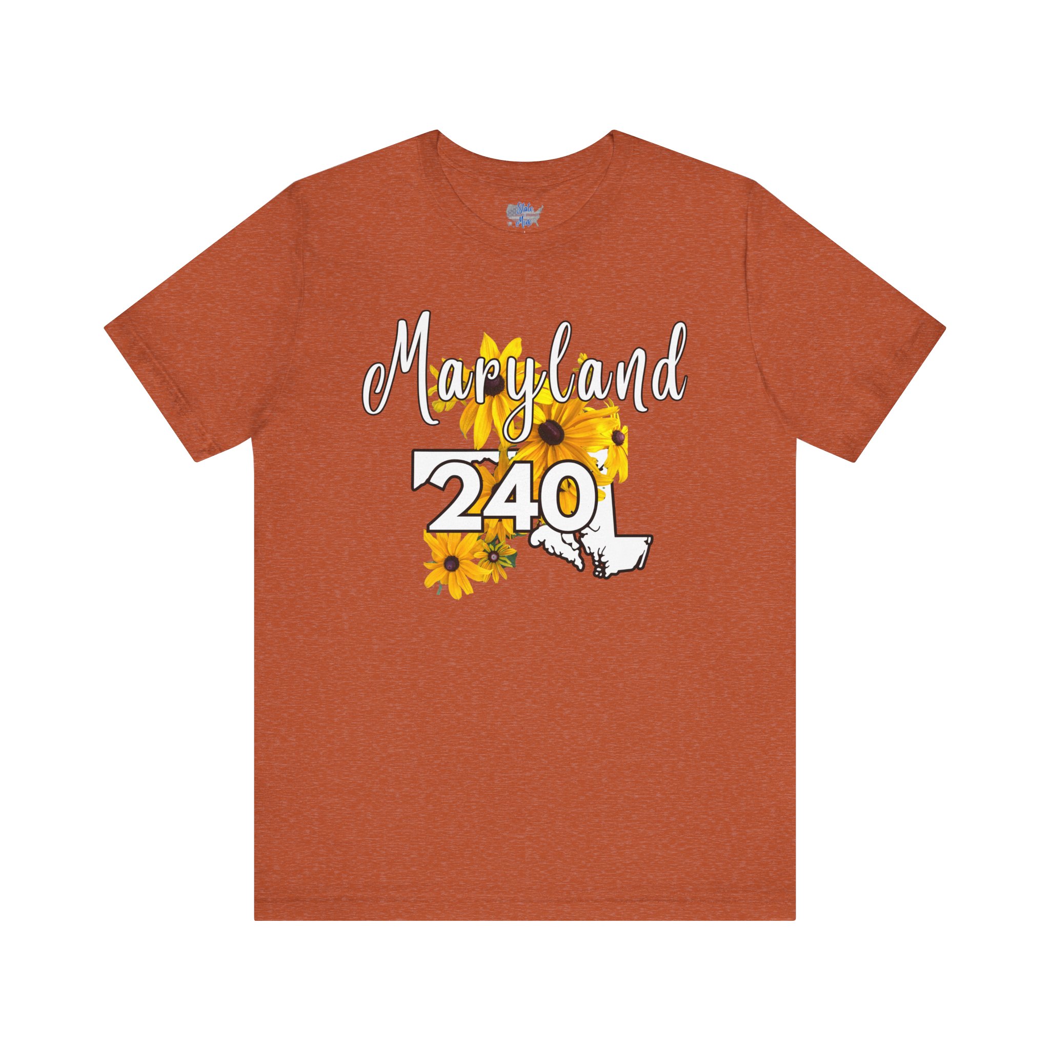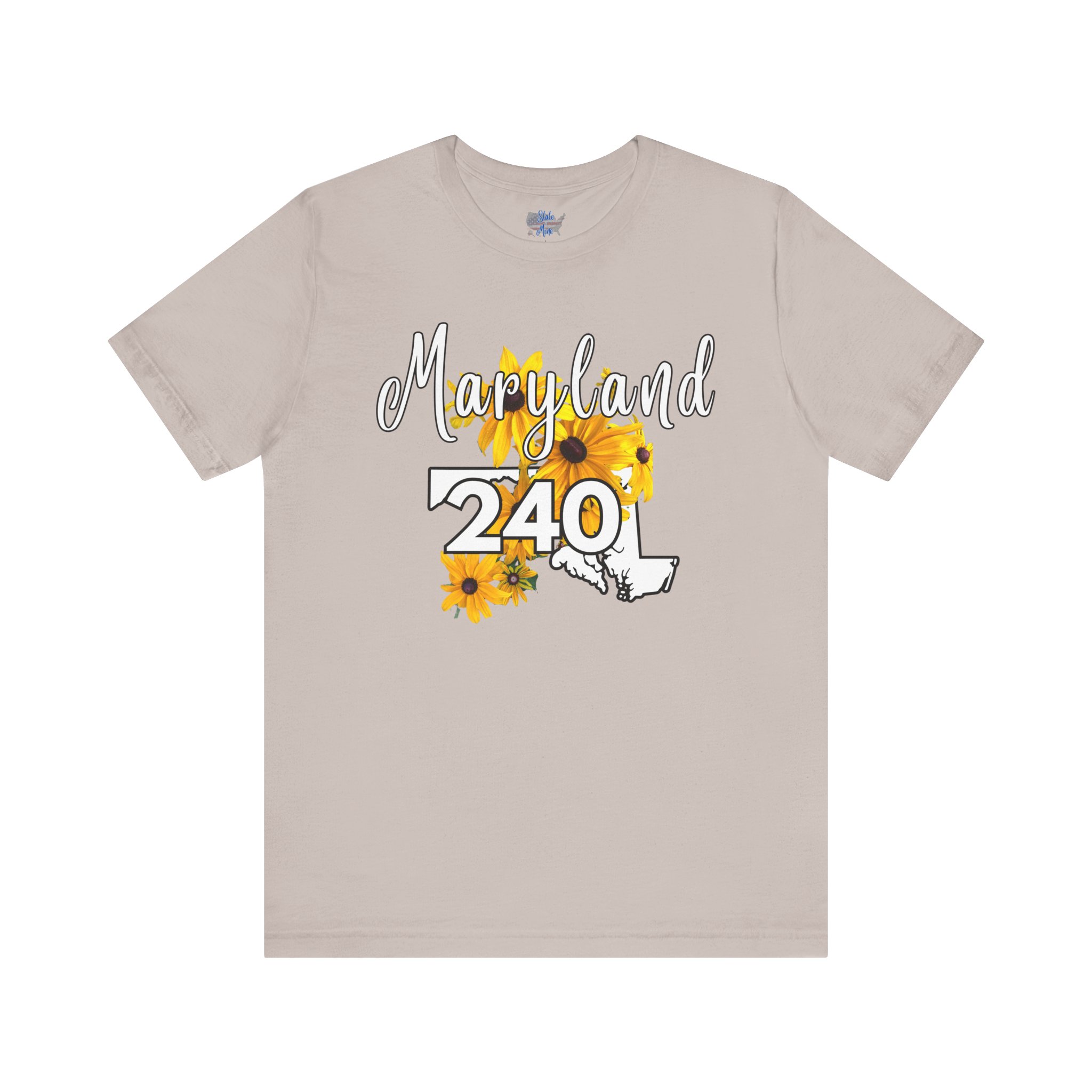 Maryland State Flower The Black-eyed Susan 240 Area Code by State of Mine Short Sleeve Tee, Casual Tee, Maryland Gift, Summer Shirt, State Pride Top, Floral Graphic Tee, Unisex T-Shirt