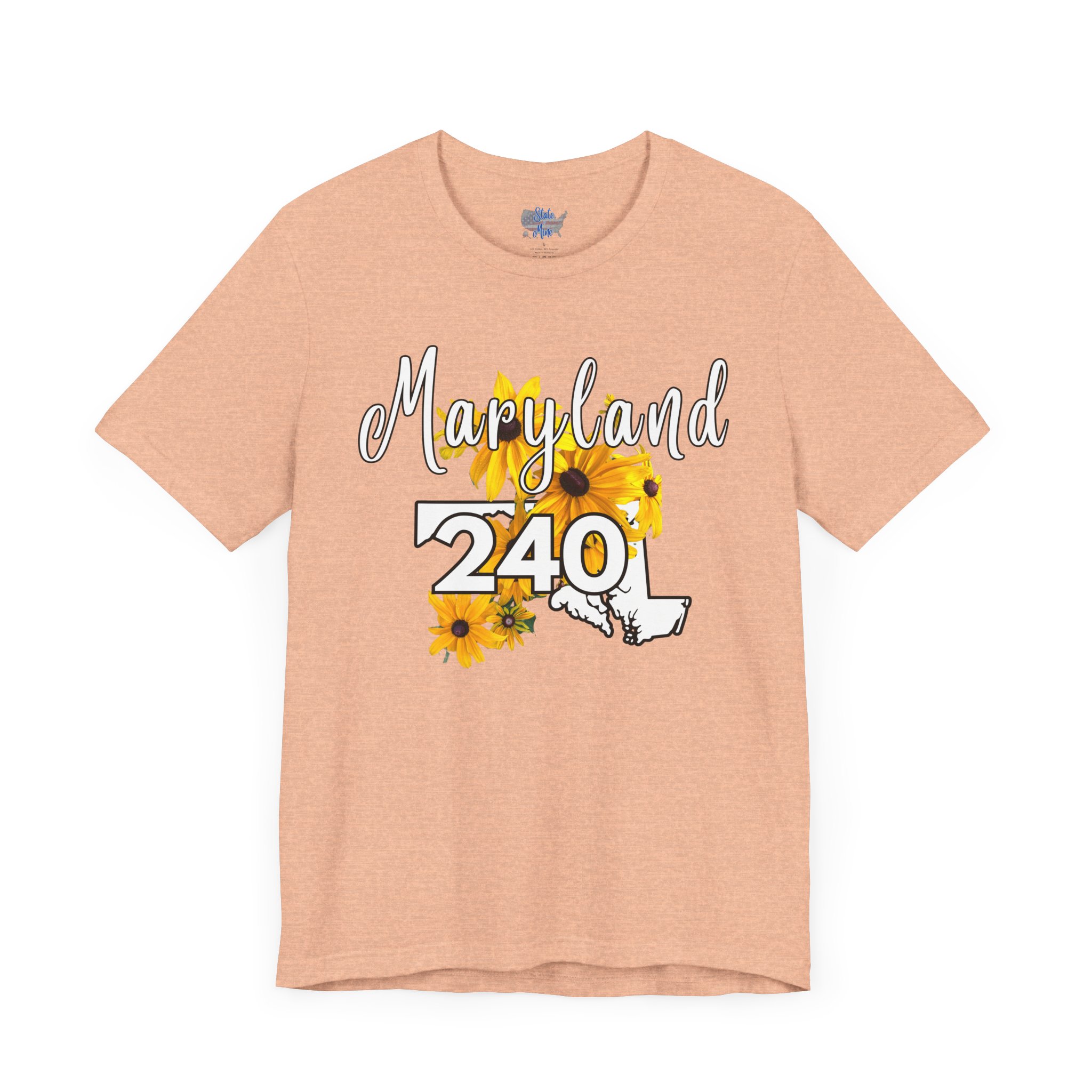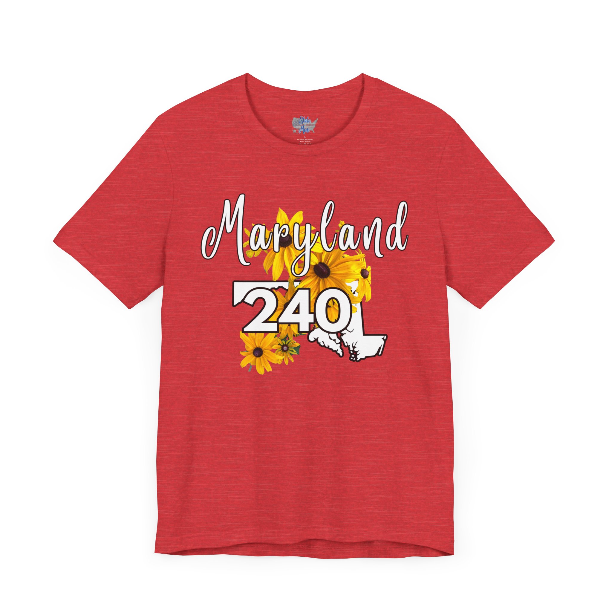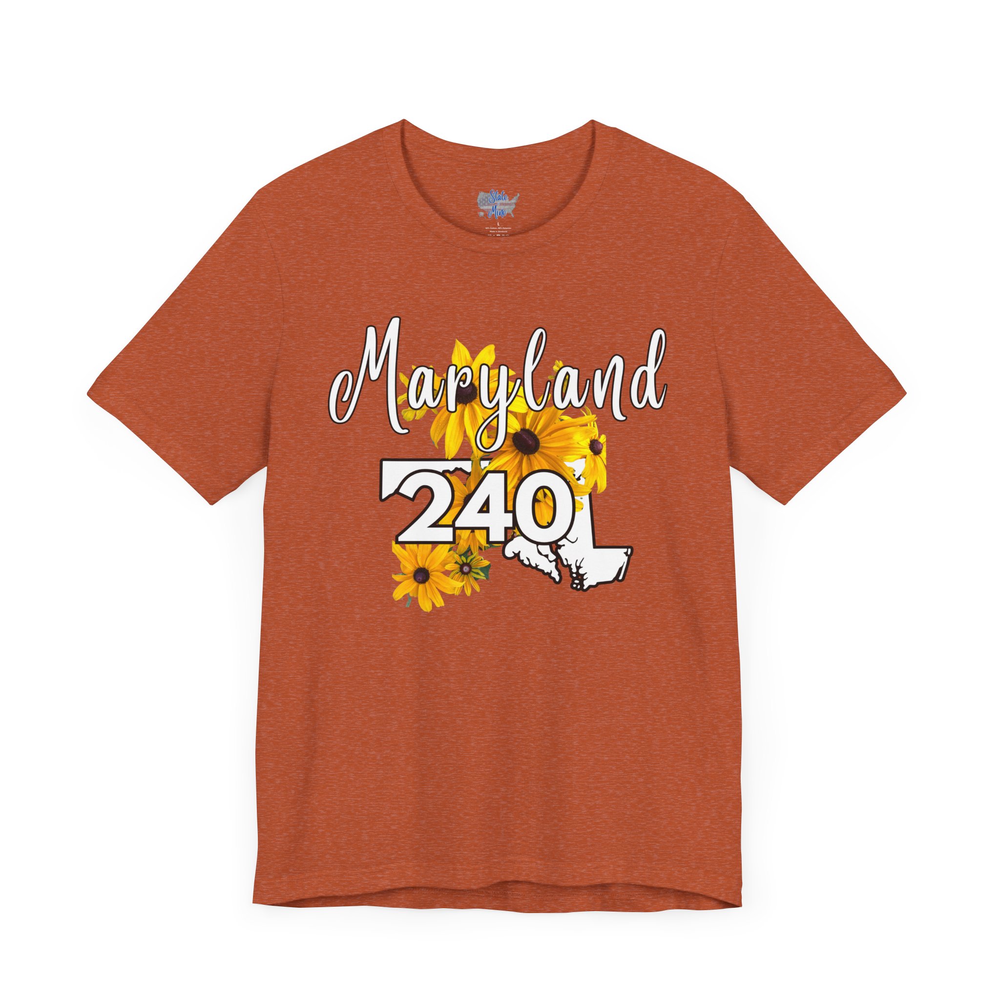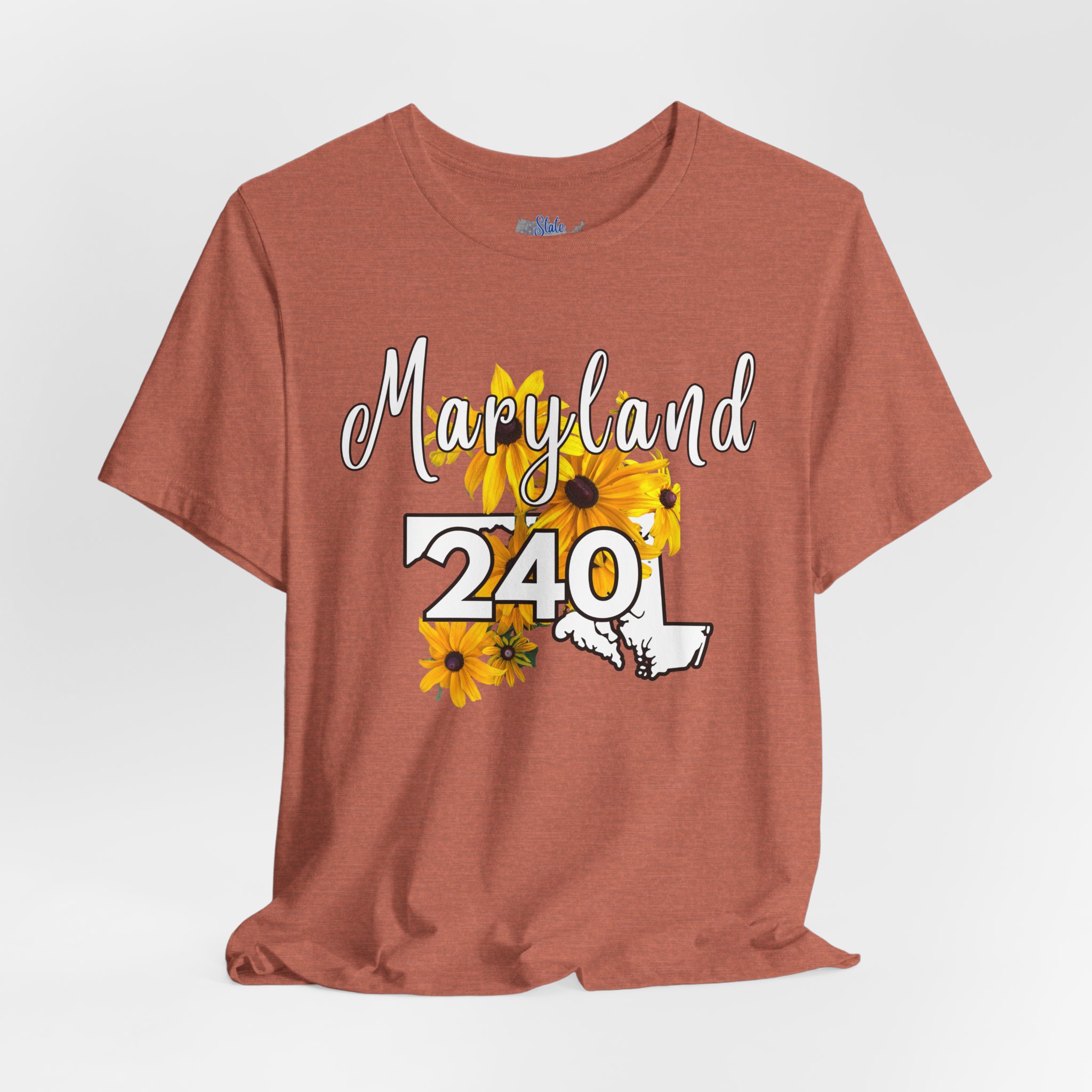 Maryland State Flower The Black-eyed Susan 240 Area Code by State of Mine Short Sleeve Tee, Casual Tee, Maryland Gift, Summer Shirt, State Pride Top, Floral Graphic Tee, Unisex T-Shirt