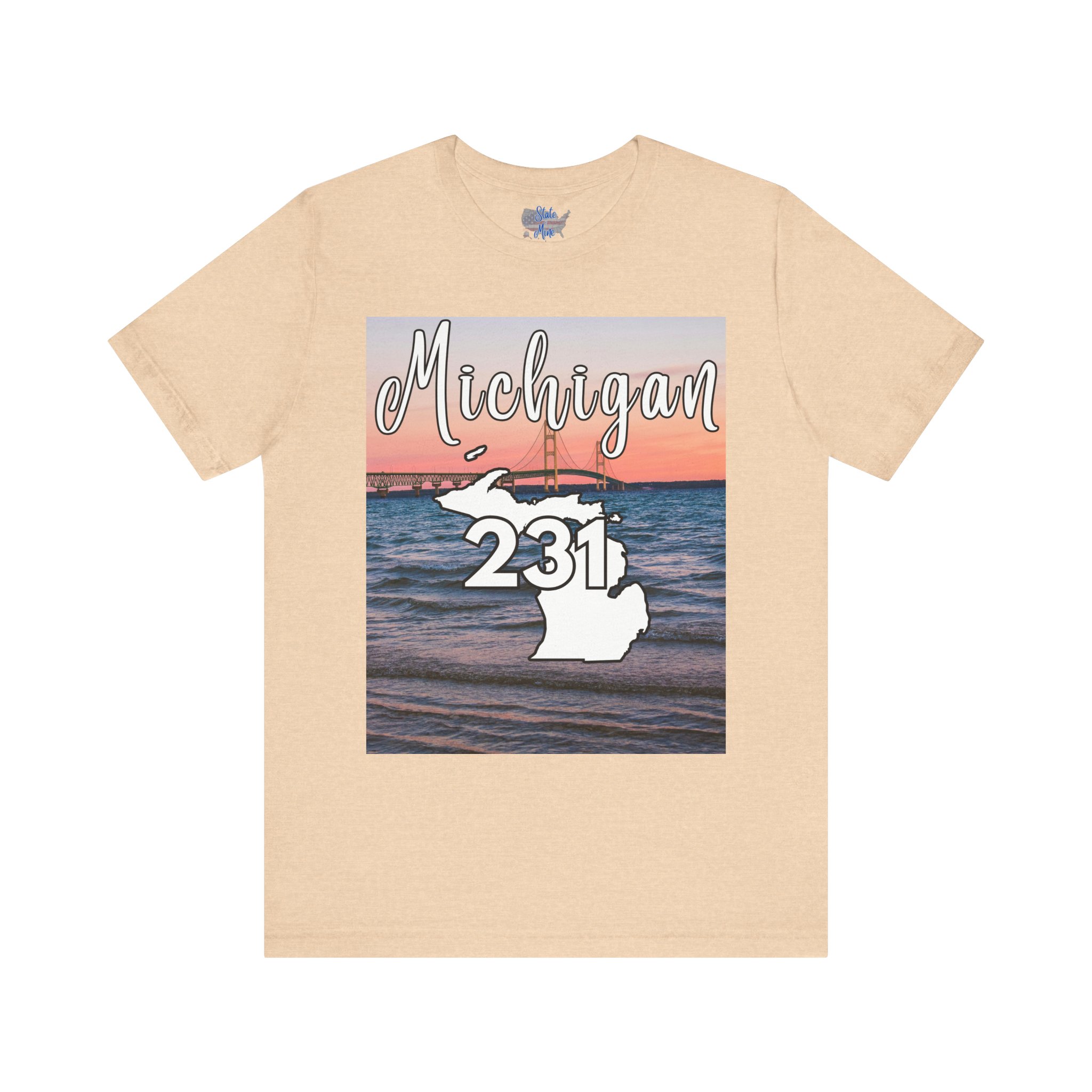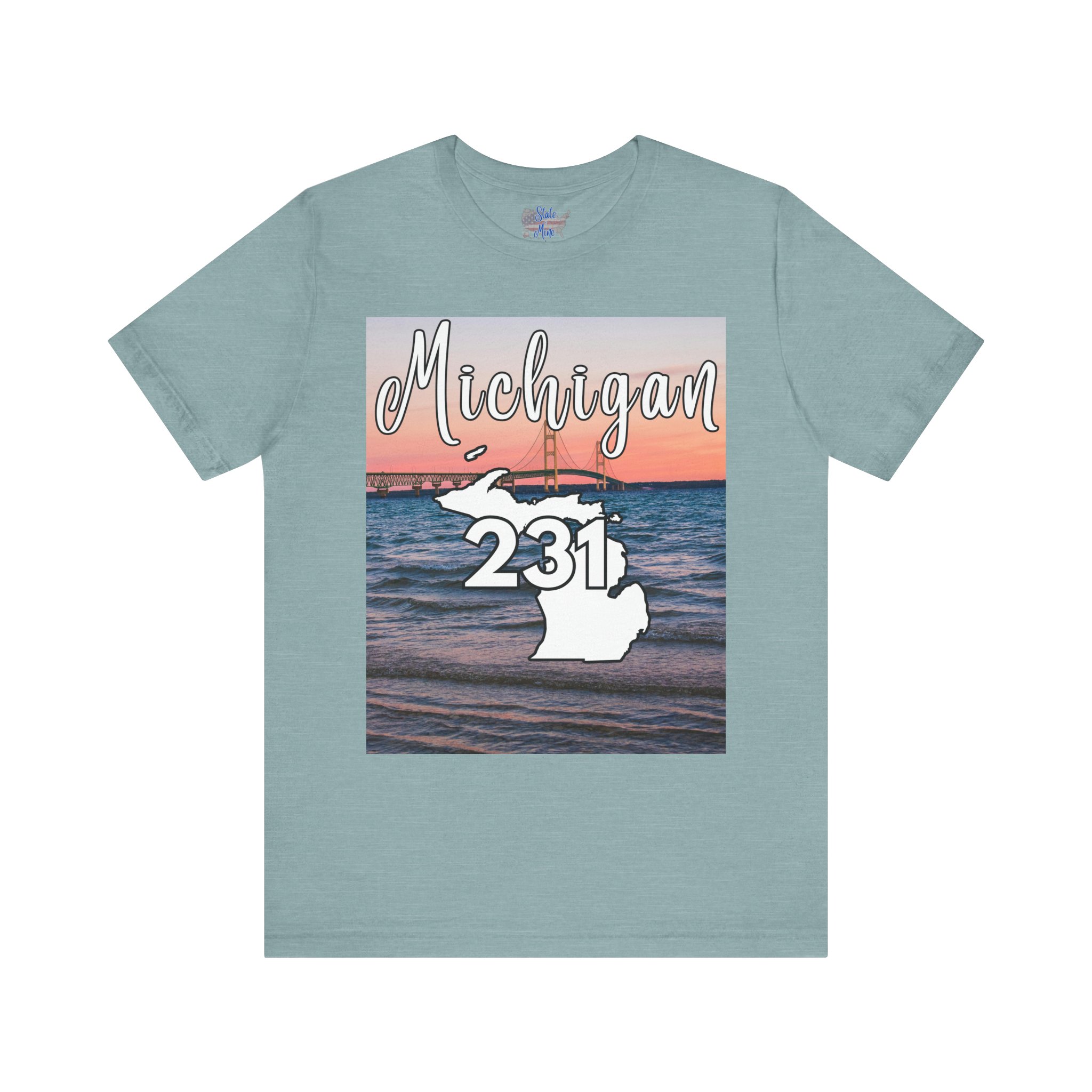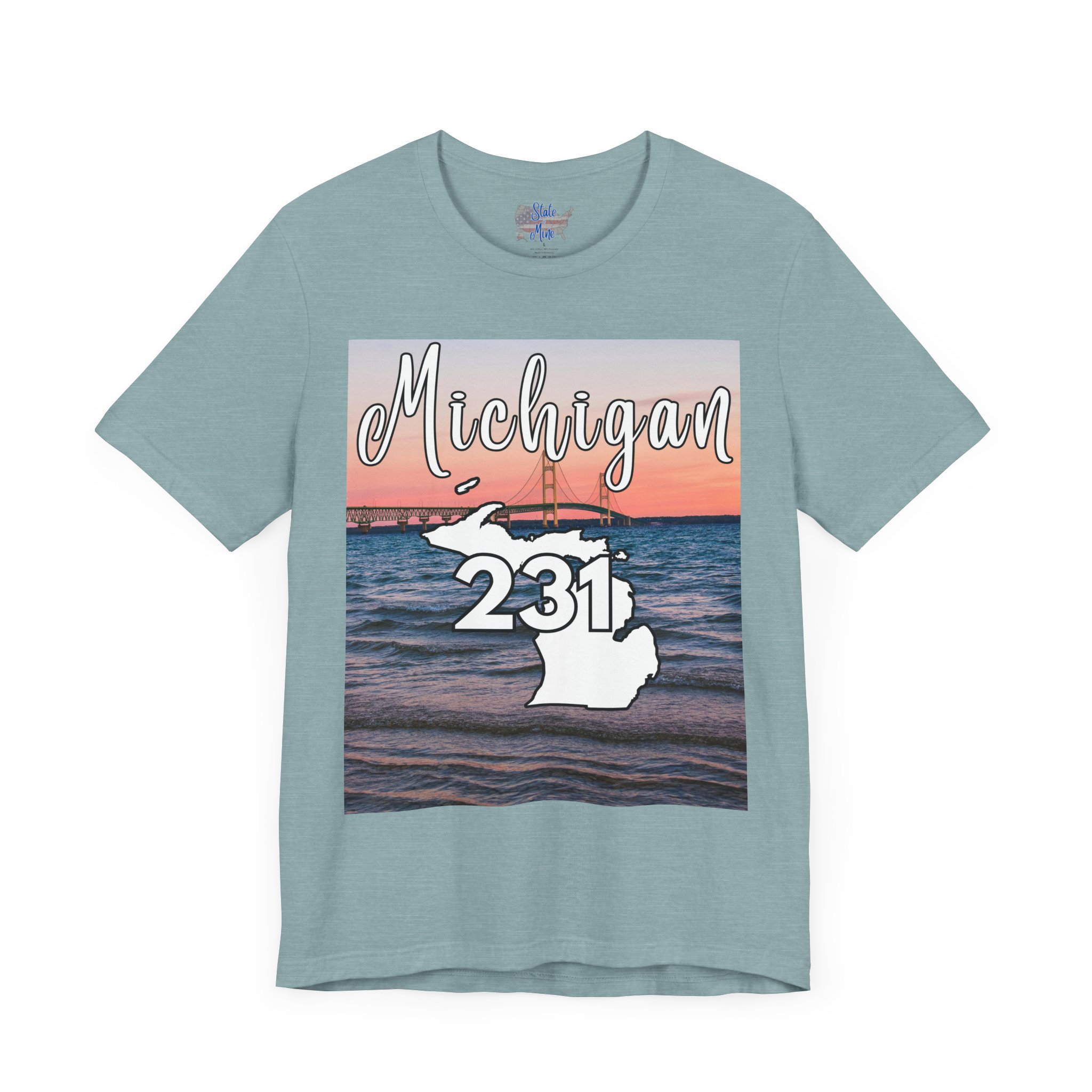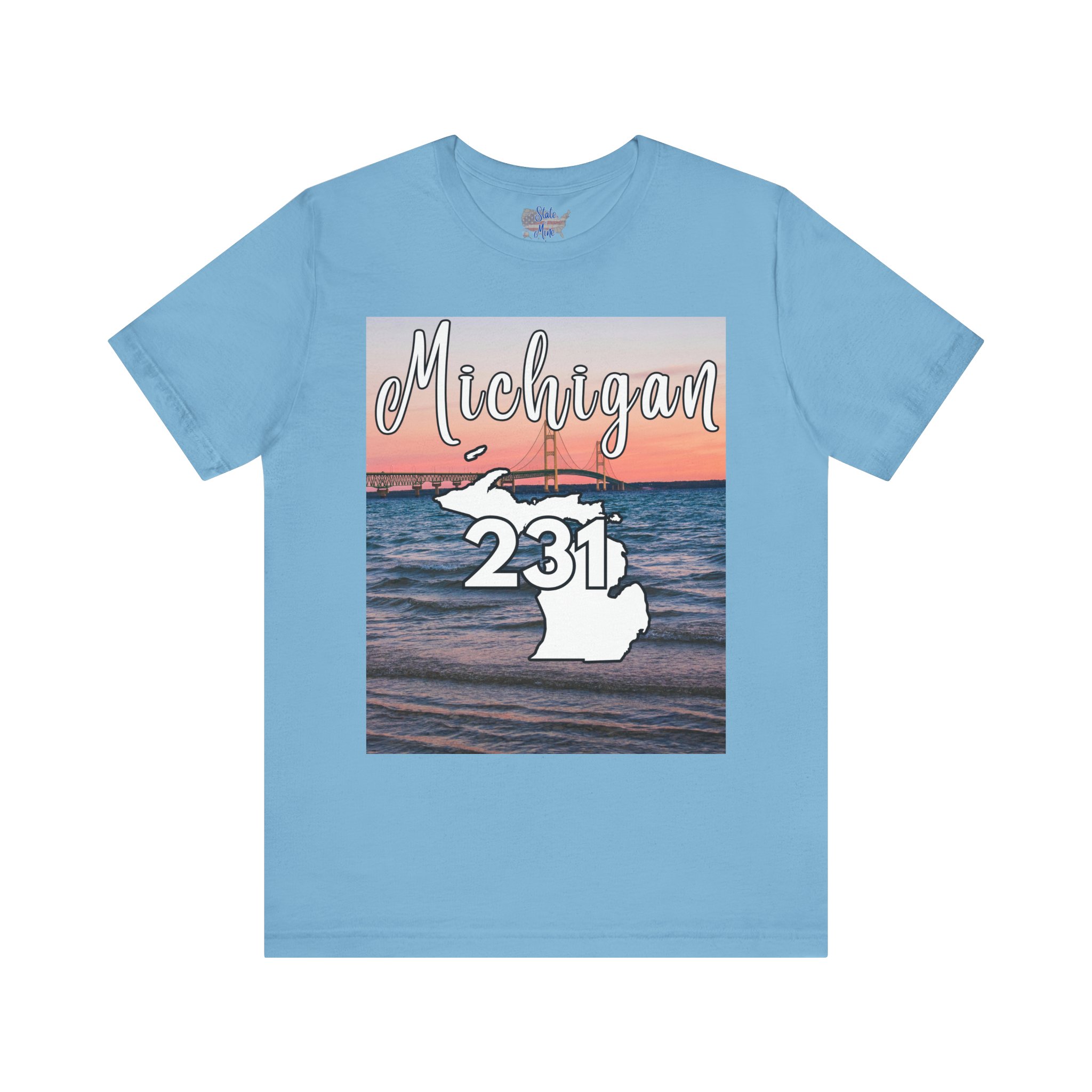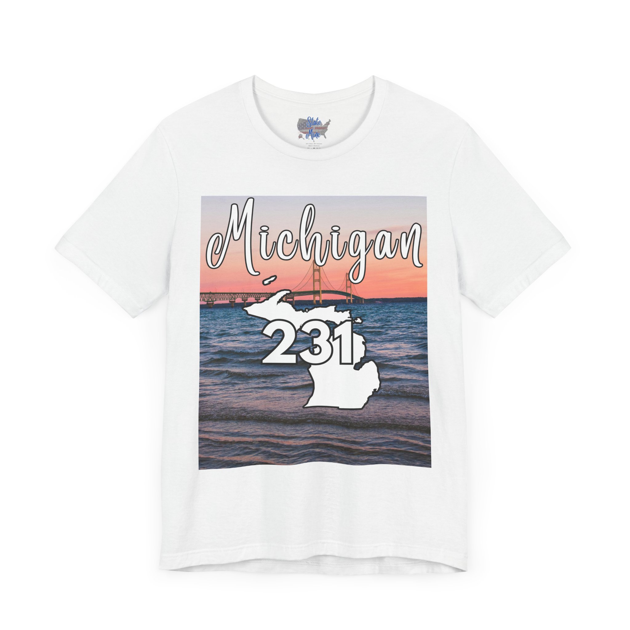 Michigan 231 Area Code by State of Mine Short Sleeve Tee – Mackinac Bridge, Unisex Jersey T-Shirt, Perfect Gift for Beach Lovers, Summer Style, Michigan Souvenir