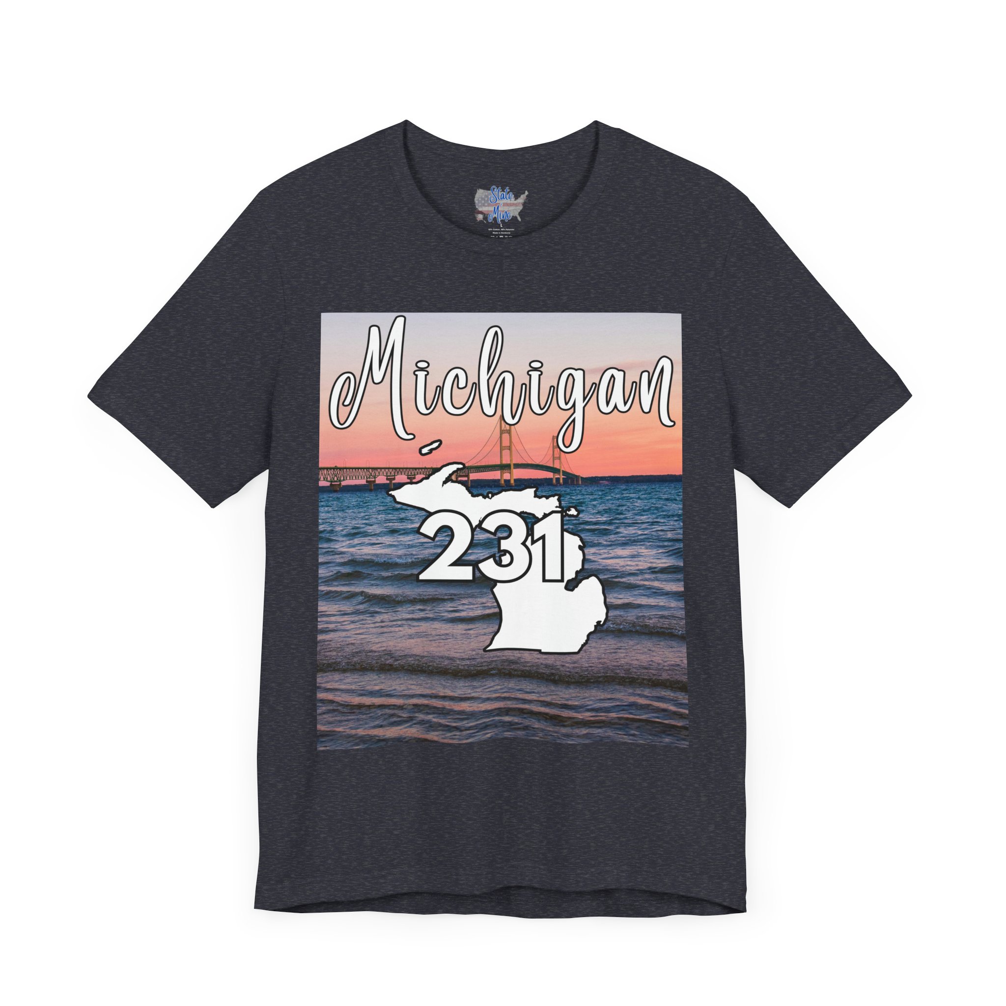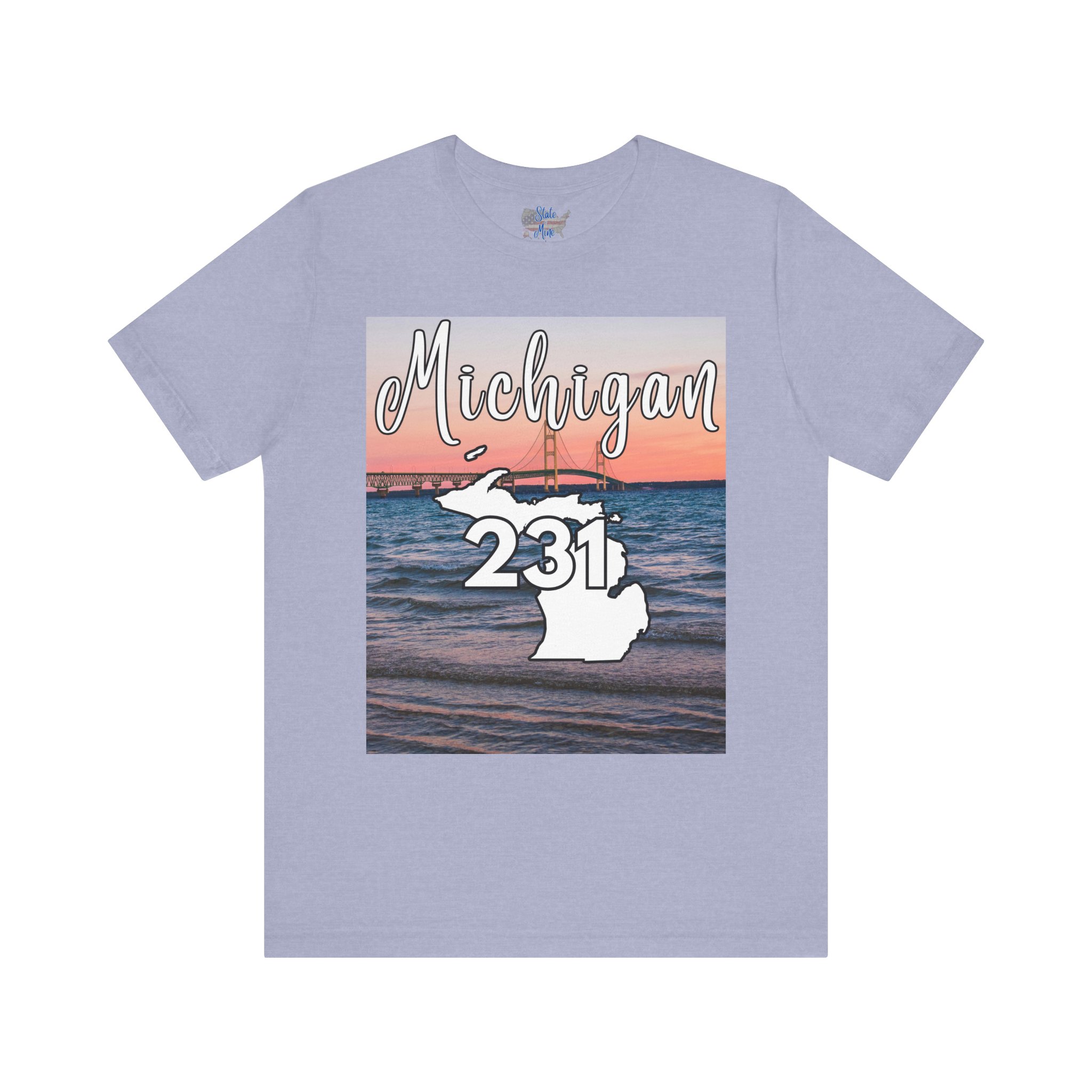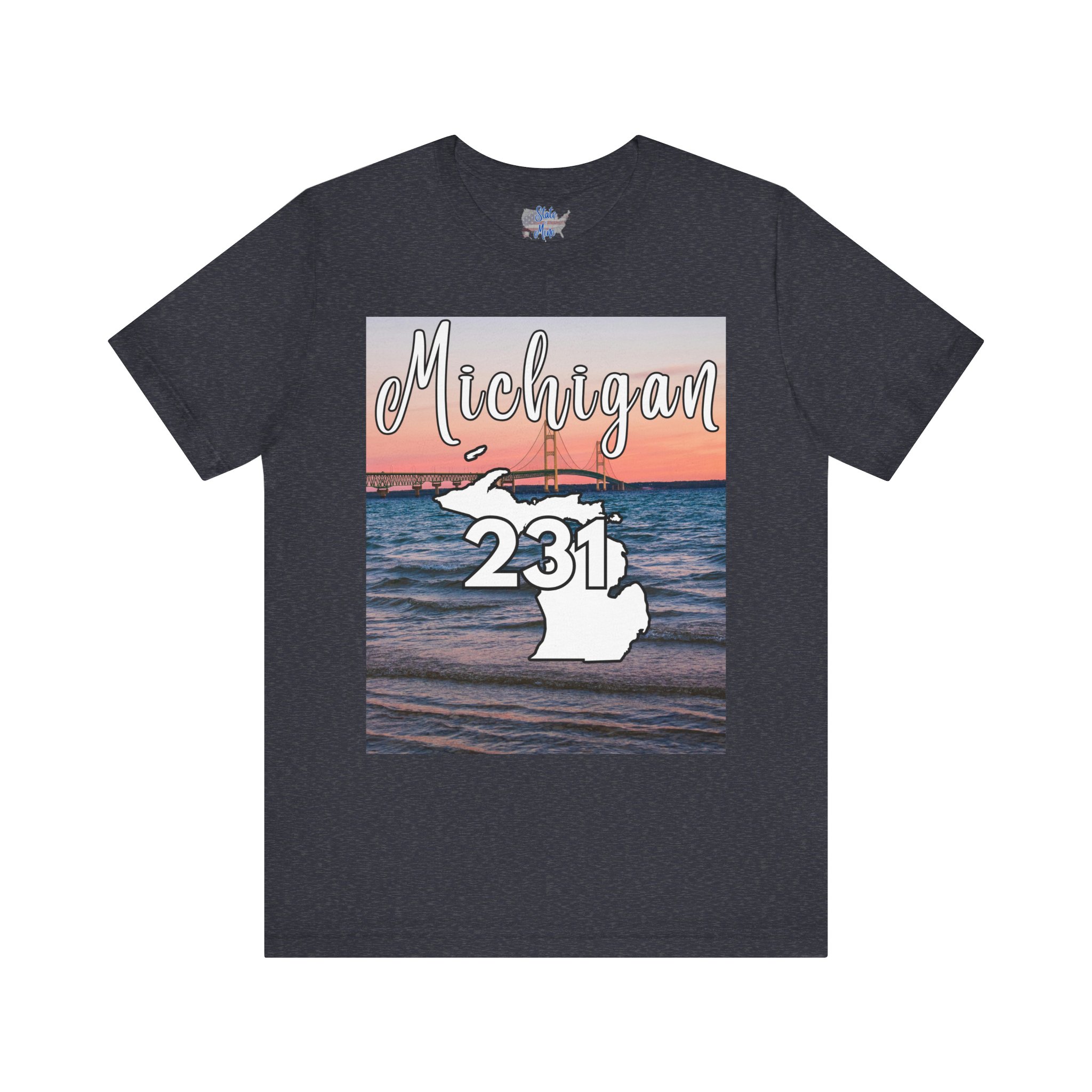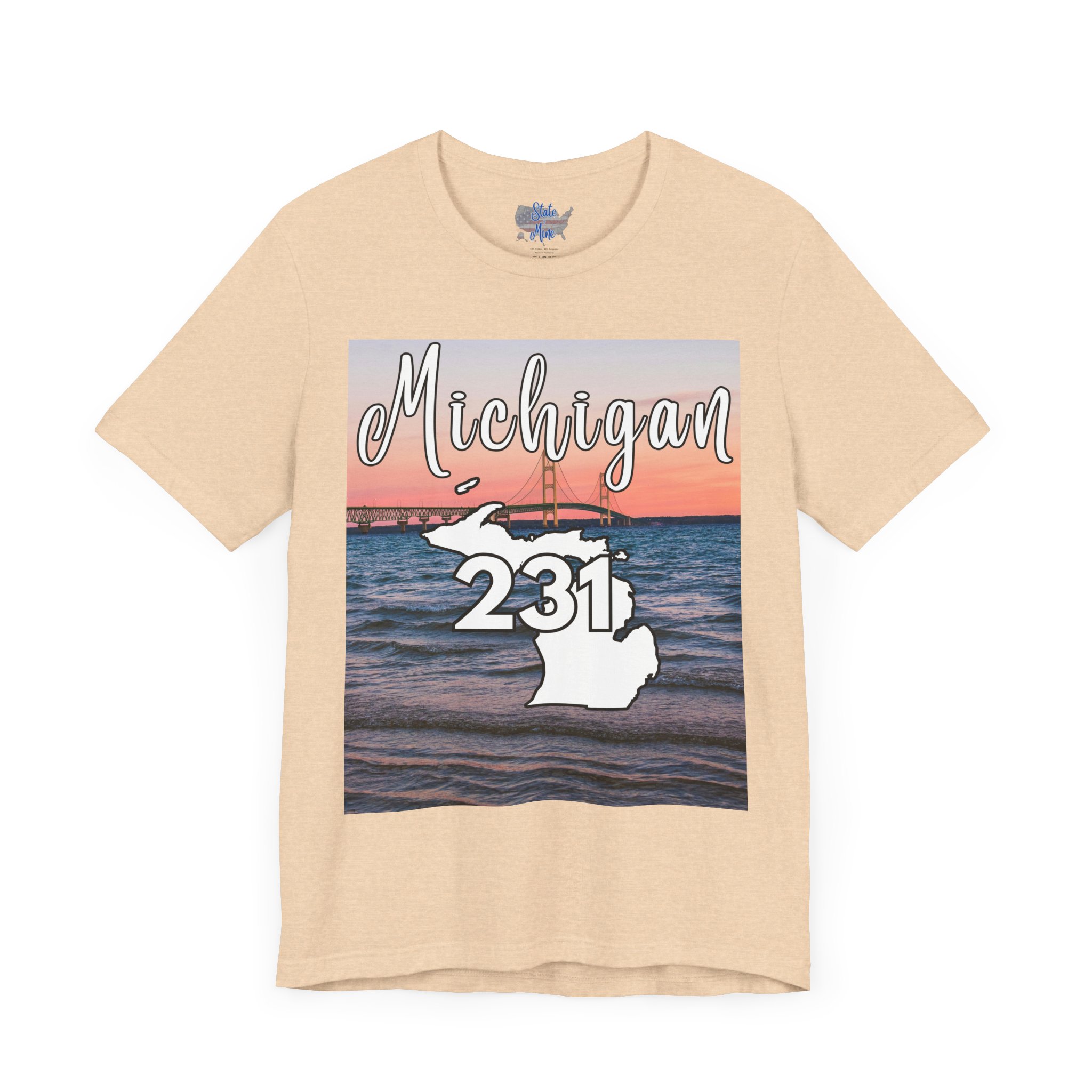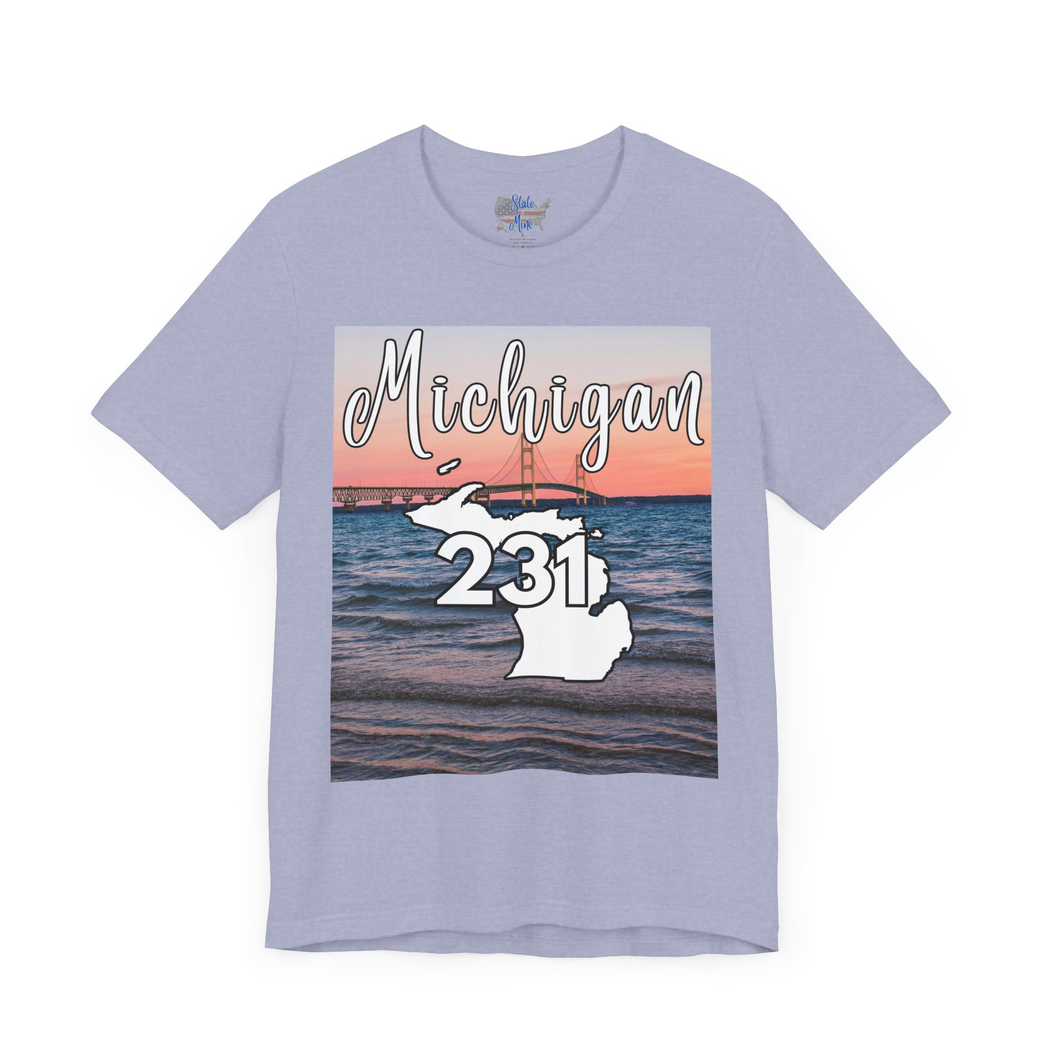 Michigan 231 Area Code by State of Mine Short Sleeve Tee – Mackinac Bridge, Unisex Jersey T-Shirt, Perfect Gift for Beach Lovers, Summer Style, Michigan Souvenir