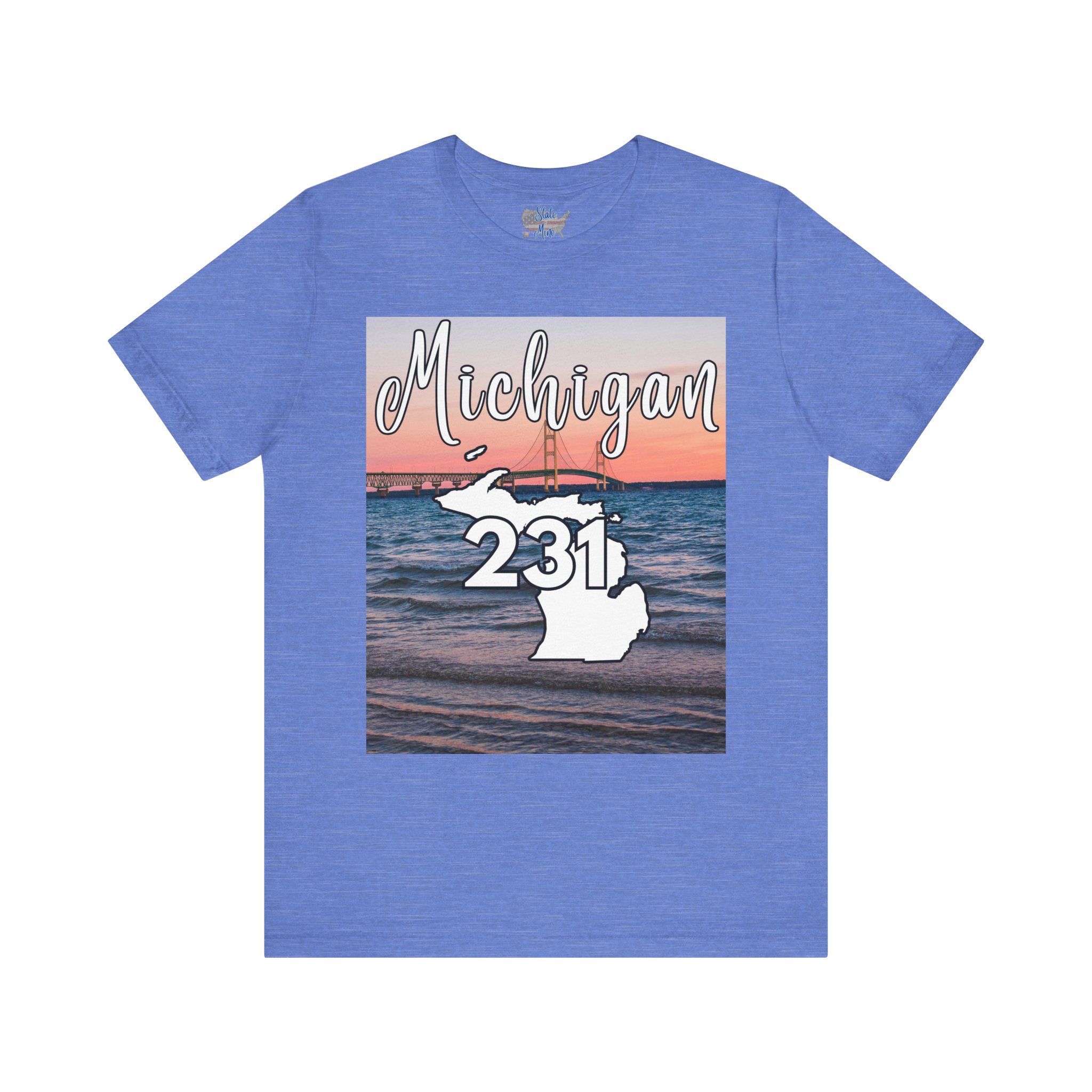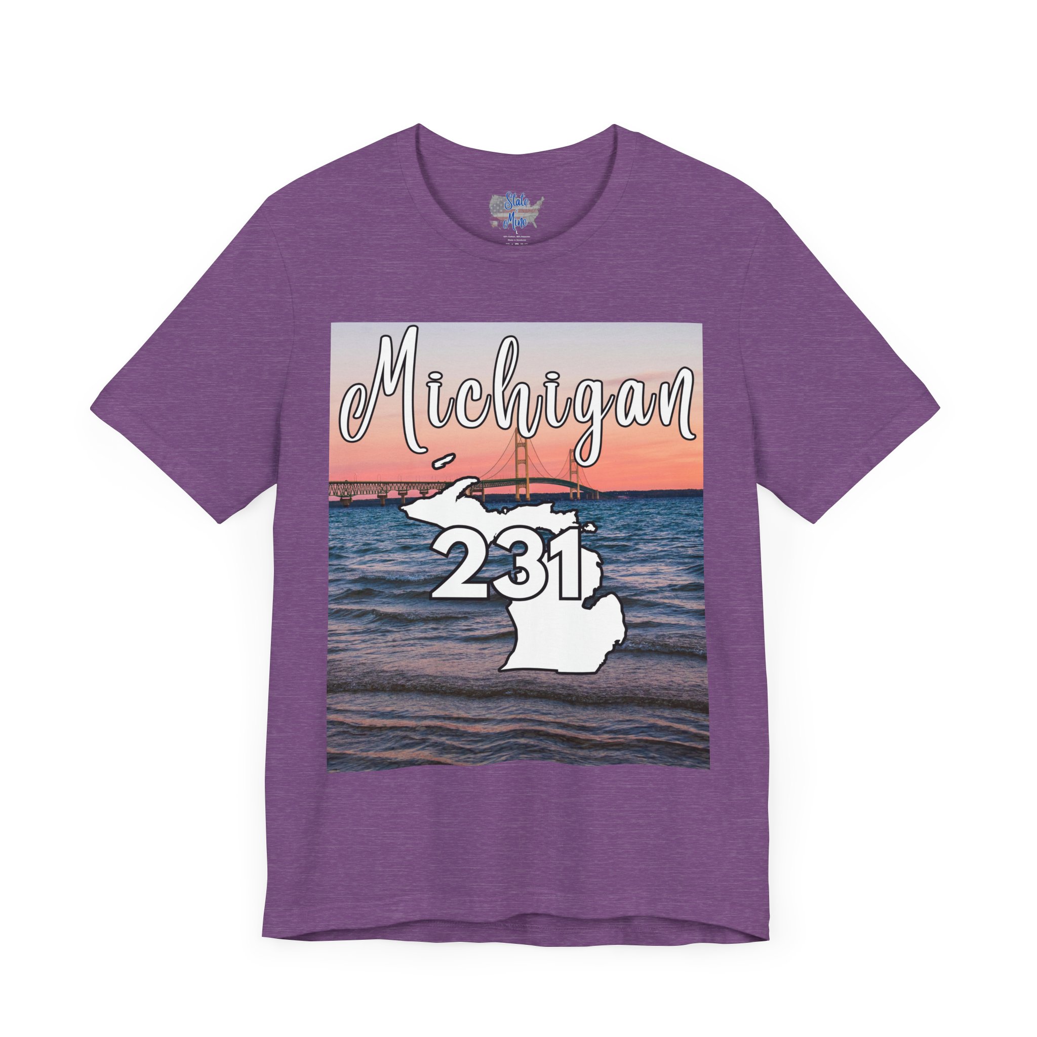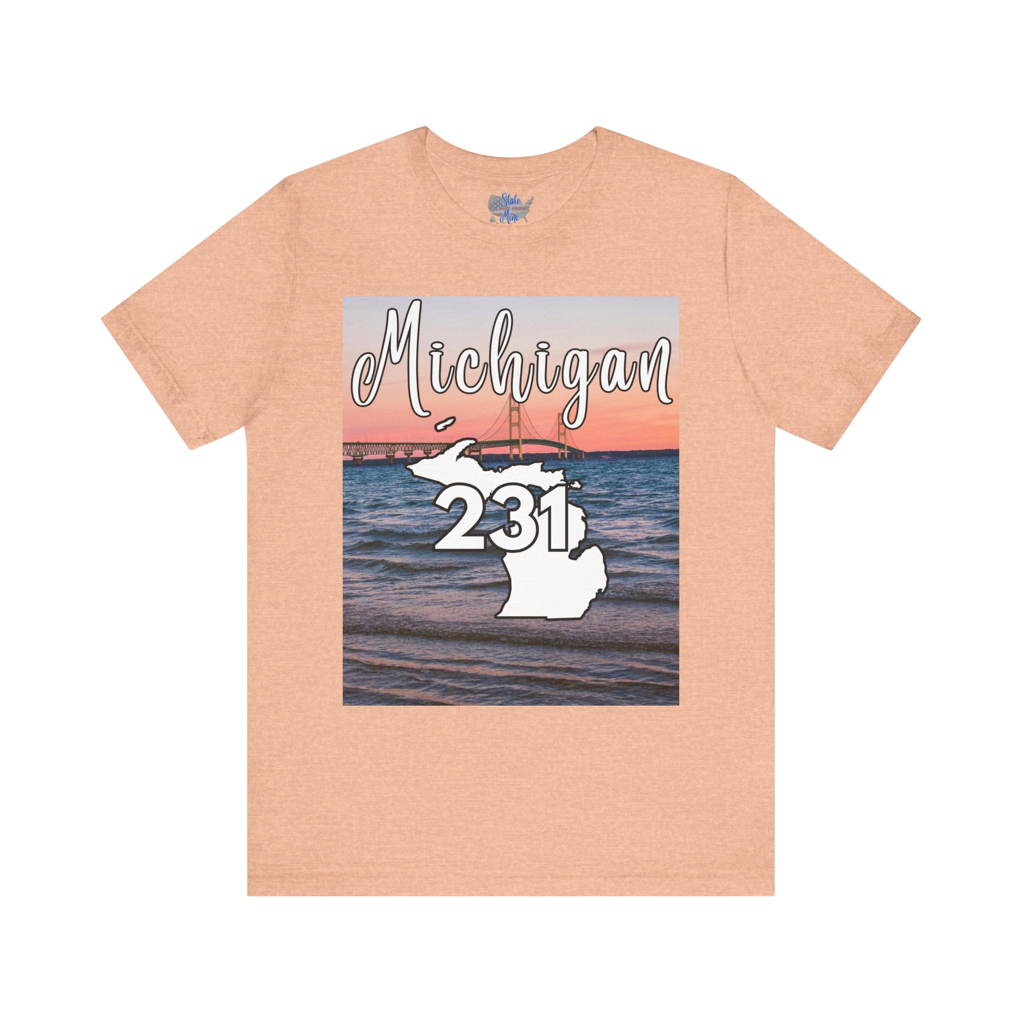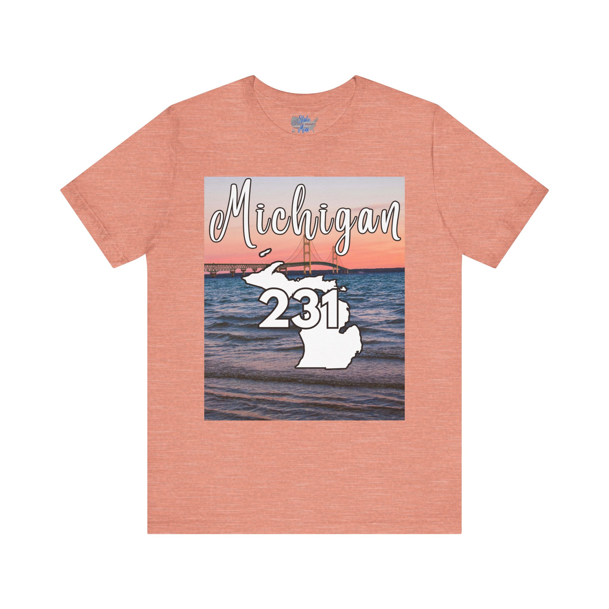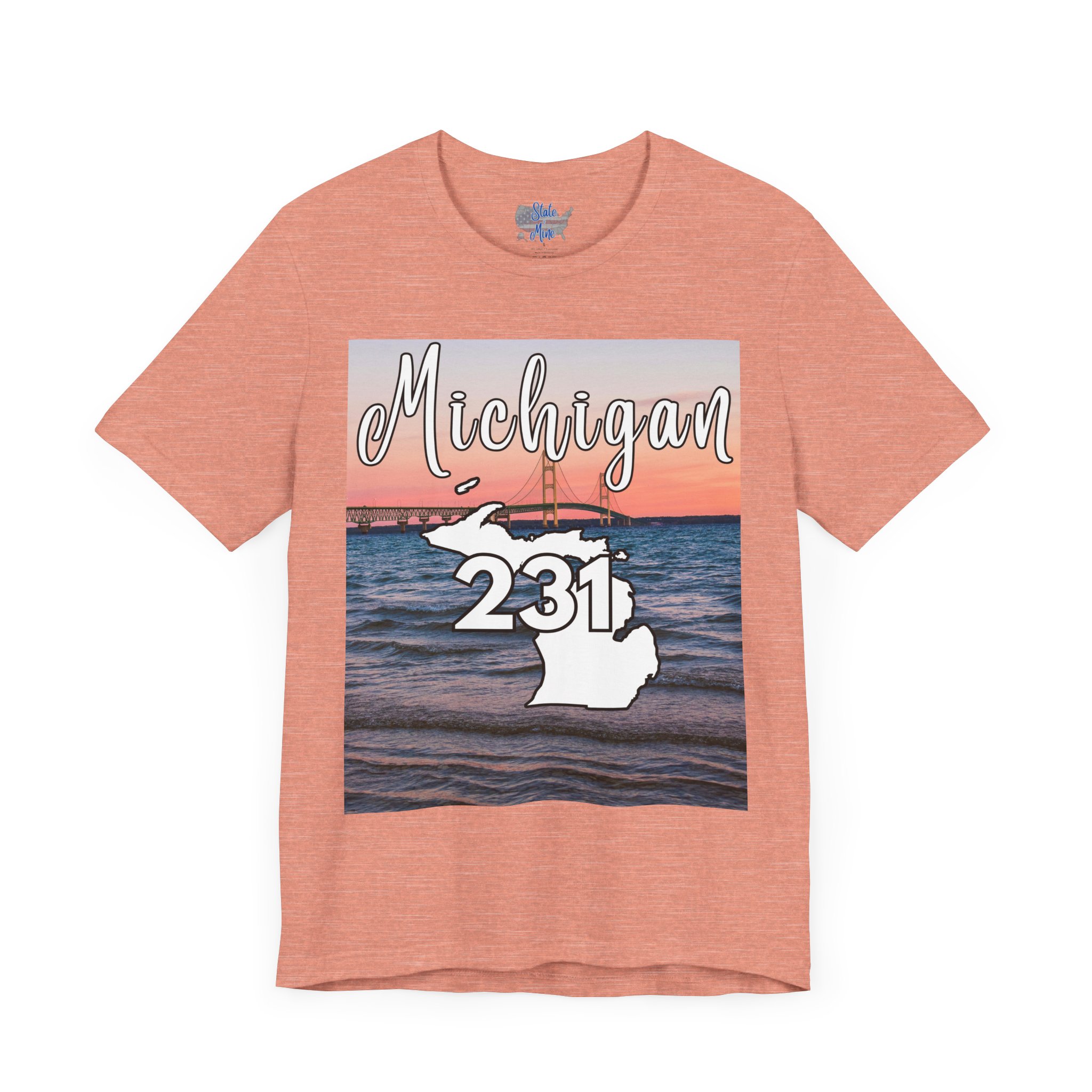Michigan 231 Area Code by State of Mine Short Sleeve Tee – Mackinac Bridge, Unisex Jersey T-Shirt, Perfect Gift for Beach Lovers, Summer Style, Michigan Souvenir