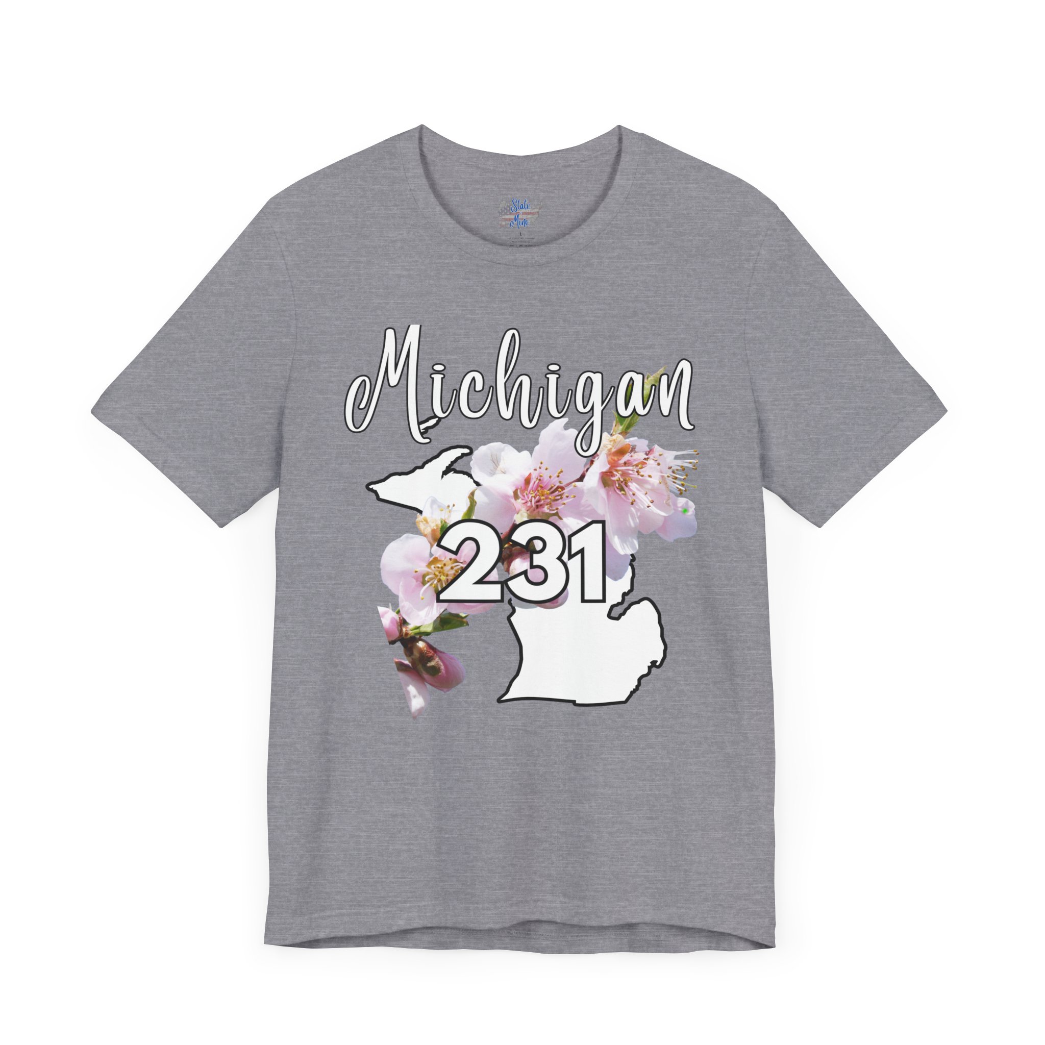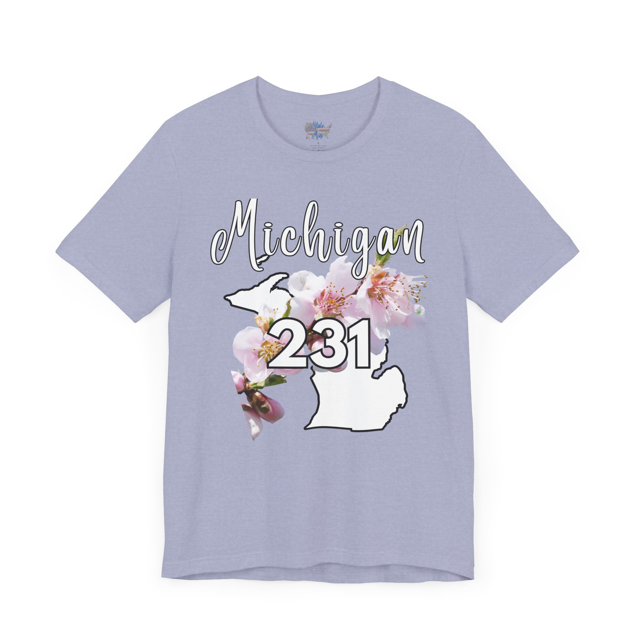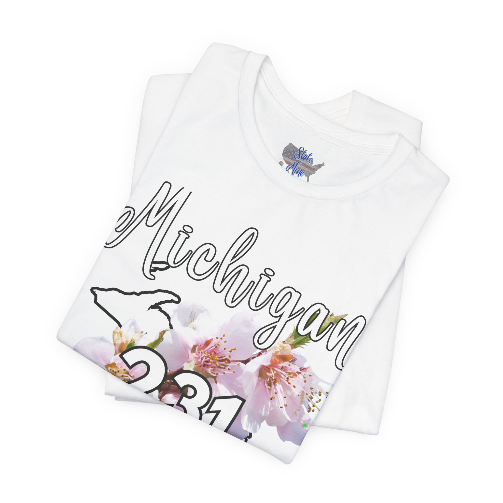 Michigan State Flower The Apple Blossom 231 Area Code by State of Mine. Unisex Jersey Short Sleeve Tee – Cozy Everyday Wear, Casual Style, Summer Essentials, Gift for Friends, Graphic Tee