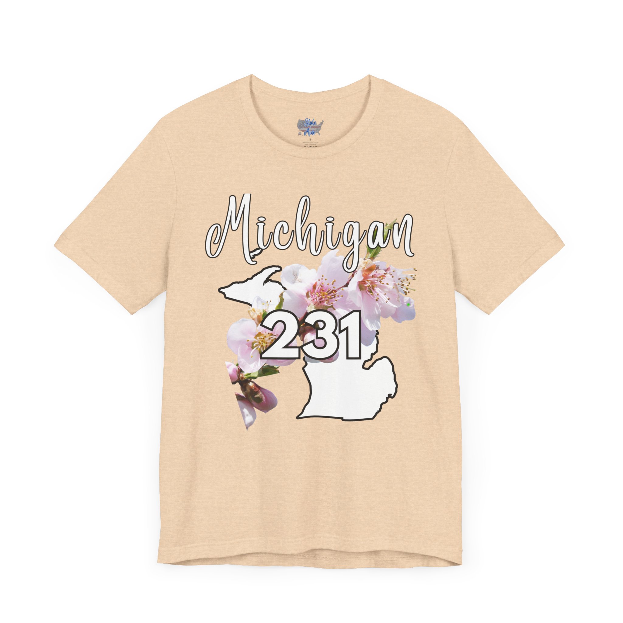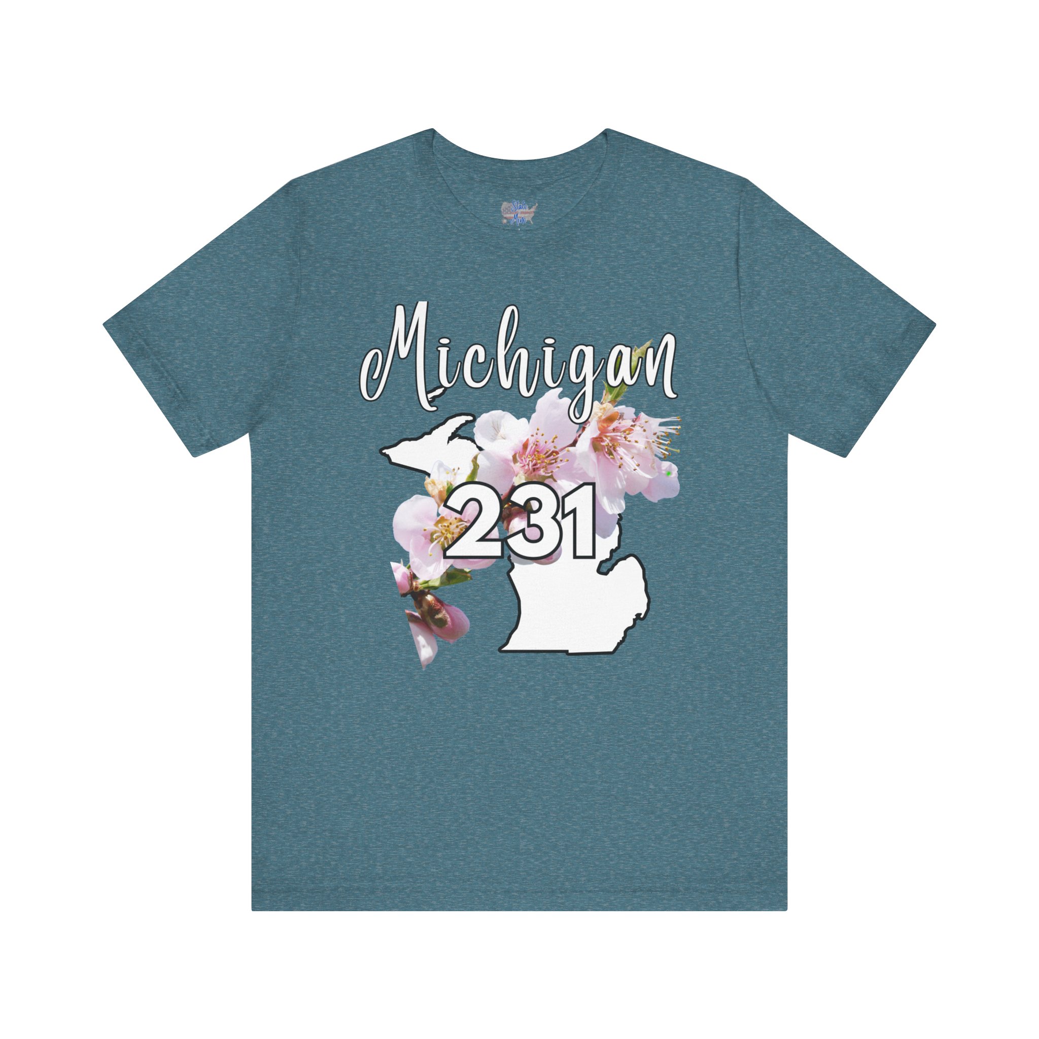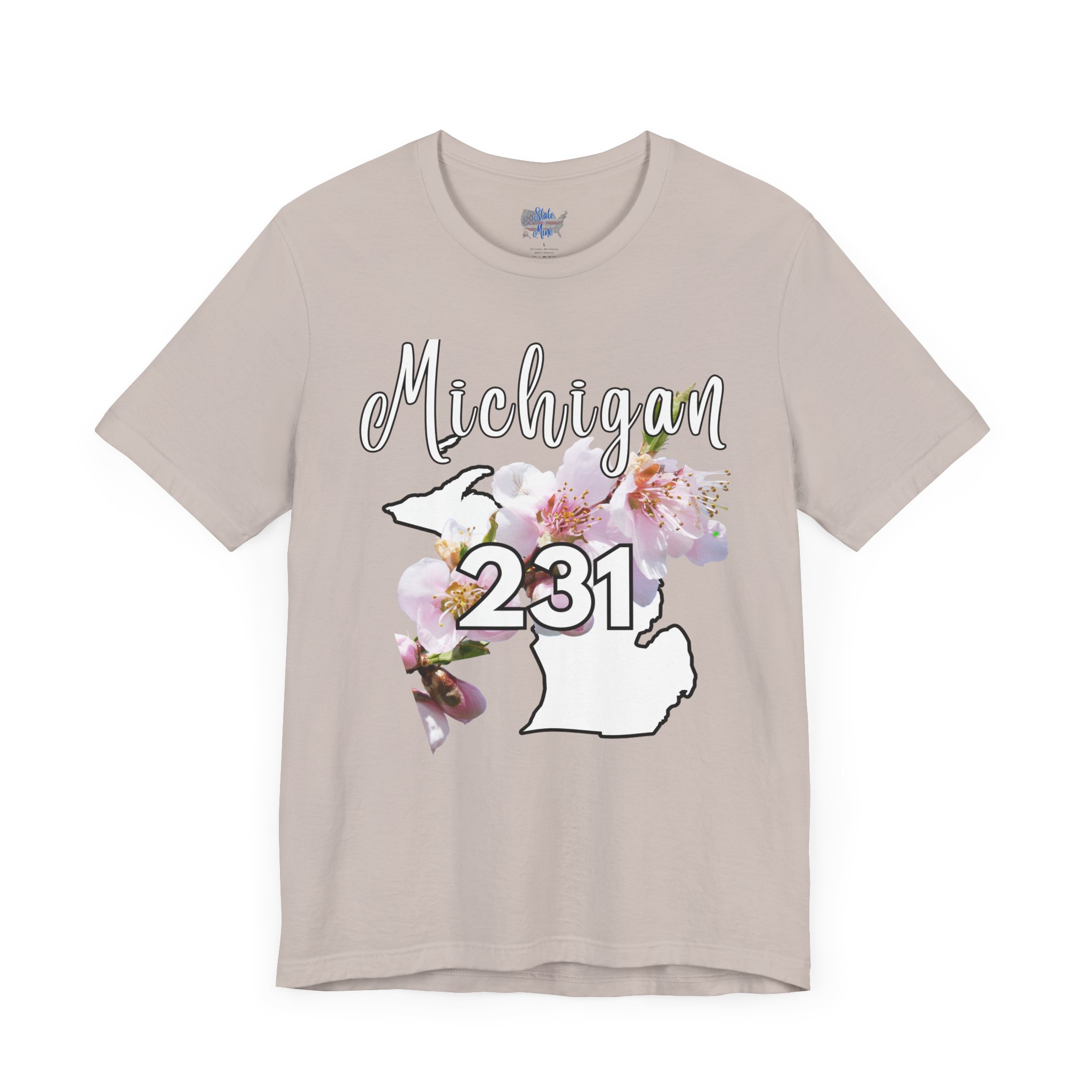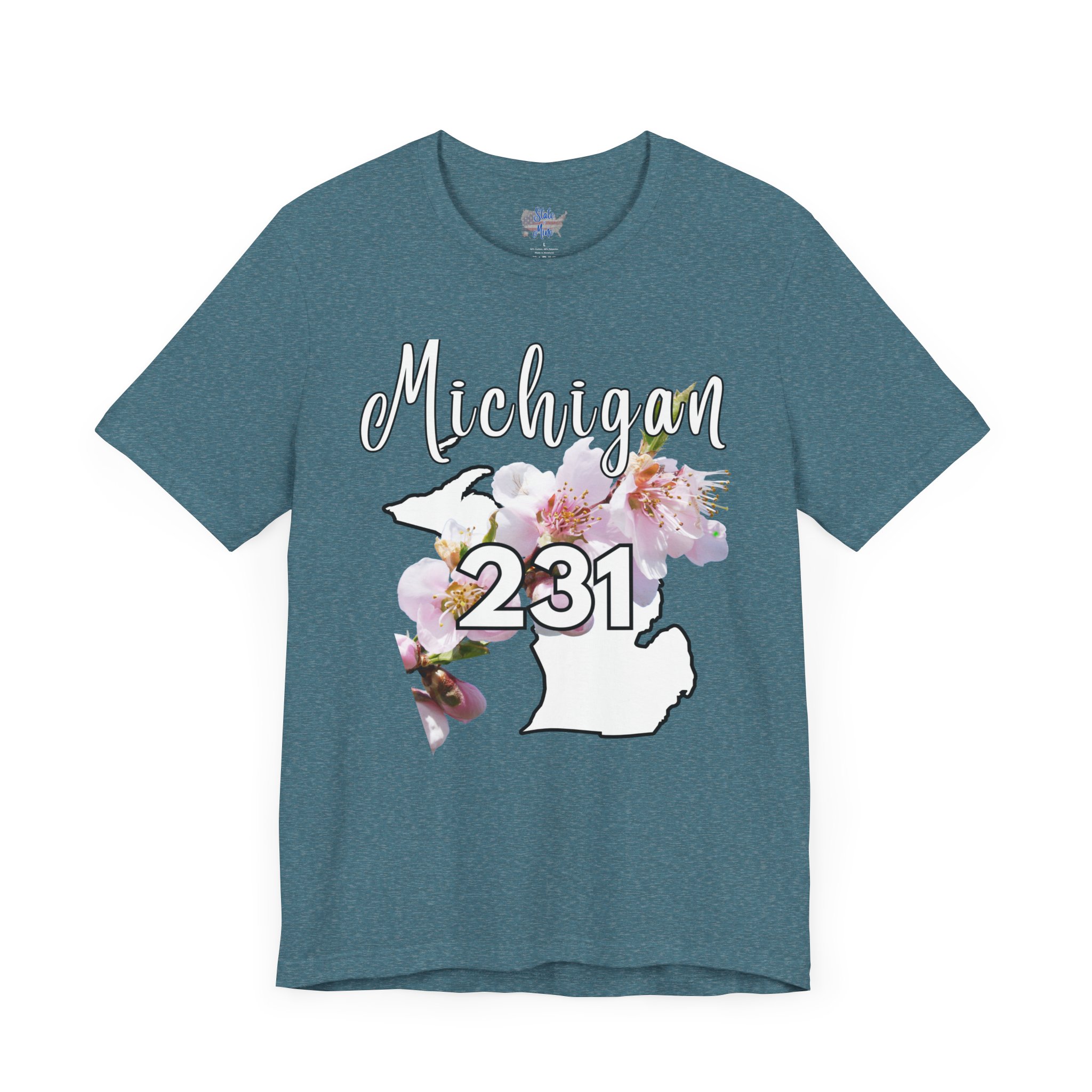 Michigan State Flower The Apple Blossom 231 Area Code by State of Mine. Unisex Jersey Short Sleeve Tee – Cozy Everyday Wear, Casual Style, Summer Essentials, Gift for Friends, Graphic Tee