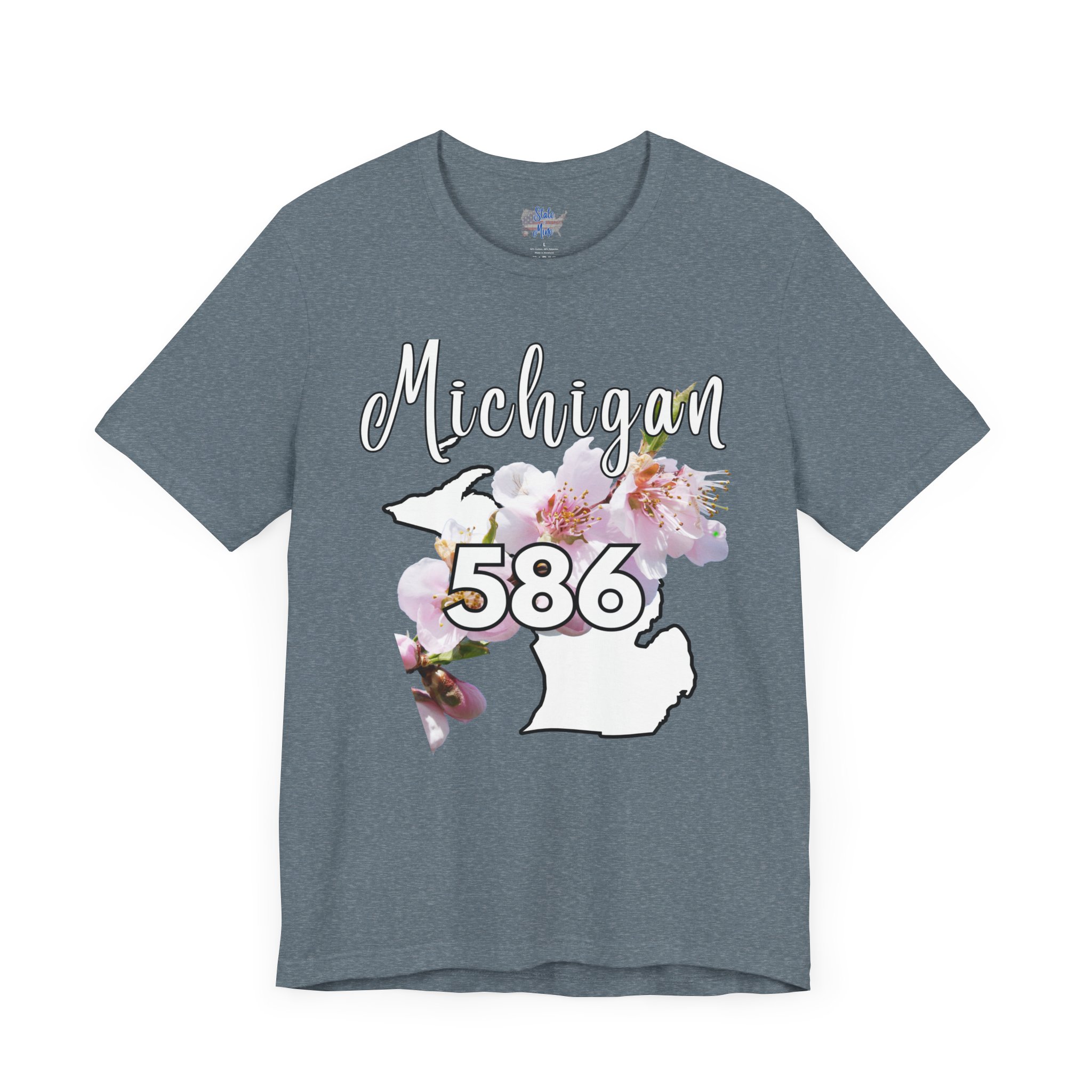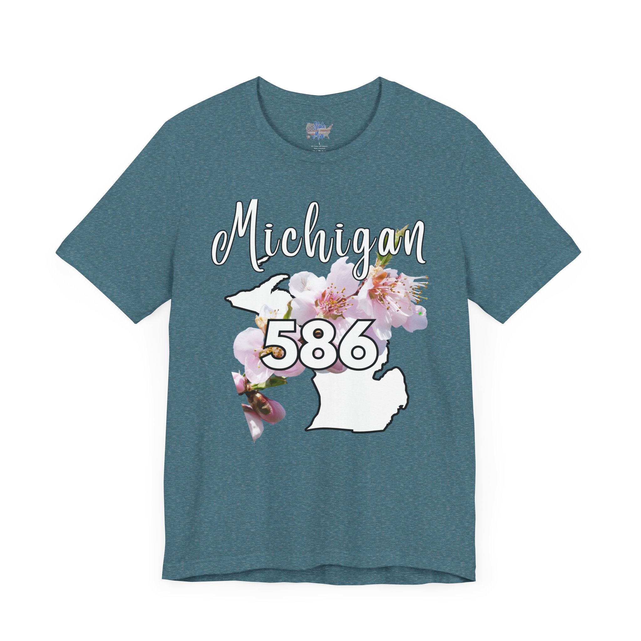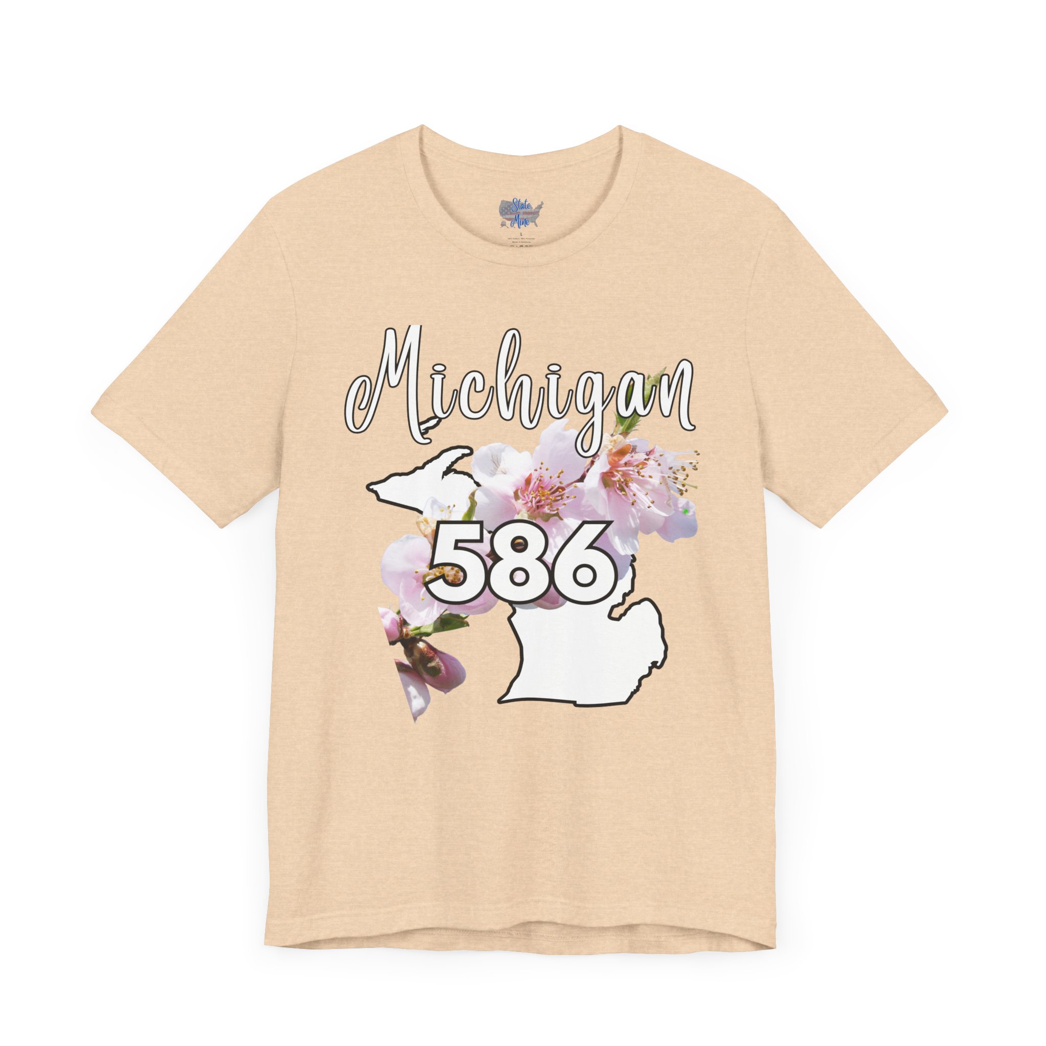 Michigan State Flower The Apple Blossom 586 Area Code by State of Mine. Unisex Jersey Short Sleeve Tee – Cozy Everyday Wear, Casual Style, Summer Essentials, Gift for Friends, Graphic Tee