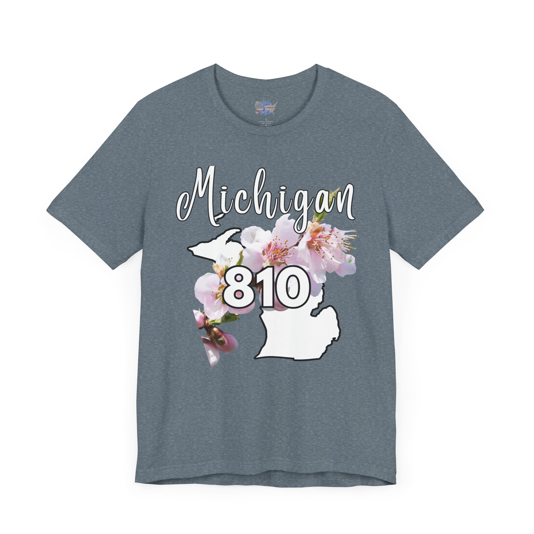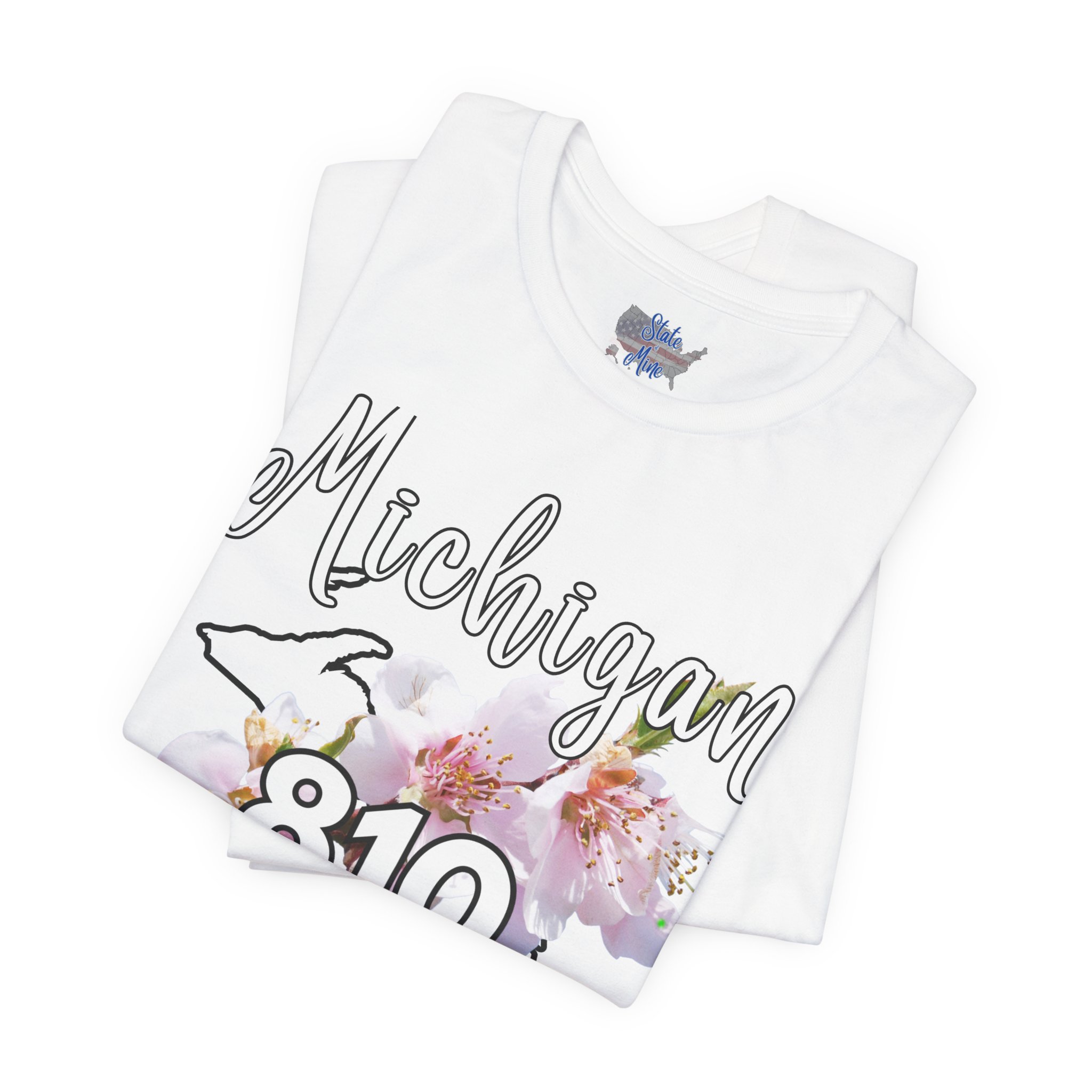 Michigan State Flower The Apple Blossom 810 Area Code by State of Mine. Unisex Jersey Short Sleeve Tee – Cozy Everyday Wear, Casual Style, Summer Essentials, Gift for Friends, Graphic Tee