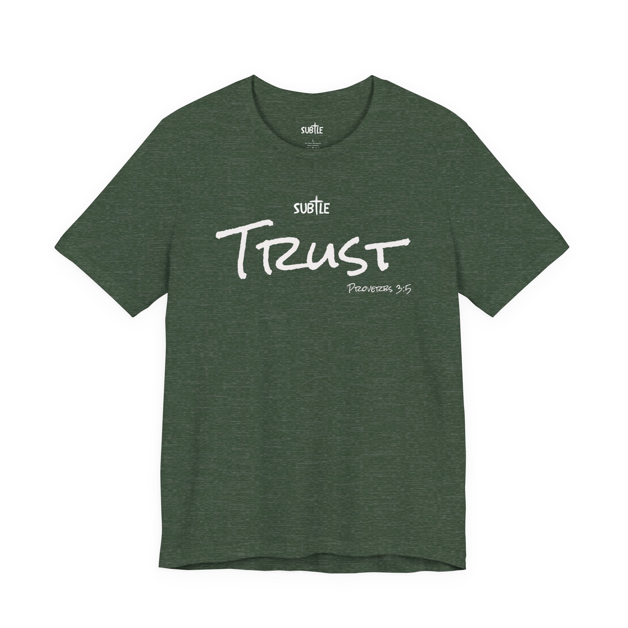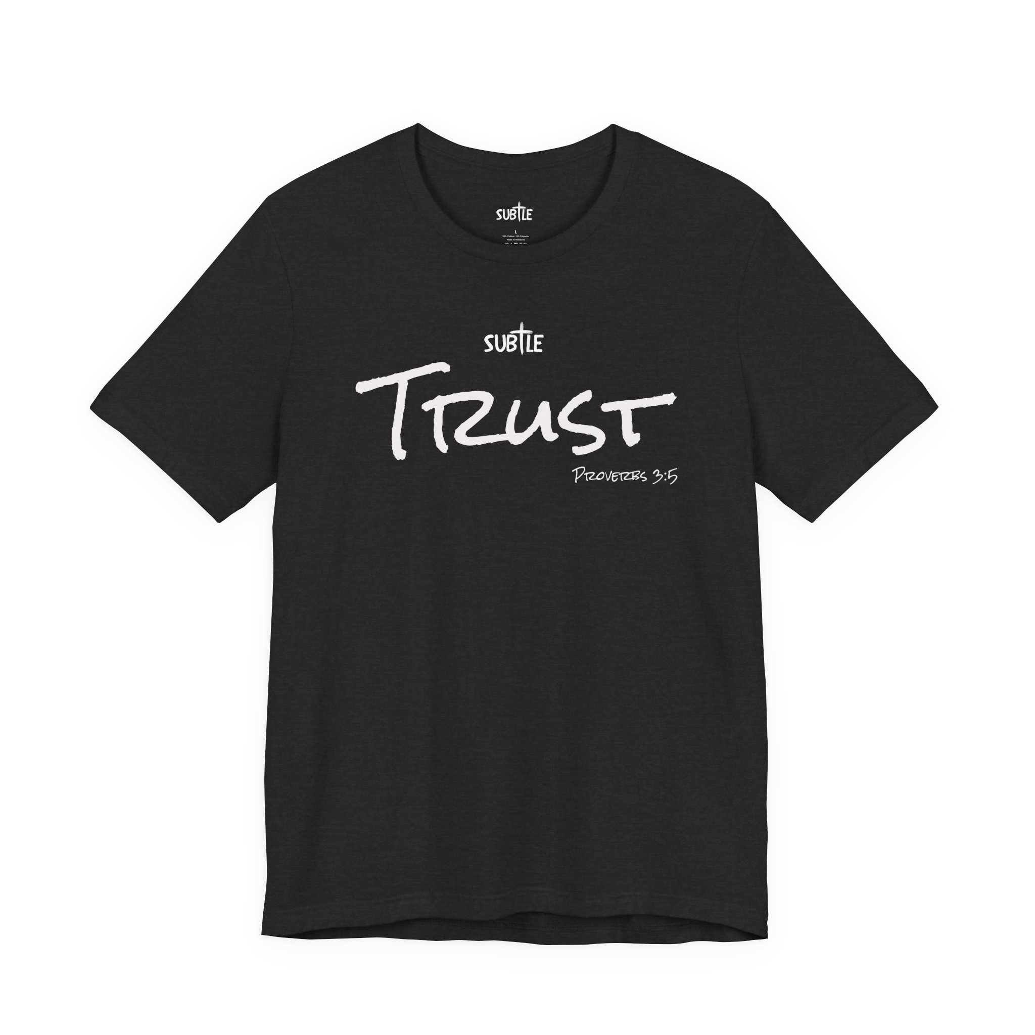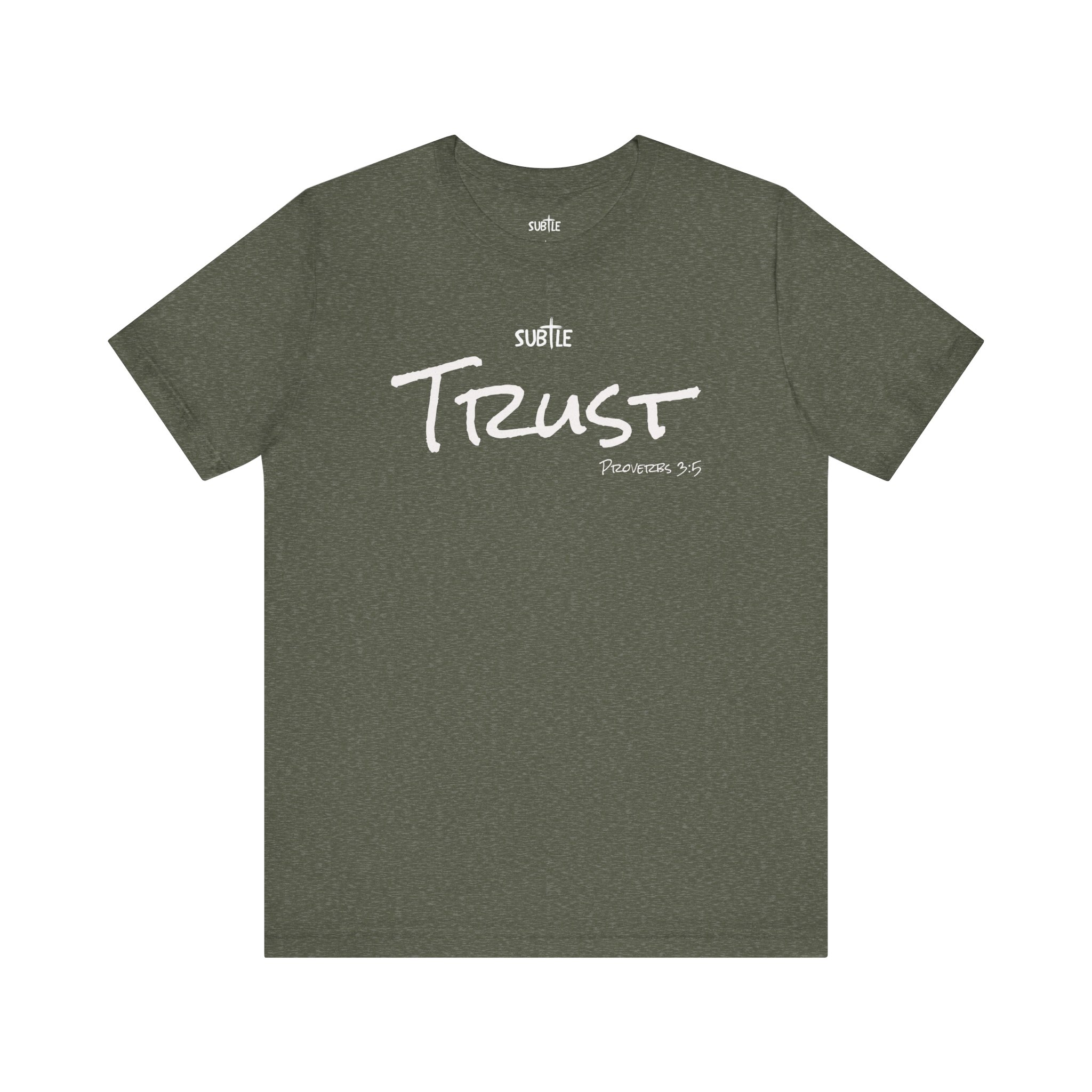 Trust by Subtle Merch–Unisex Dark Colored Heavy Cotton T-Shirt, Faith-Based and Inspirational, Proverbs 3:5
