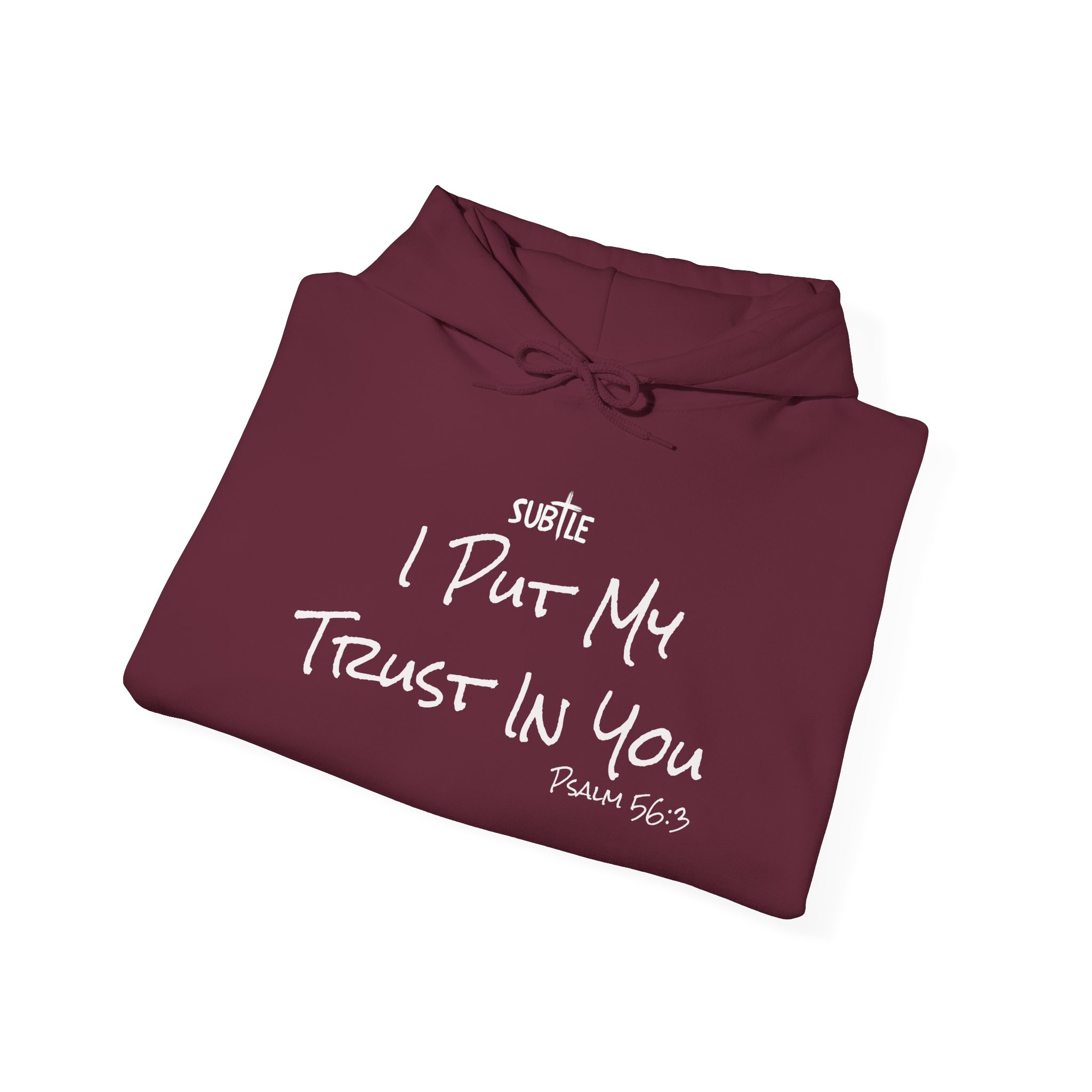 Trust In You by Subtle–Unisex Dark Colored Hoodie, Cozy Sweatshirt, Faith-Based Inspirational Apparel, Psalm 56:3