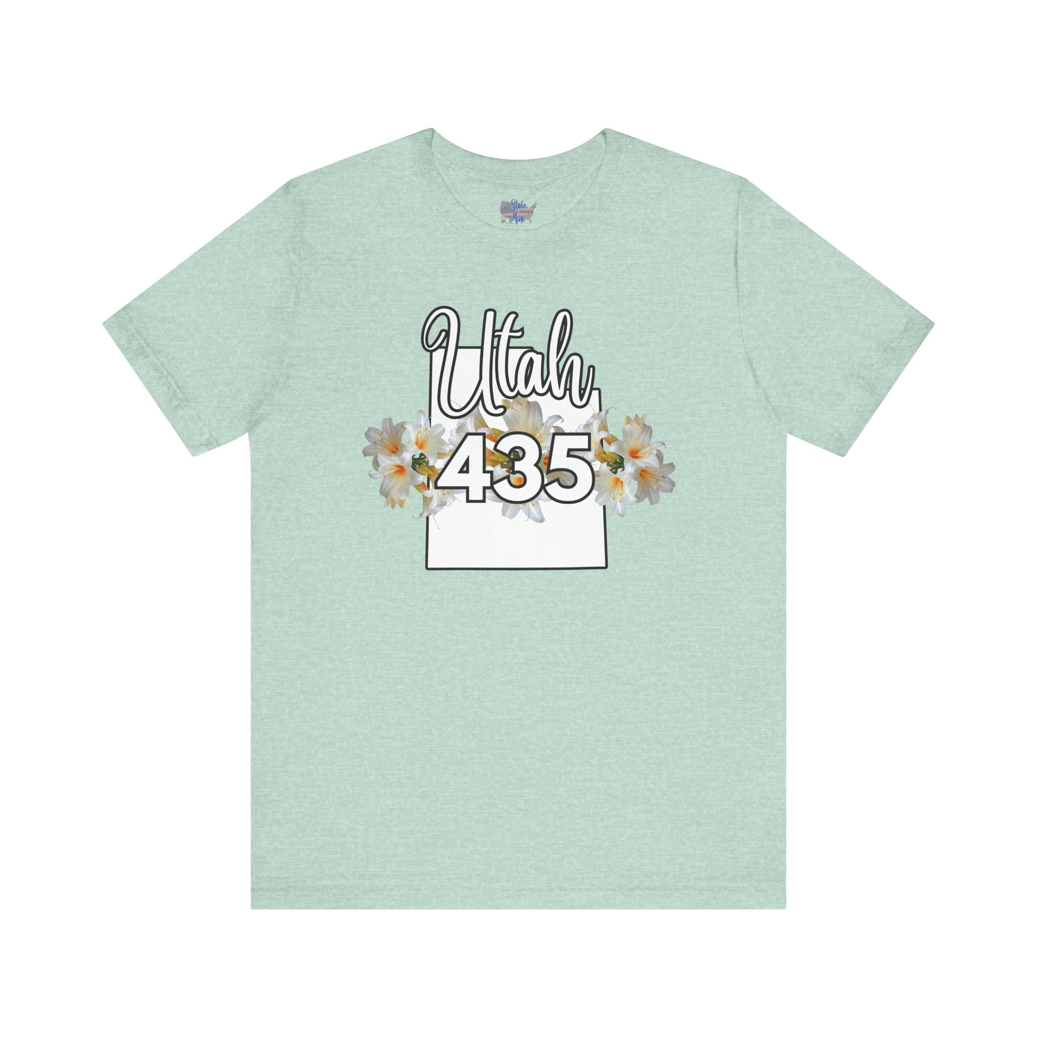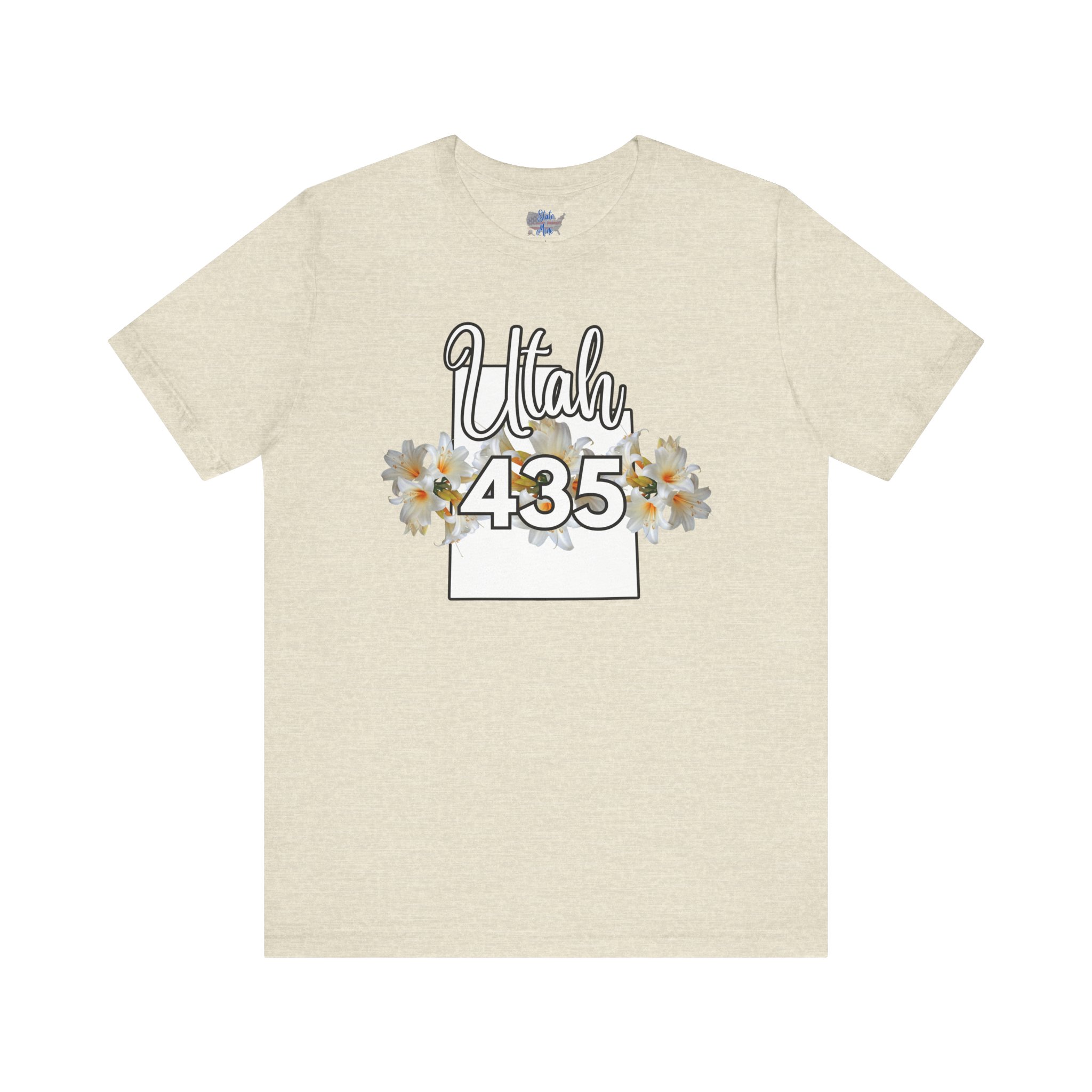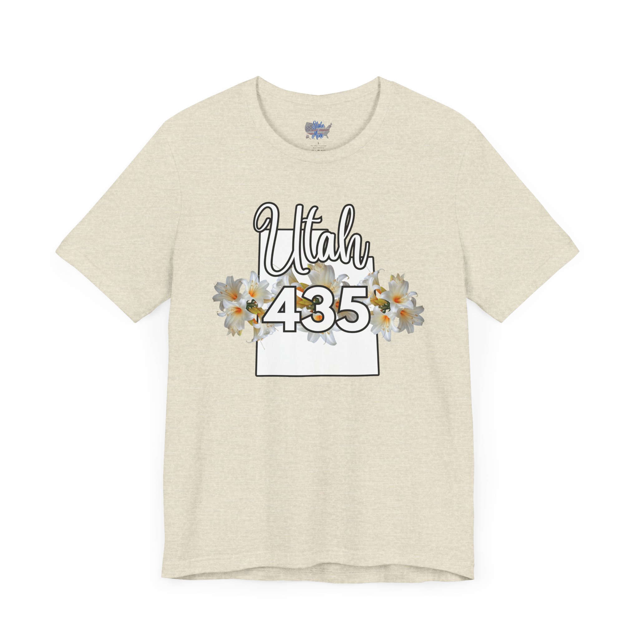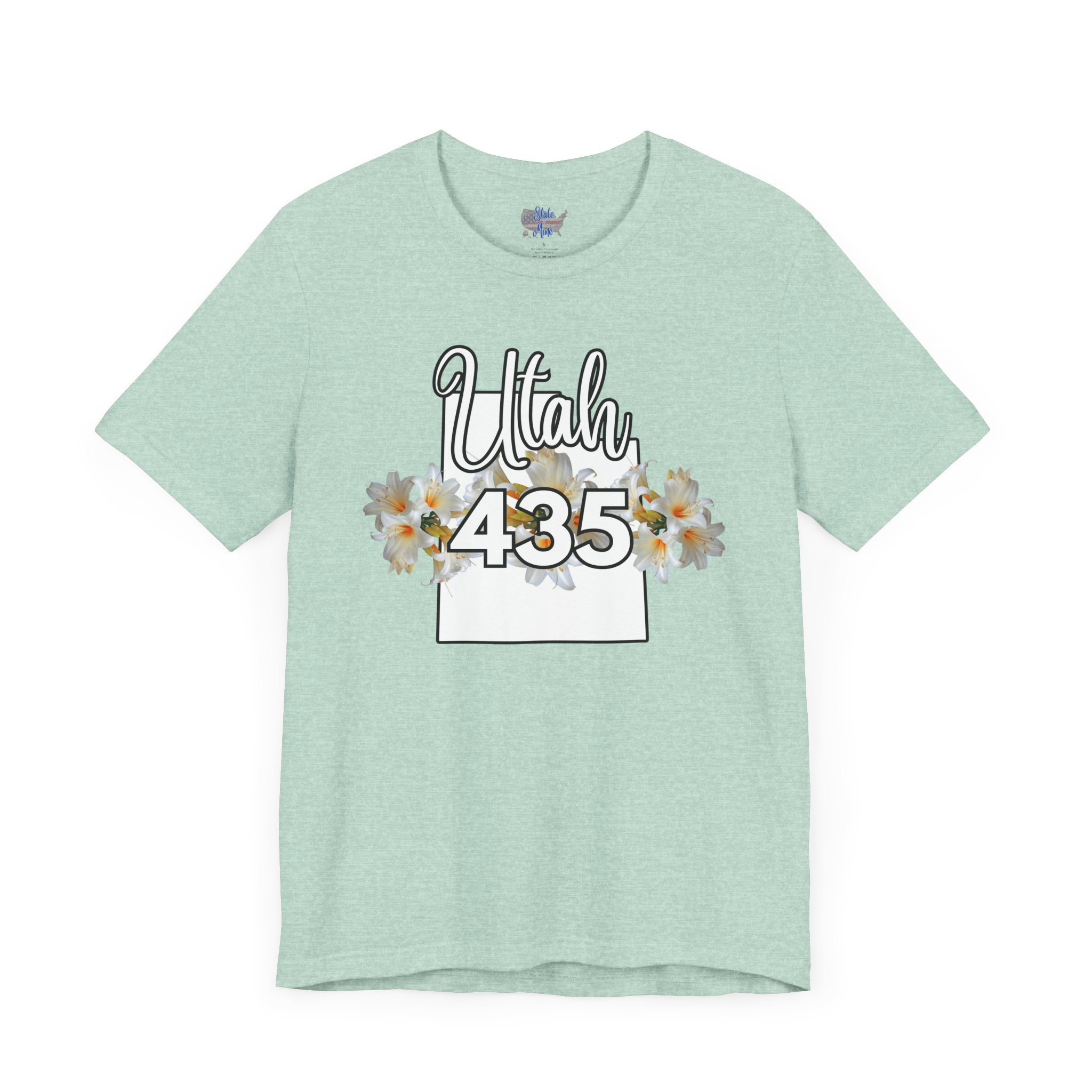 Utah State Flower Sego Lily 435 Area Code by State of Mine Floral Unisex Tee, Casual Shirt, Vintage Vibe, Gift for Utah Lovers, Summer Wear, Vacation Essential
