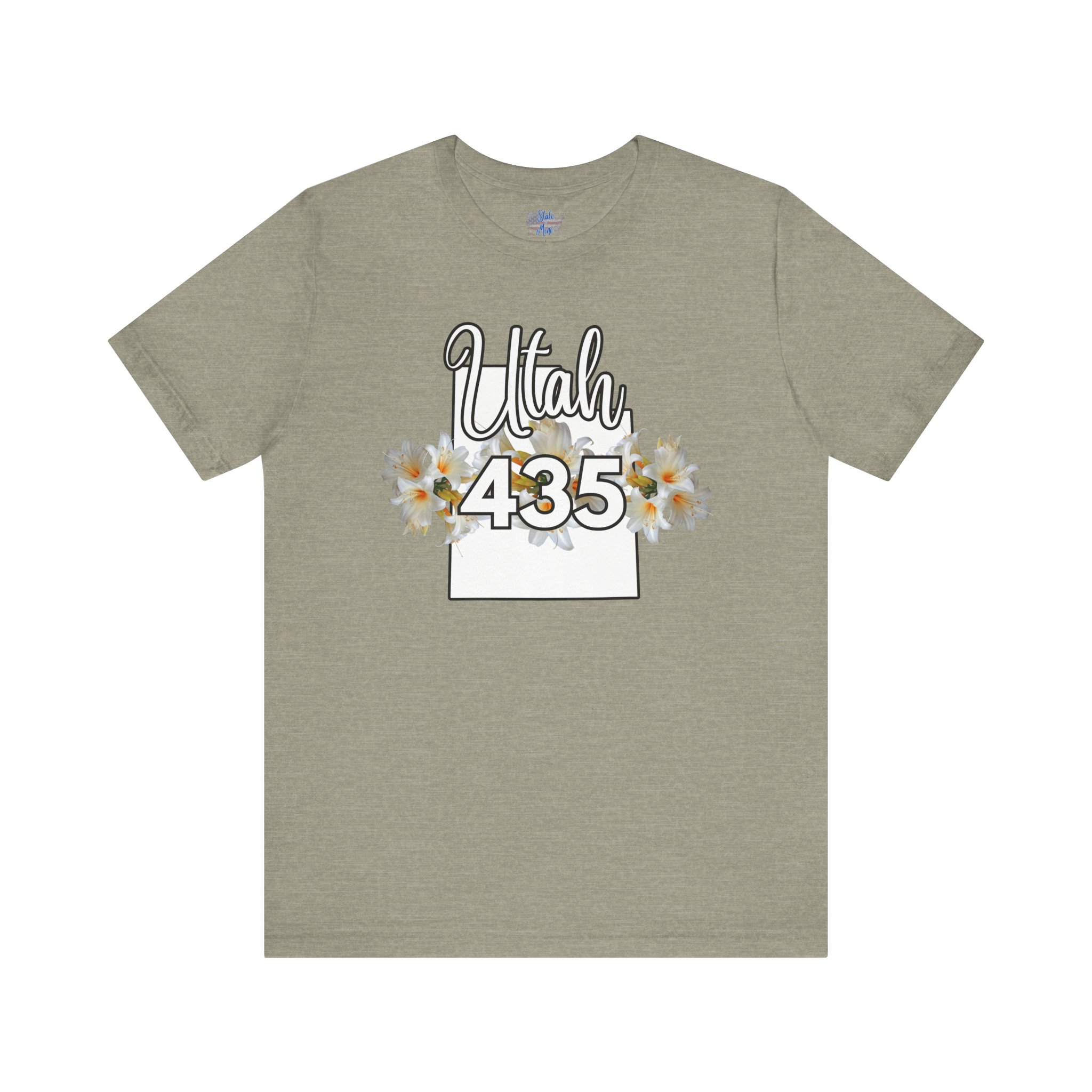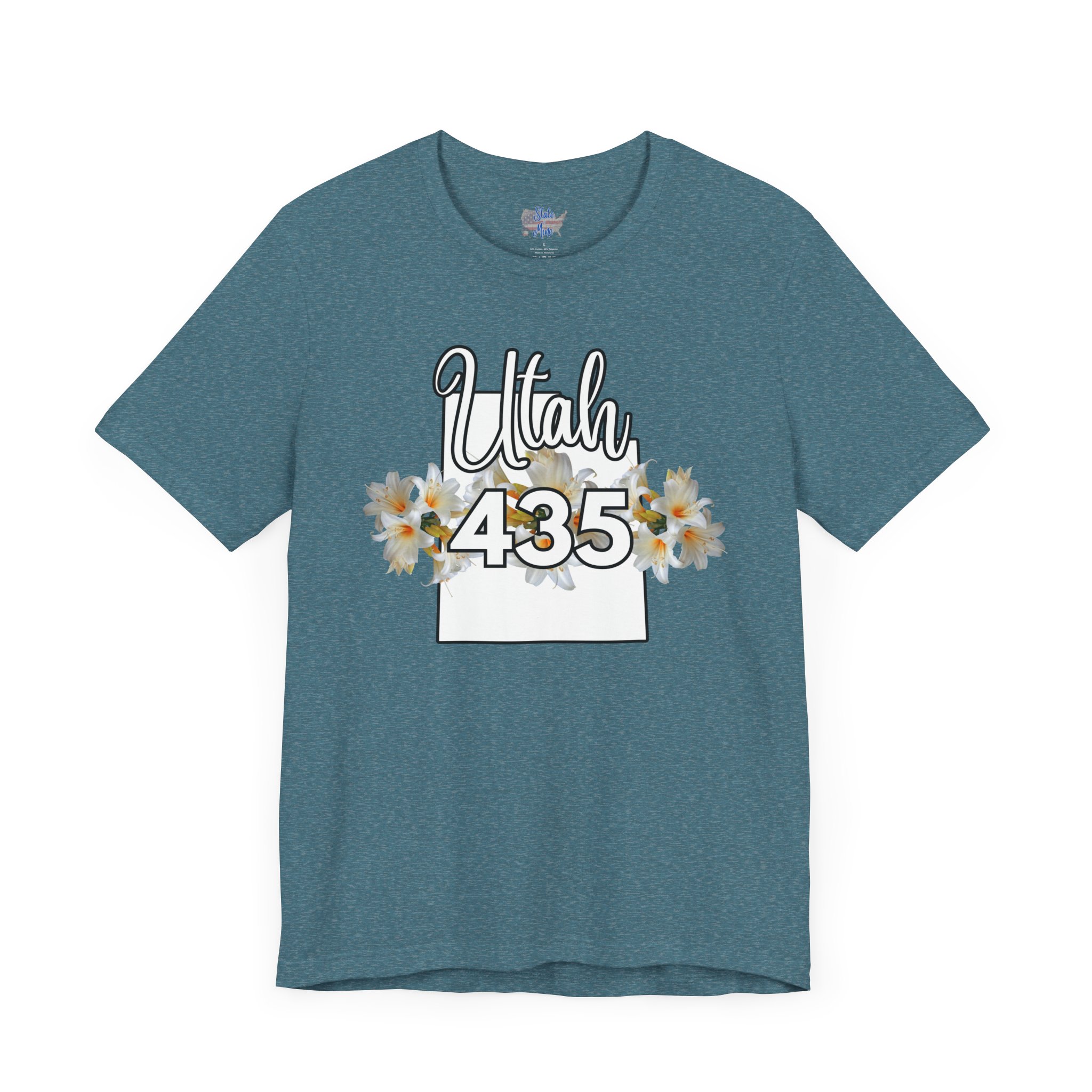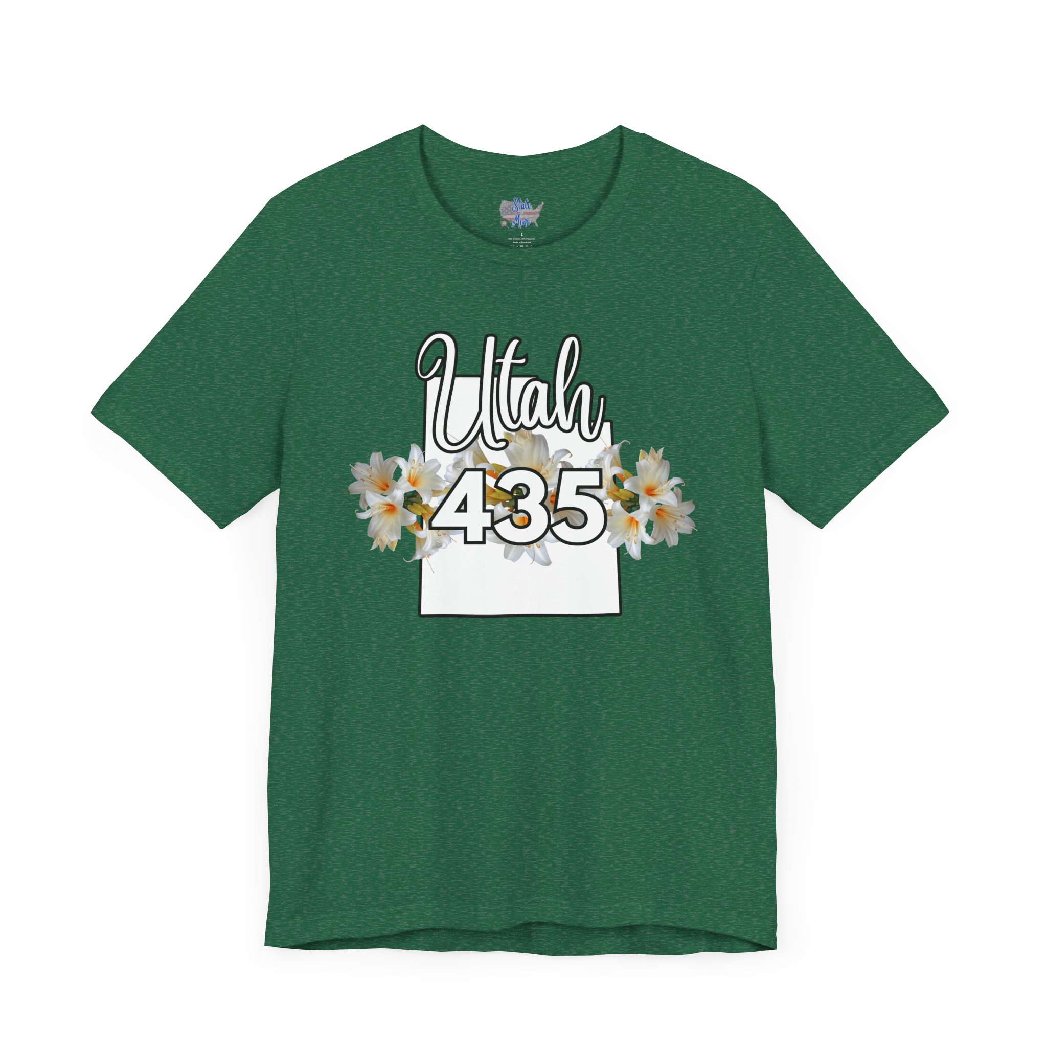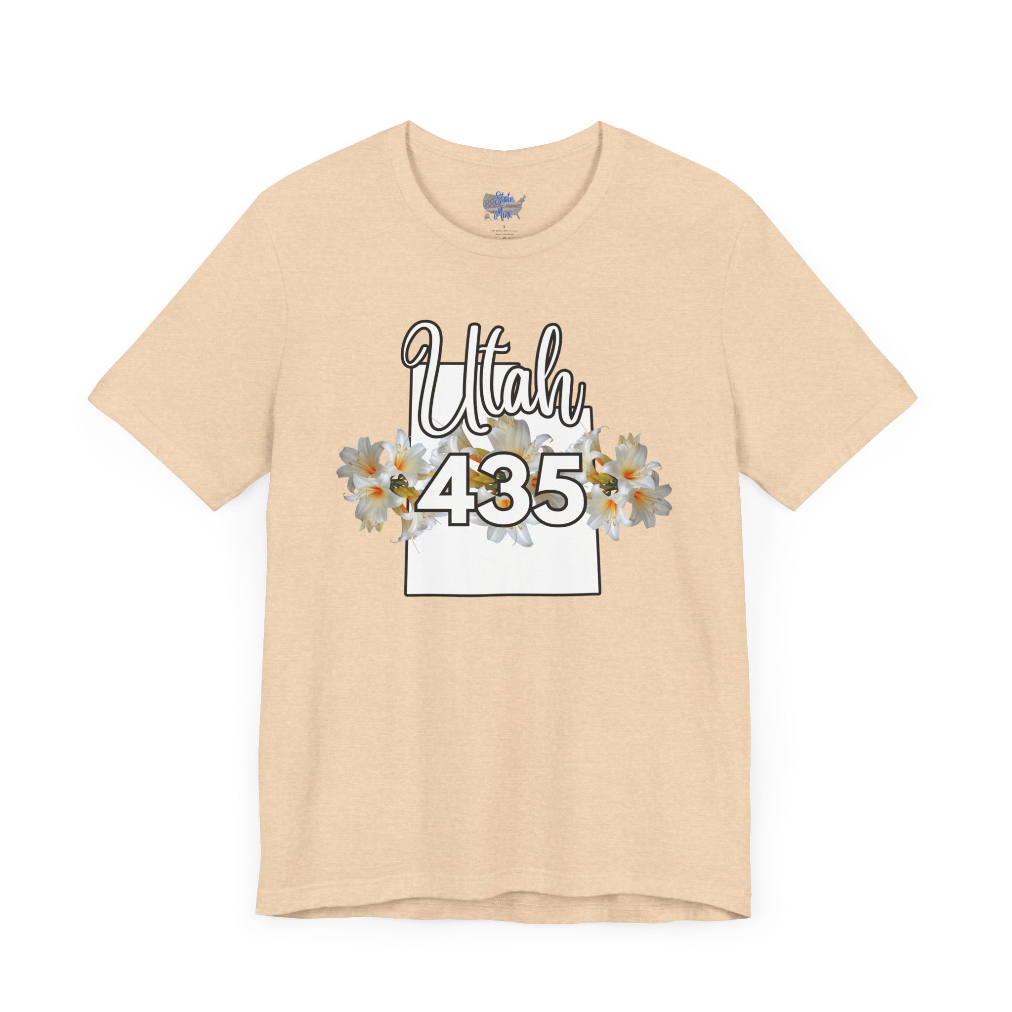 Utah State Flower Sego Lily 435 Area Code by State of Mine Floral Unisex Tee, Casual Shirt, Vintage Vibe, Gift for Utah Lovers, Summer Wear, Vacation Essential