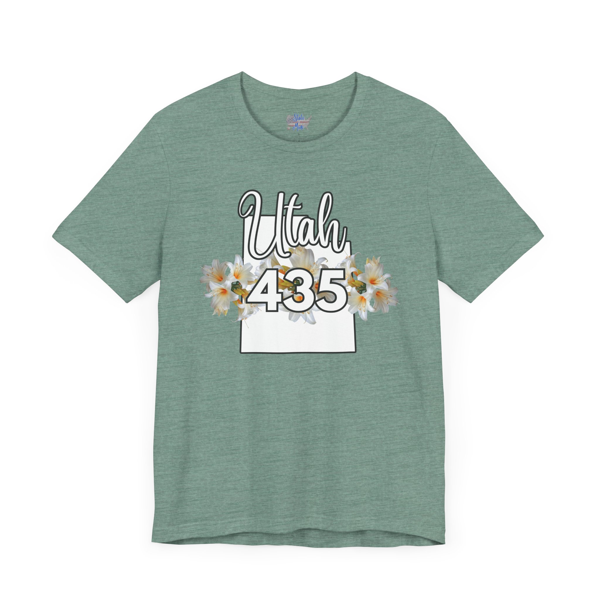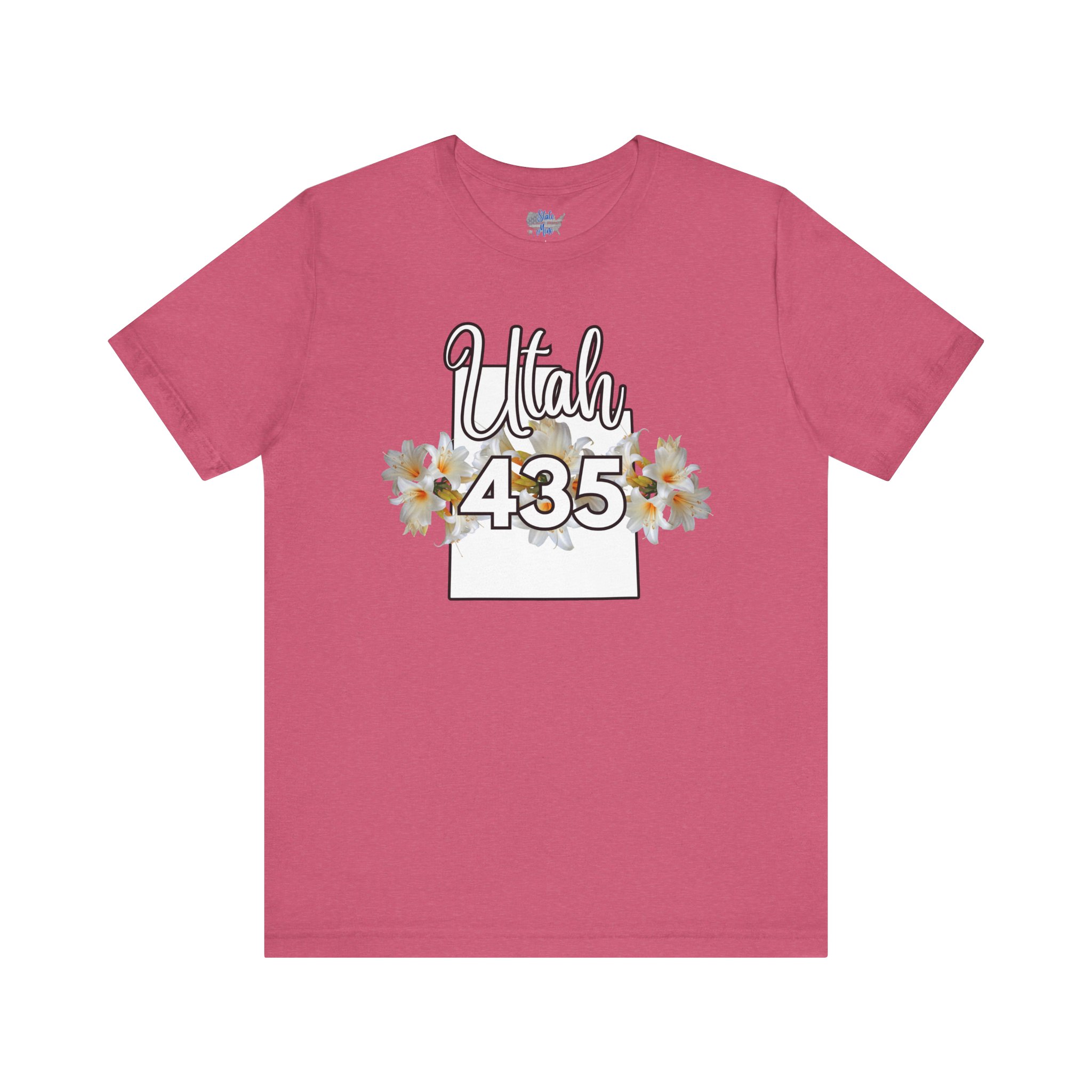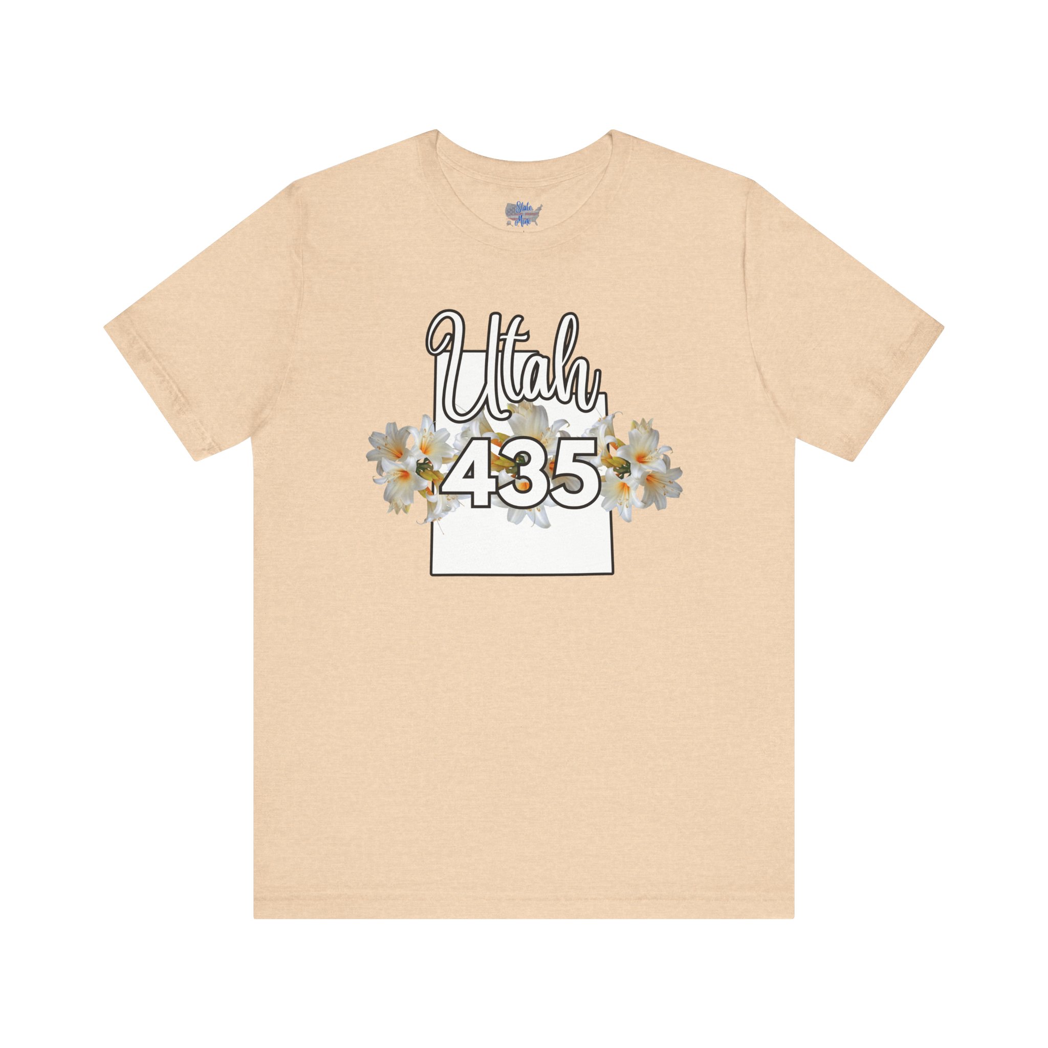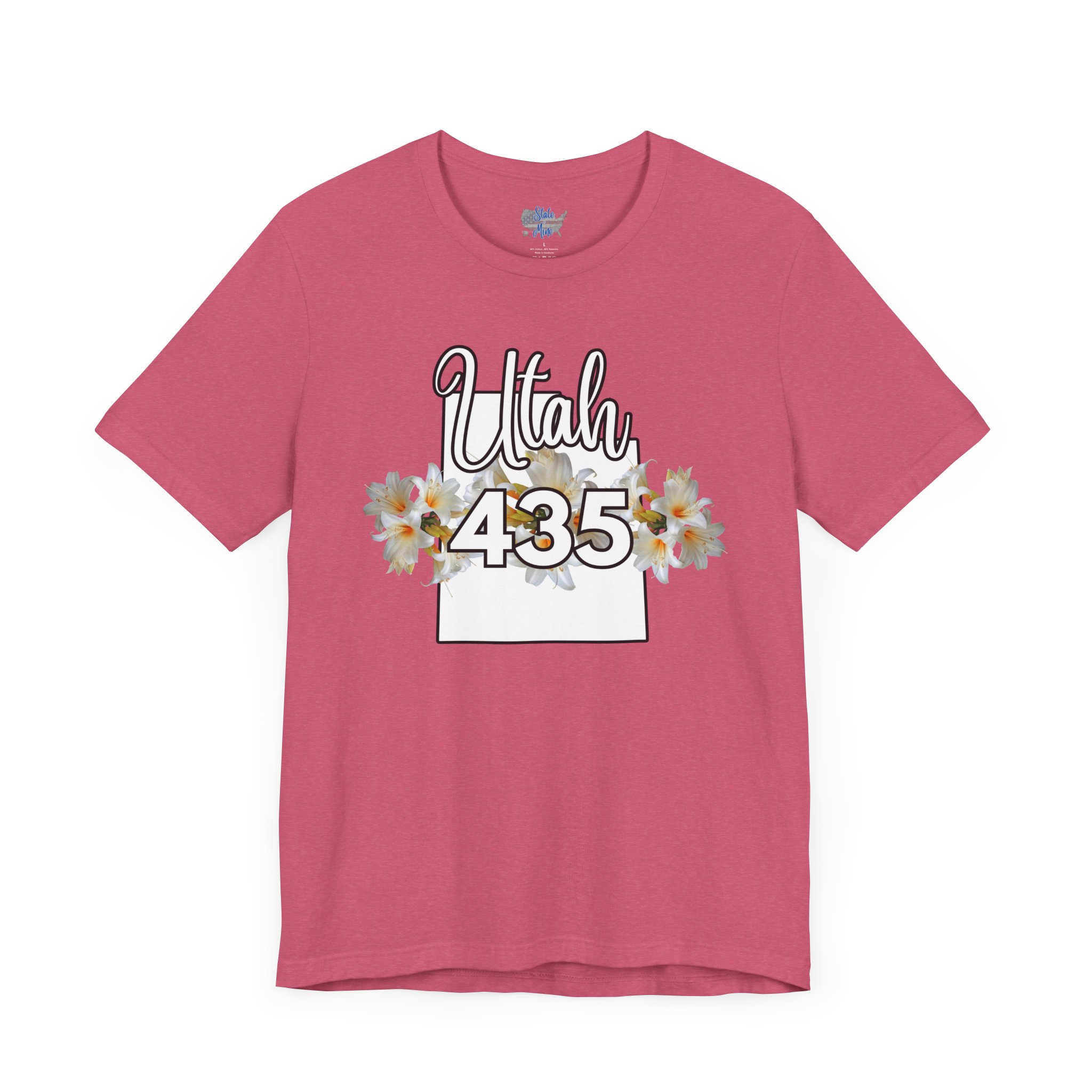 Utah State Flower Sego Lily 435 Area Code by State of Mine Floral Unisex Tee, Casual Shirt, Vintage Vibe, Gift for Utah Lovers, Summer Wear, Vacation Essential