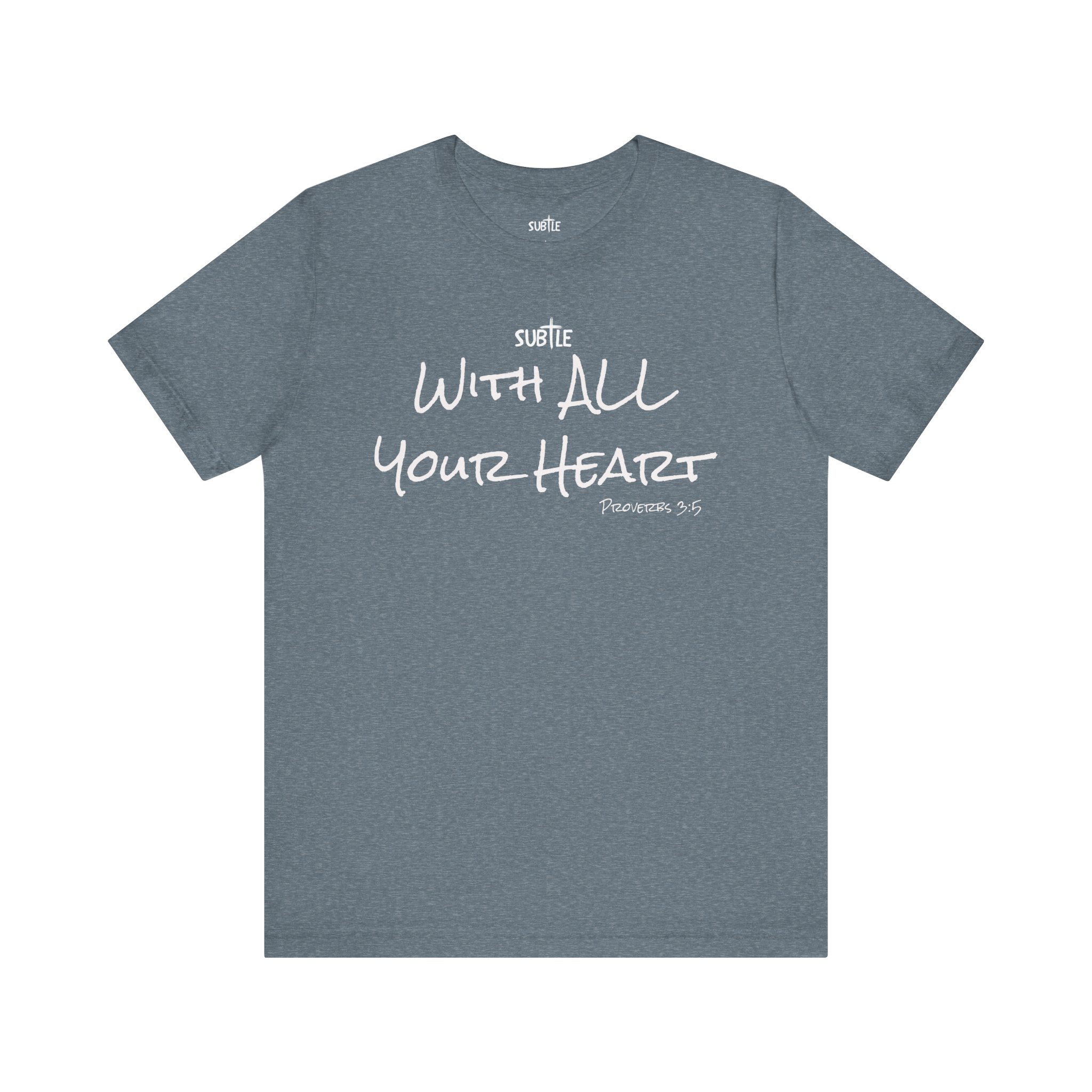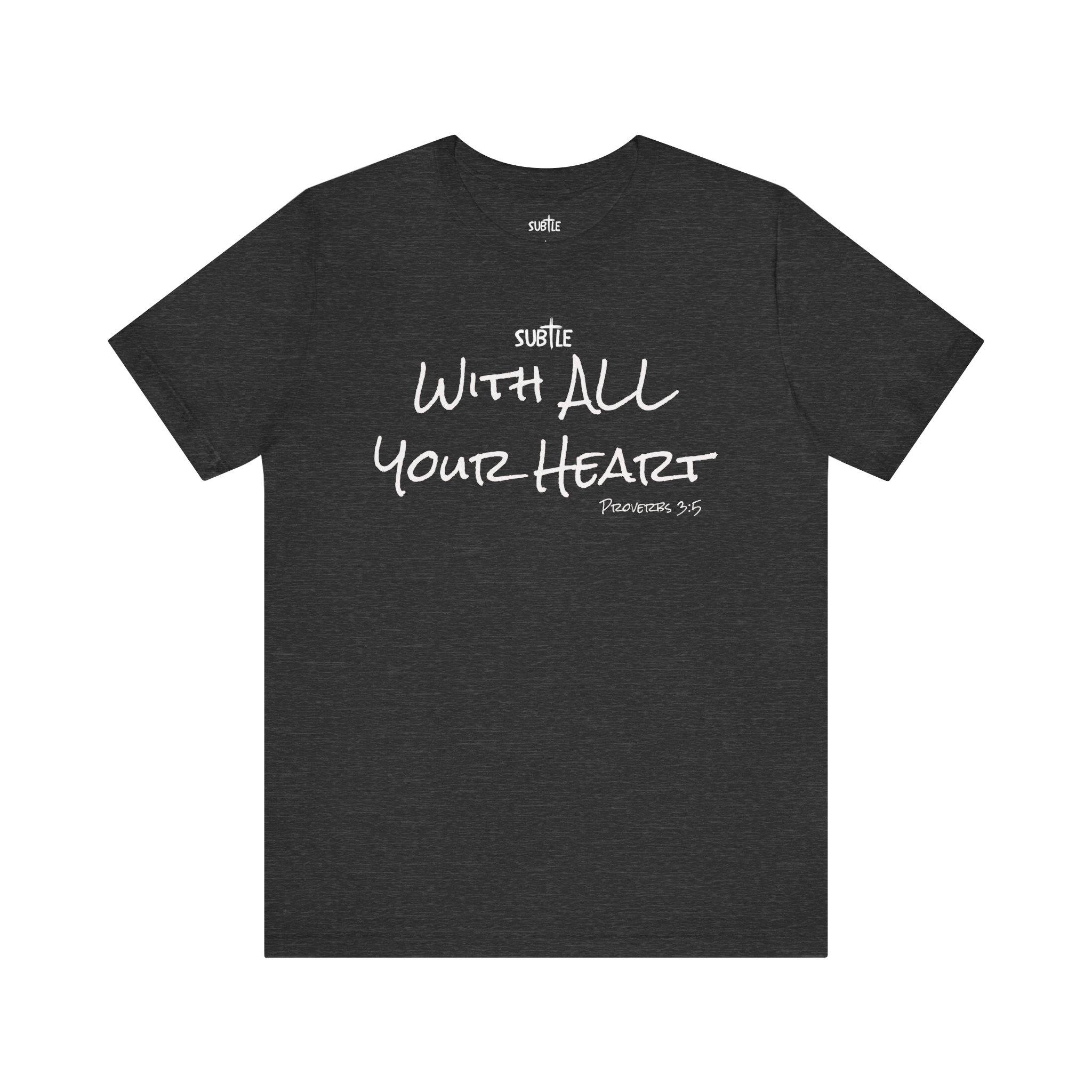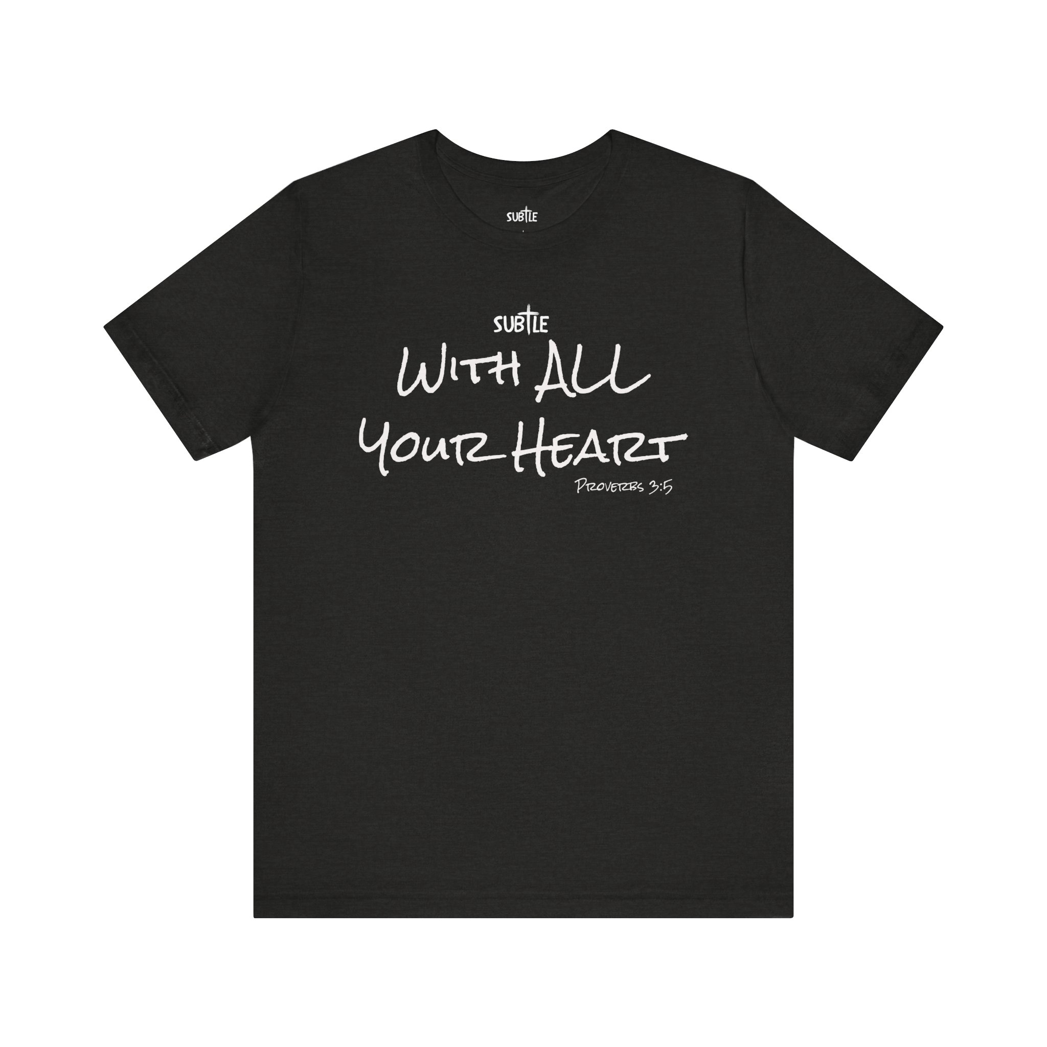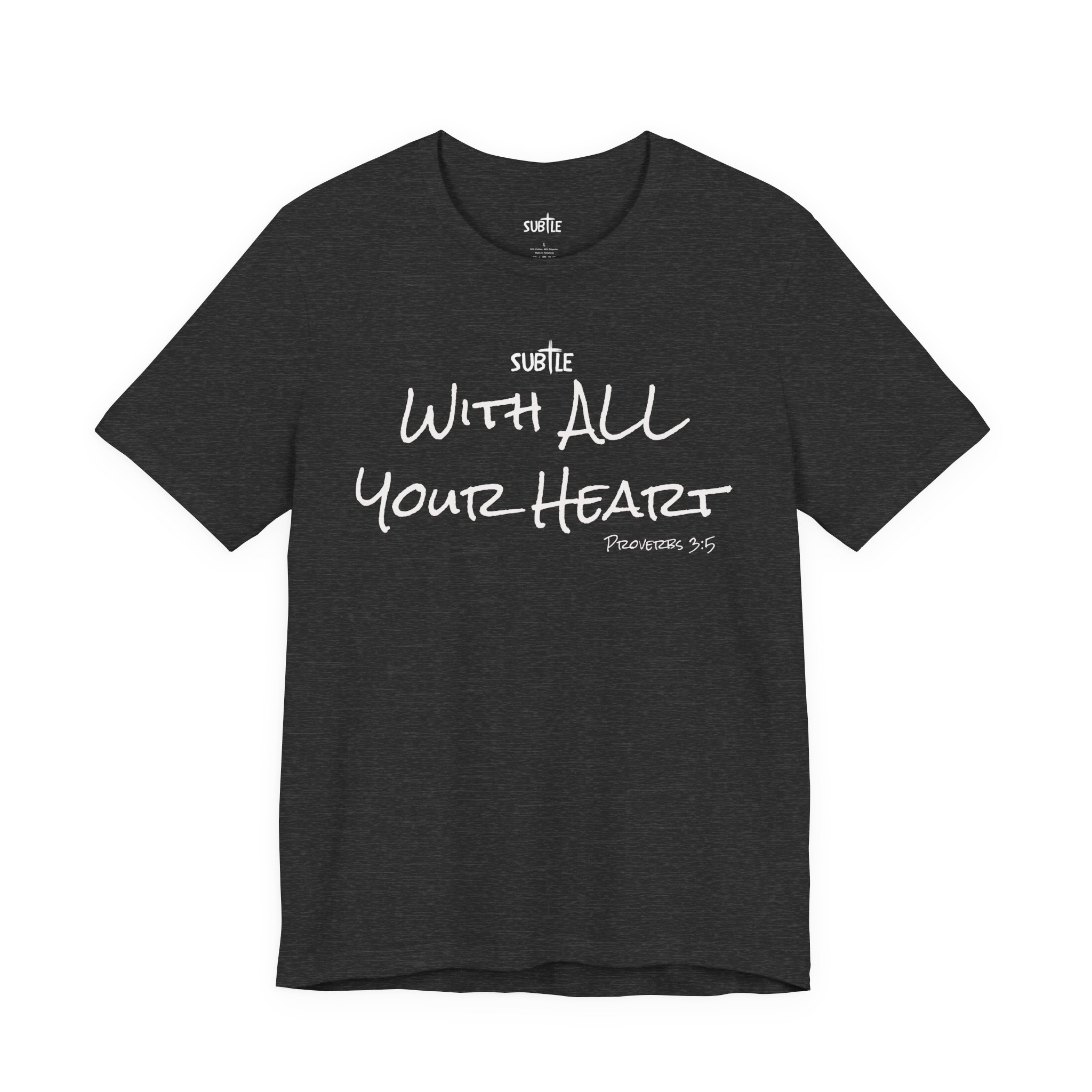With All Your Heart by Subtle Merch–Unisex Dark Colored Heavy Cotton T-Shirt, Faith-Based and Inspirational, Proverbs 3:5