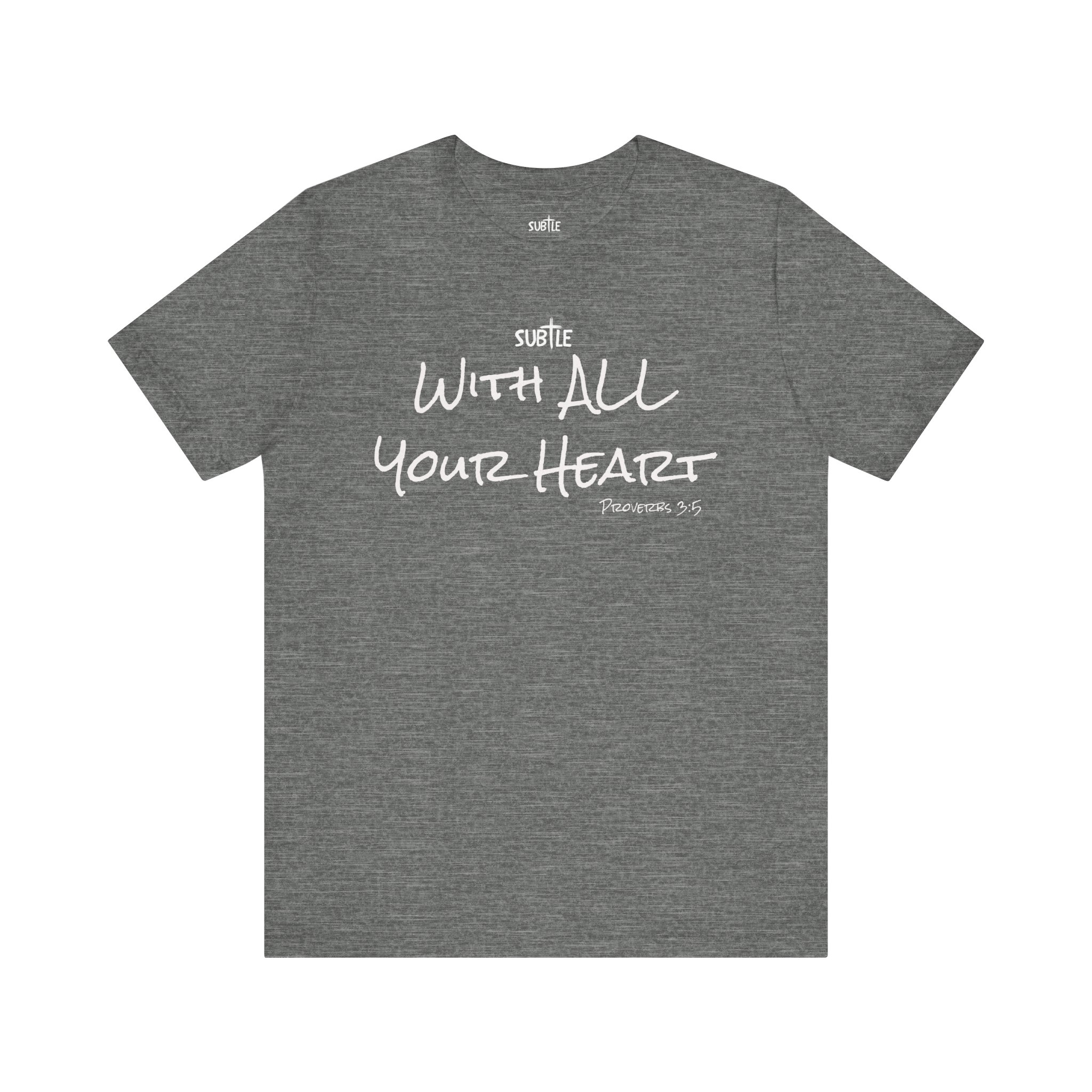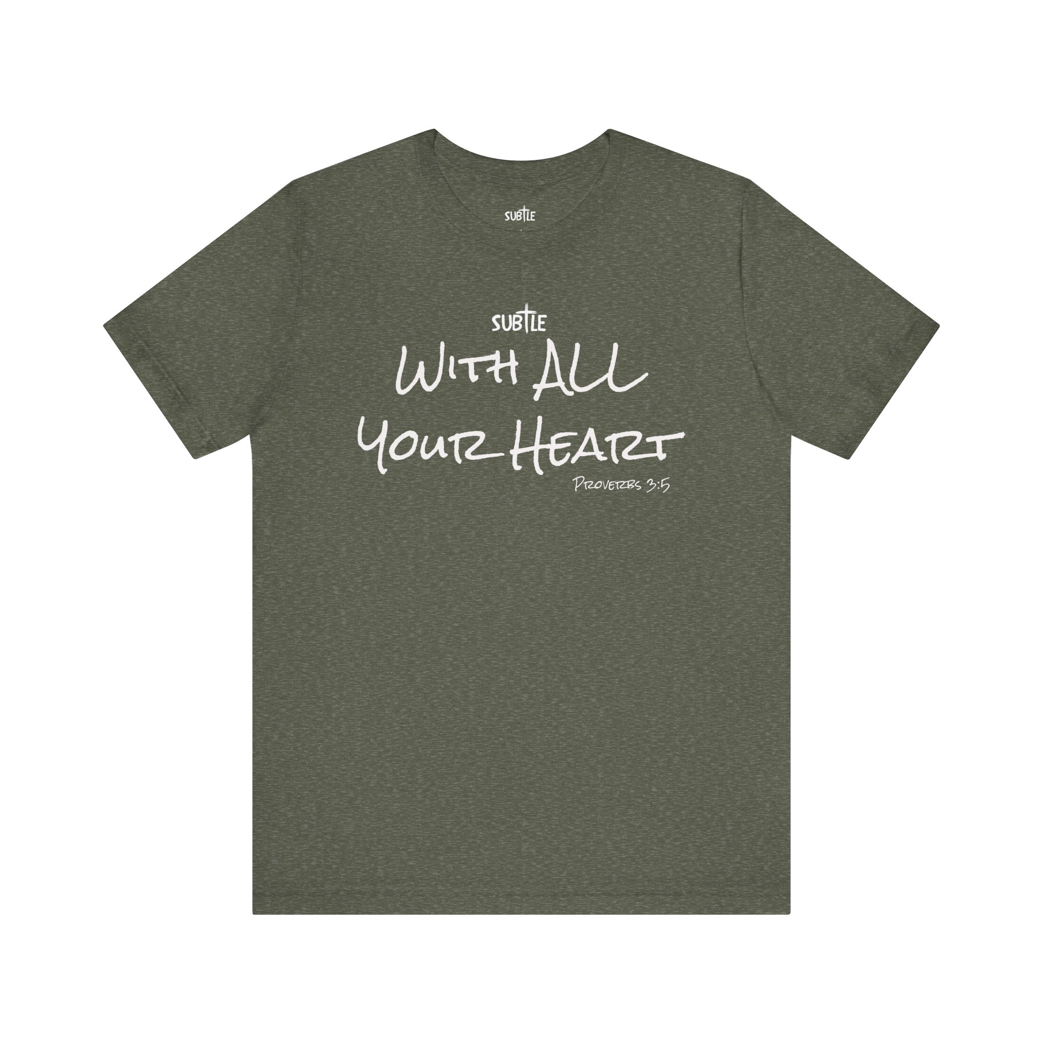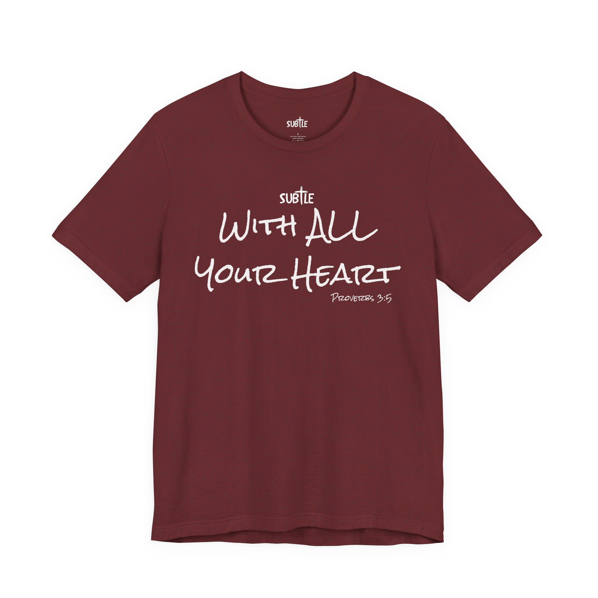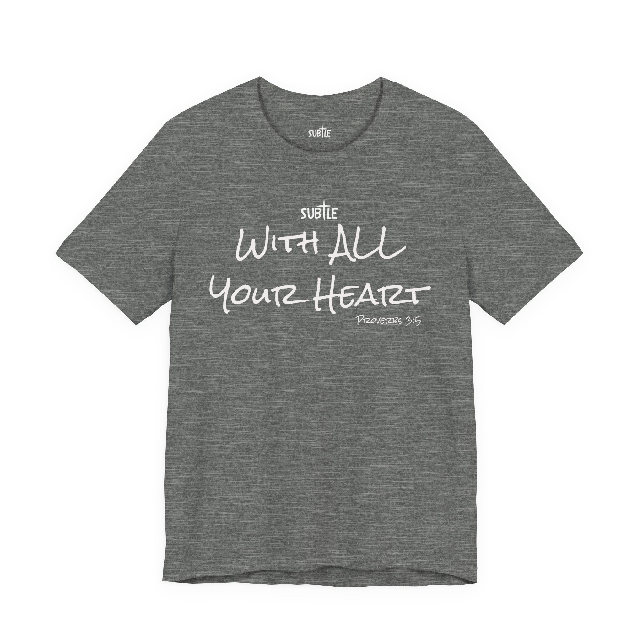 With All Your Heart by Subtle Merch–Unisex Dark Colored Heavy Cotton T-Shirt, Faith-Based and Inspirational, Proverbs 3:5