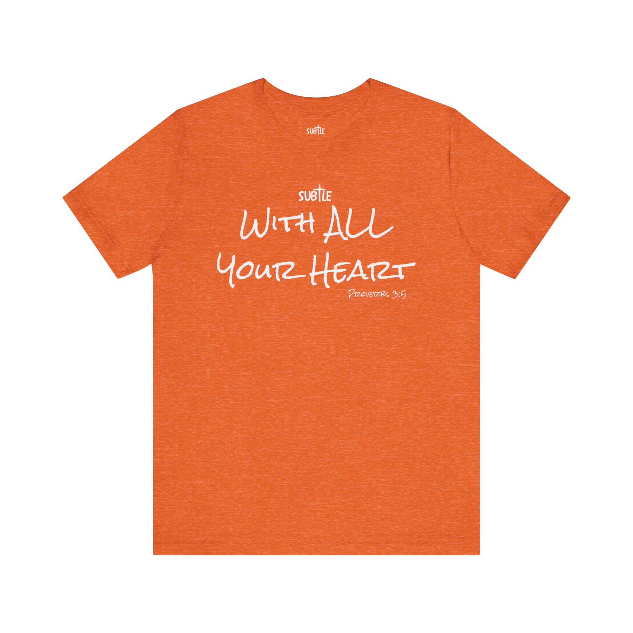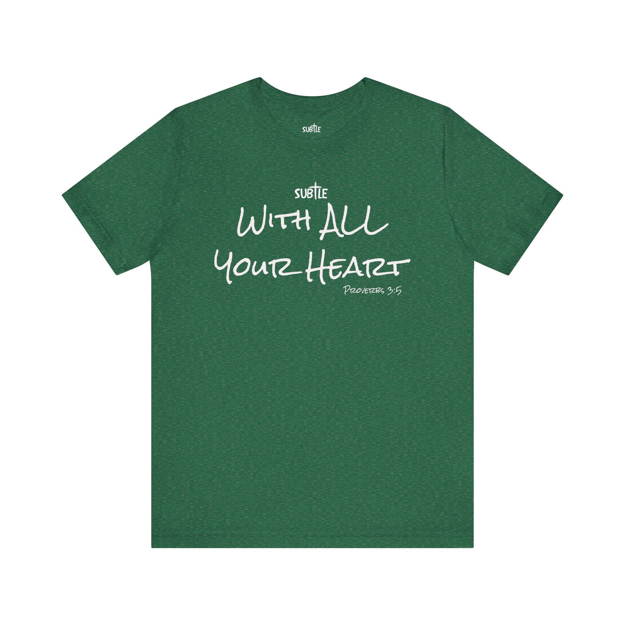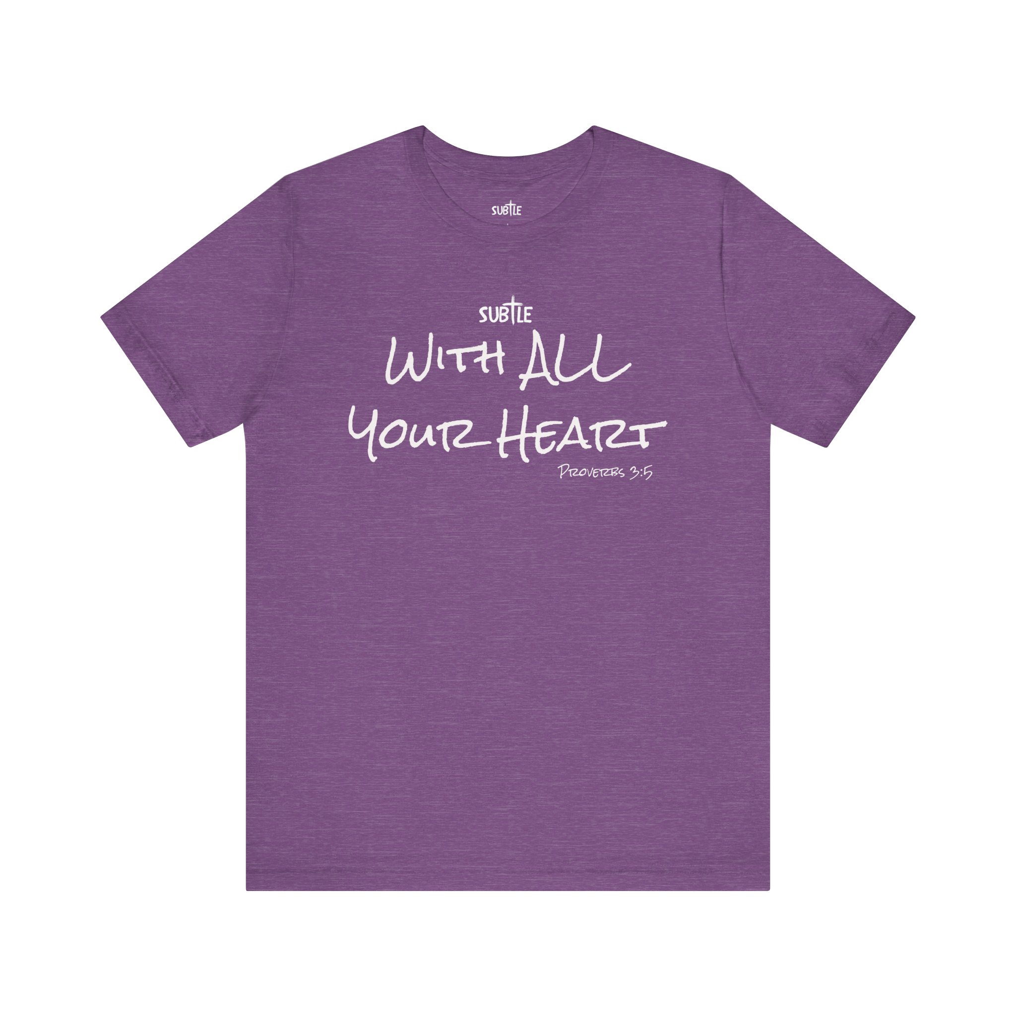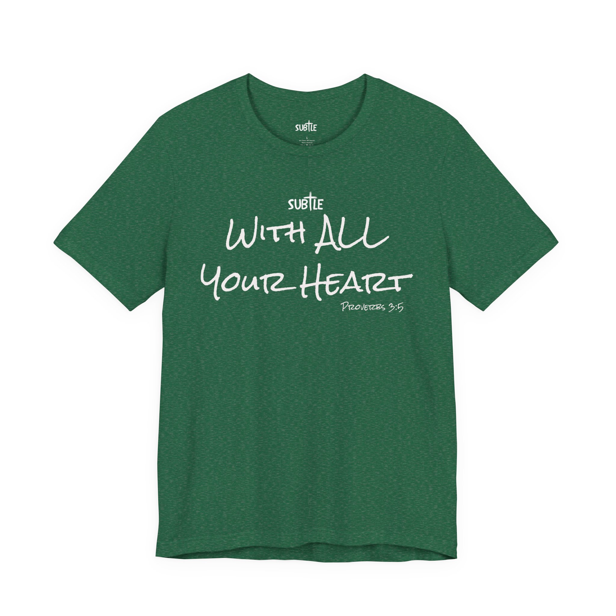 With All Your Heart by Subtle Merch–Unisex Dark Colored Heavy Cotton T-Shirt, Faith-Based and Inspirational, Proverbs 3:5